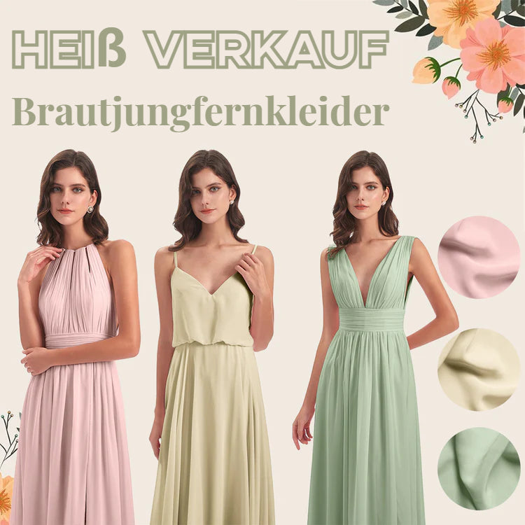 Emma A-Linie Bodenlange V-Ausschnitt geschlitzte Lange Chiffon Brautjungfernkleider