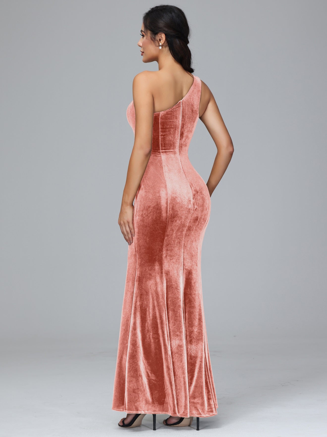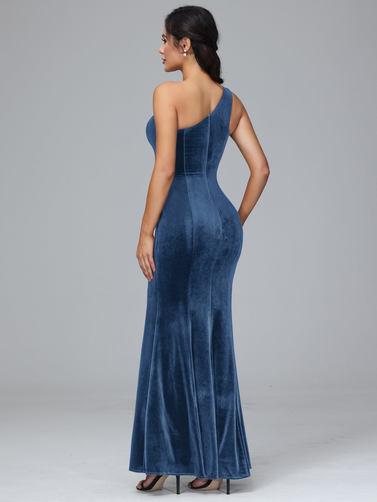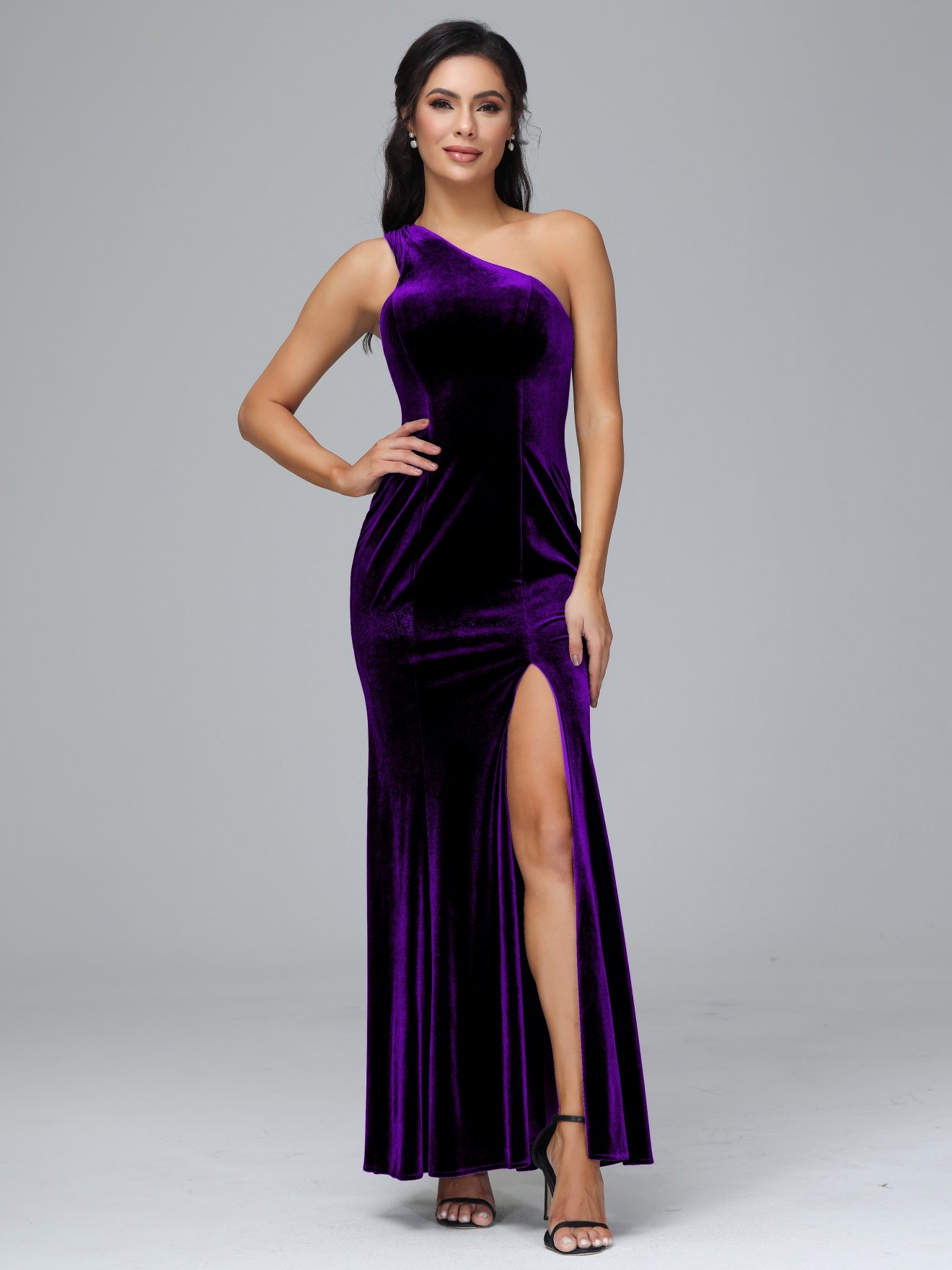 Eine Schulter Geschlitzte Samt Brautjungfernkleider