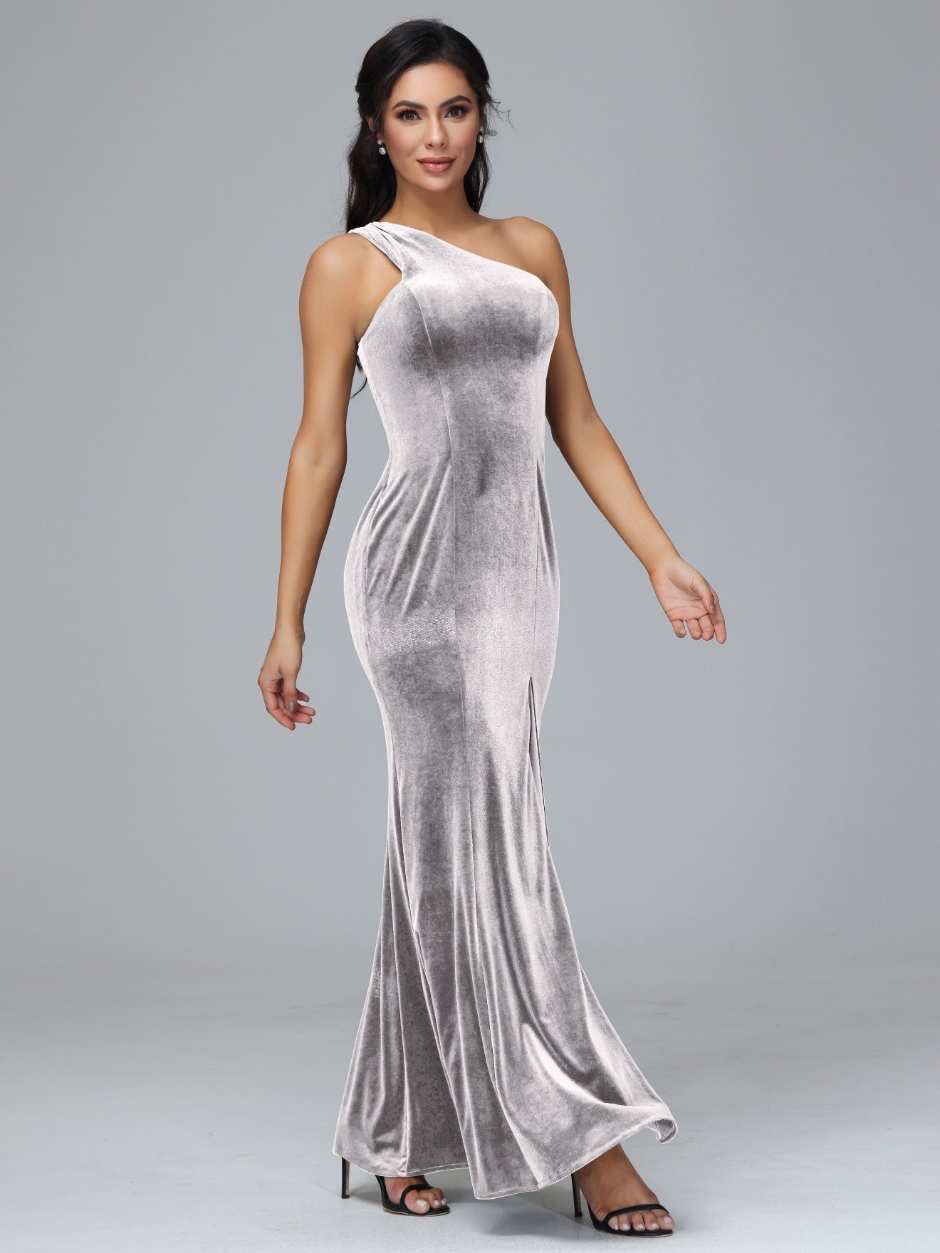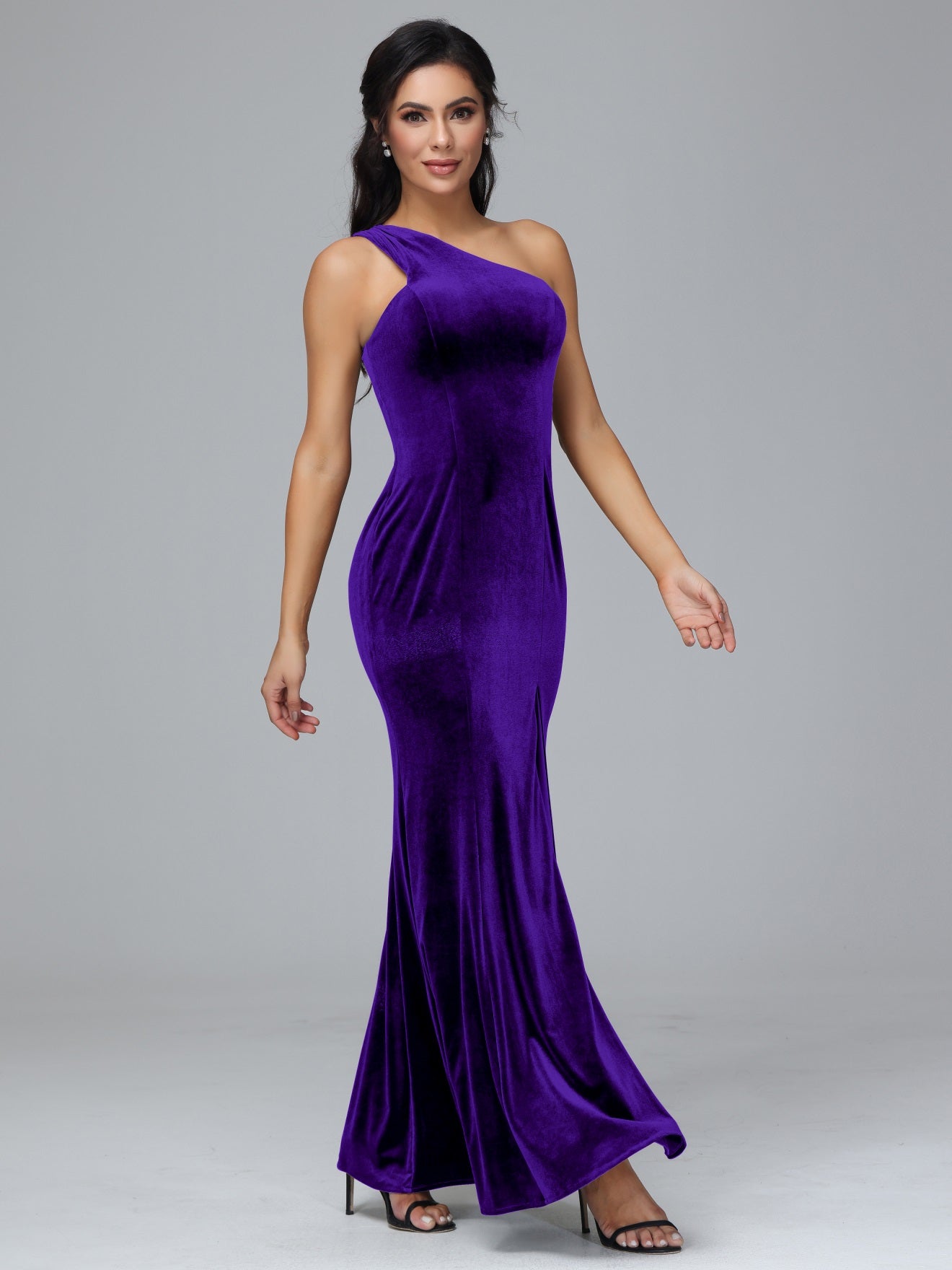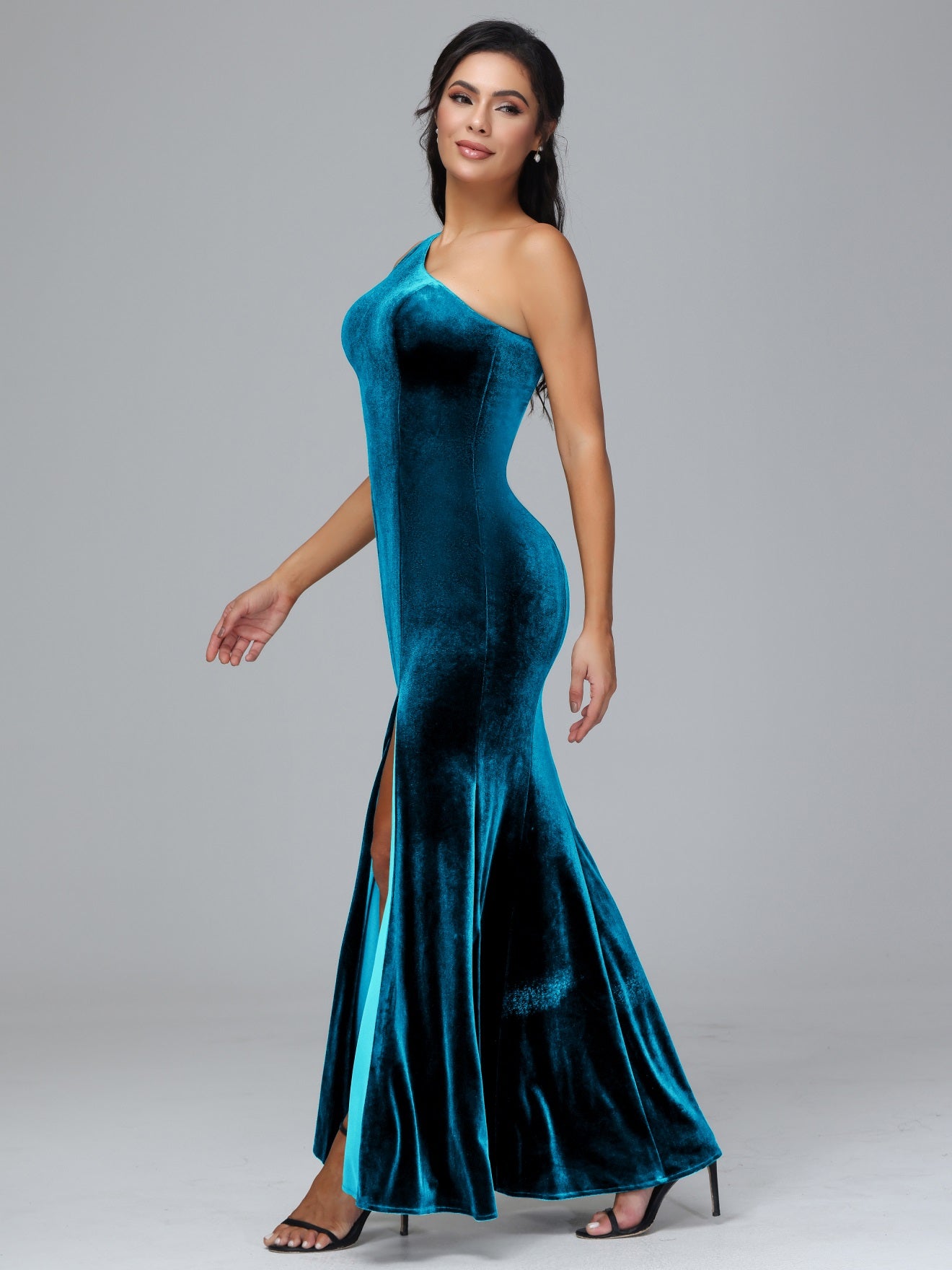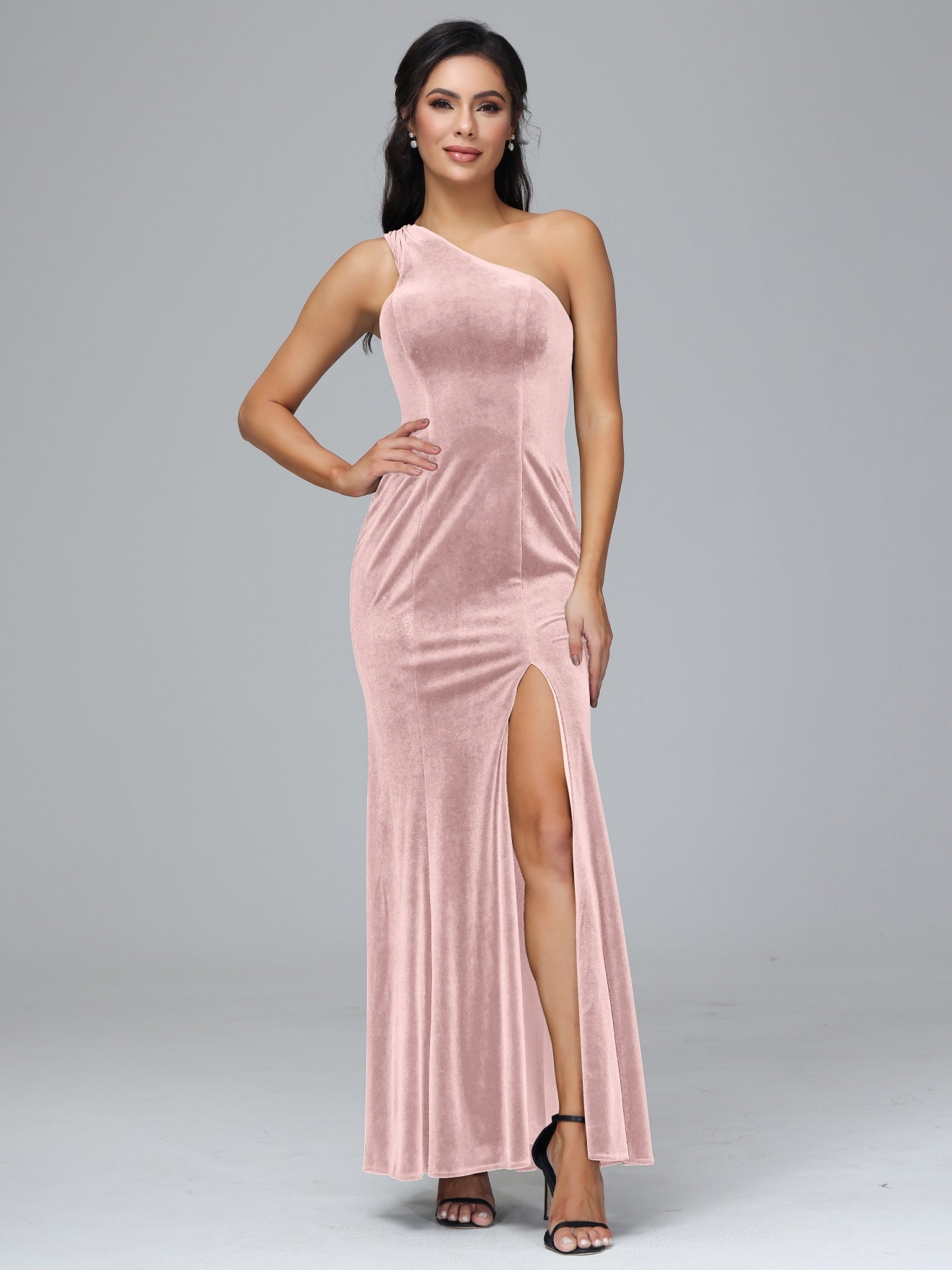 Eine Schulter Geschlitzte Samt Brautjungfernkleider