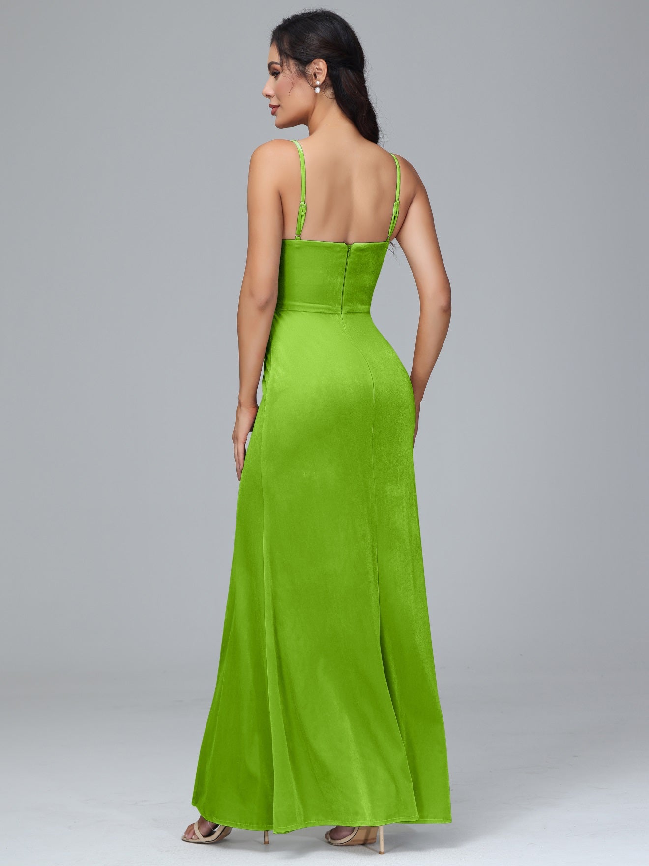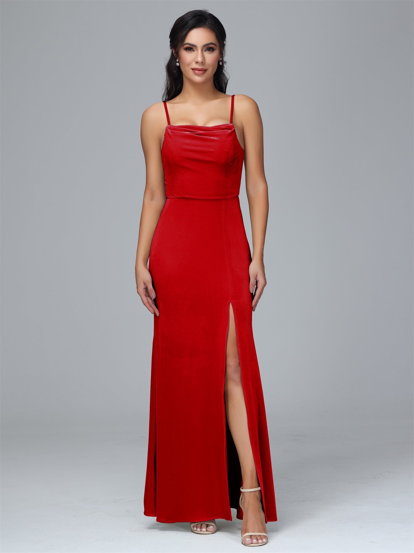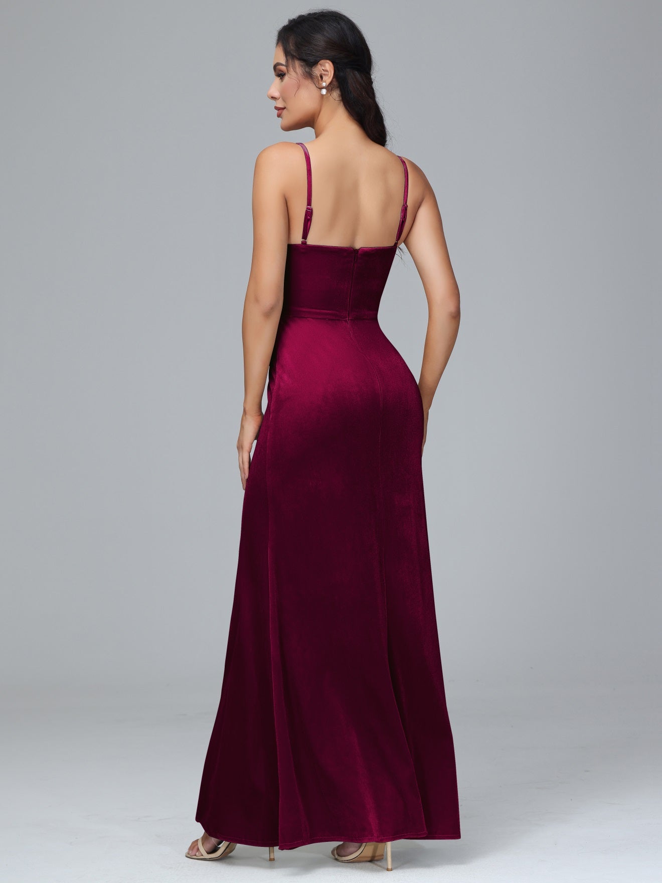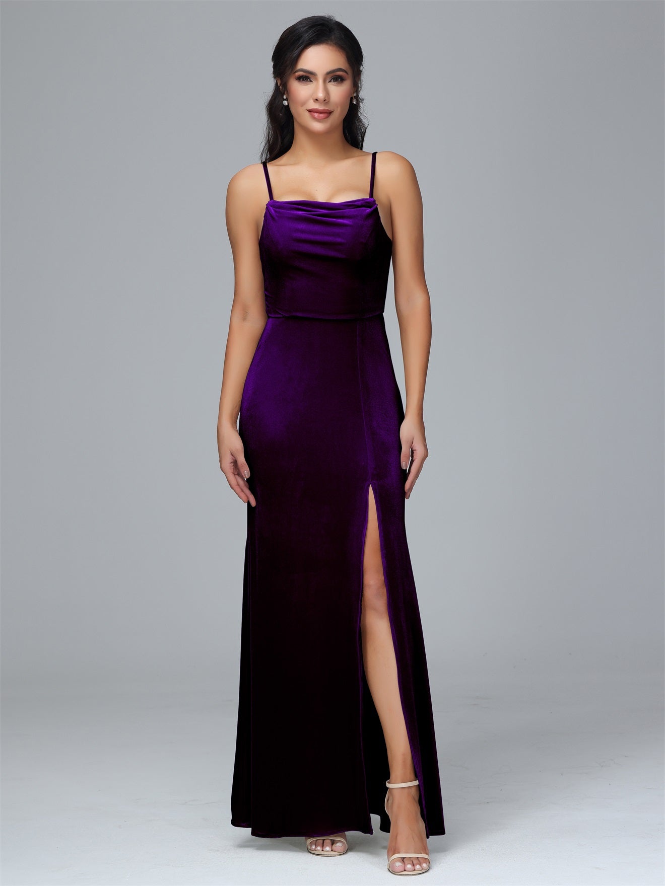 Gerader Ausschnitt Bodenlang Geschlitzt Samt Brautjungfernkleider