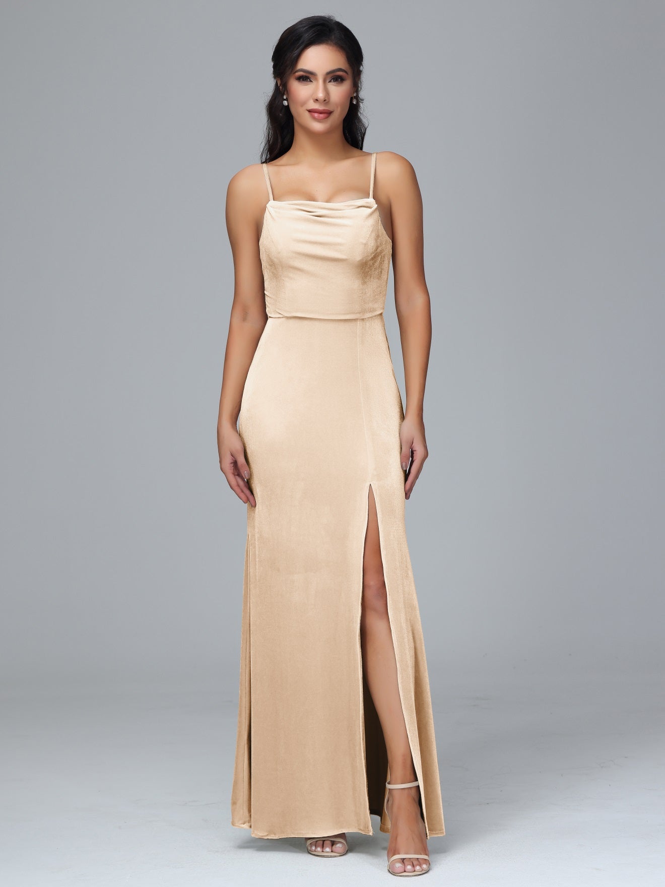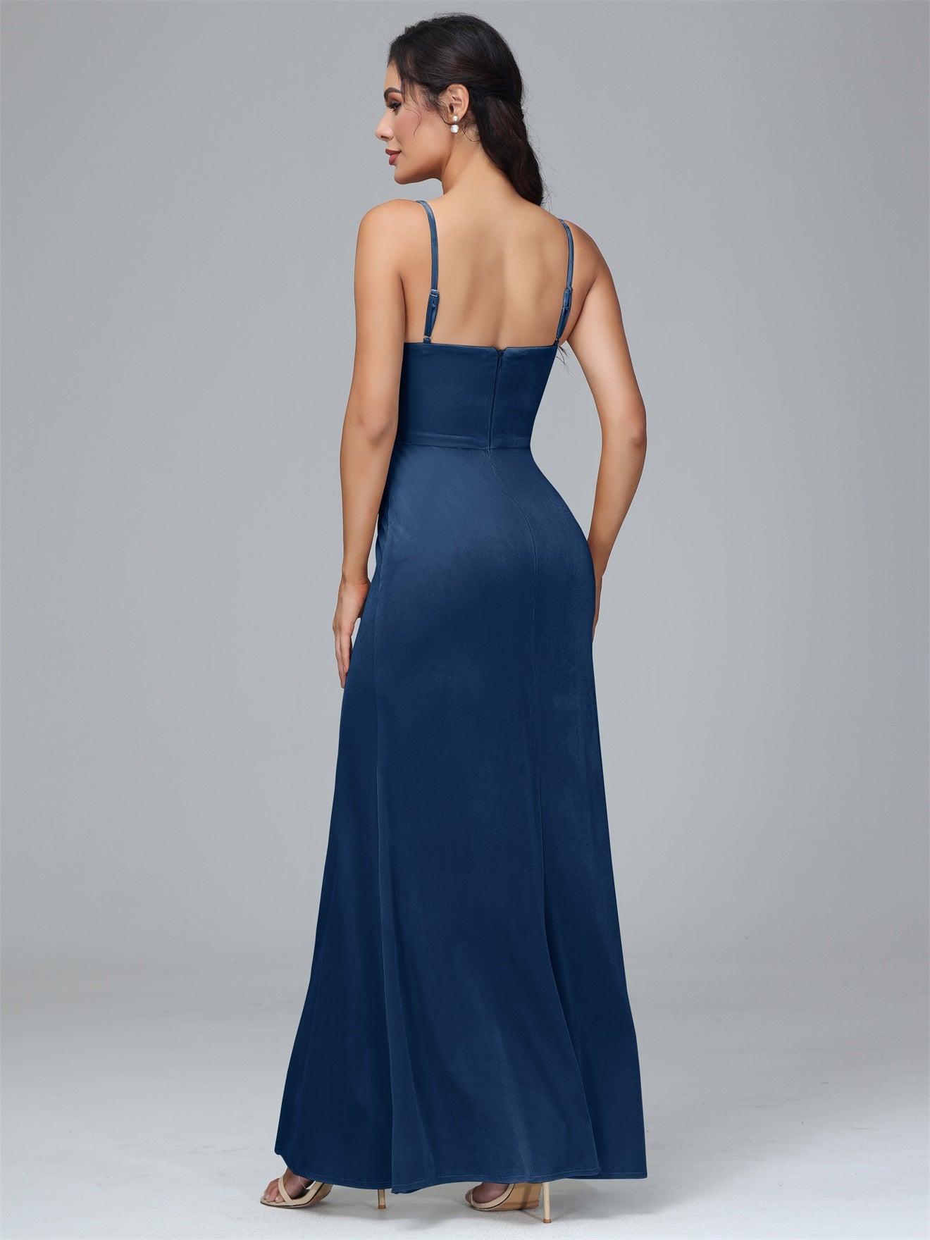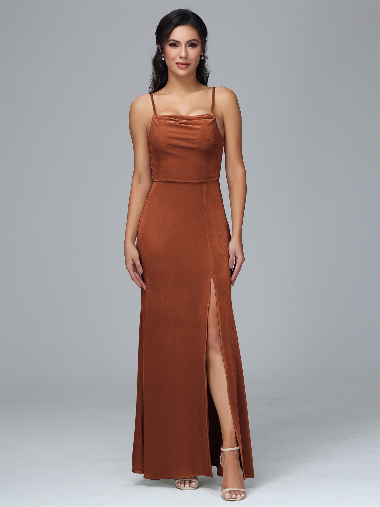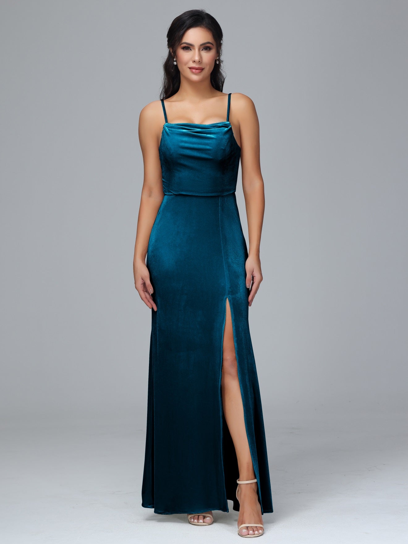 Gerader Ausschnitt Bodenlang Geschlitzt Samt Brautjungfernkleider