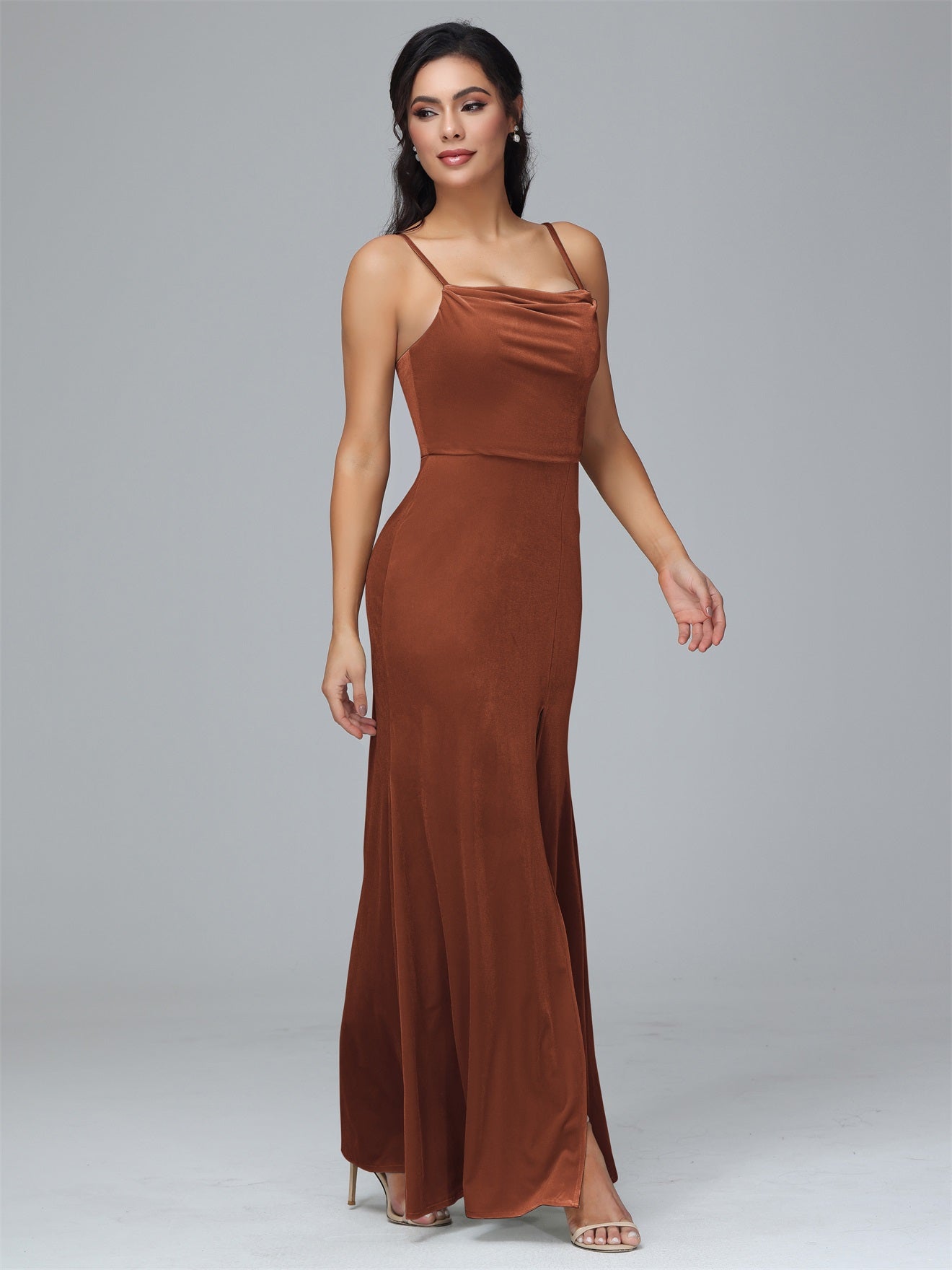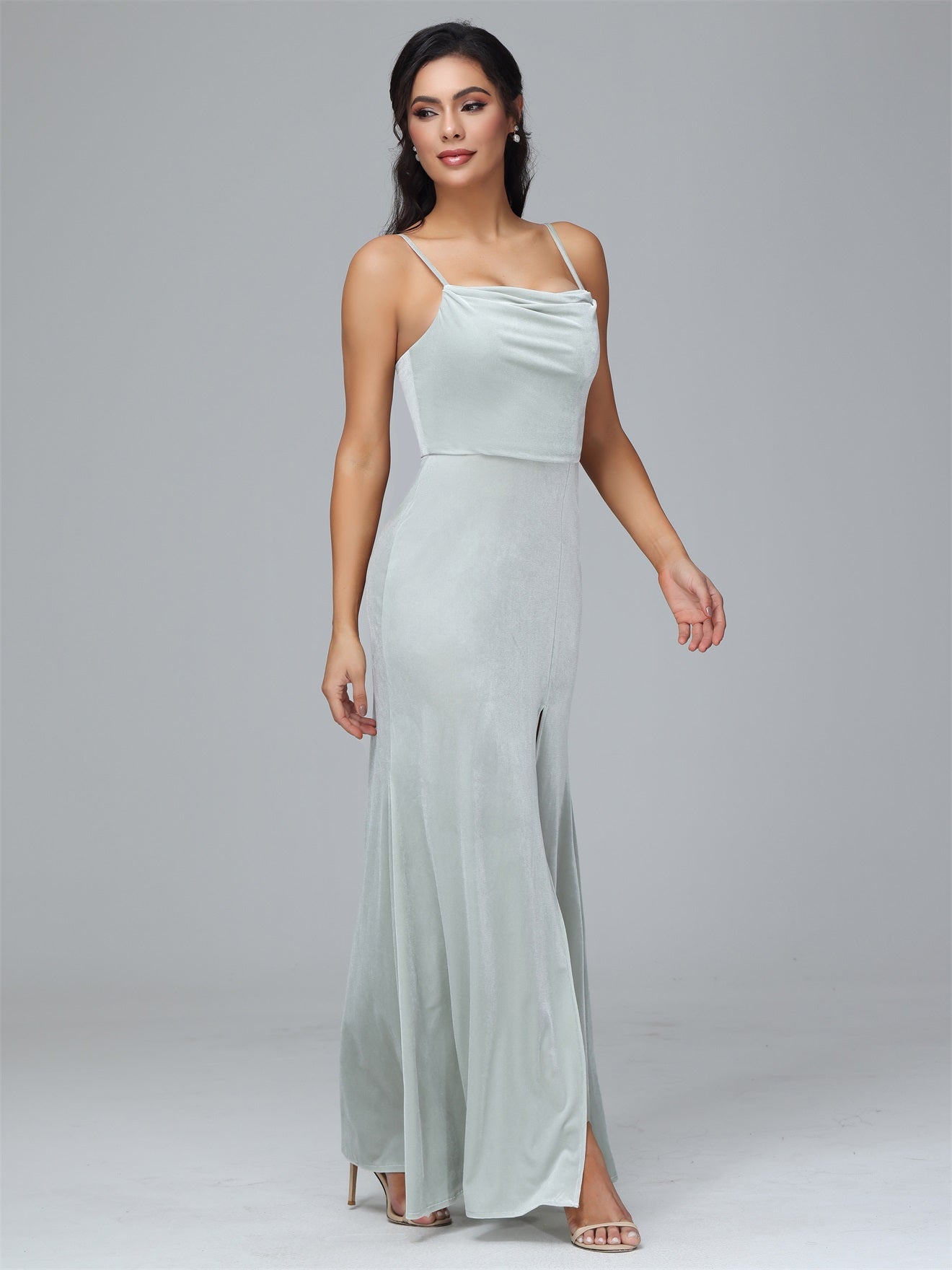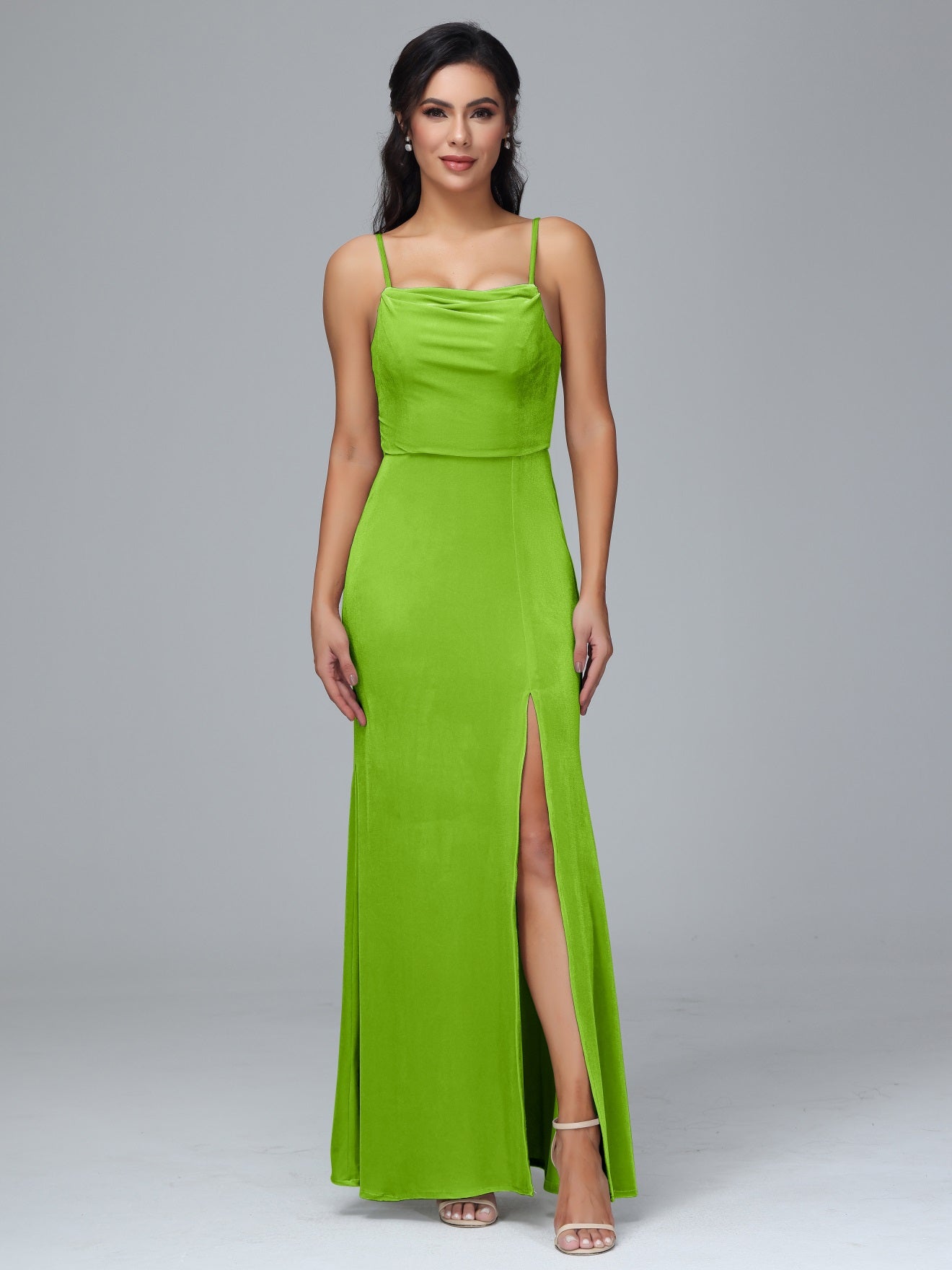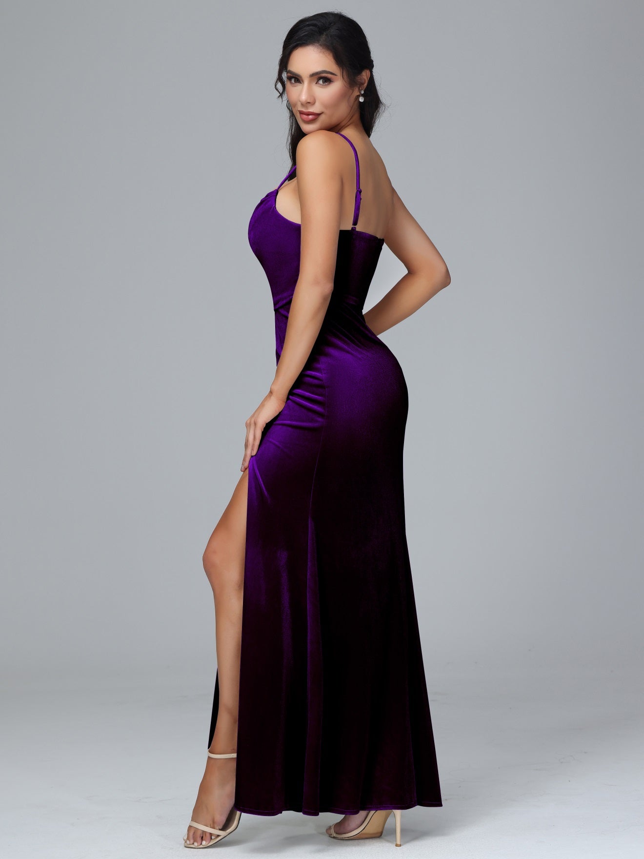 Gerader Ausschnitt Bodenlang Geschlitzt Samt Brautjungfernkleider