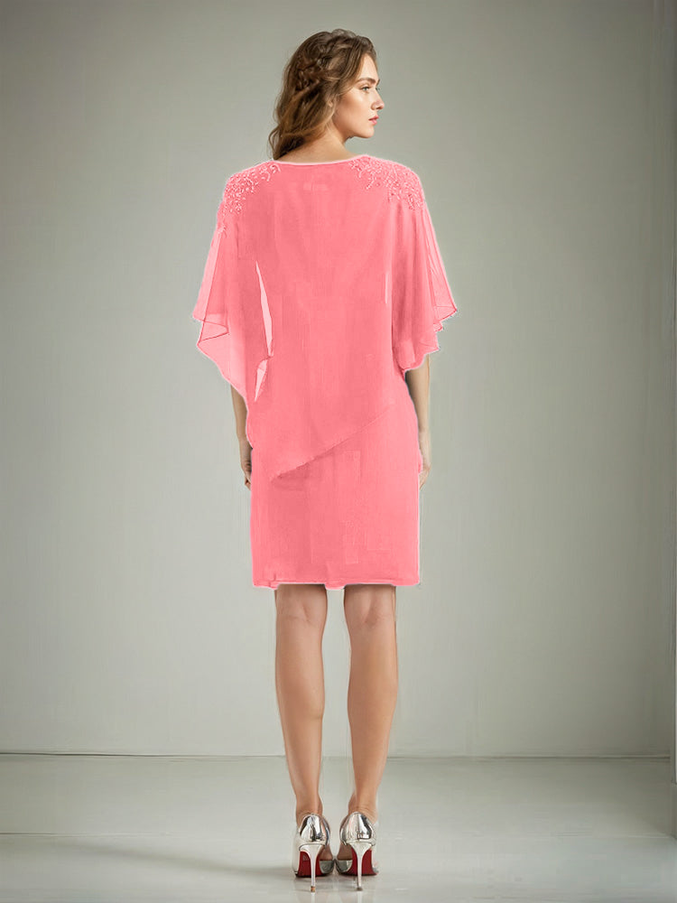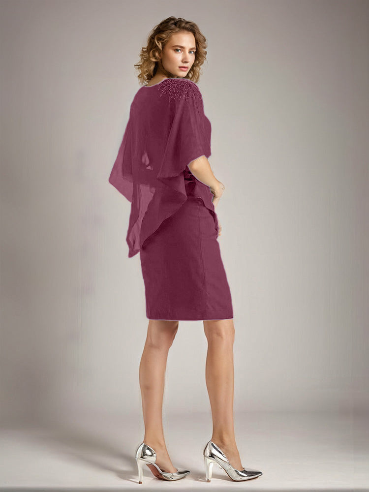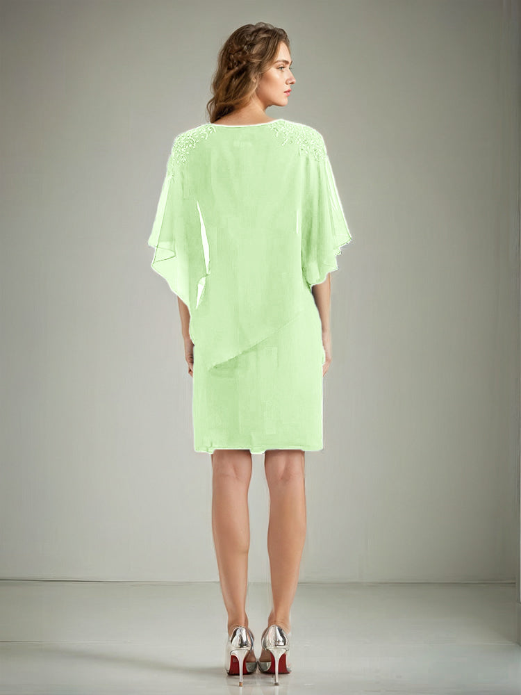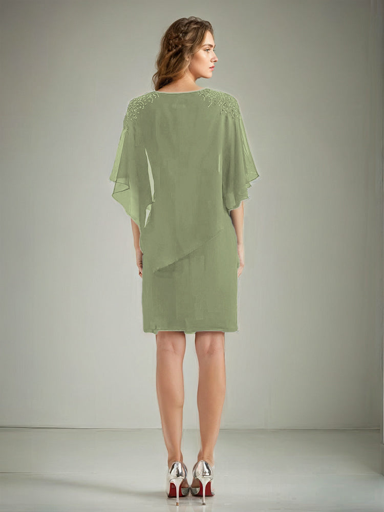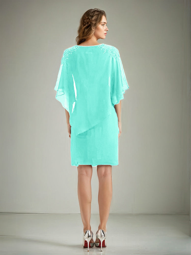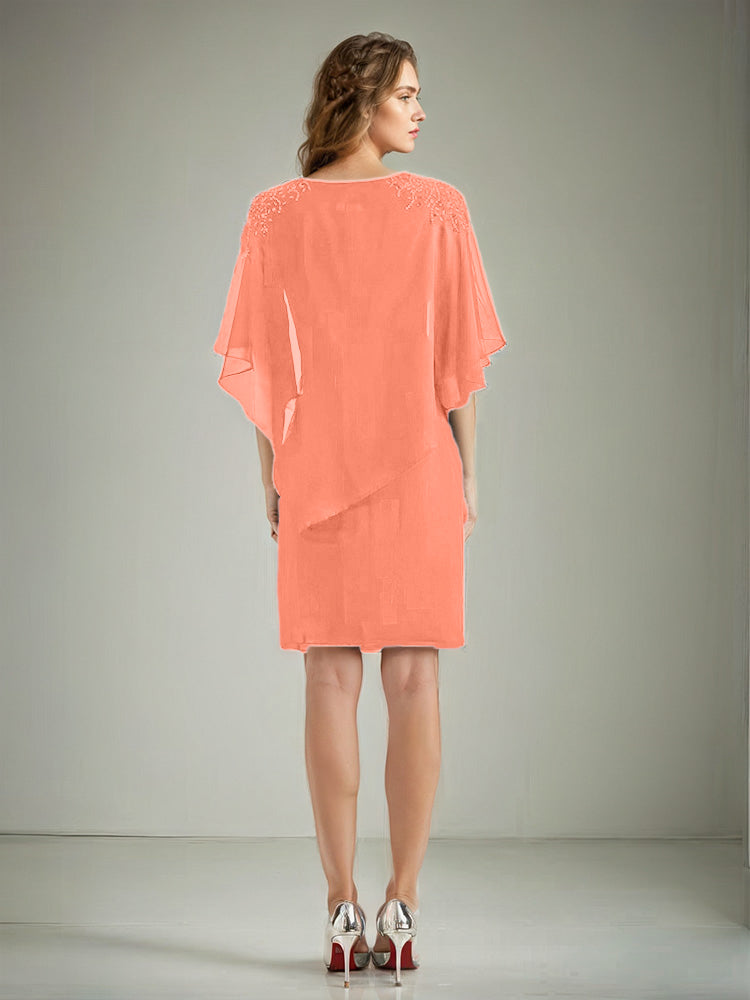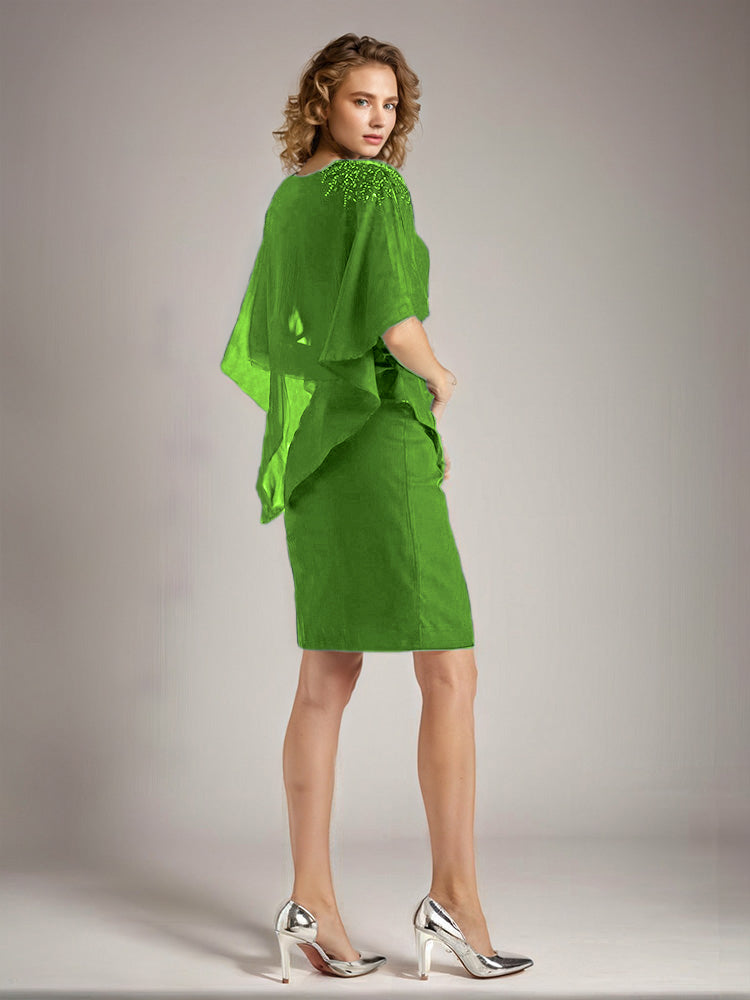 2 Stück Chiffon Halbe Ärmel Cape Knielang Mutter der Braut Kleid