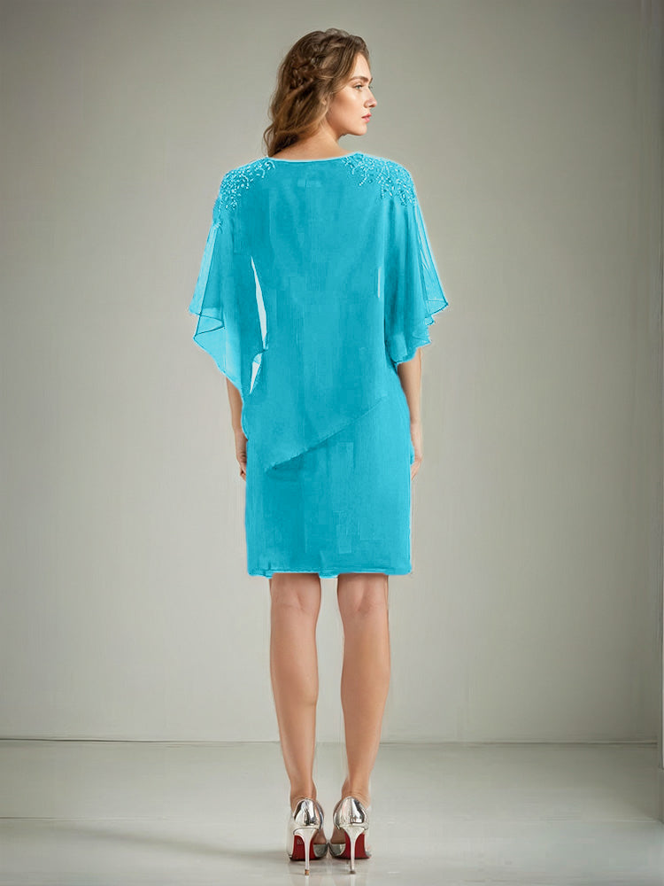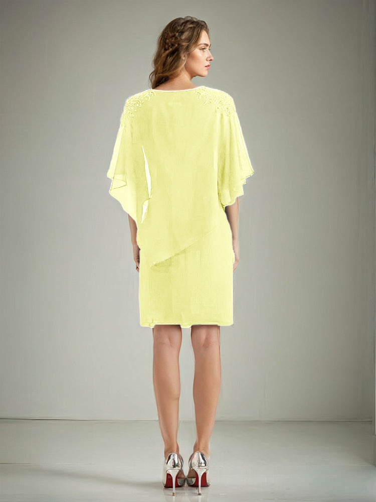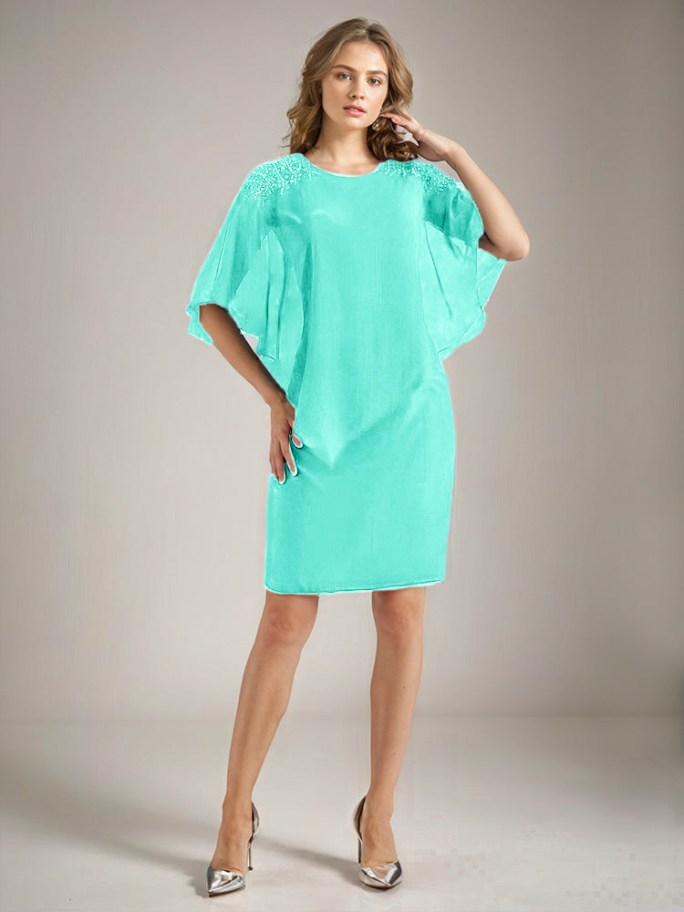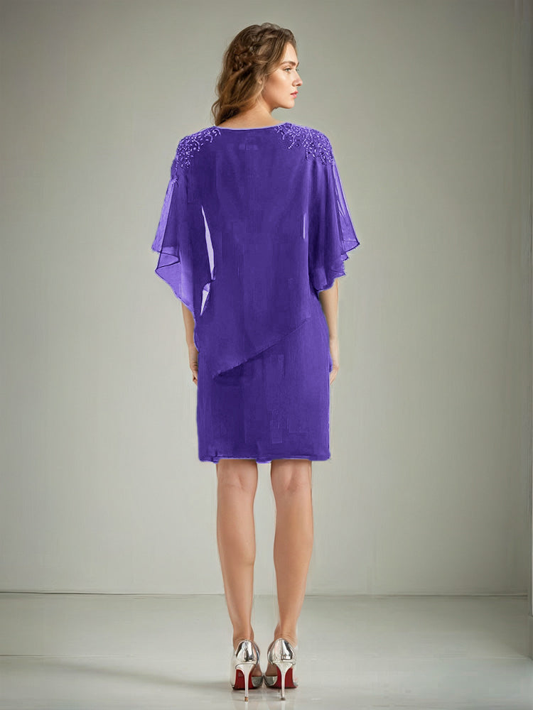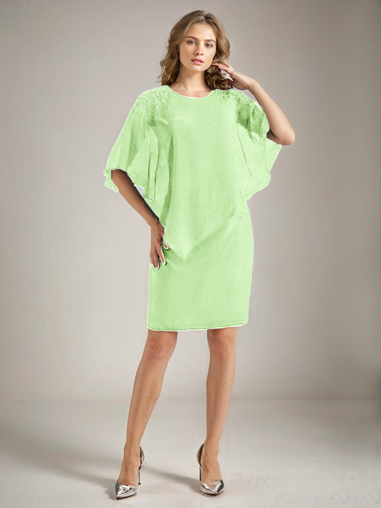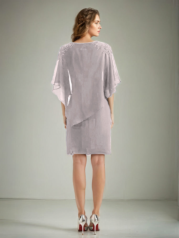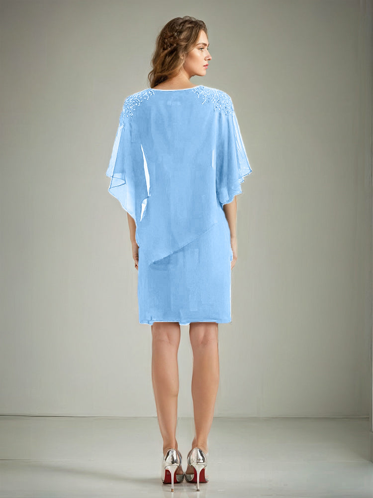 2 Stück Chiffon Halbe Ärmel Cape Knielang Mutter der Braut Kleid
