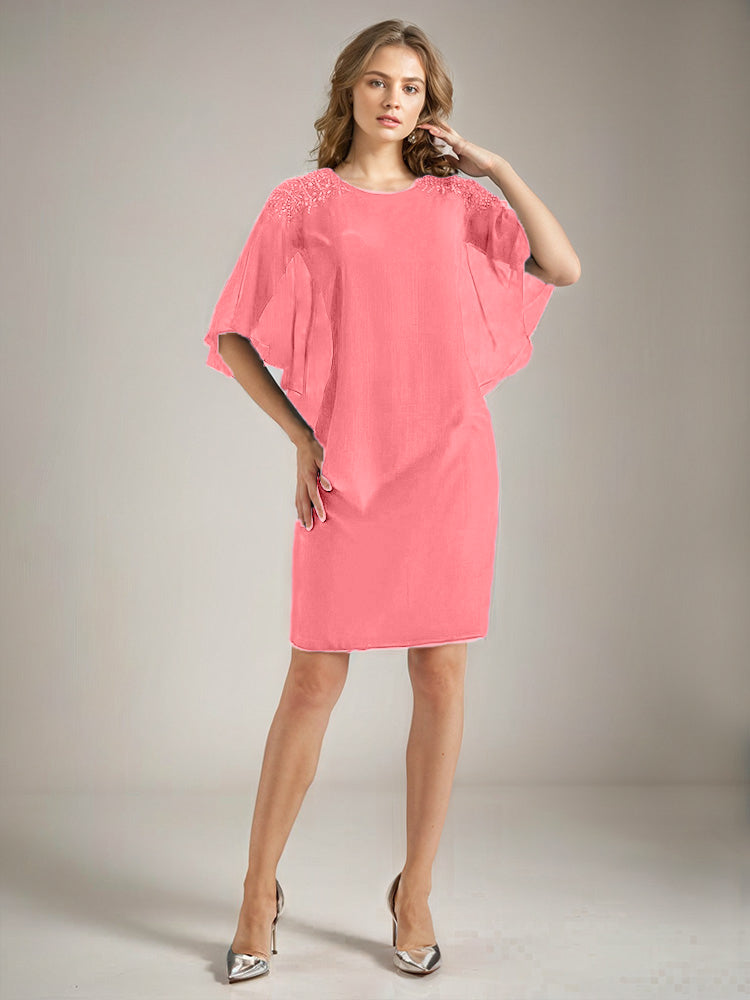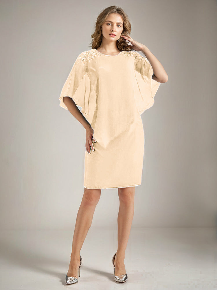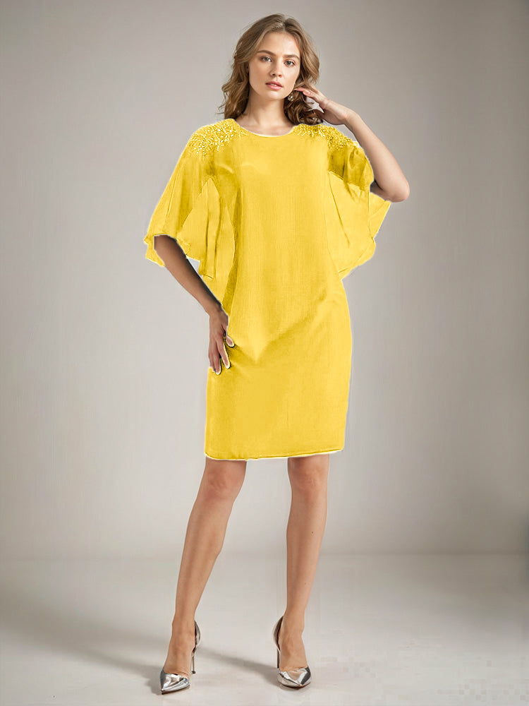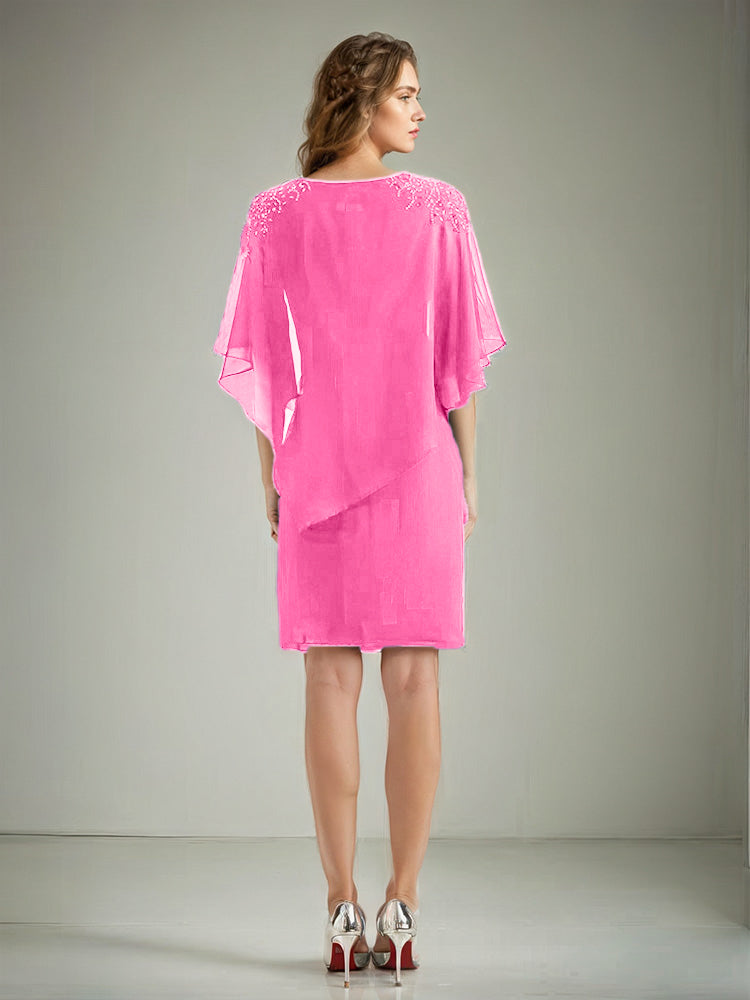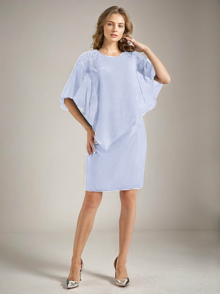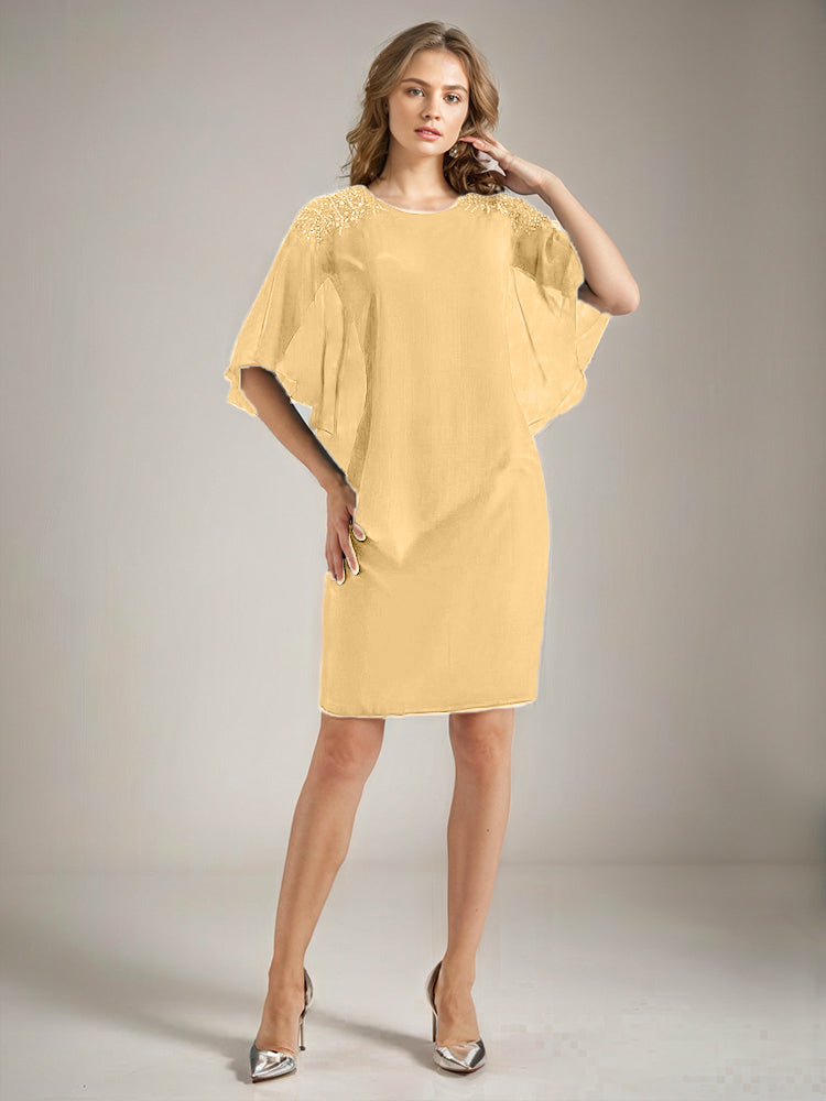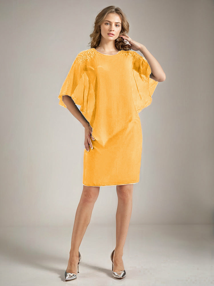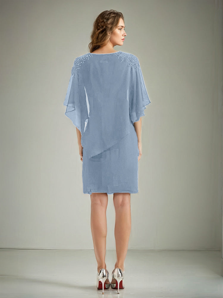 2 Stück Chiffon Halbe Ärmel Cape Knielang Mutter der Braut Kleid