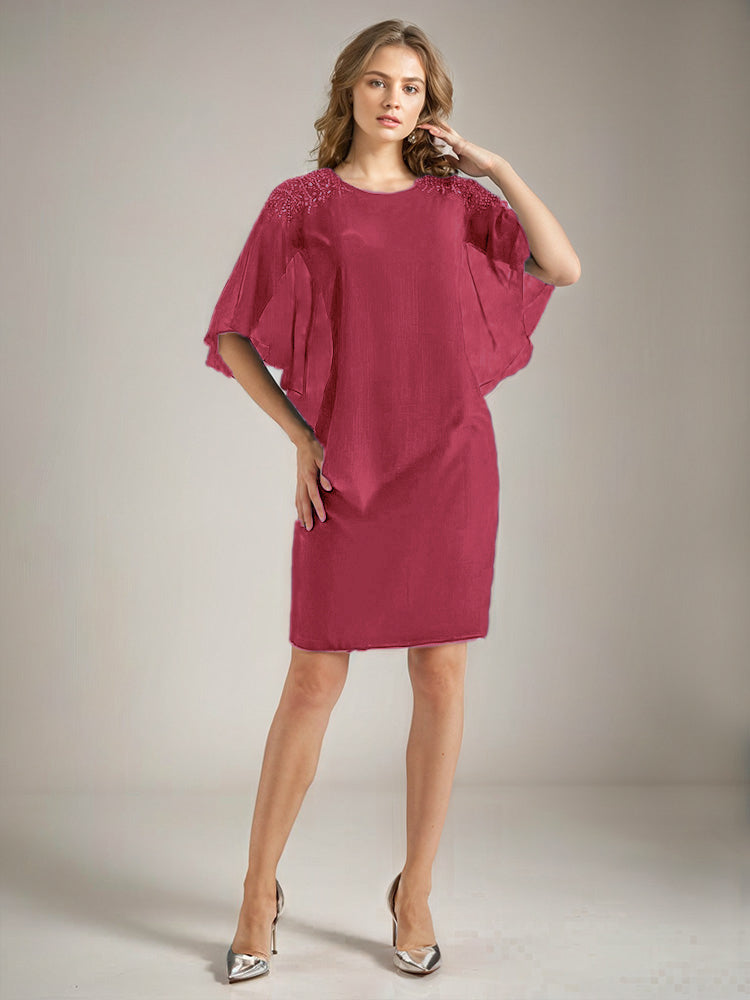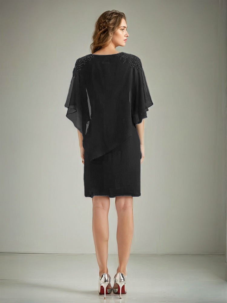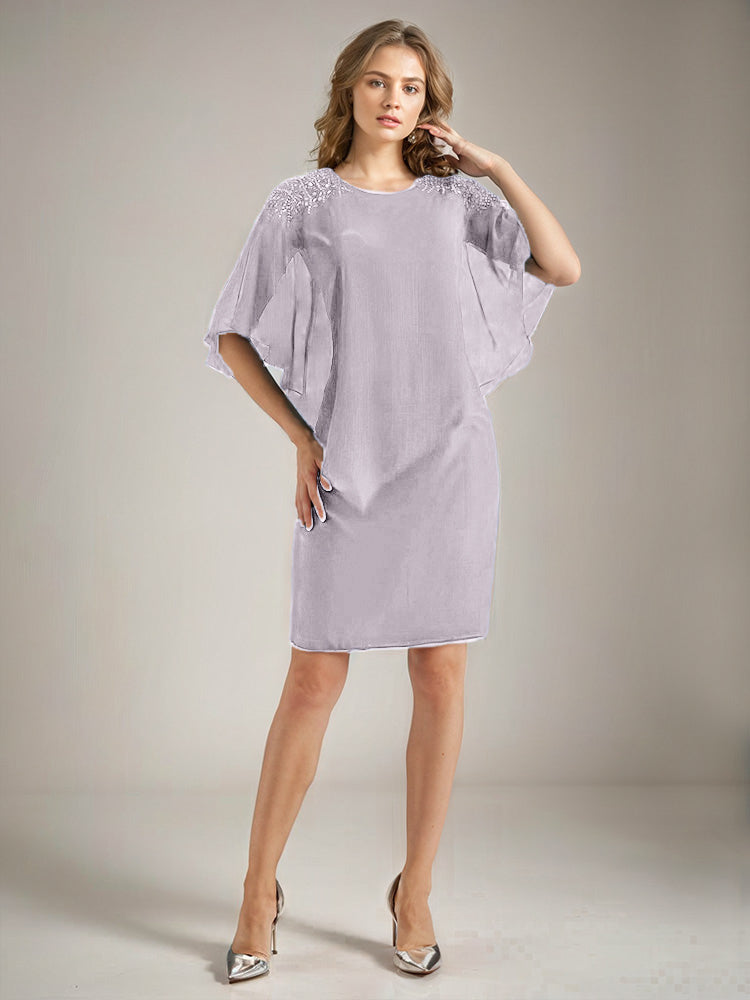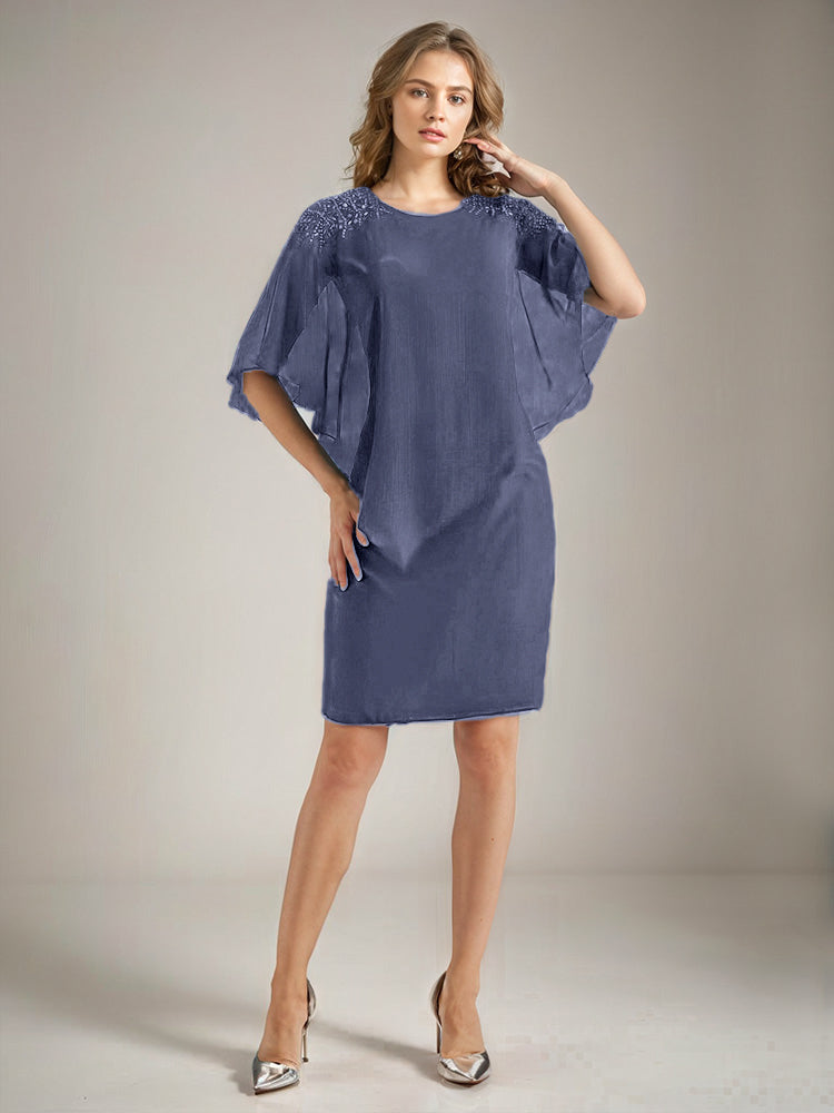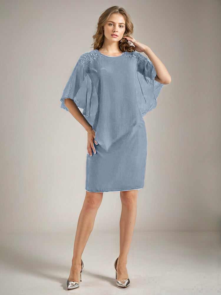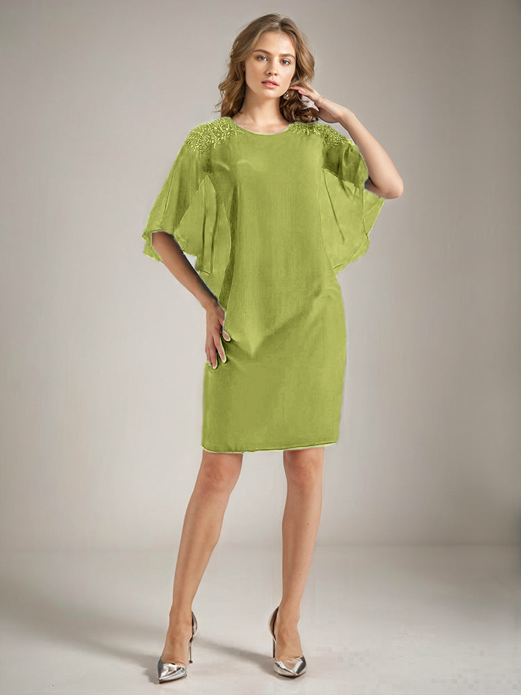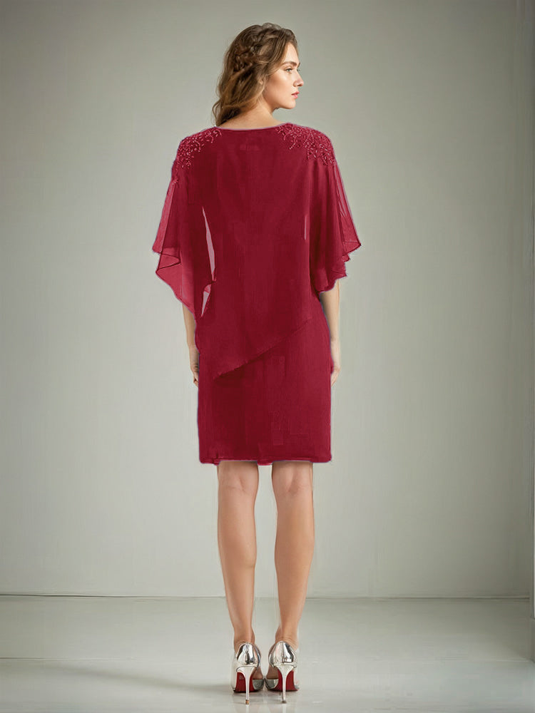 2 Stück Chiffon Halbe Ärmel Cape Knielang Mutter der Braut Kleid