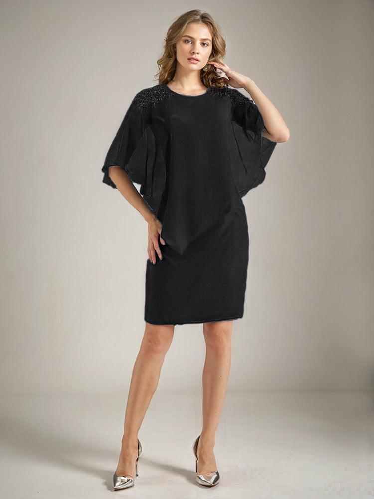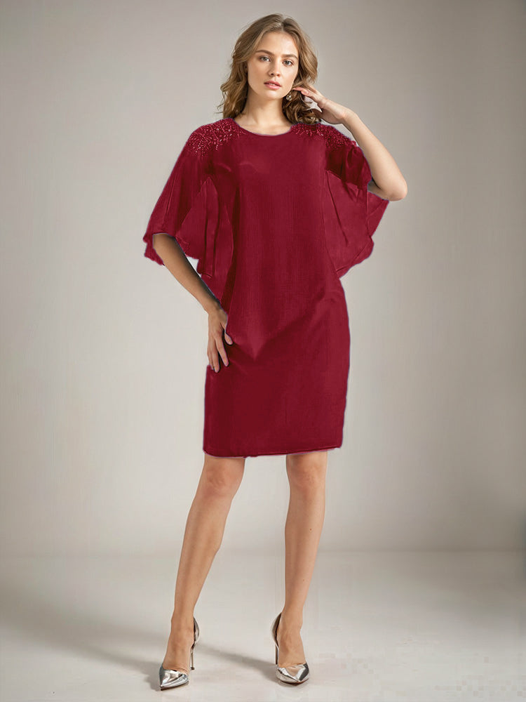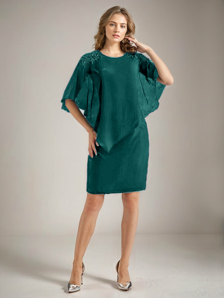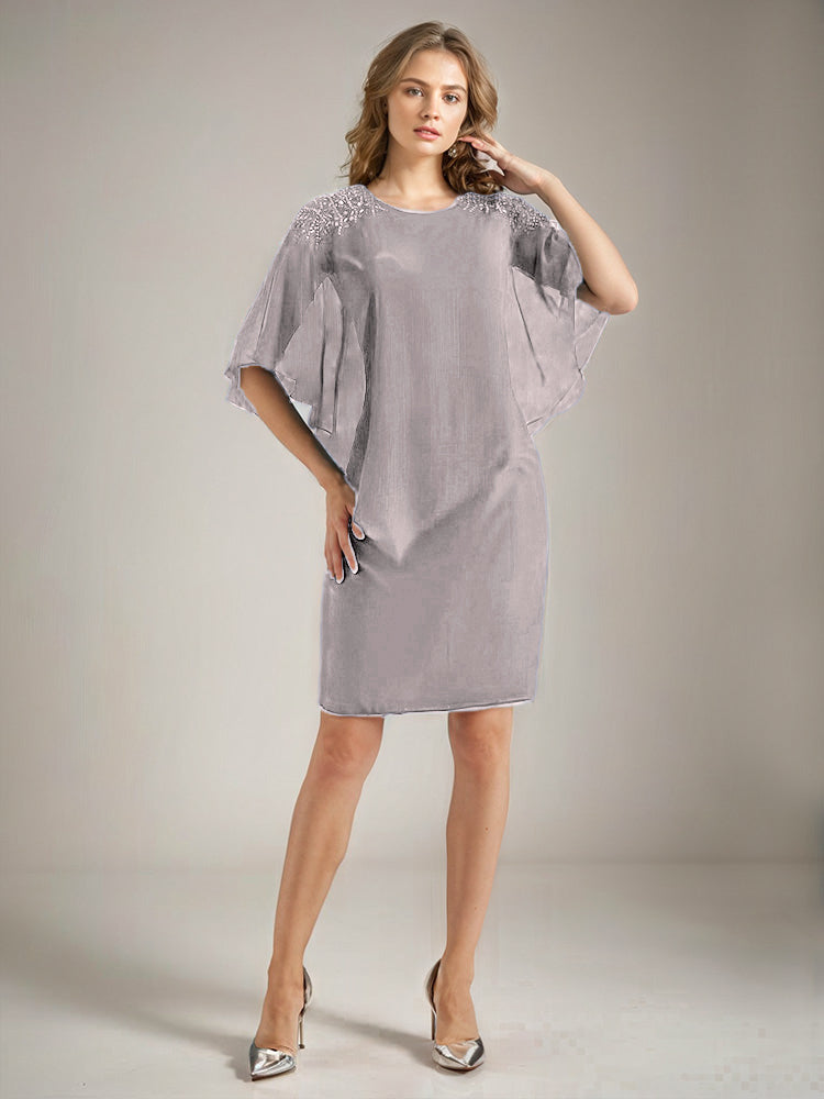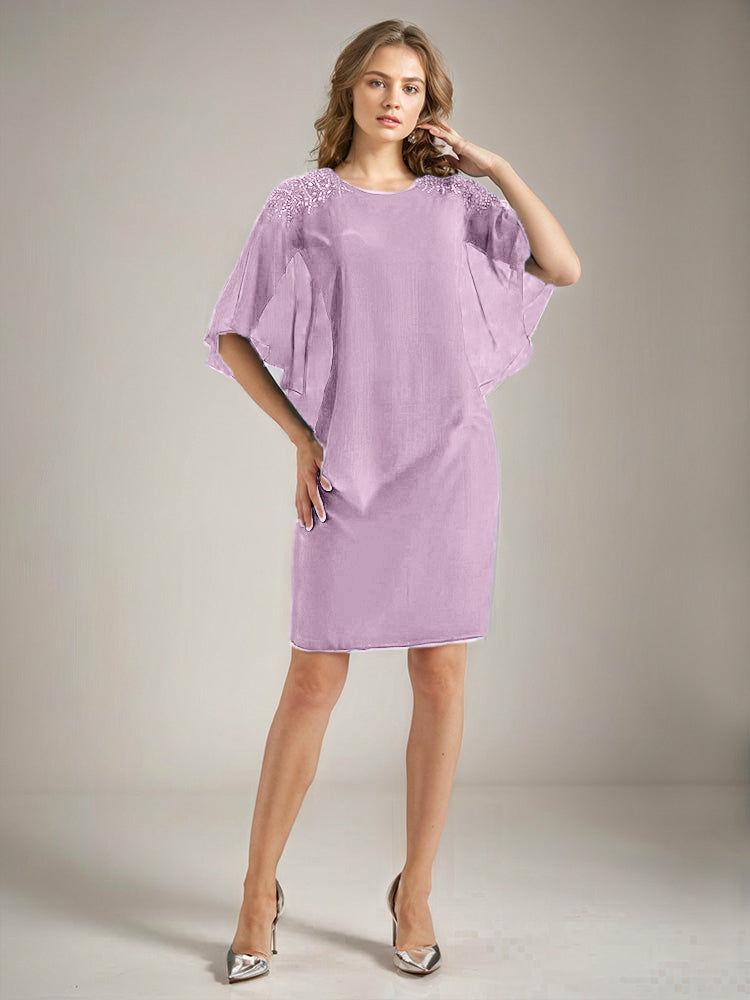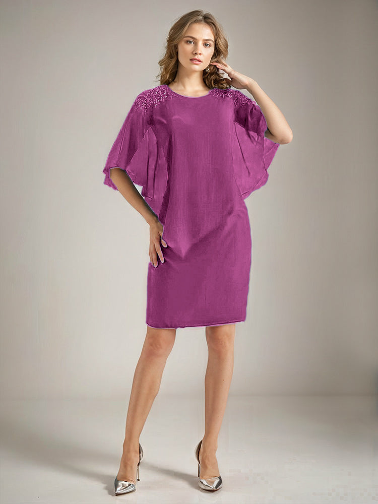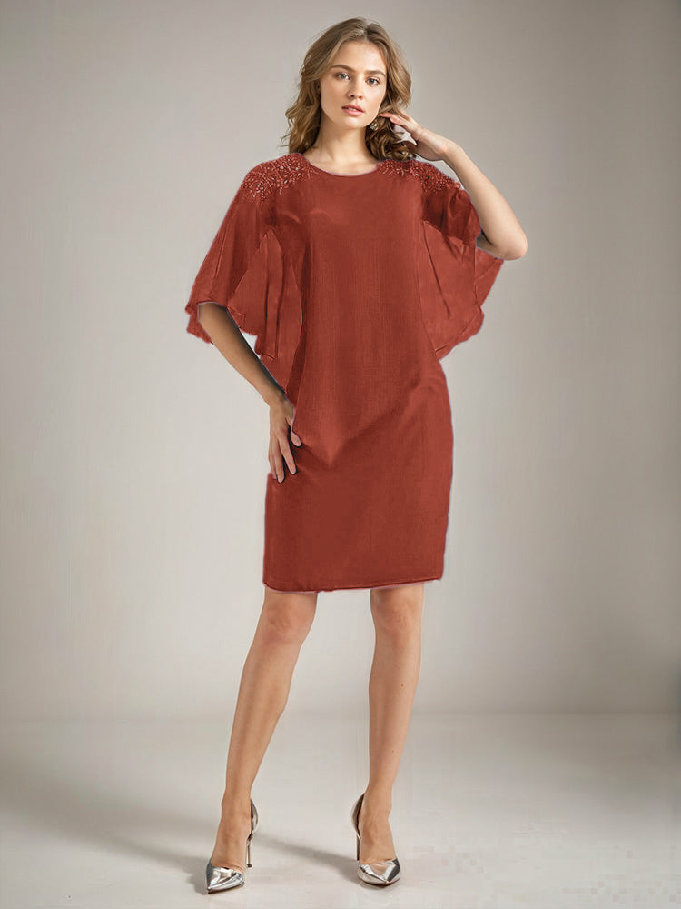 2 Stück Chiffon Halbe Ärmel Cape Knielang Mutter der Braut Kleid