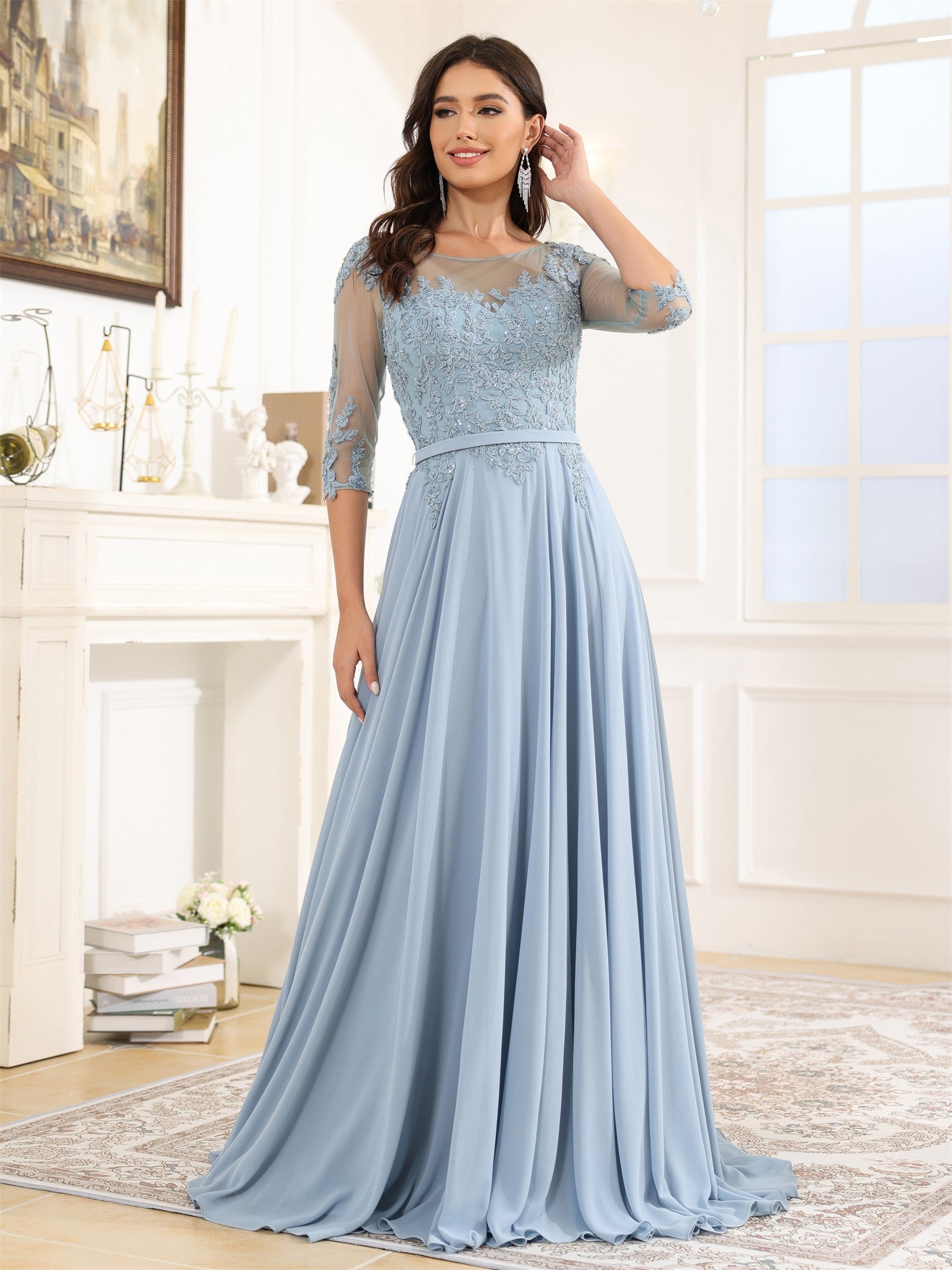3/4 Länge Ärmel A-Linie Bateau Chiffon Mutter der Braut Kleider