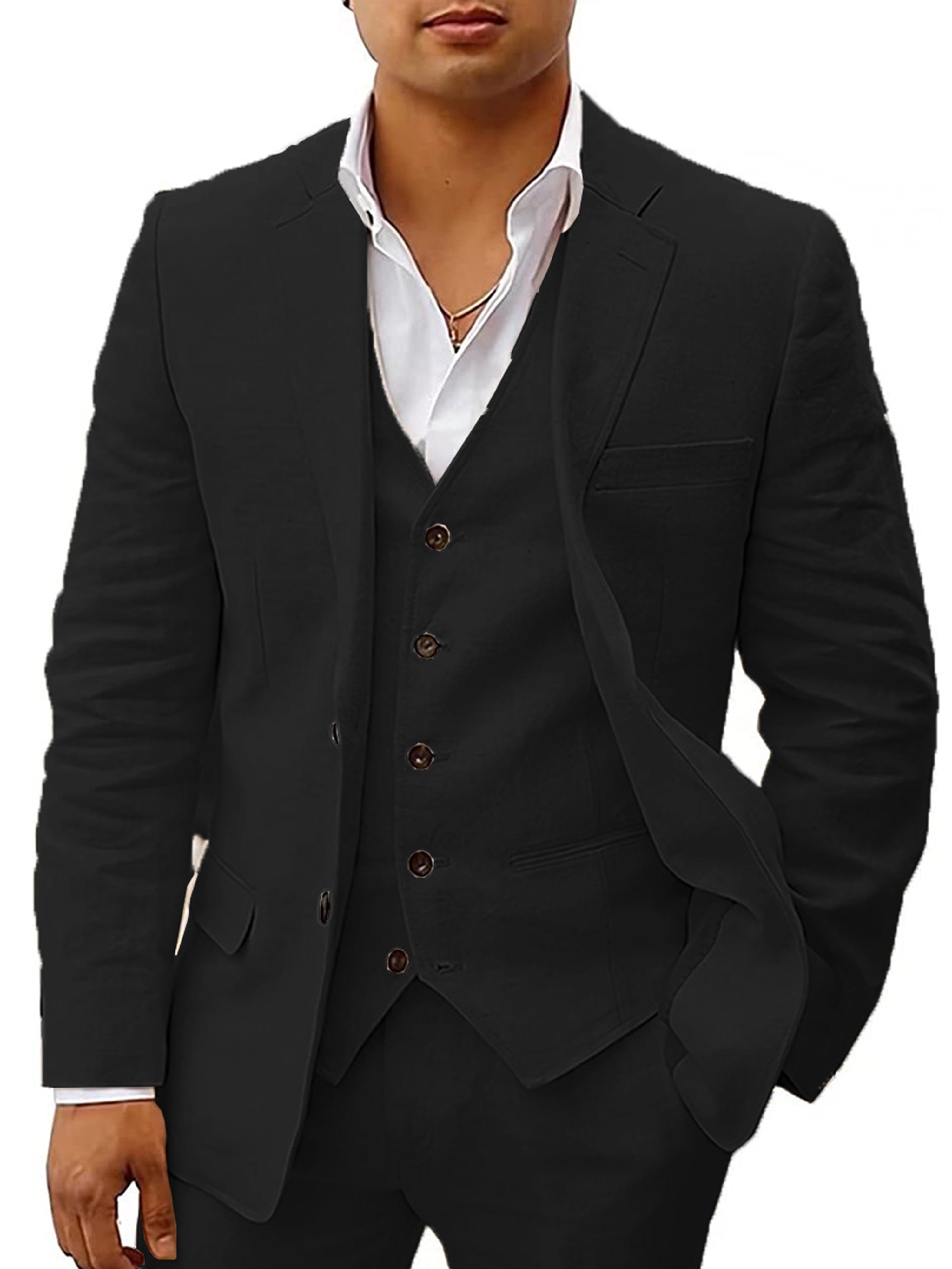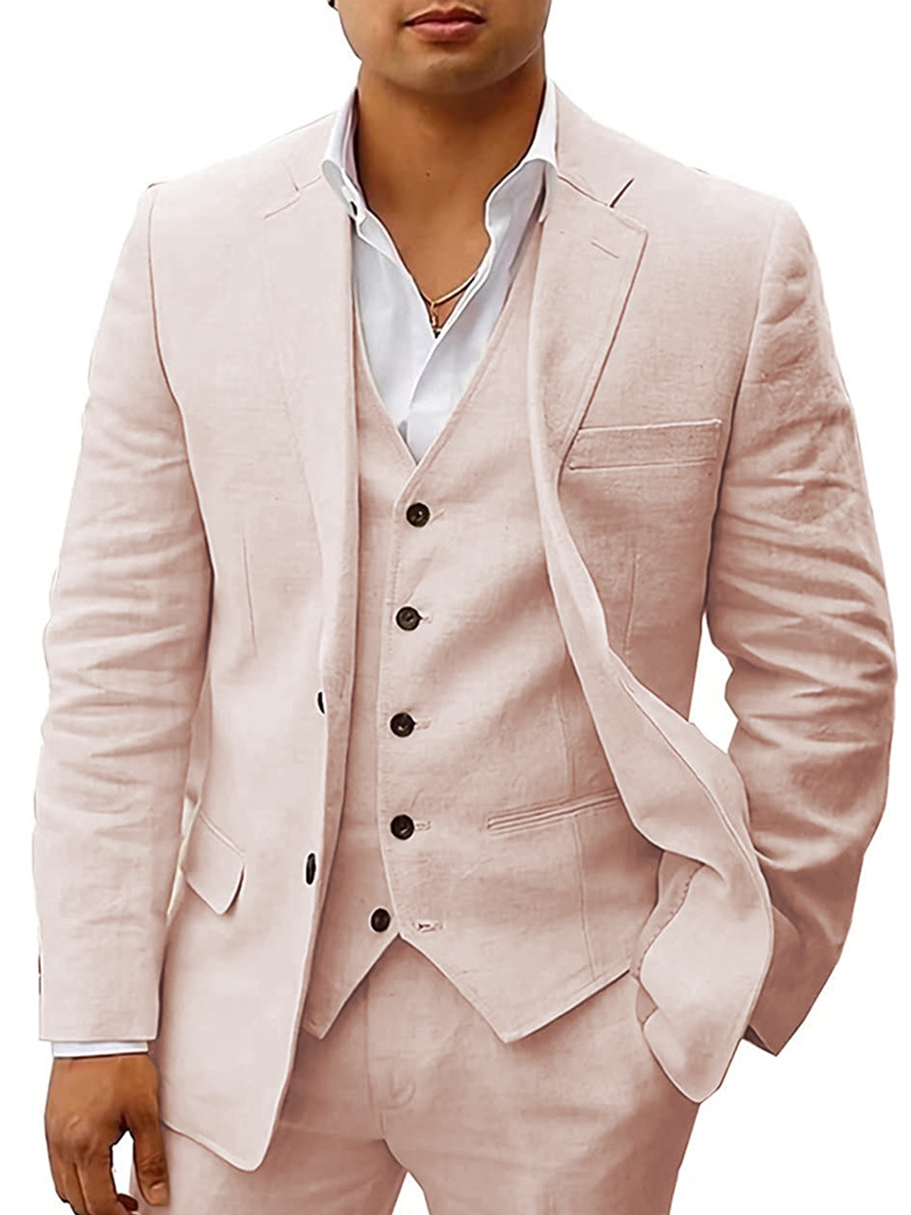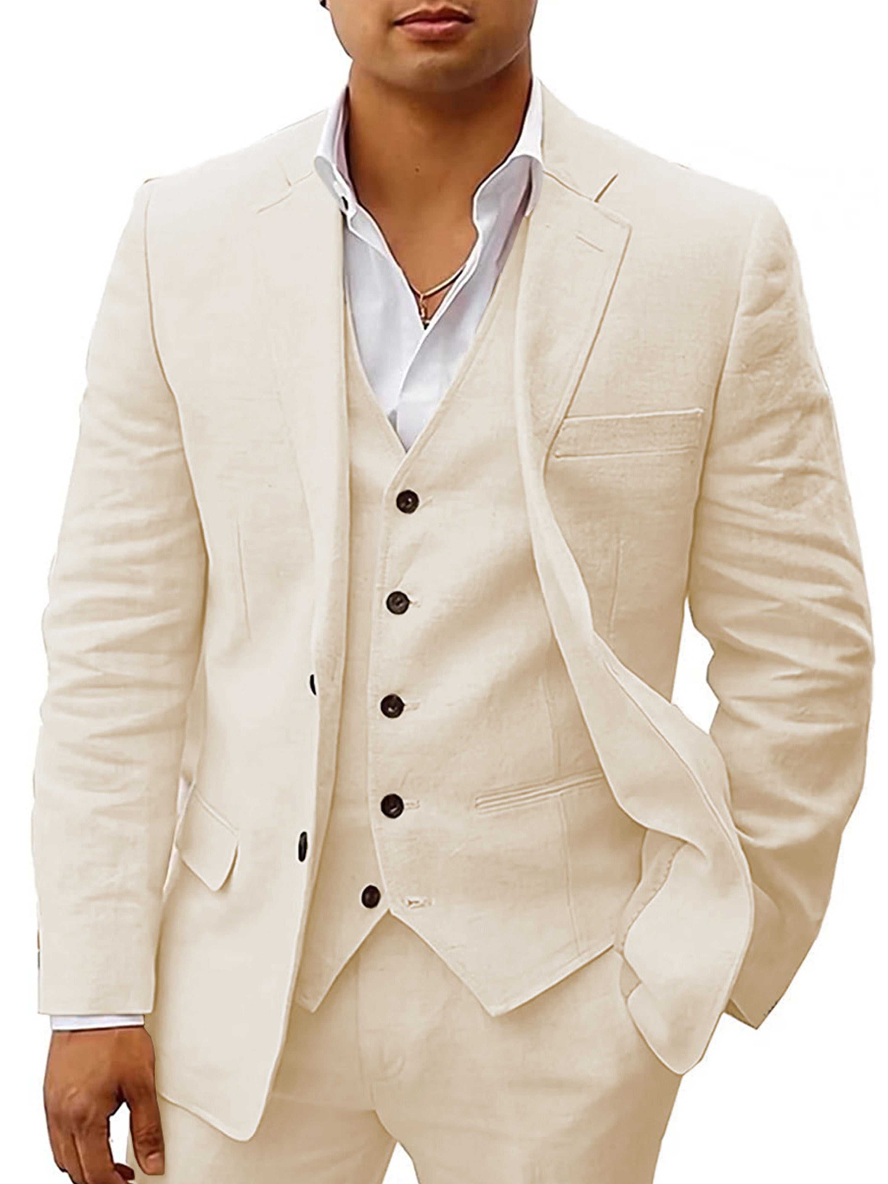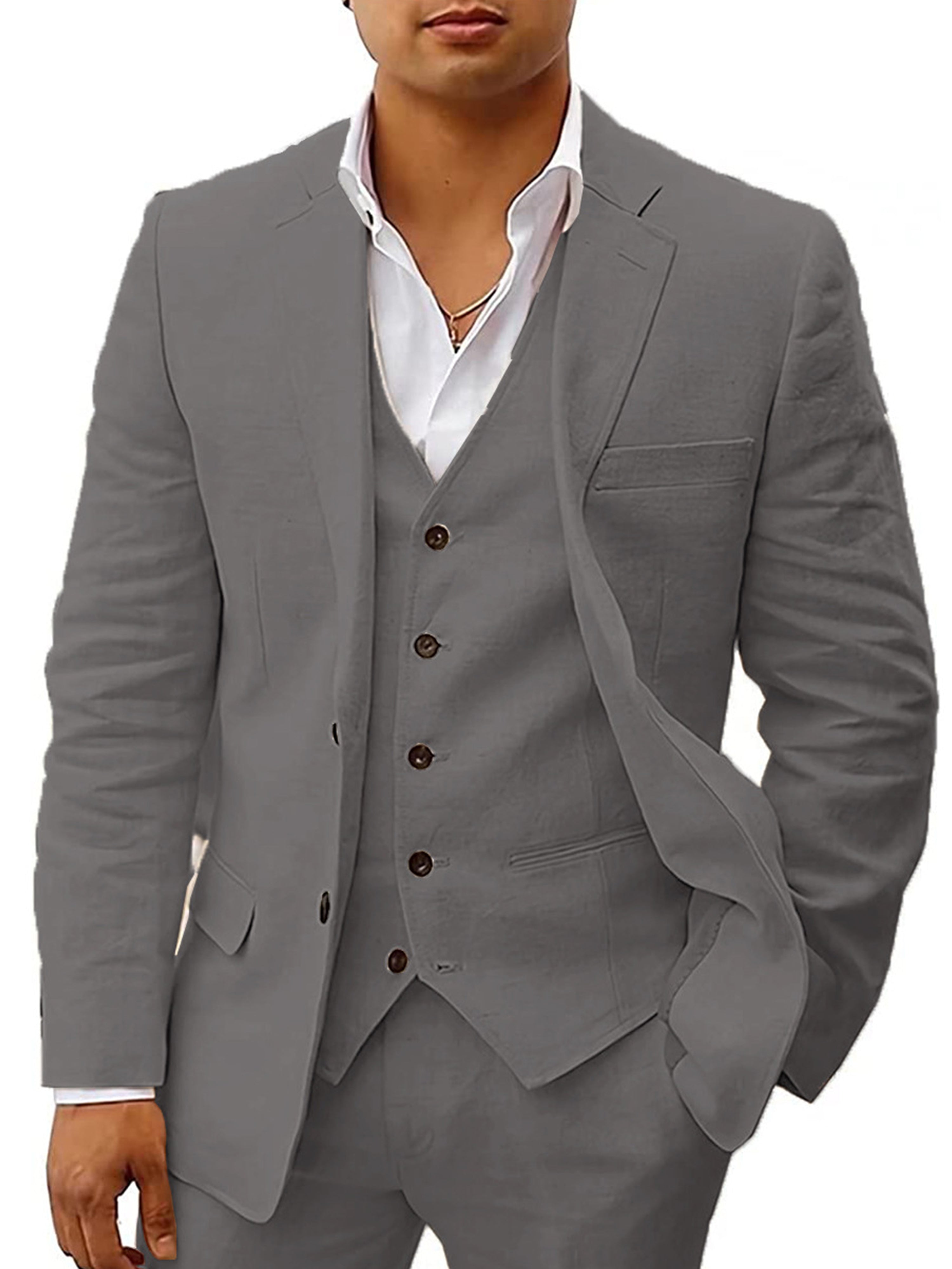 3 Stück Herren Anzüge Baumwolle und Leinen Sommer Atmungsaktiv Business Anzug