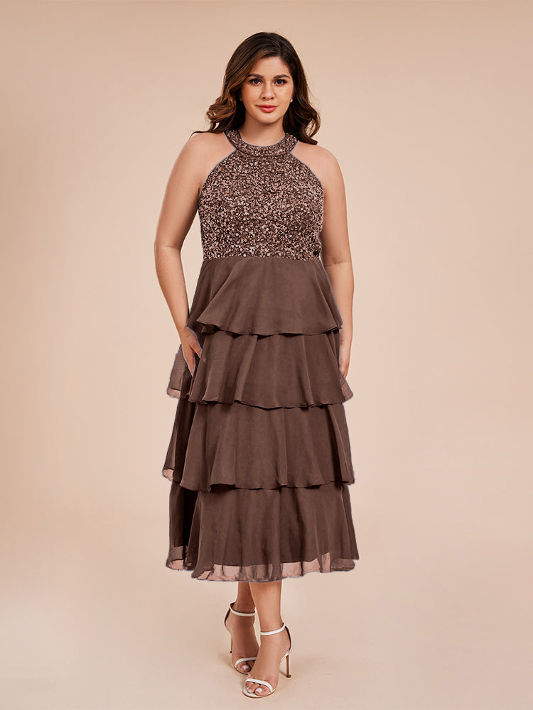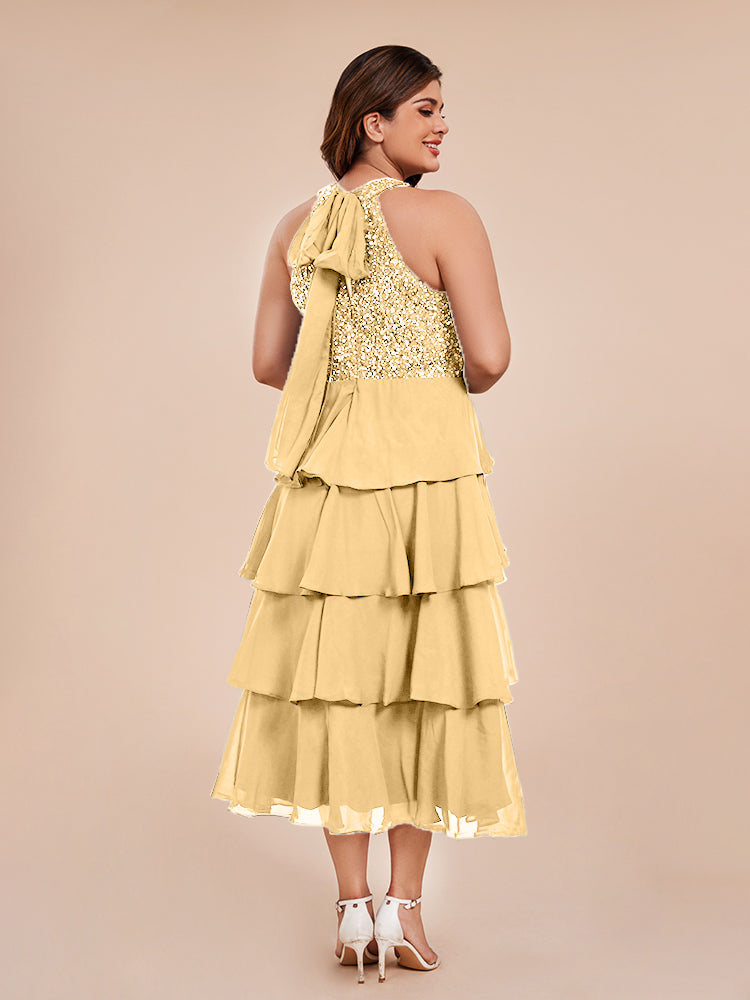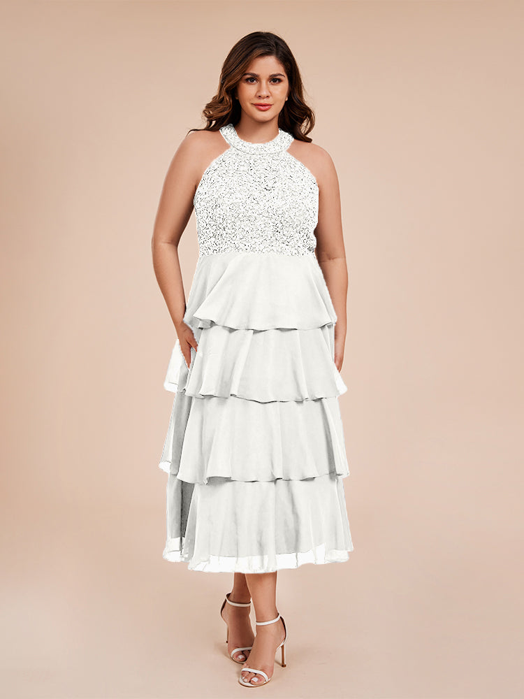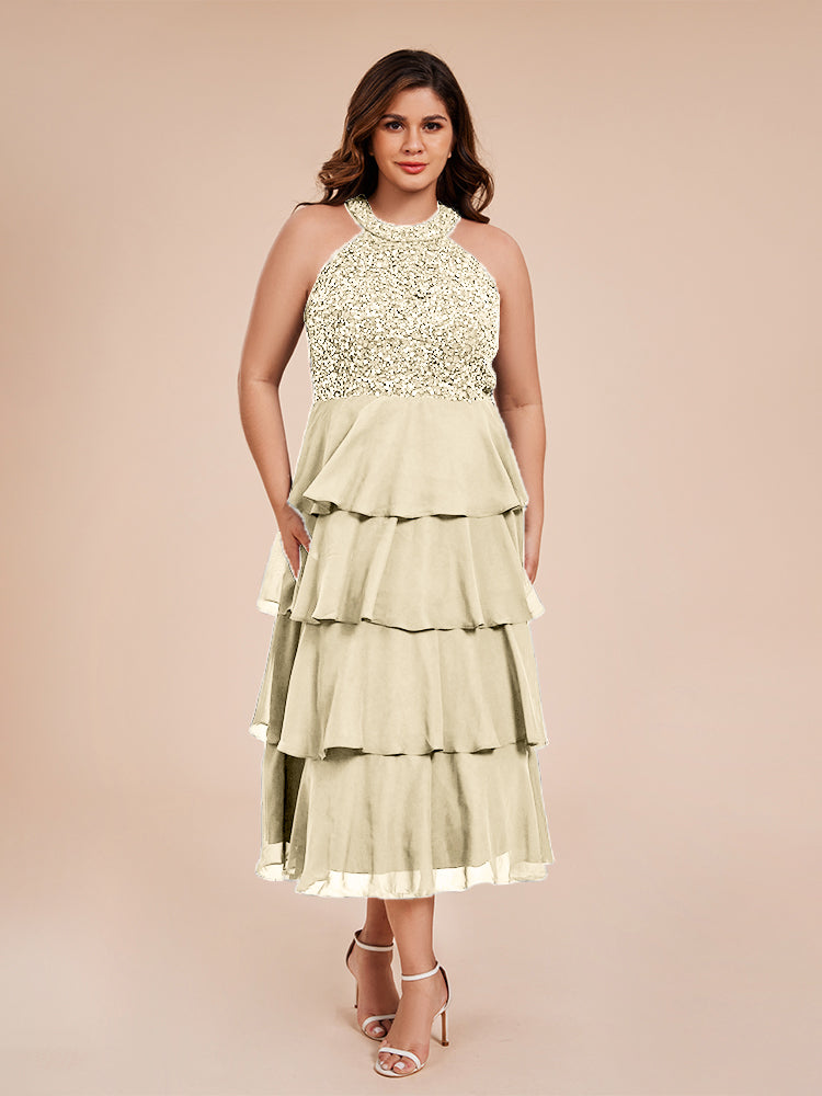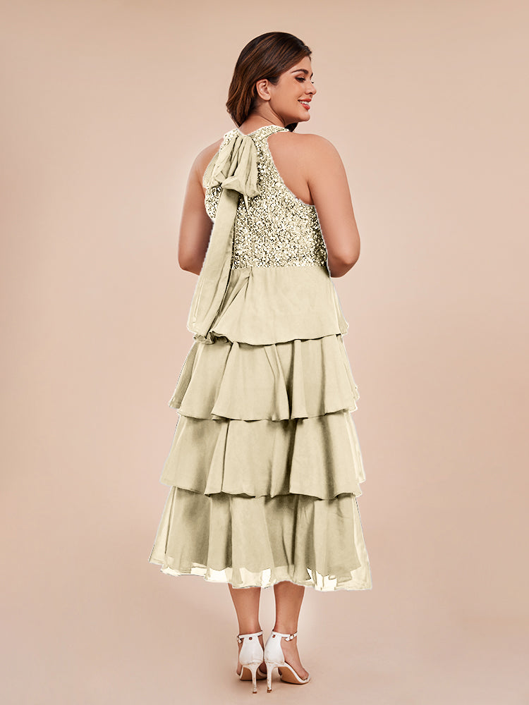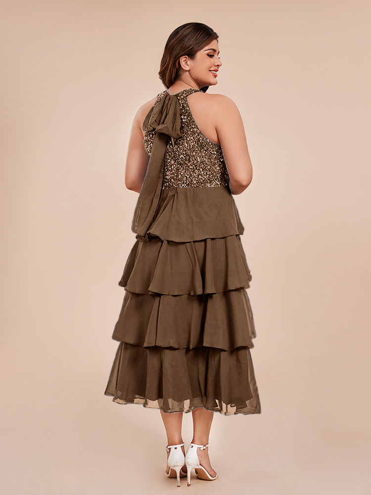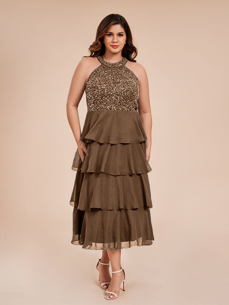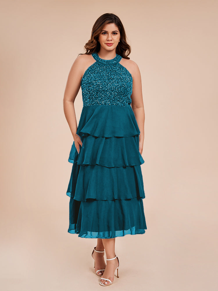 A Line Halter Delicate Beaded Top Layered Chiffon Mutter der Braut Kleid