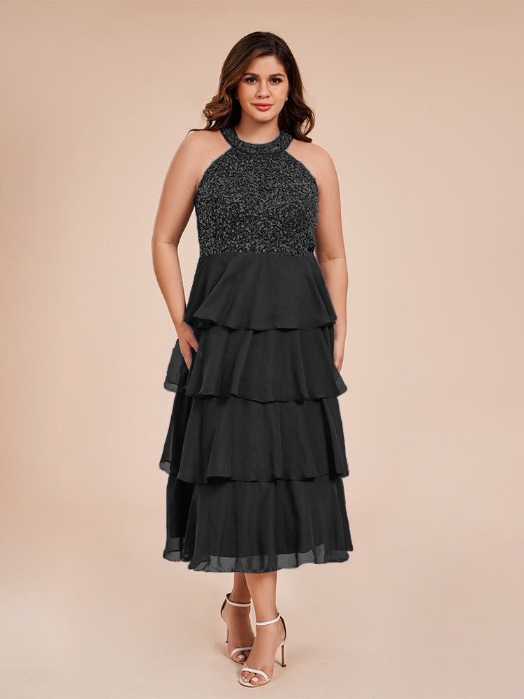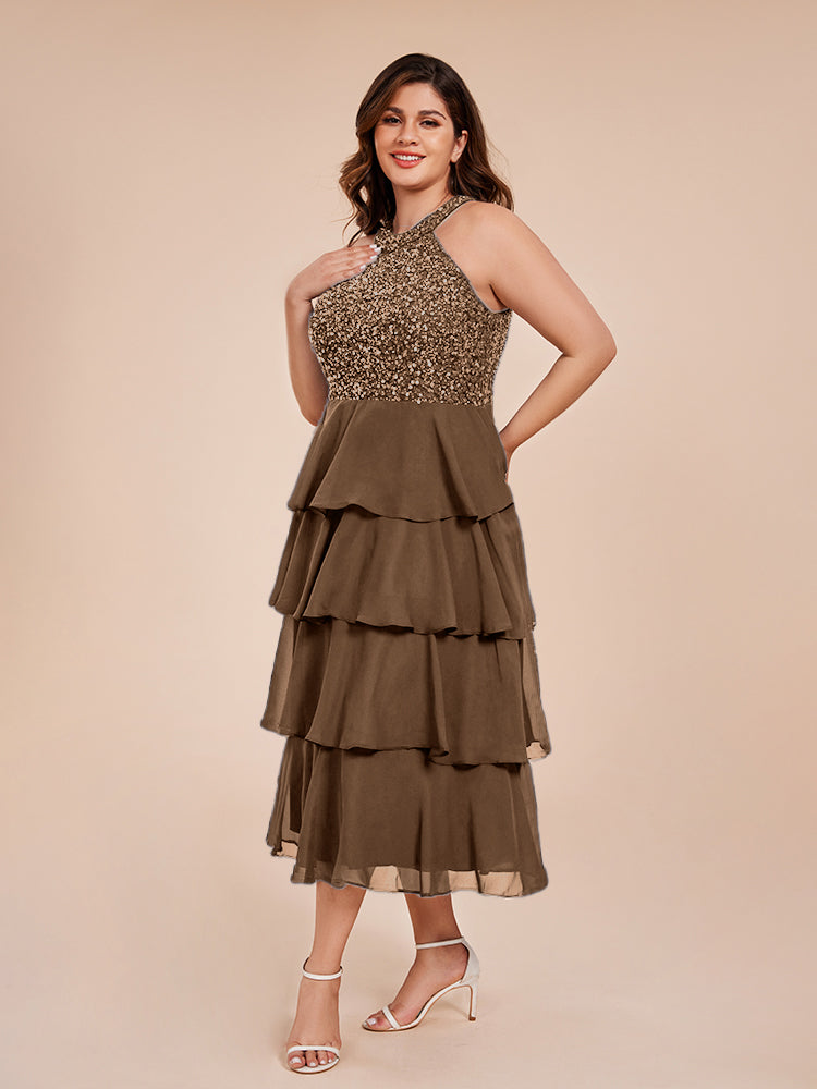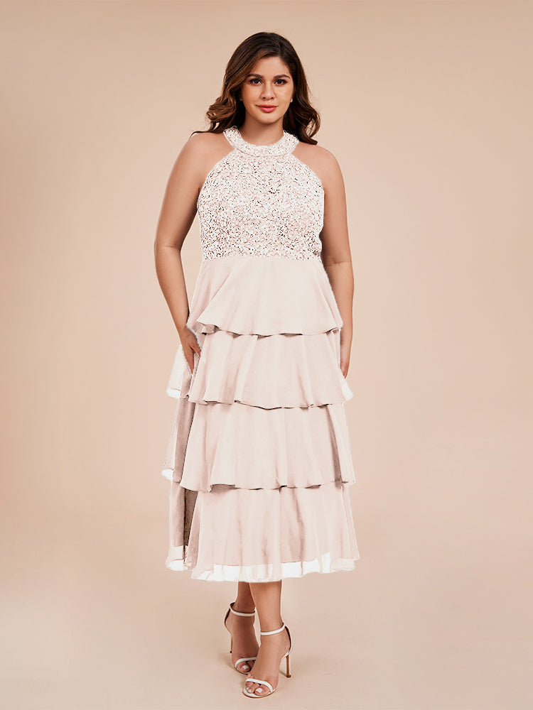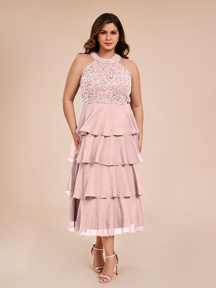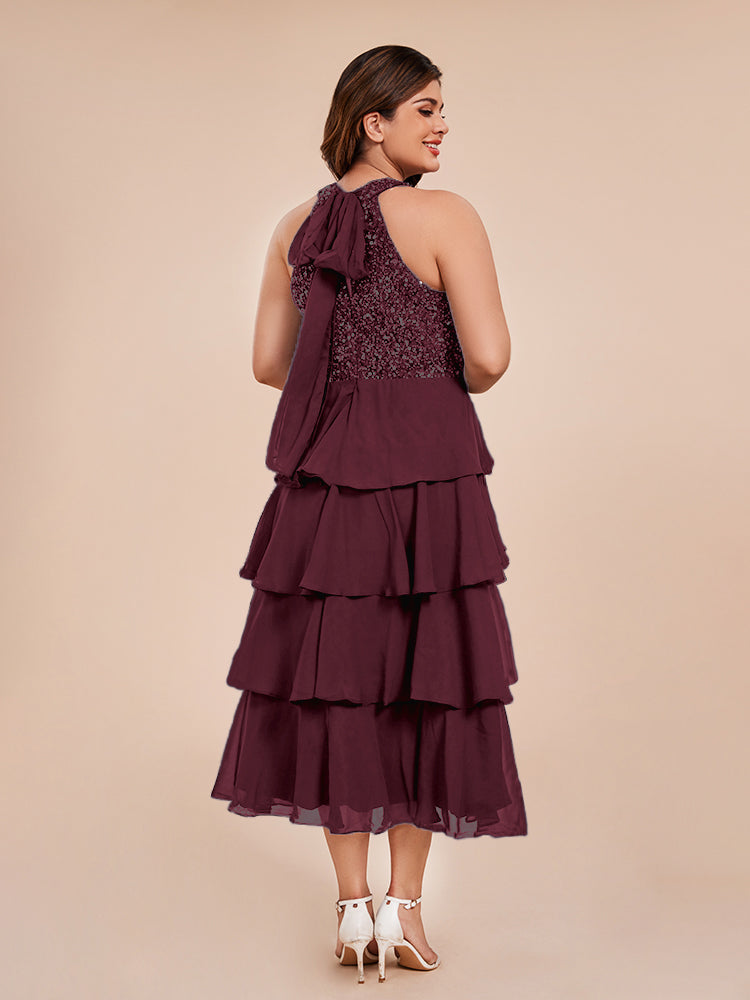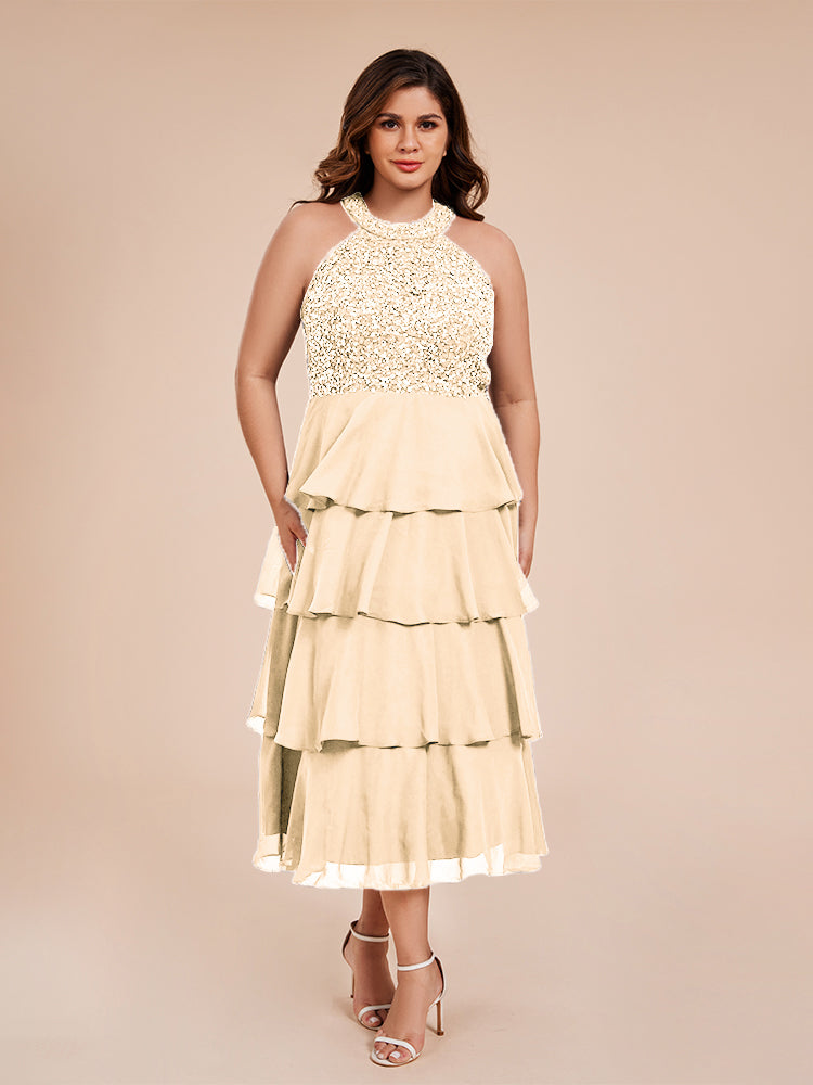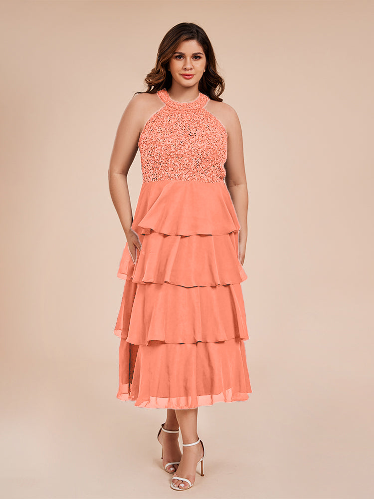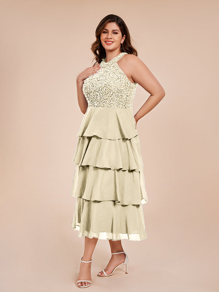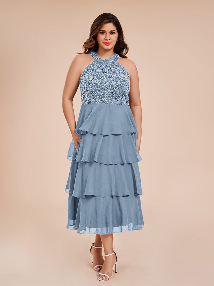 A Line Halter Delicate Beaded Top Layered Chiffon Mutter der Braut Kleid