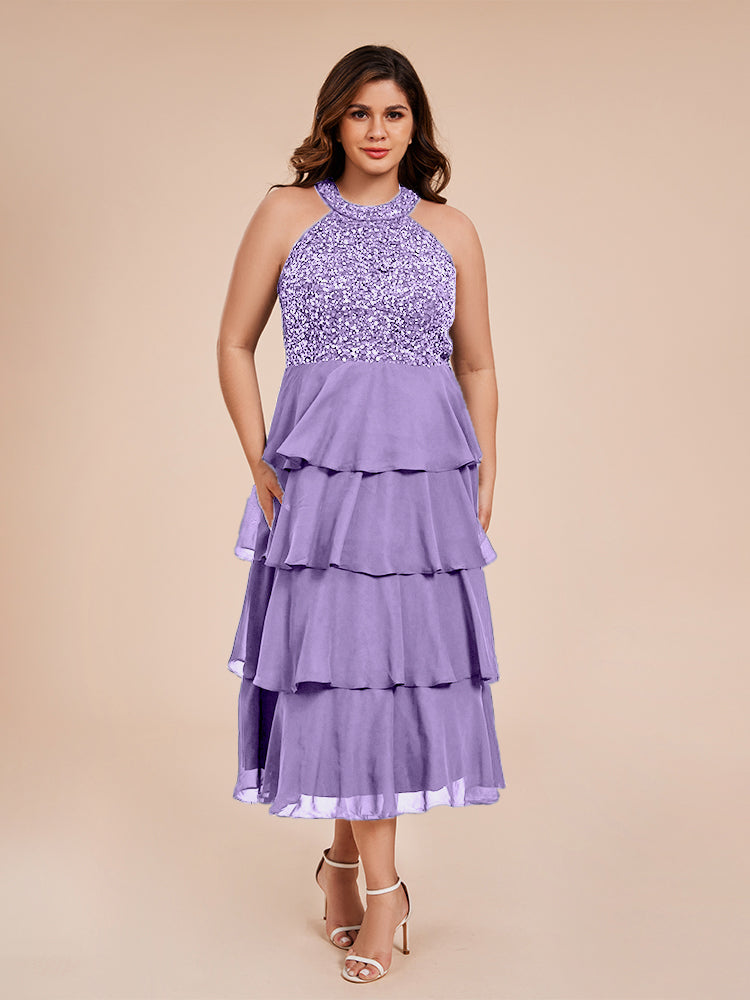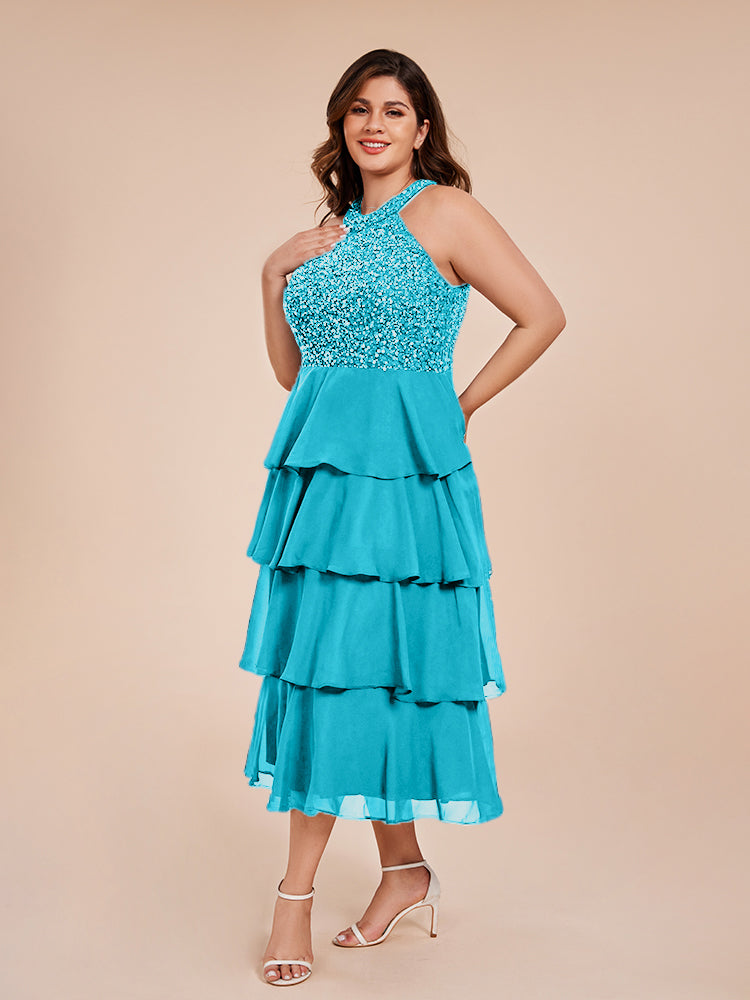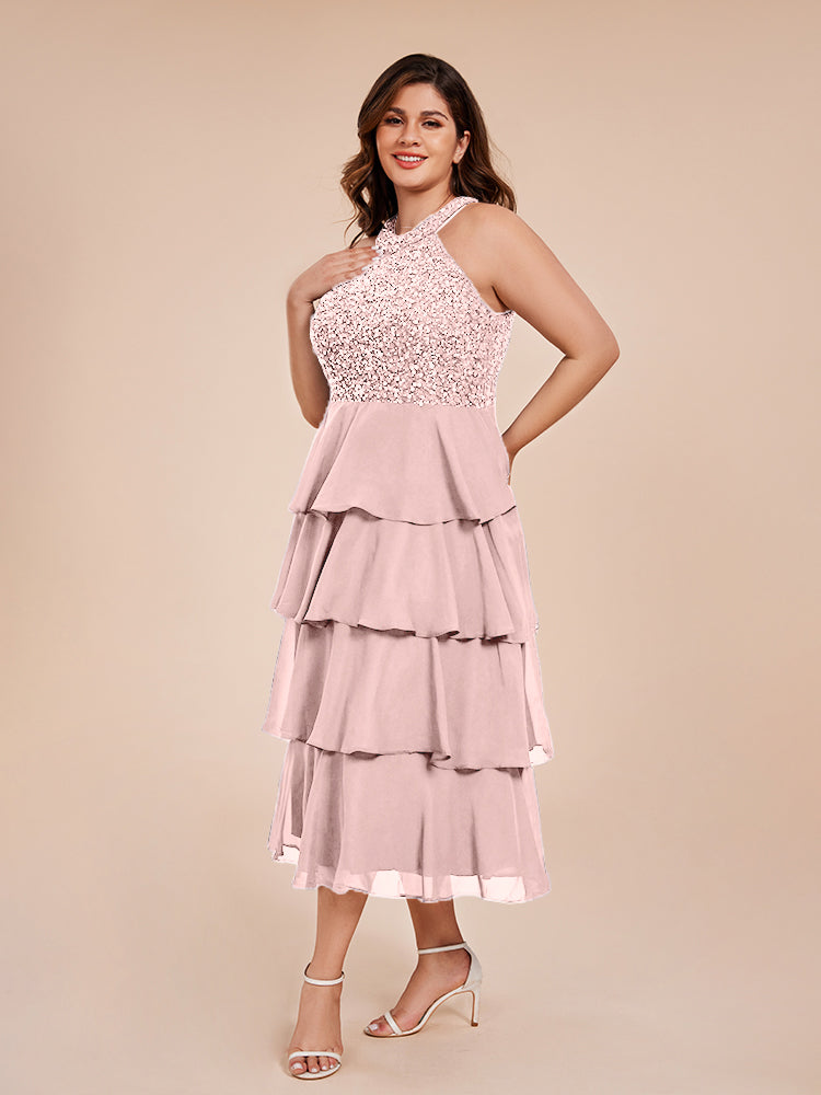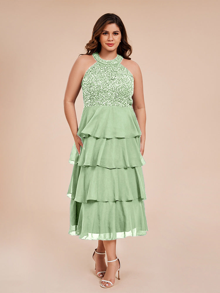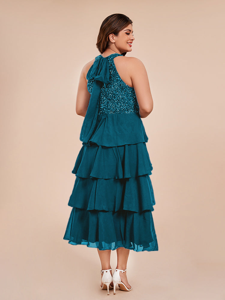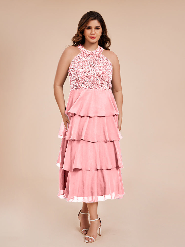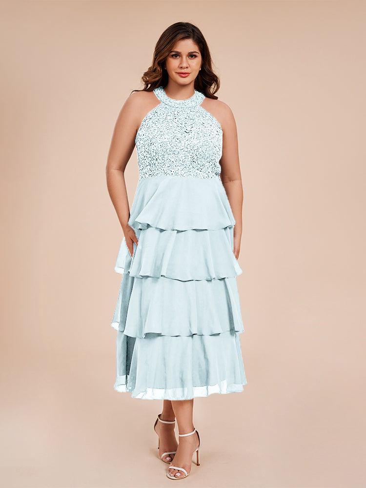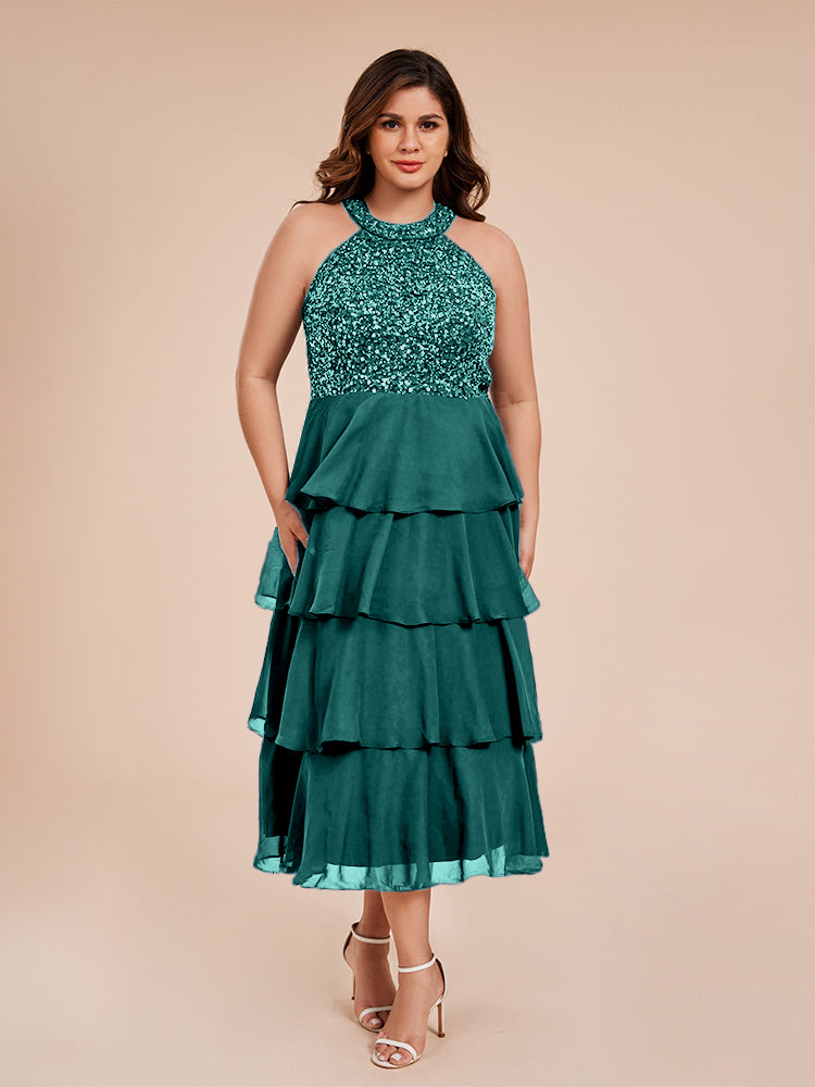 A Line Halter Delicate Beaded Top Layered Chiffon Mutter der Braut Kleid