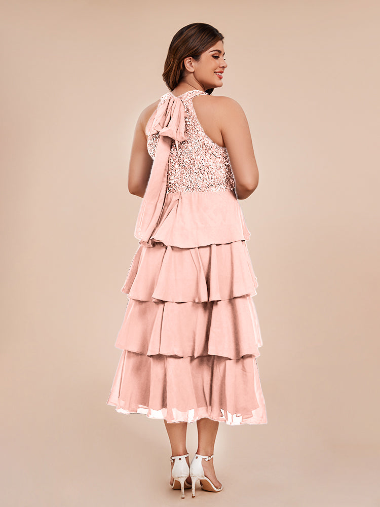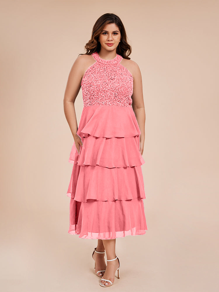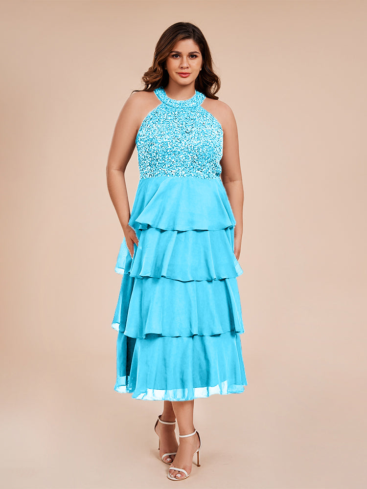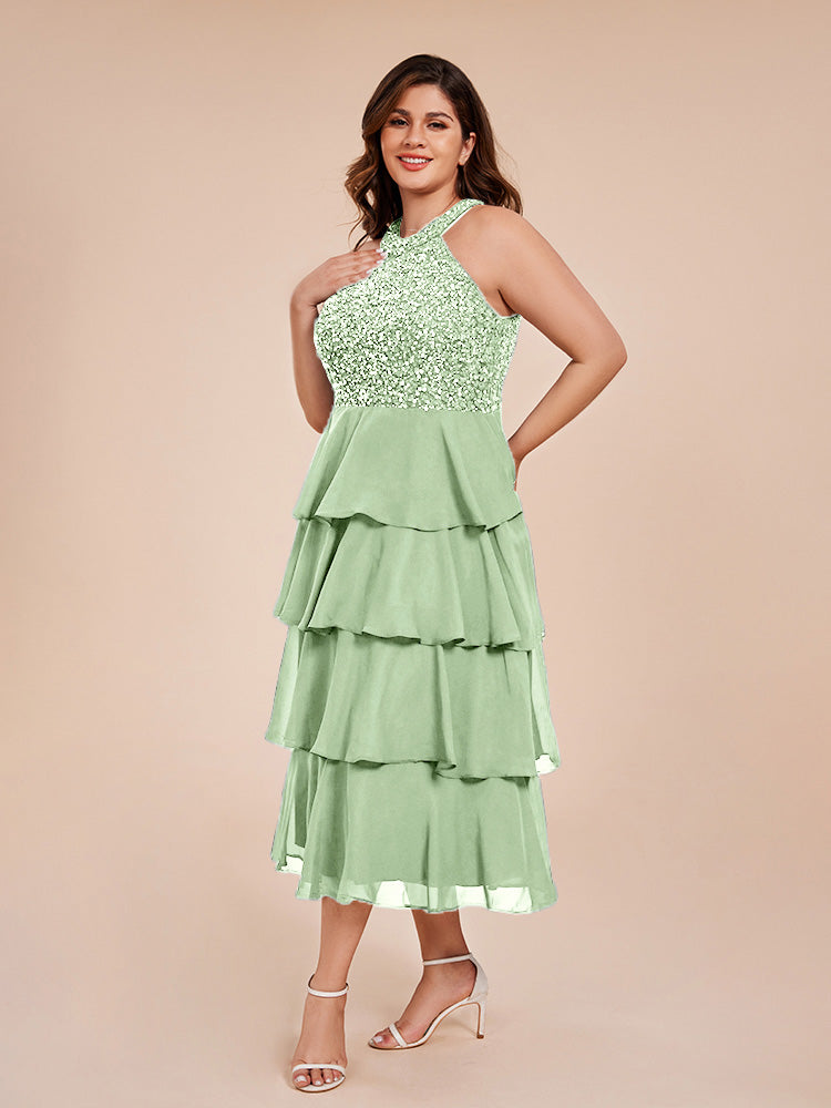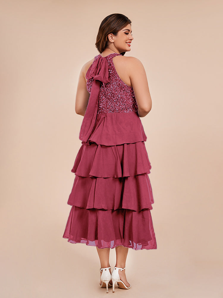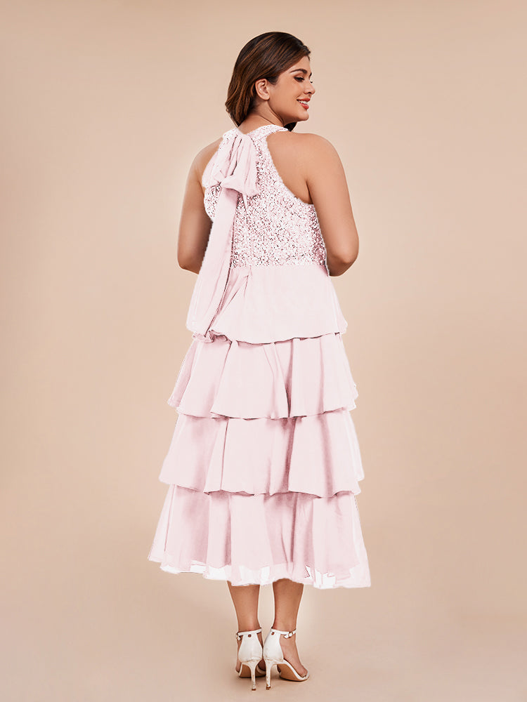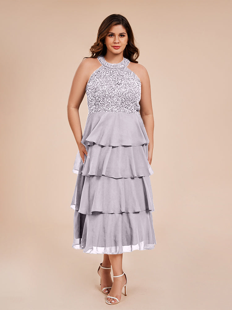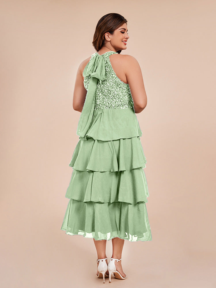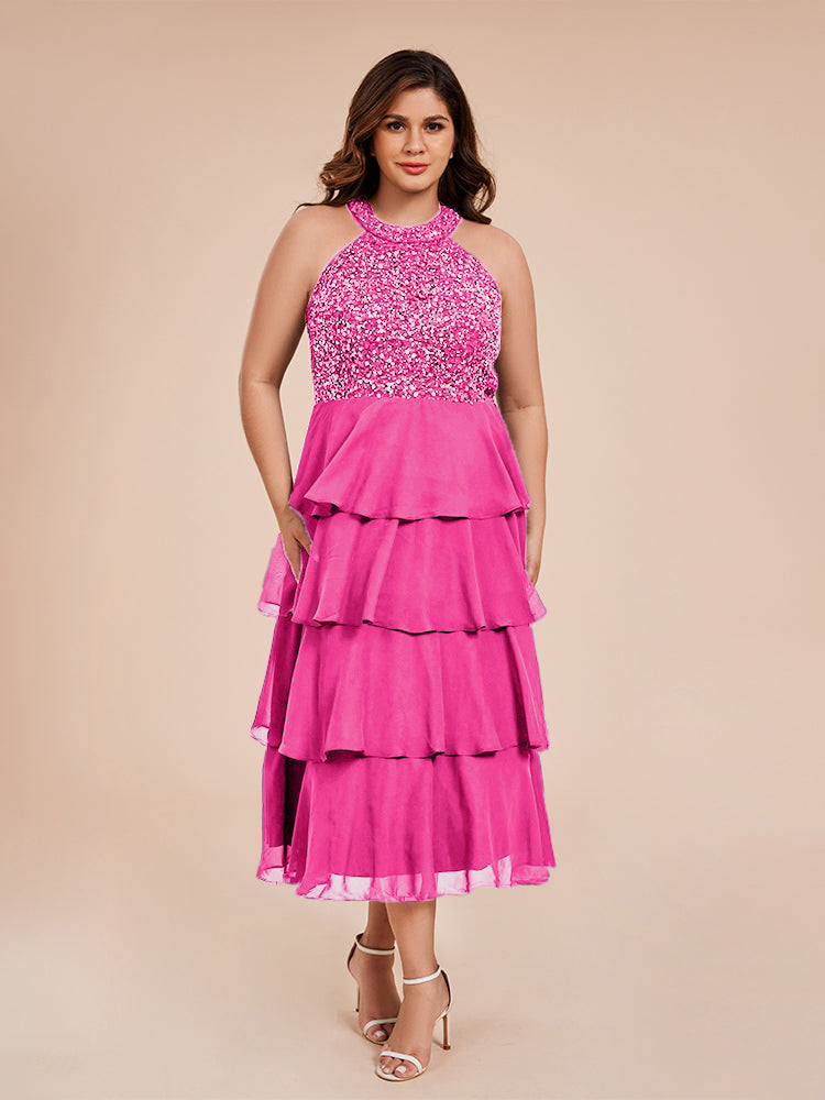 A Line Halter Delicate Beaded Top Layered Chiffon Mutter der Braut Kleid