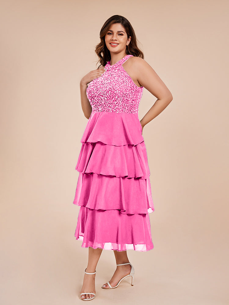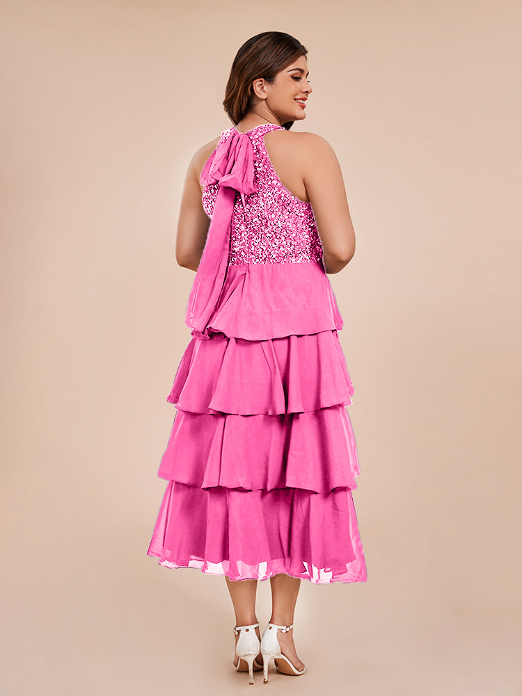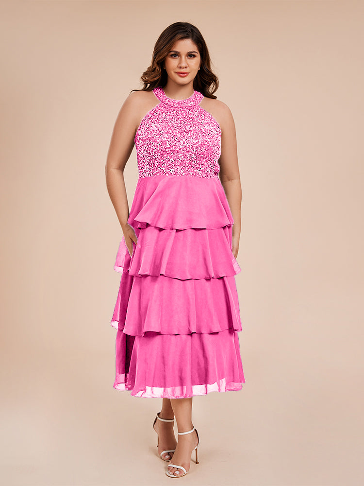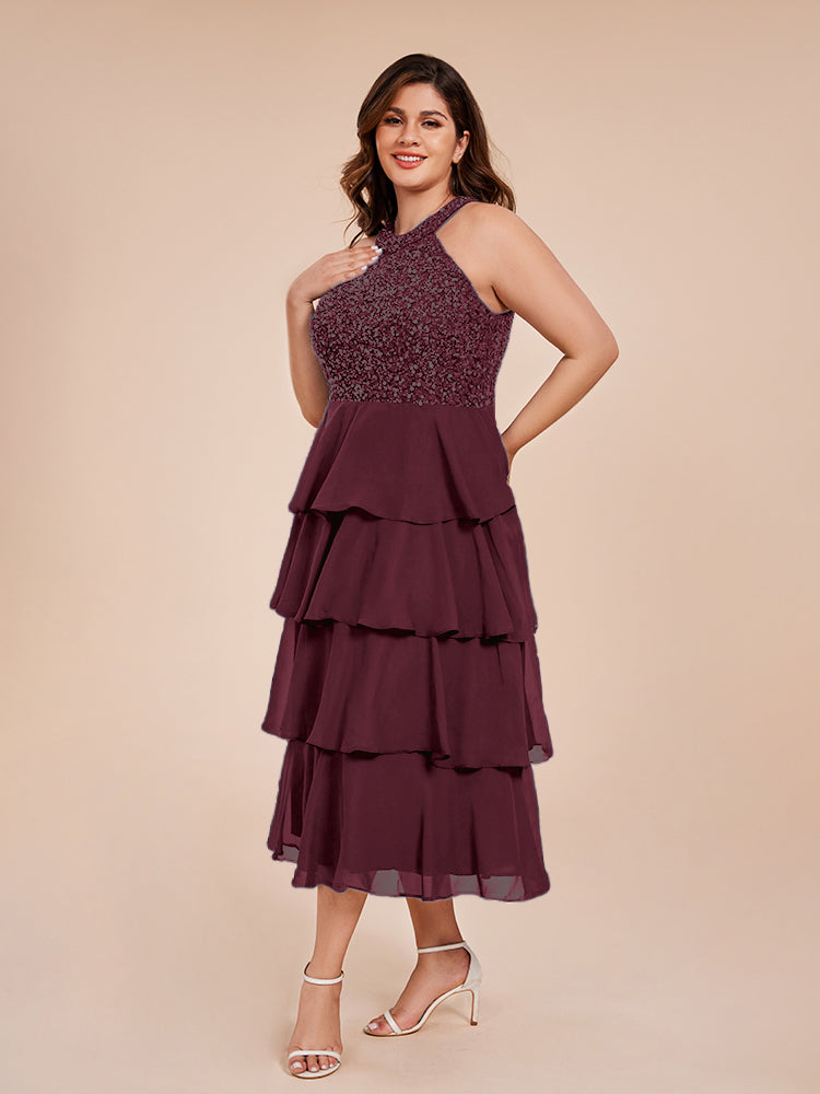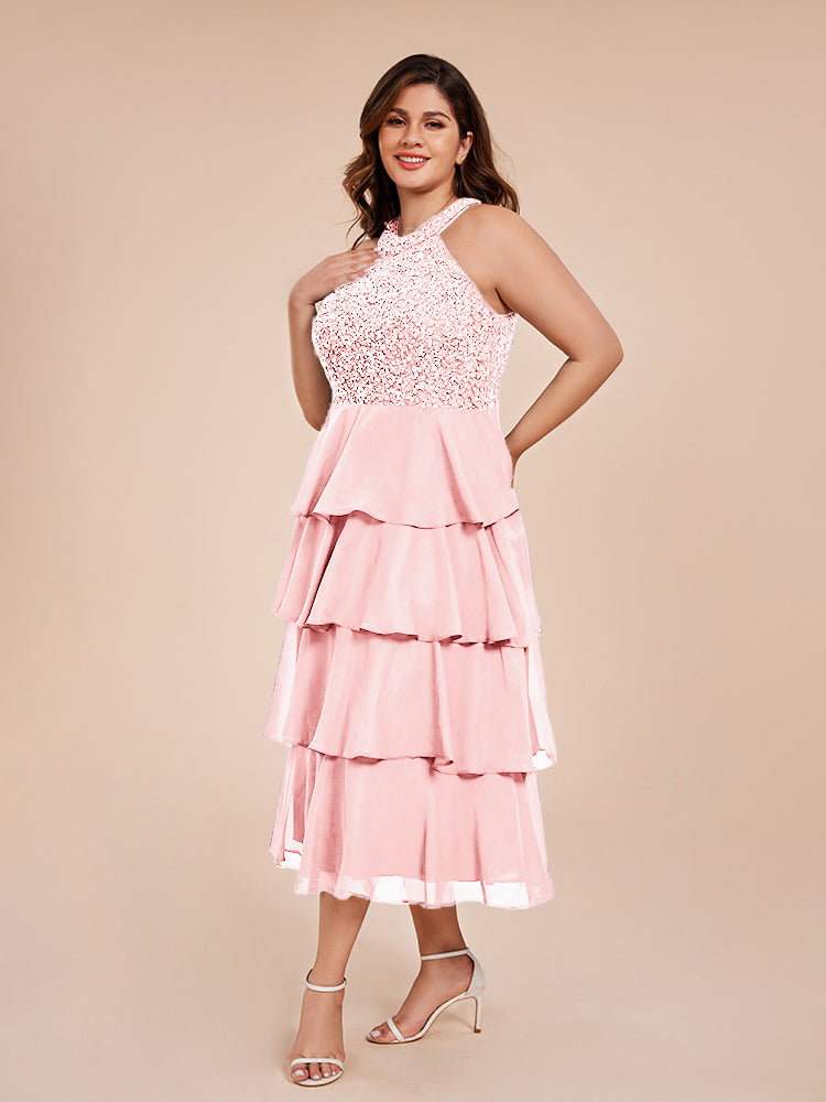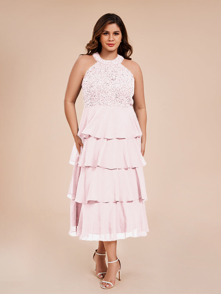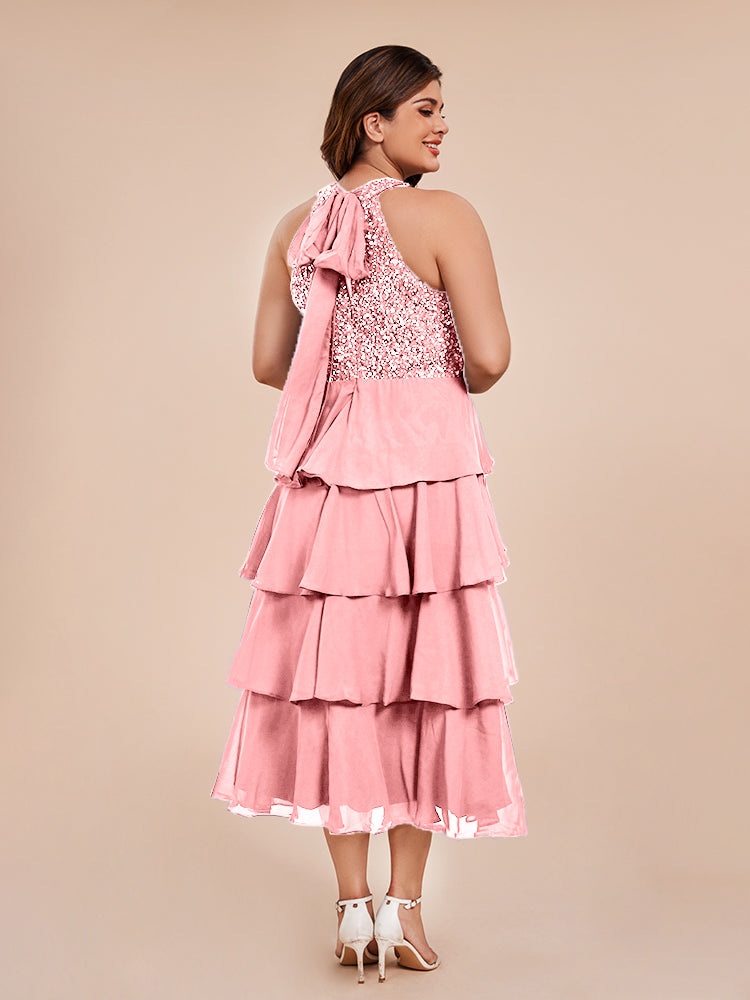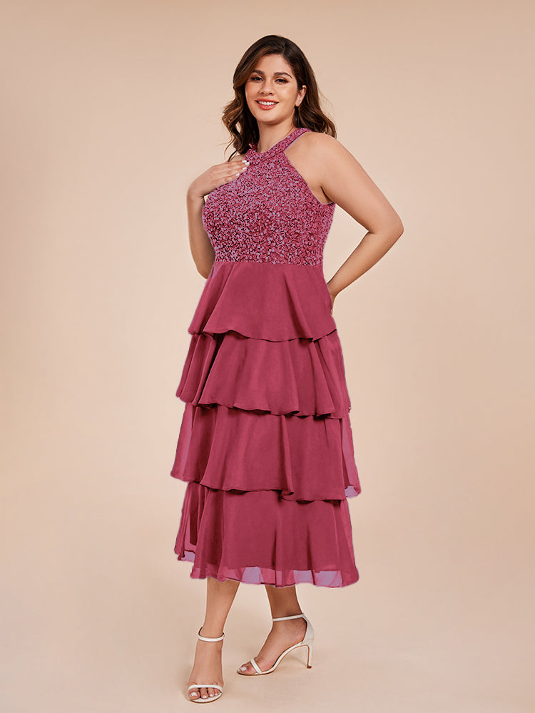 A Line Halter Delicate Beaded Top Layered Chiffon Mutter der Braut Kleid