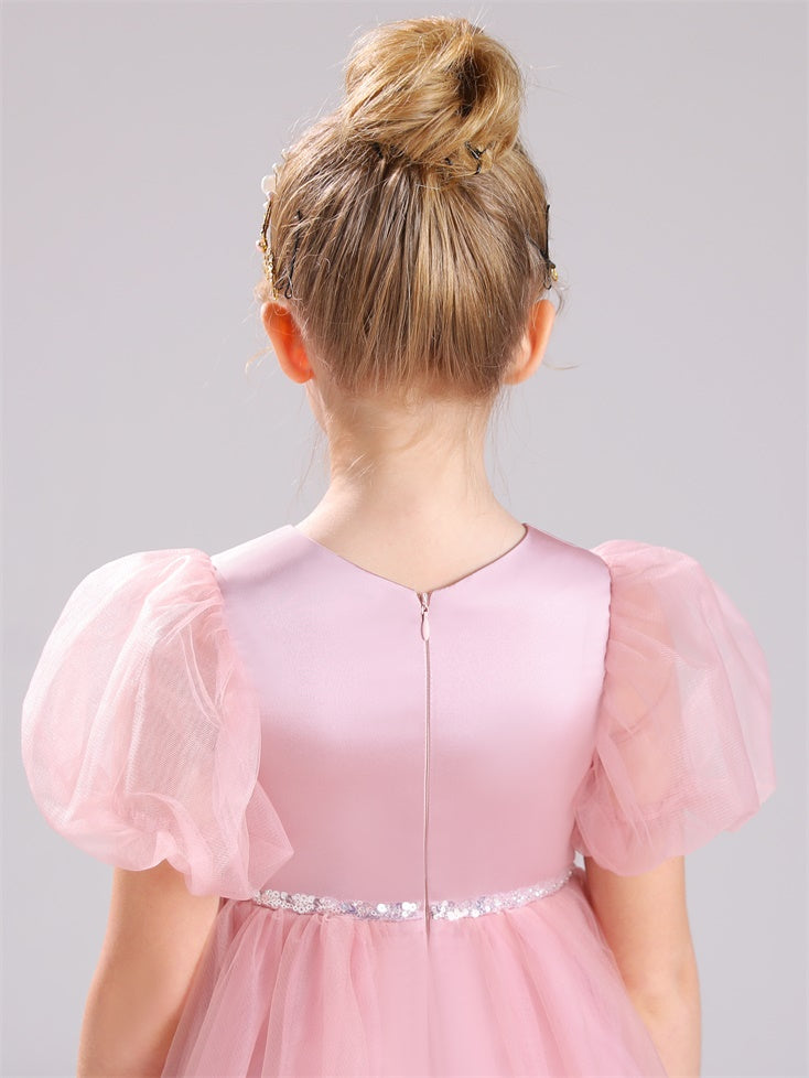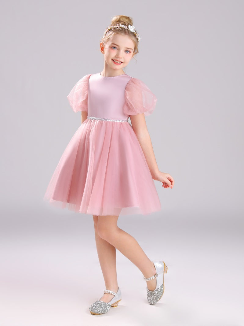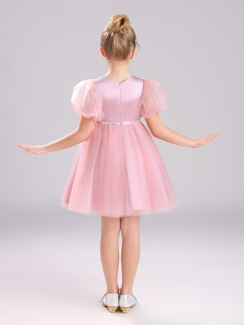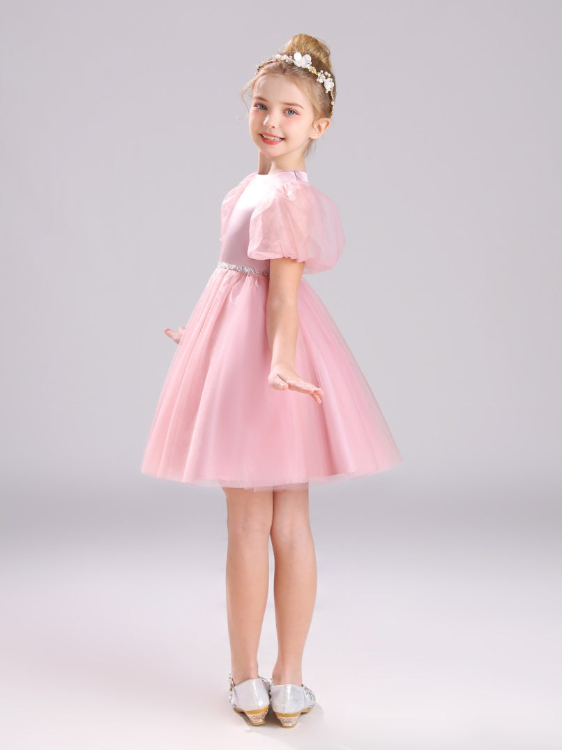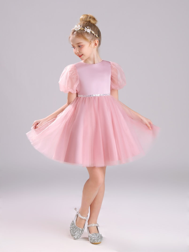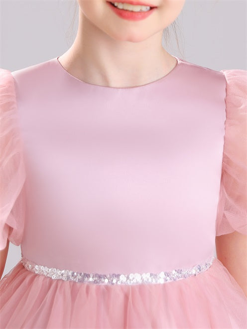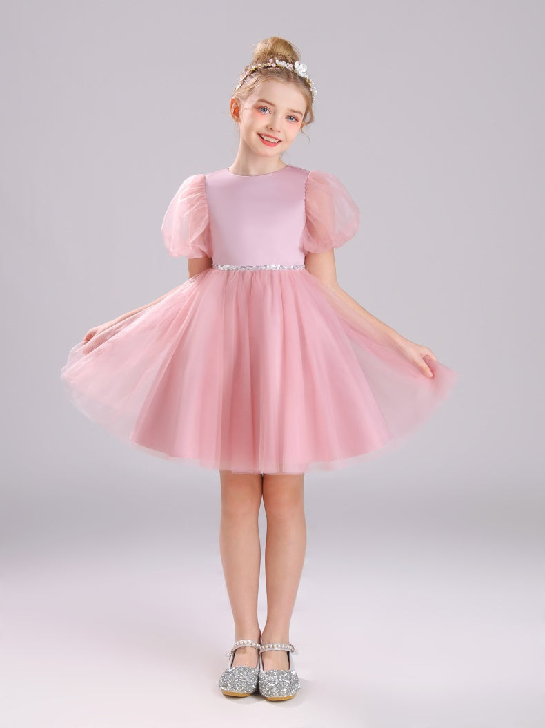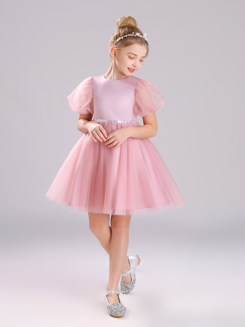 Dieses exquisite Satin-Blumenmädchenkleid in A-Linie zeichnet sich durch fachmännisches Design und Handwerkskunst aus und vereint Mode und Komfort. Die elegante Schleife und die Juwelenverzierungen verleihen einen Hauch von Raffinesse, während der knielange Schnitt für mühelose Bewegung sorgt. Ihr Blumenmädchen wird Selbstvertrauen und Anmut in diesem erstklassigen, modischen Kleid ausstrahlen.