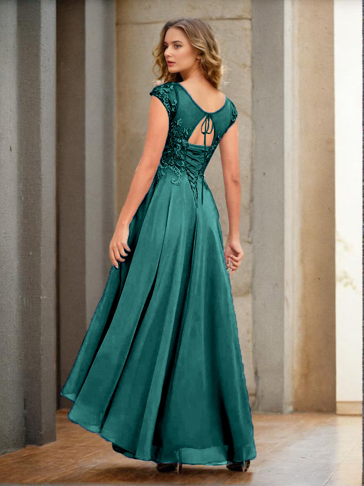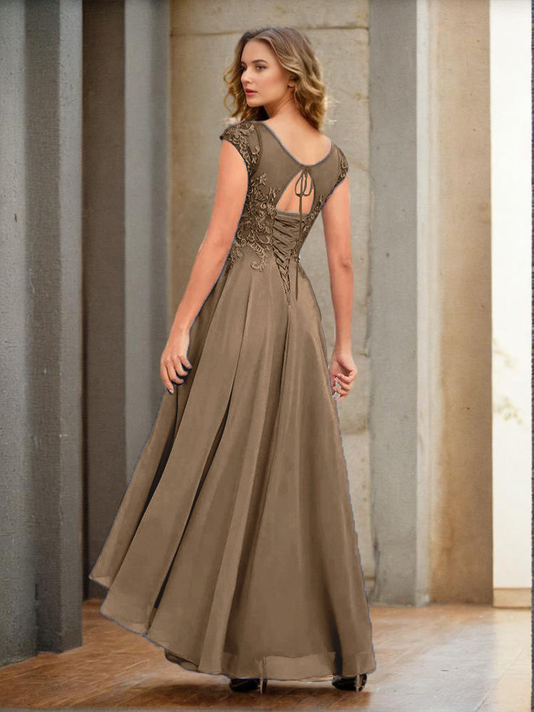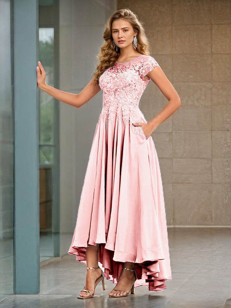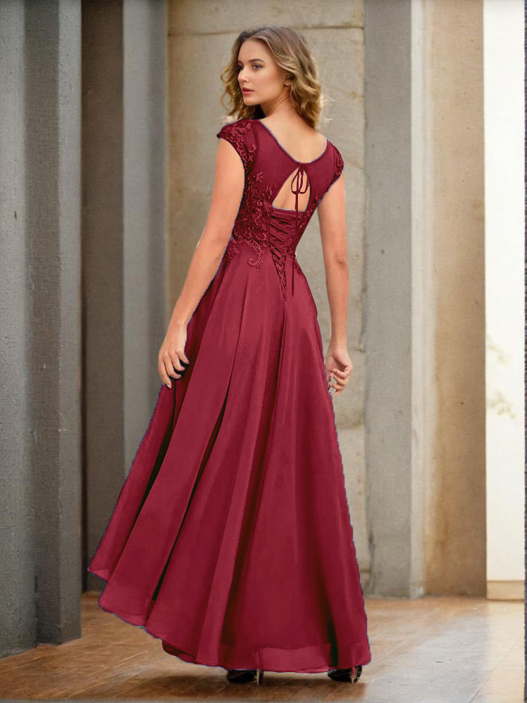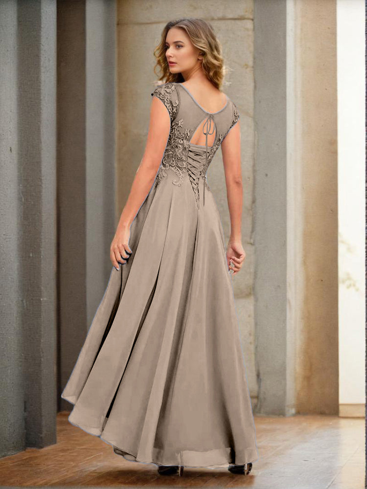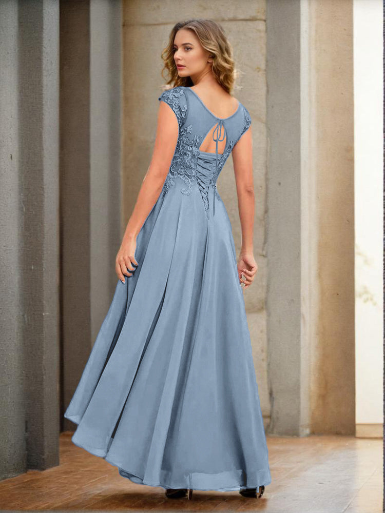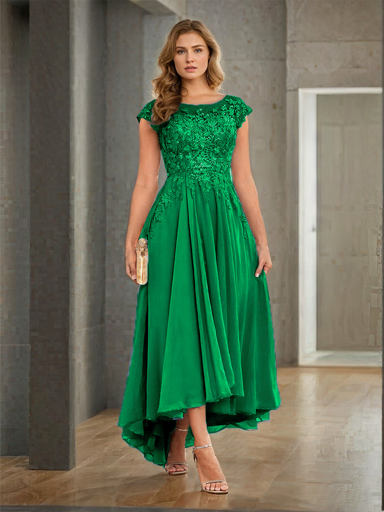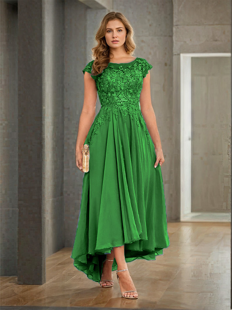 A-Linie Kappenärmel hoch niedrig Spitze Applikationen Chiffon Mutter der Braut Kleid