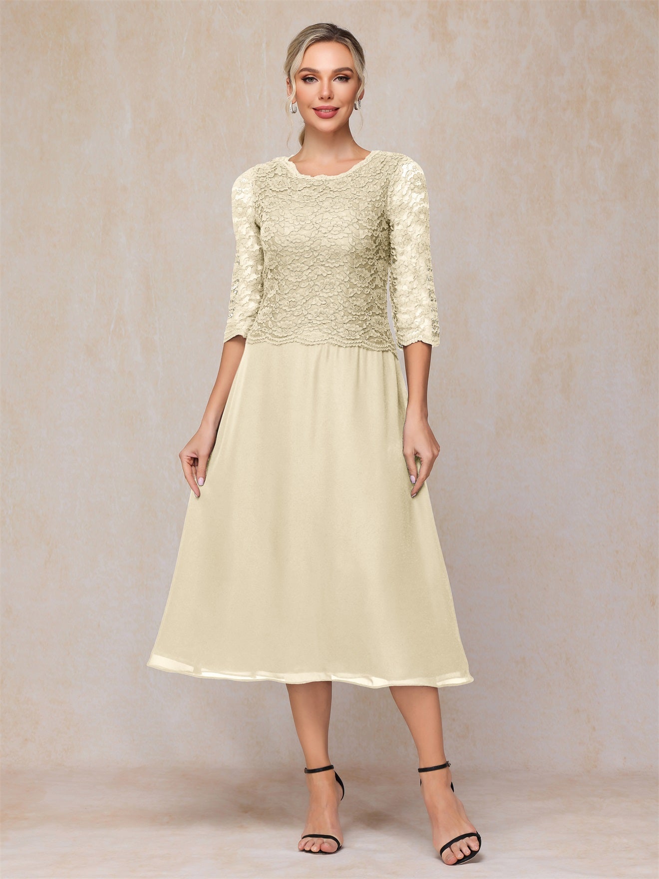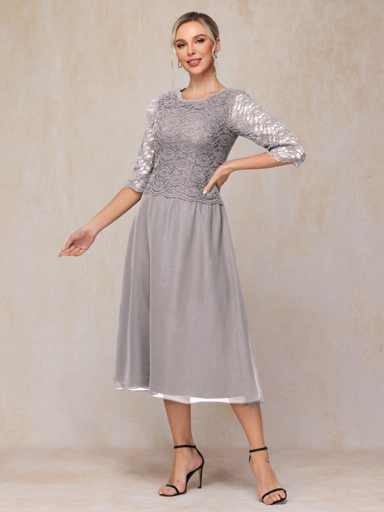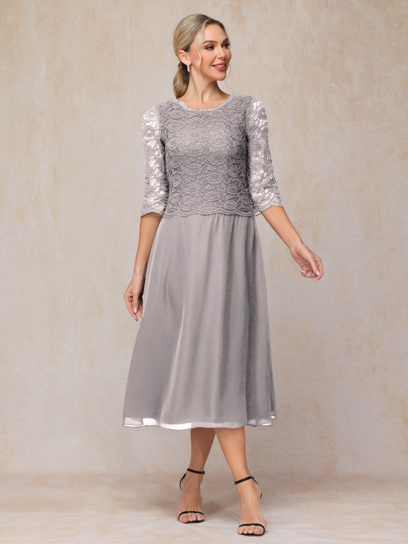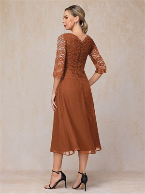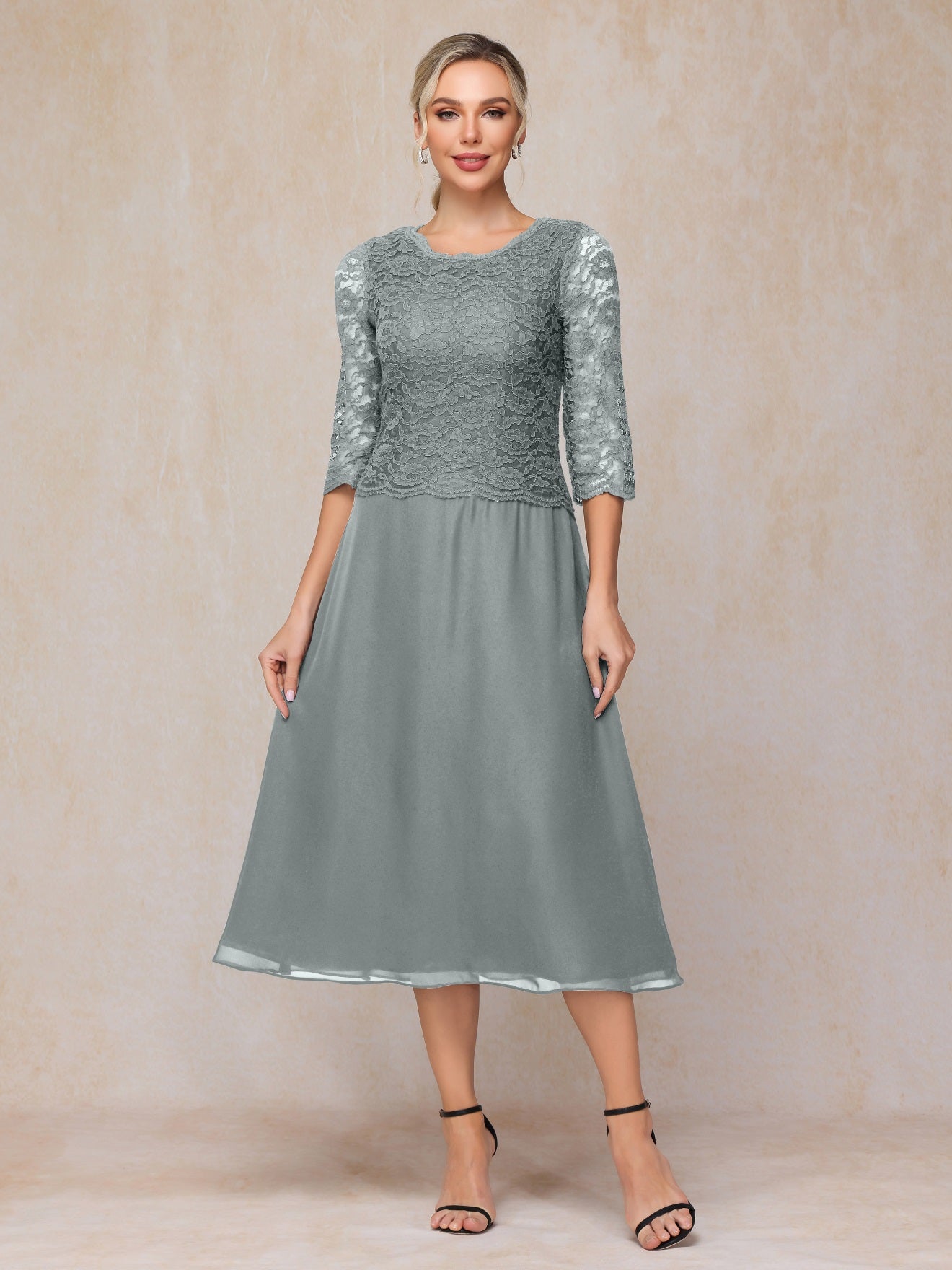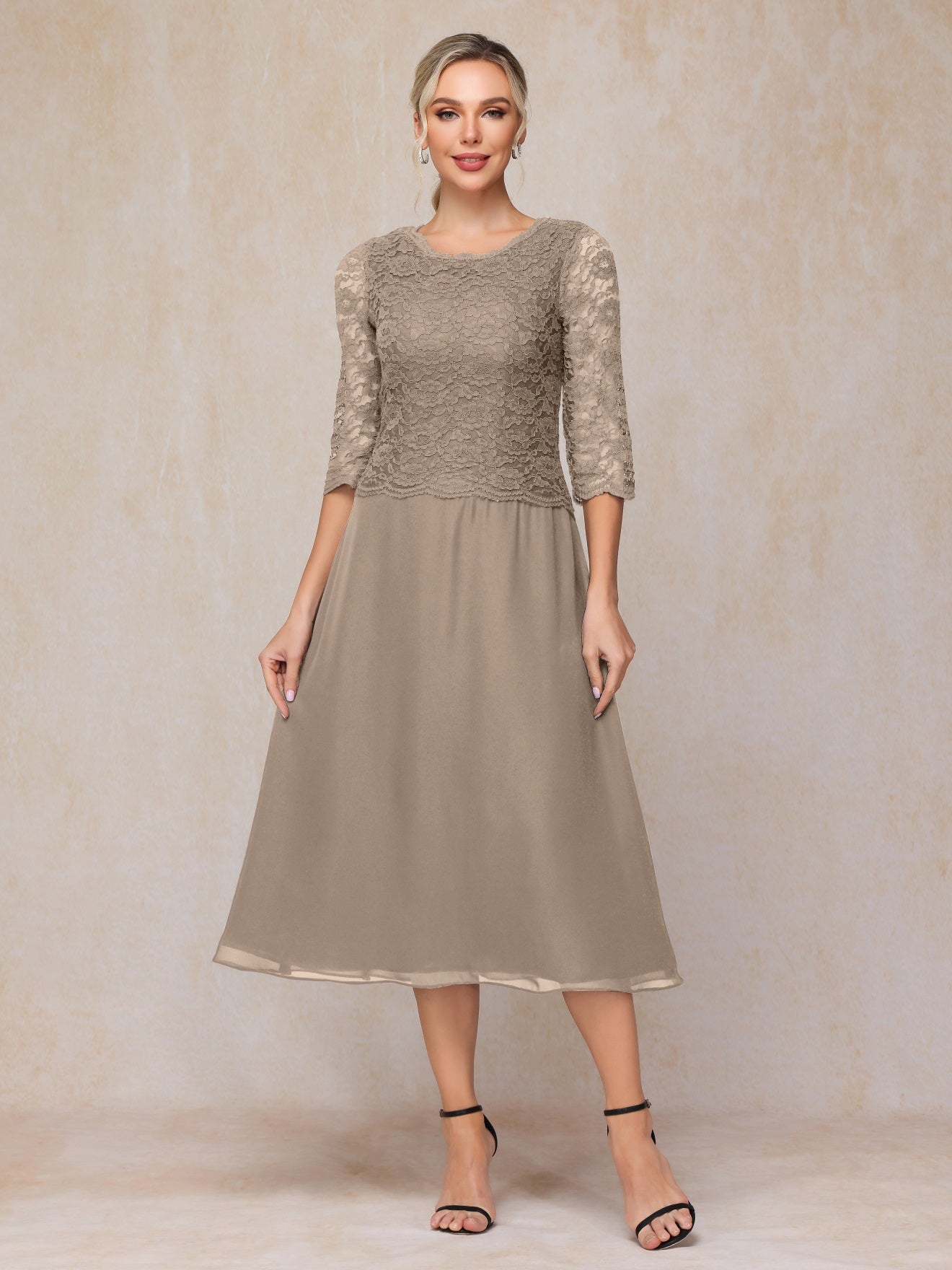 A-Linie Wadenlang Chiffon mit Spitze Brautmutterkleider