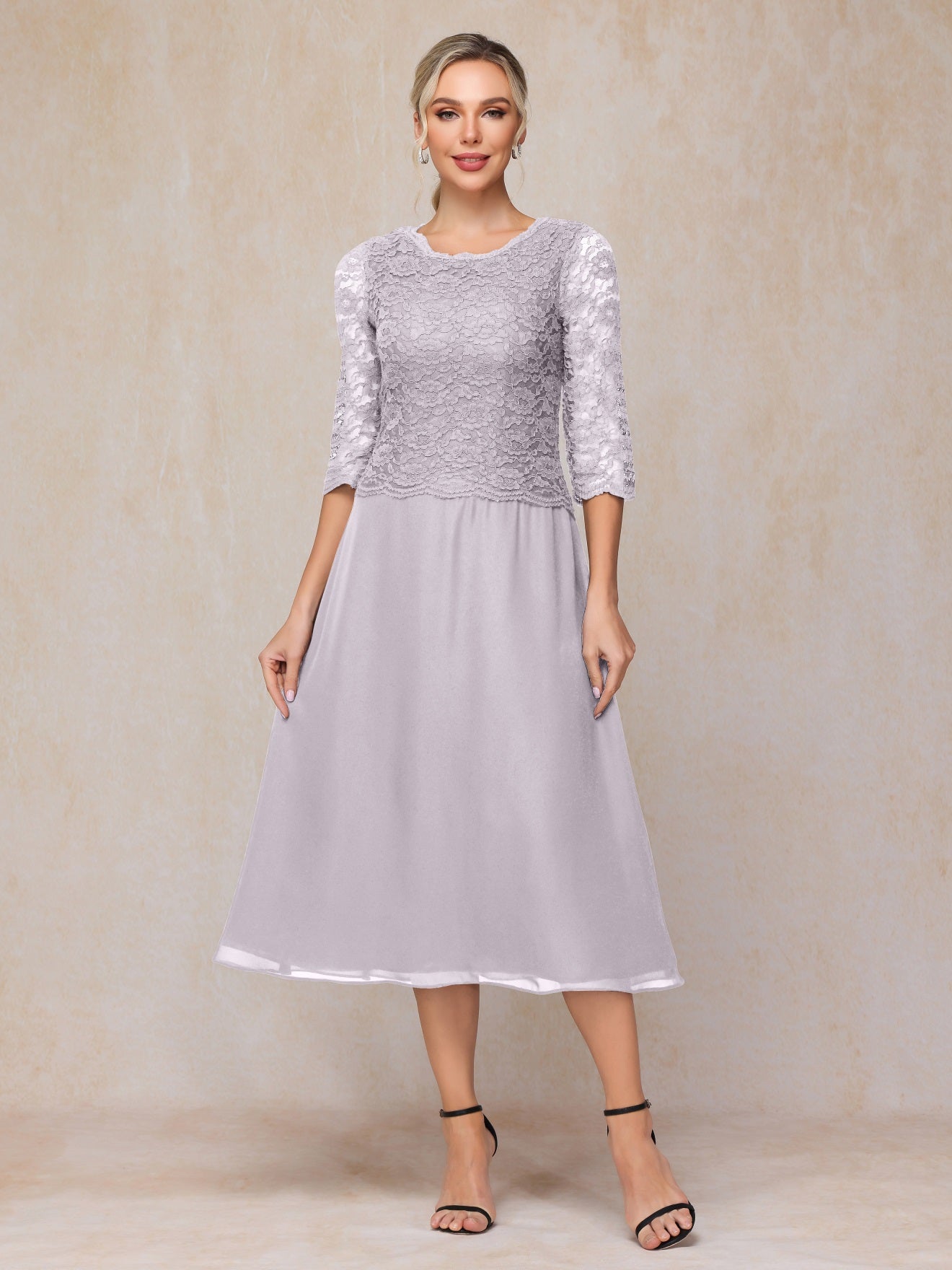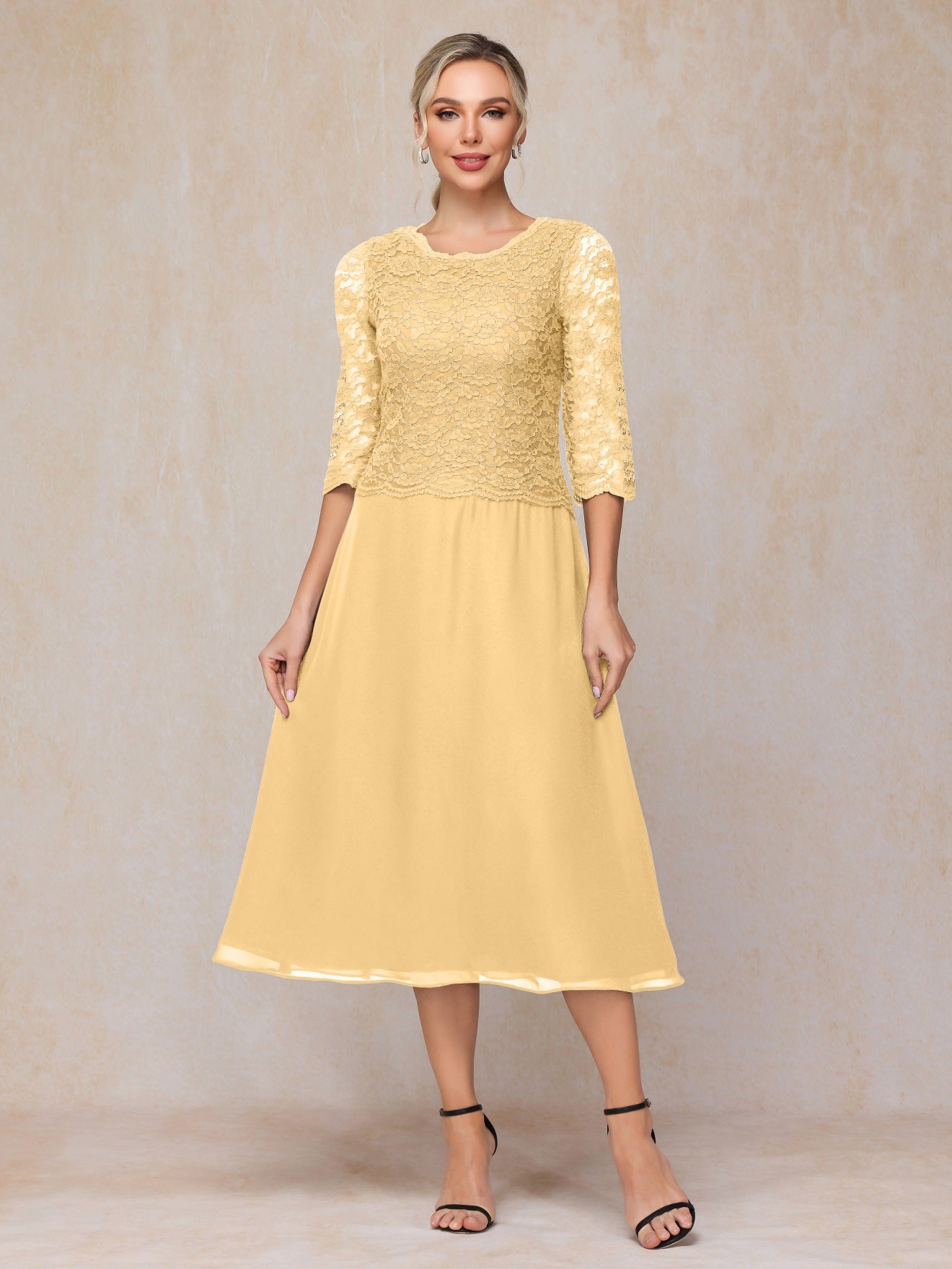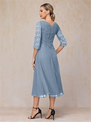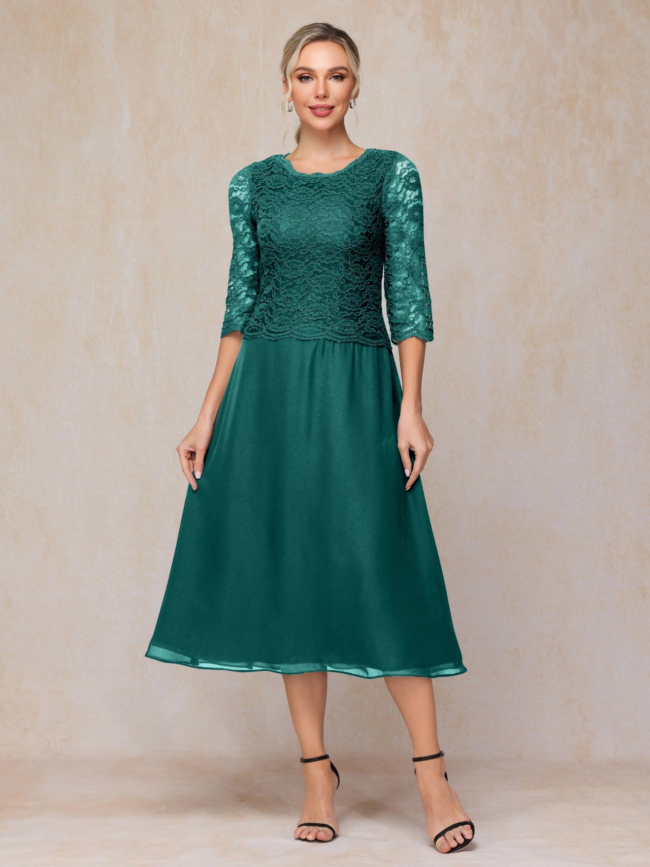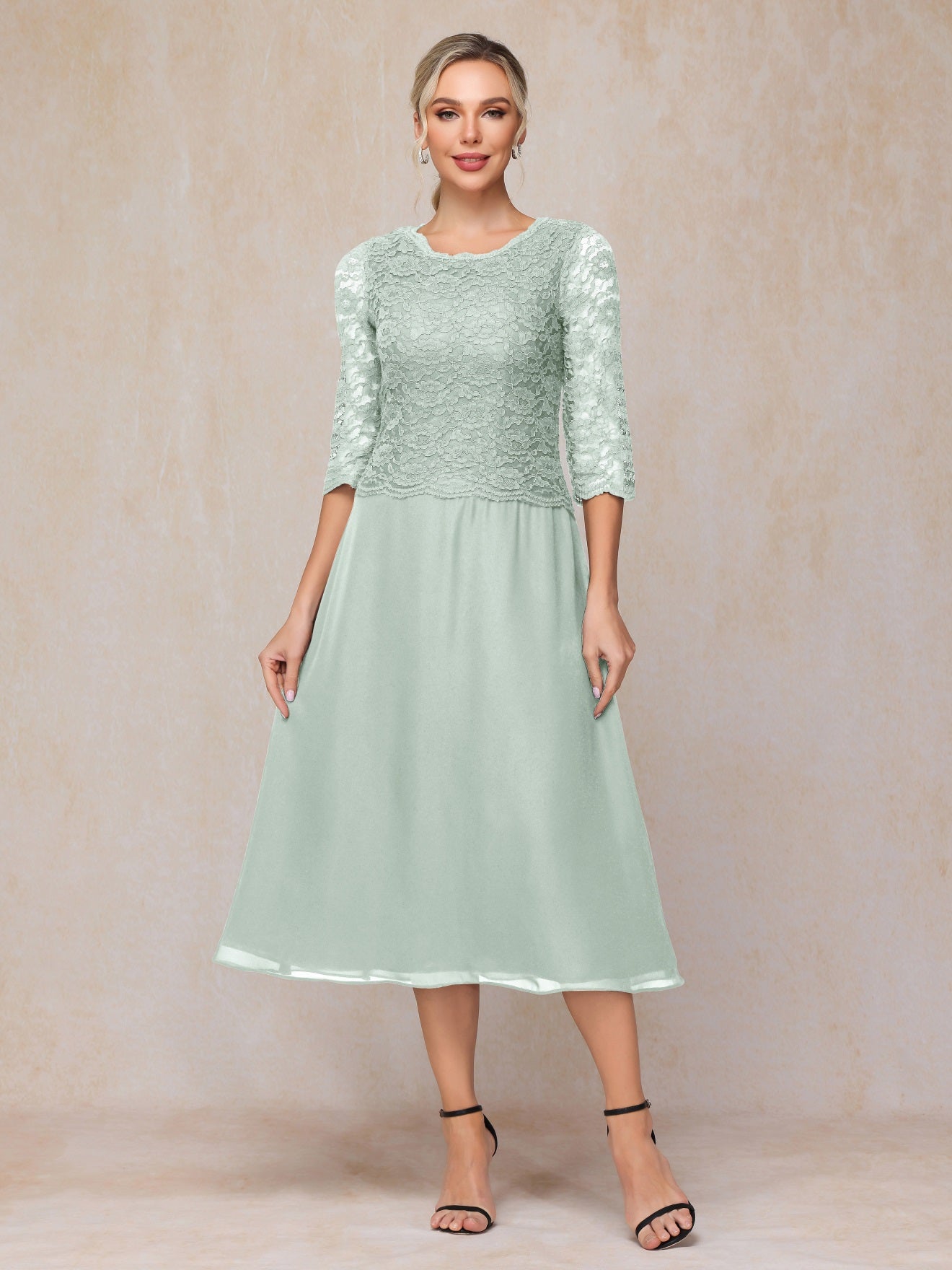 A-Linie Wadenlang Chiffon mit Spitze Brautmutterkleider