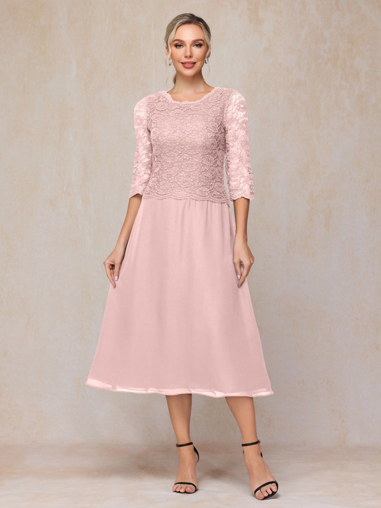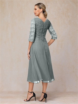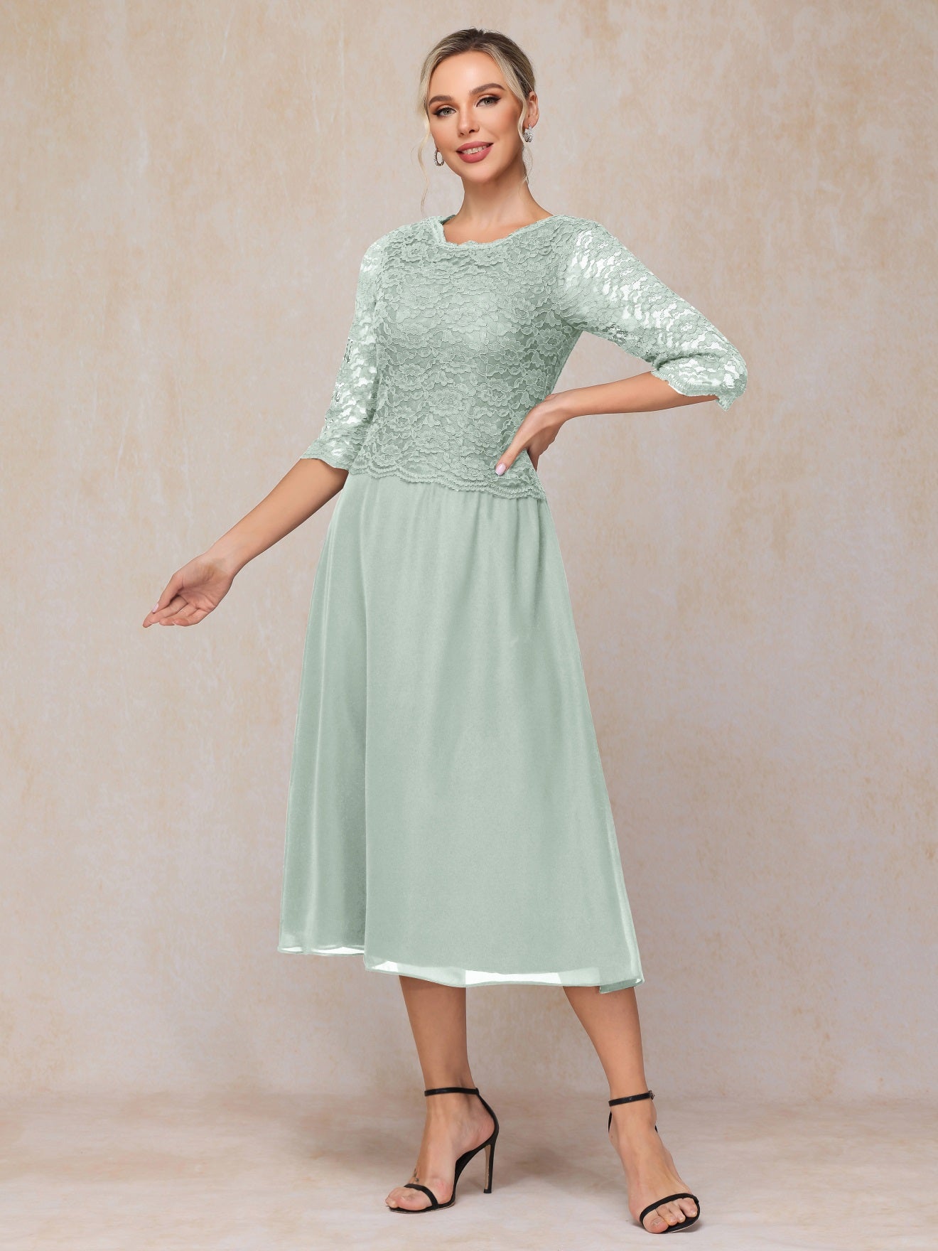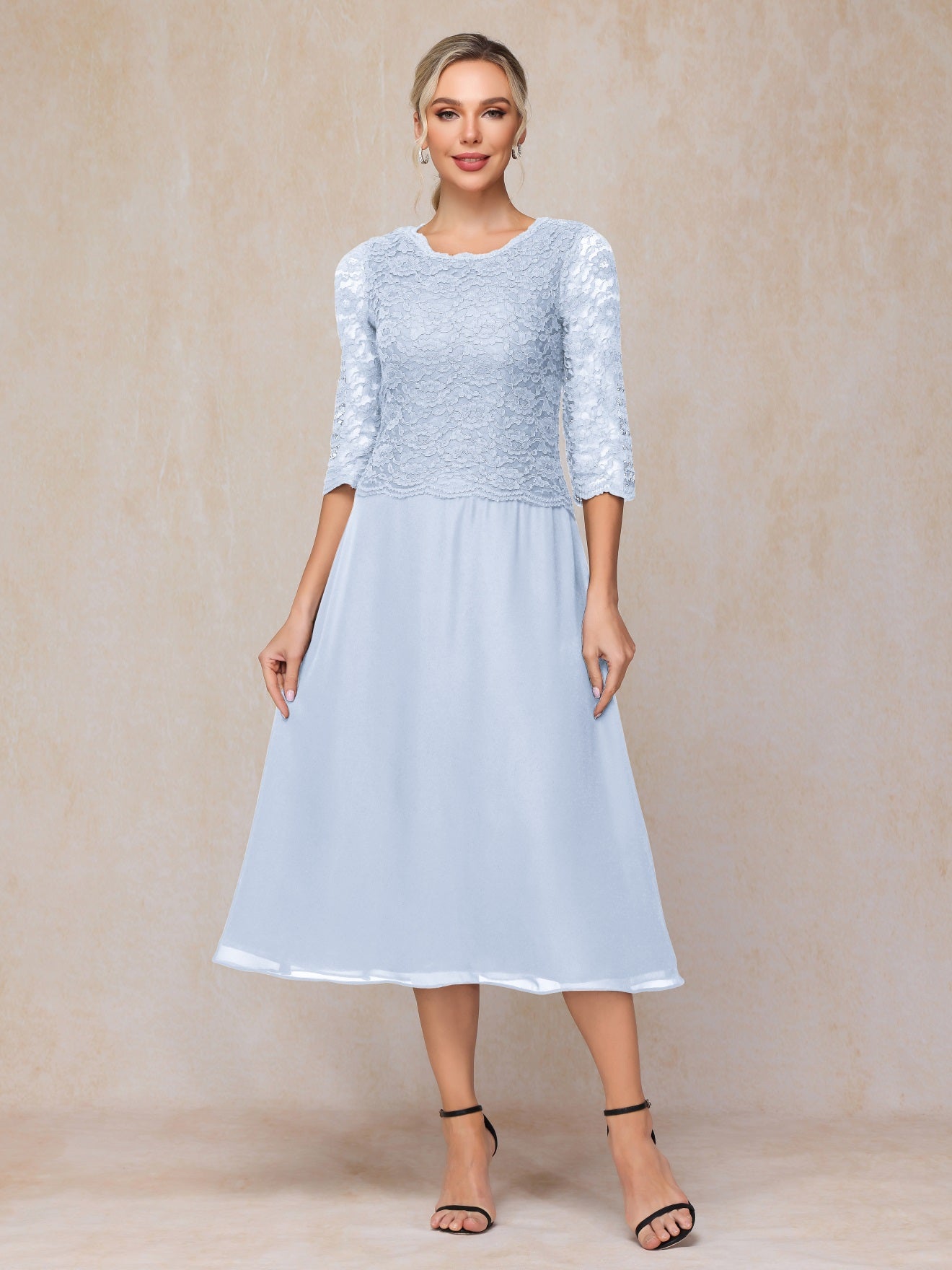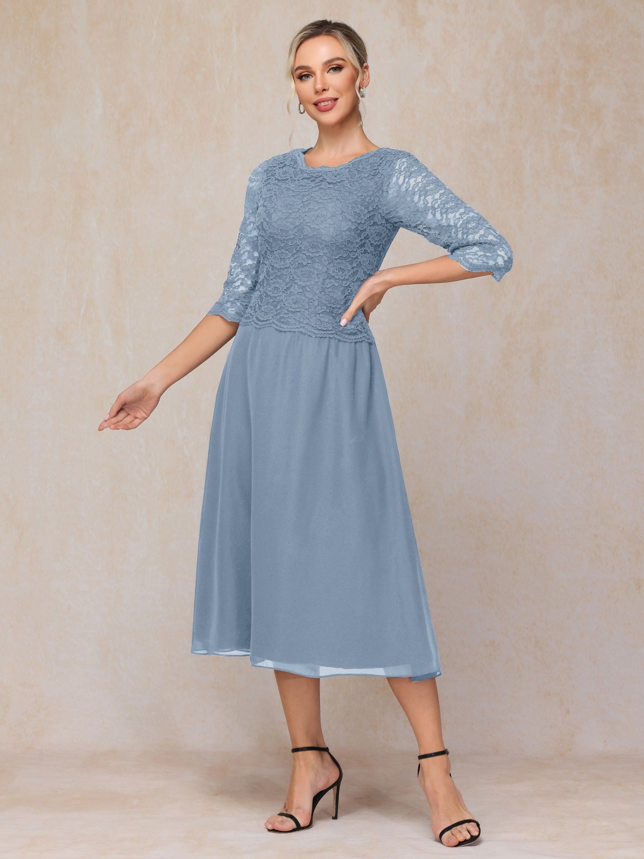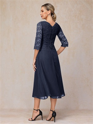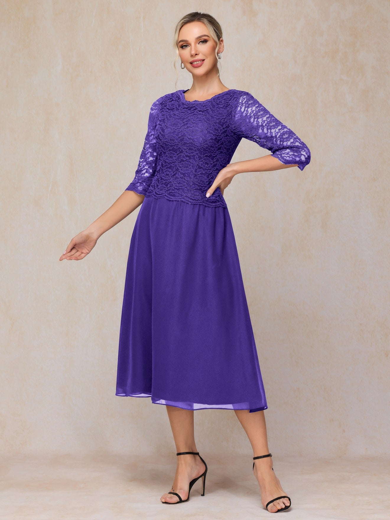 A-Linie Wadenlang Chiffon mit Spitze Brautmutterkleider