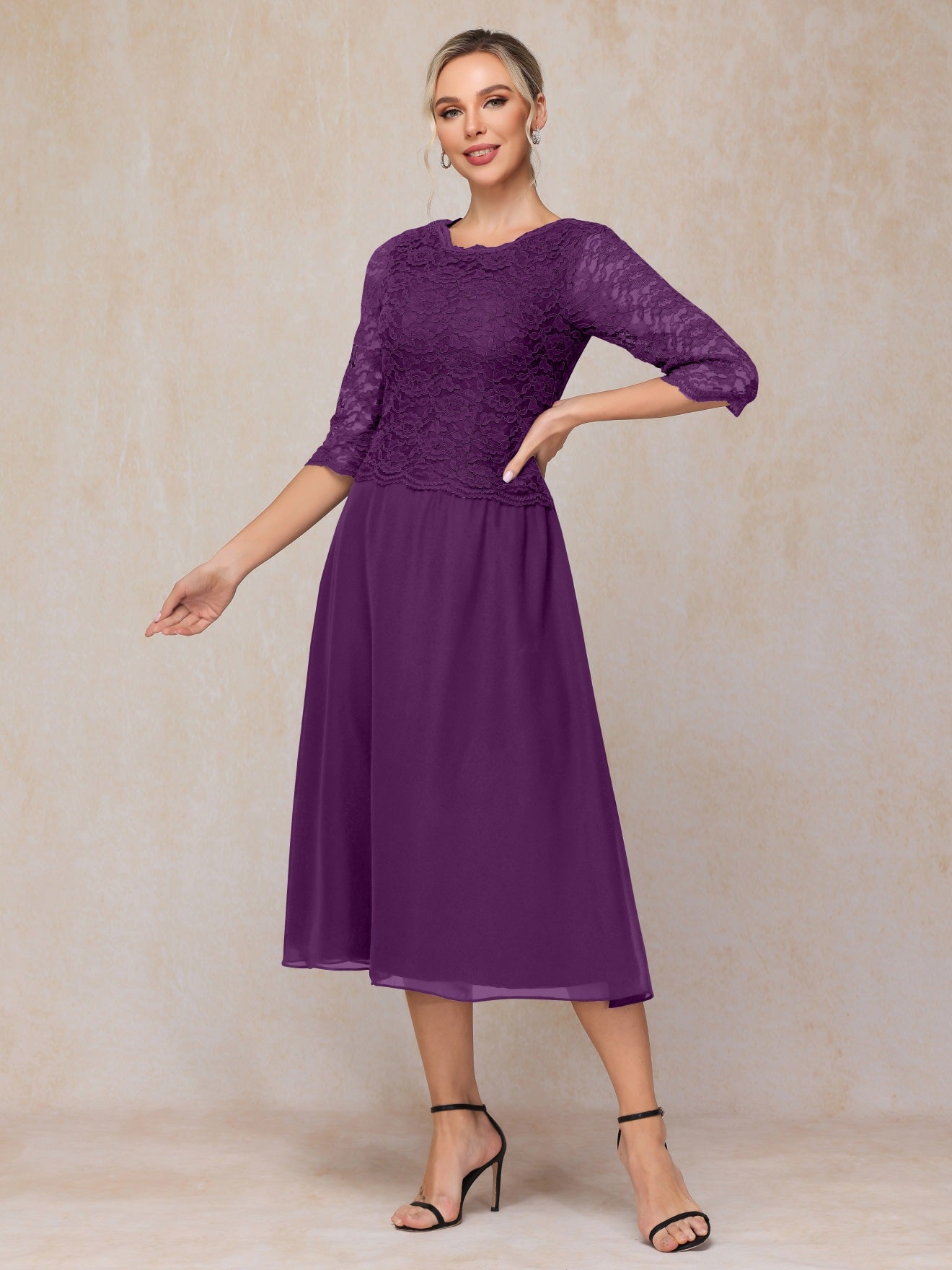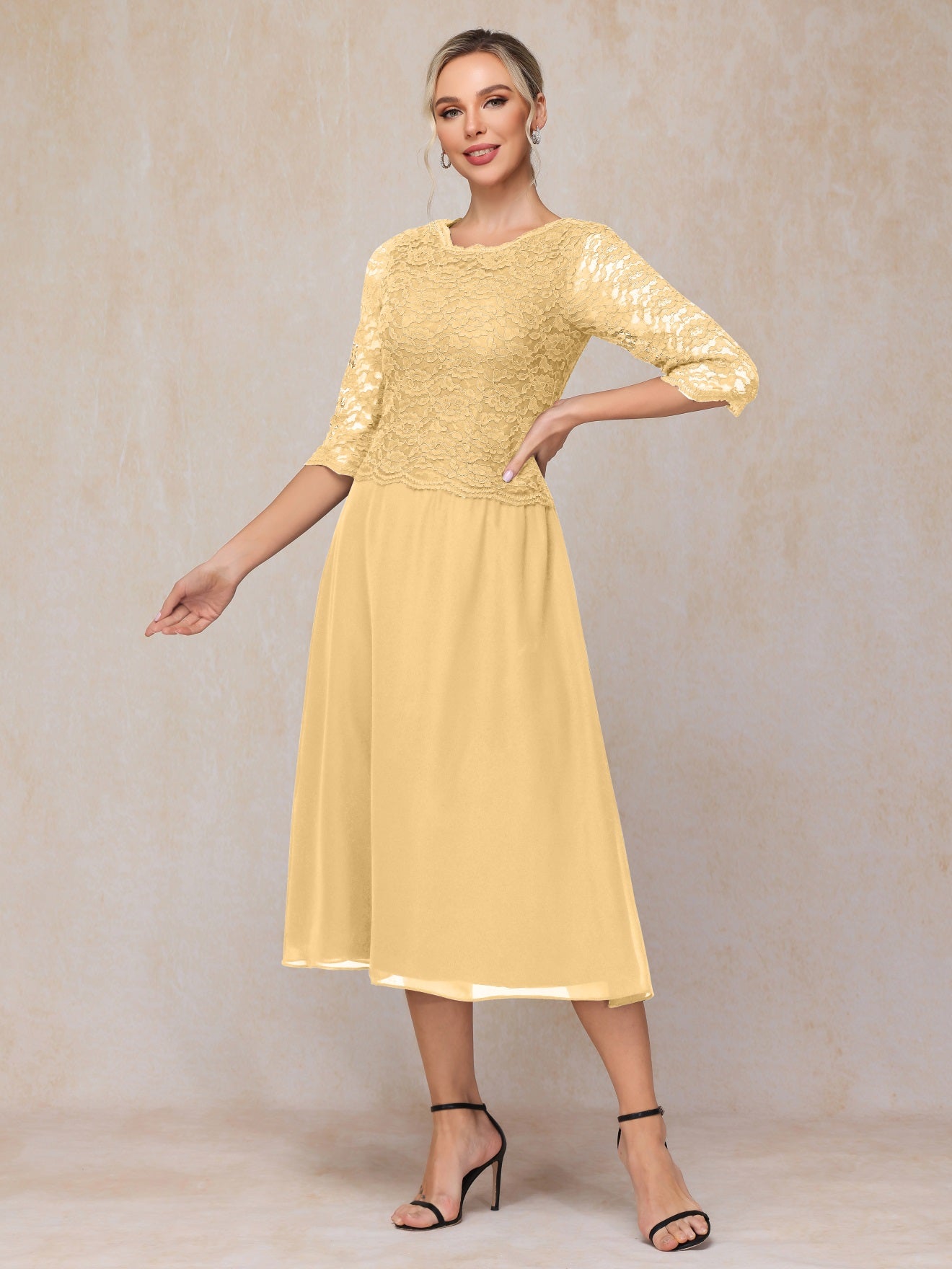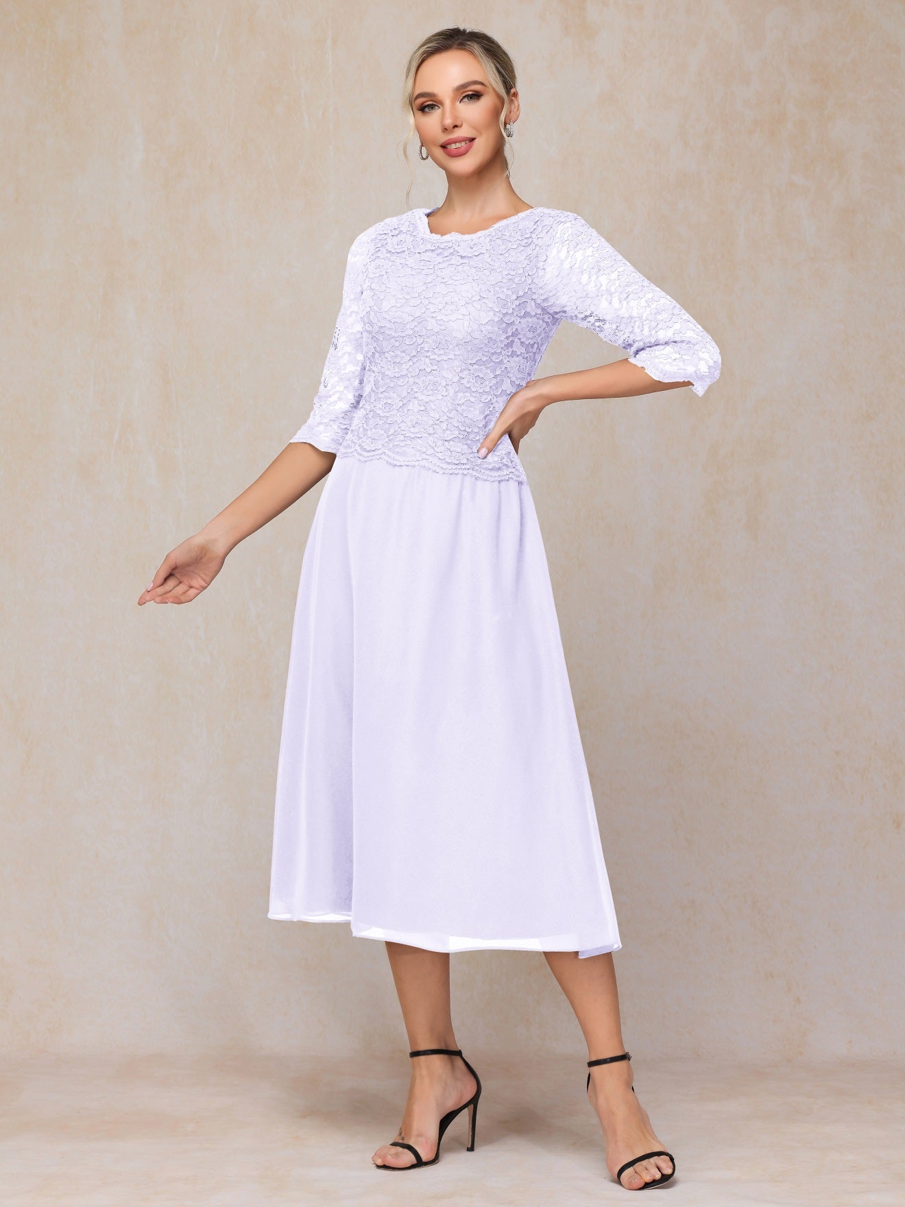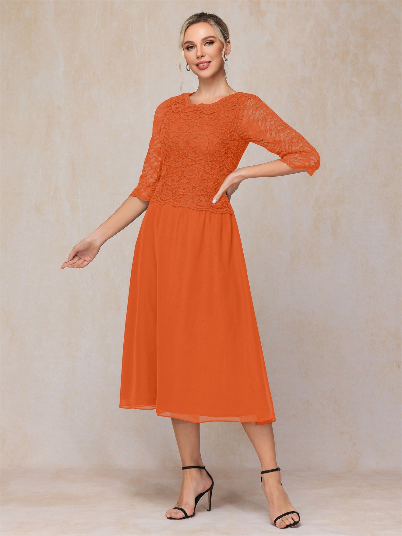 A-Linie Wadenlang Chiffon mit Spitze Brautmutterkleider