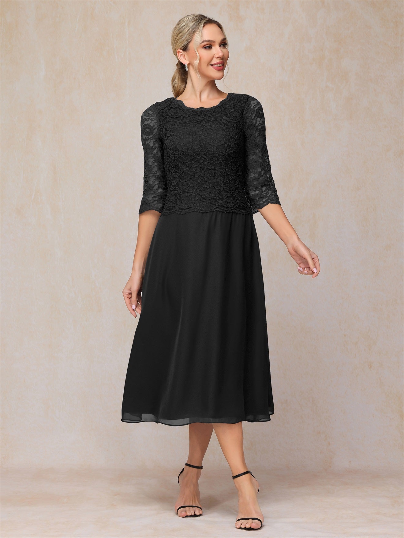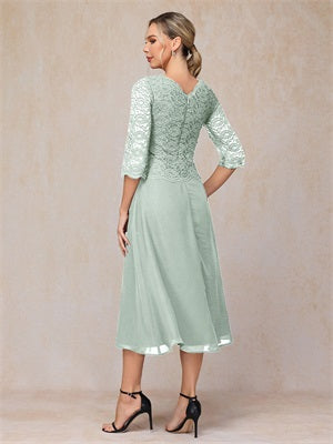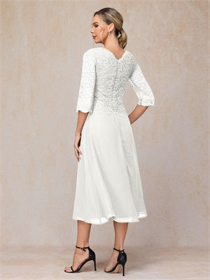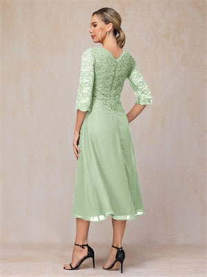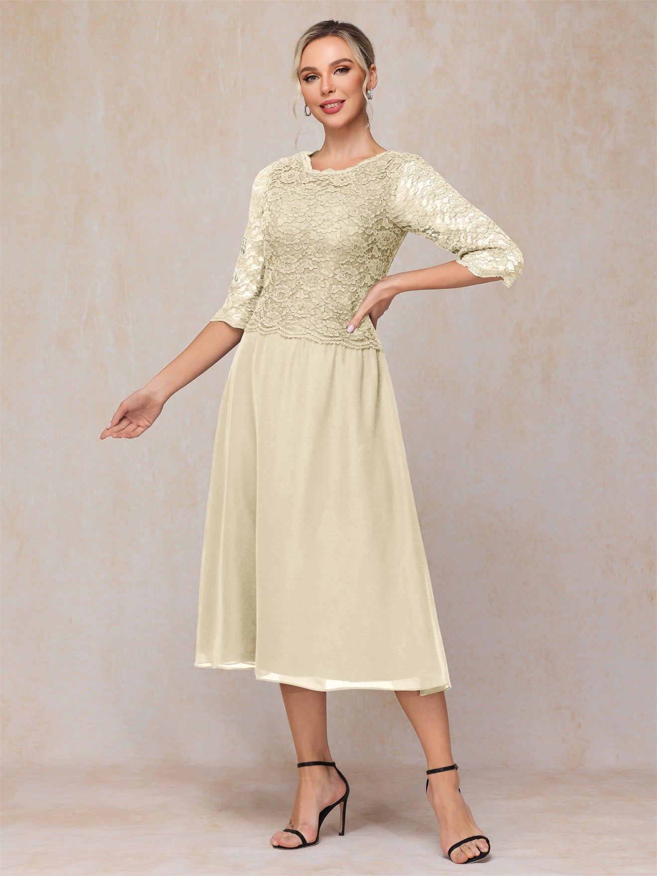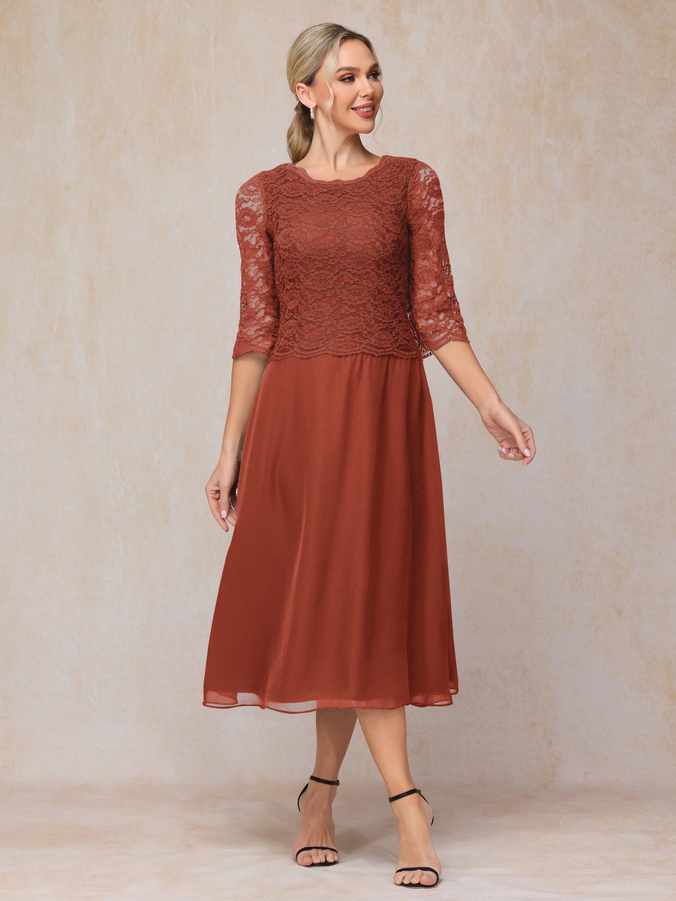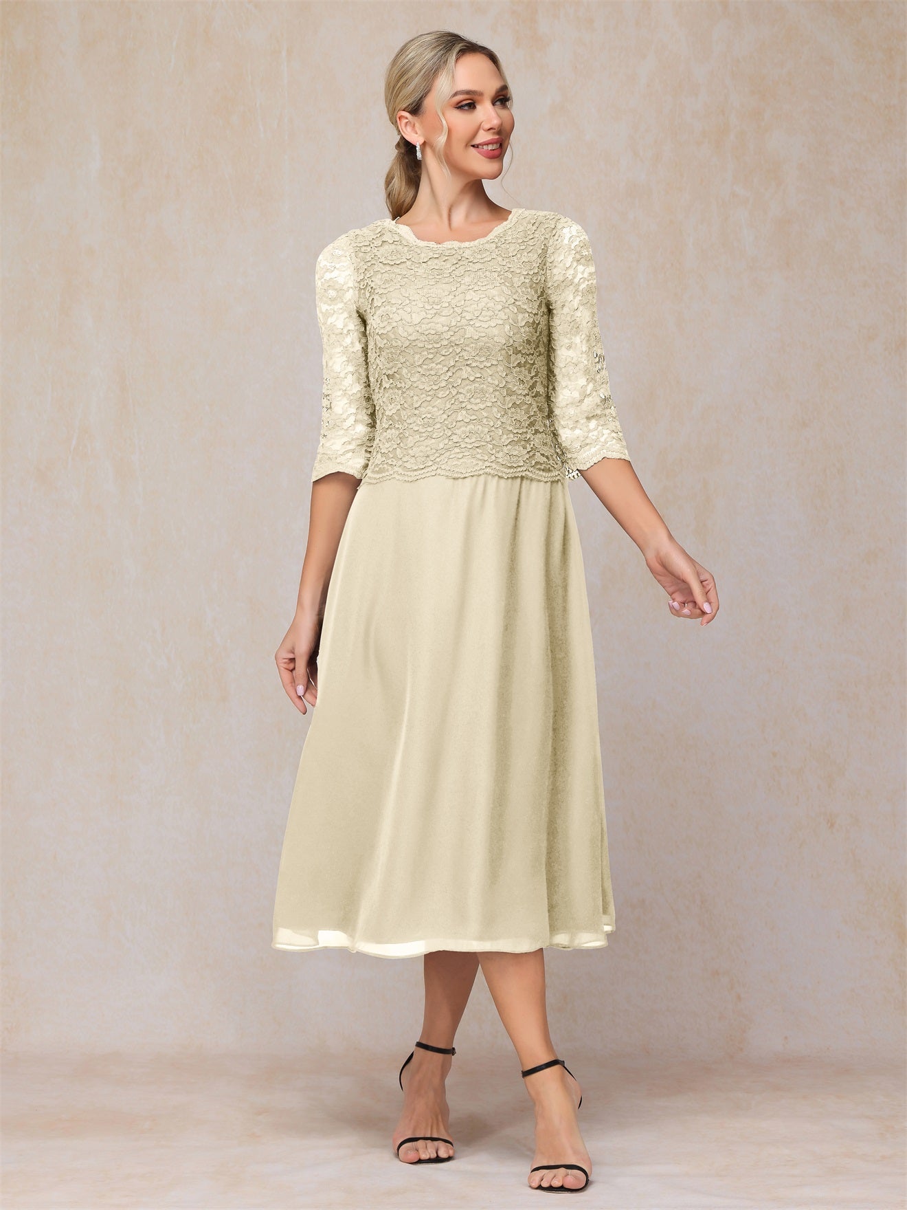 A-Linie Wadenlang Chiffon mit Spitze Brautmutterkleider