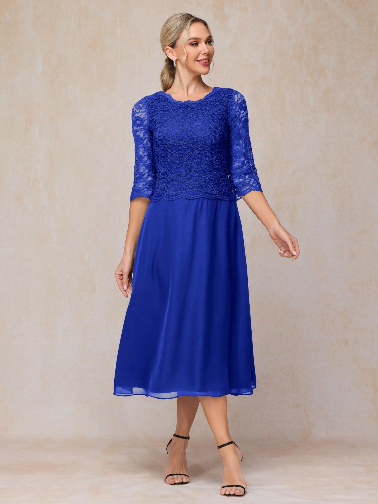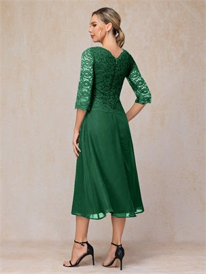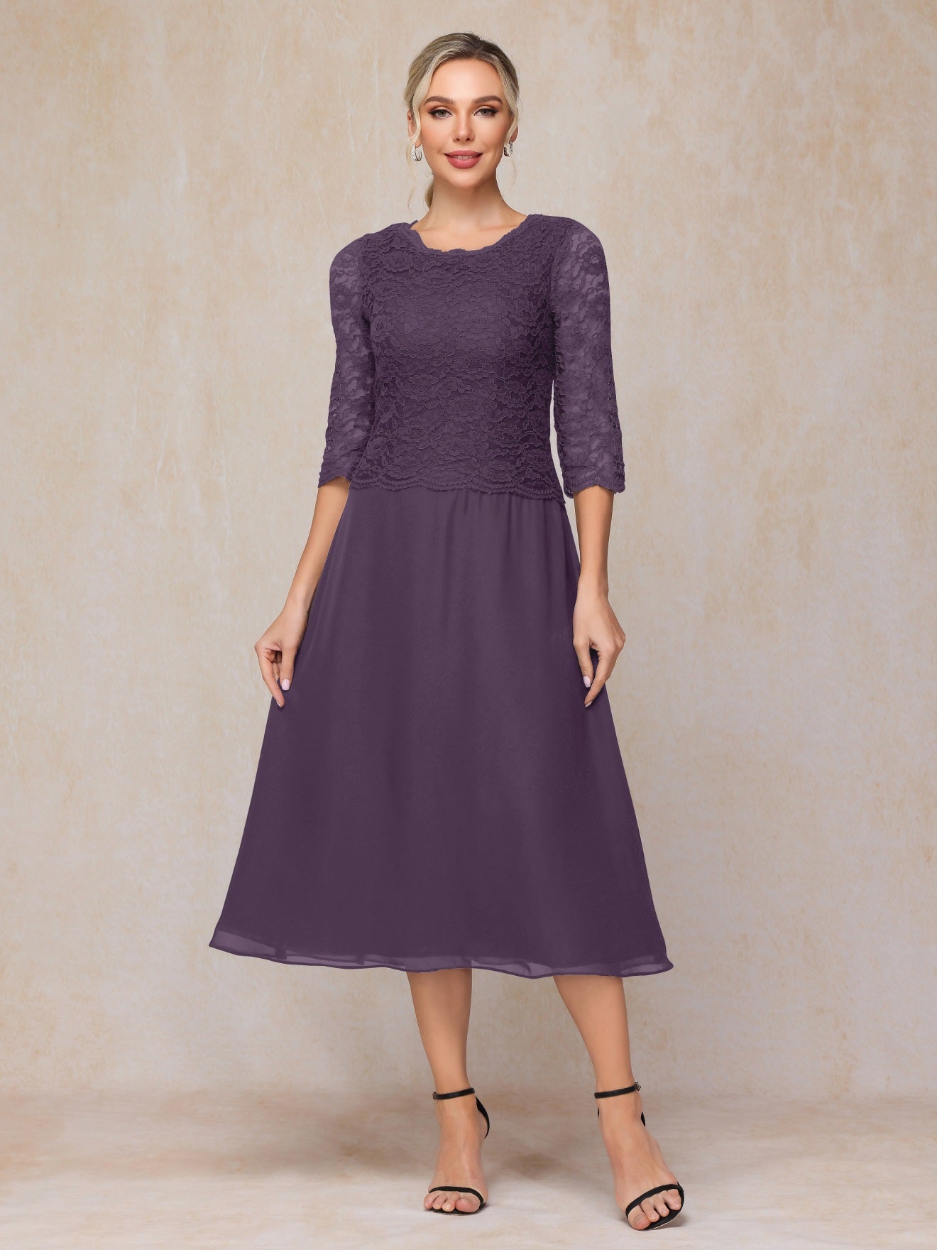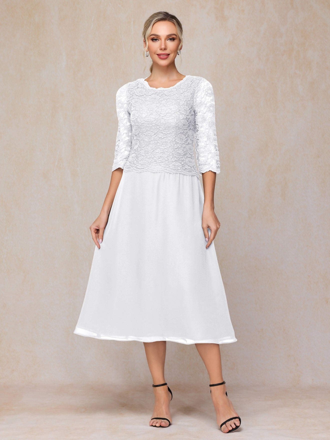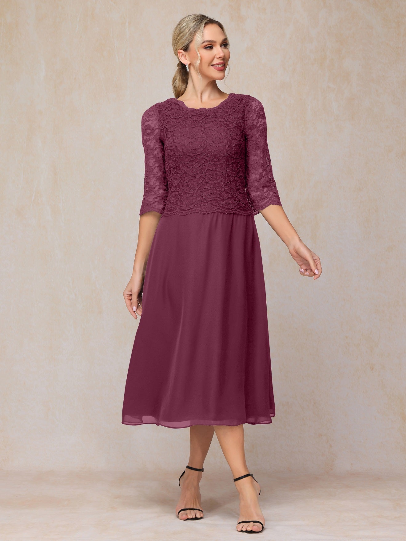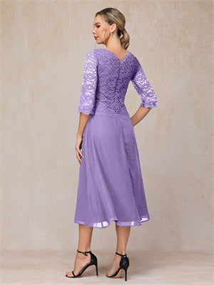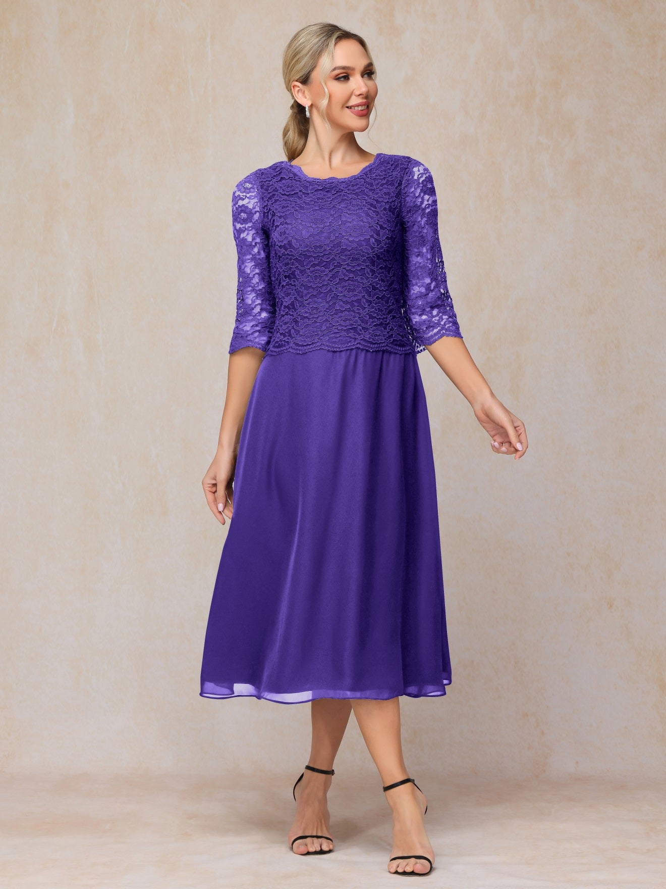 A-Linie Wadenlang Chiffon mit Spitze Brautmutterkleider