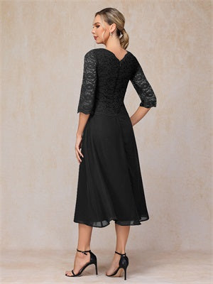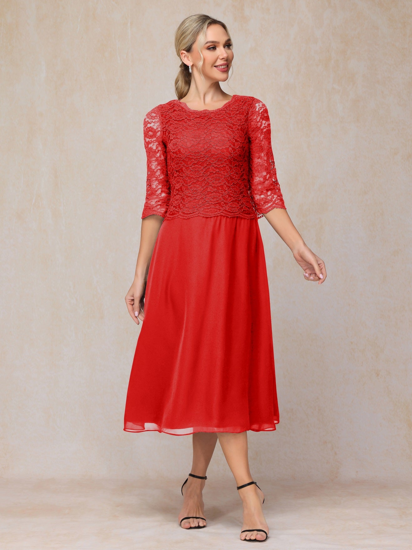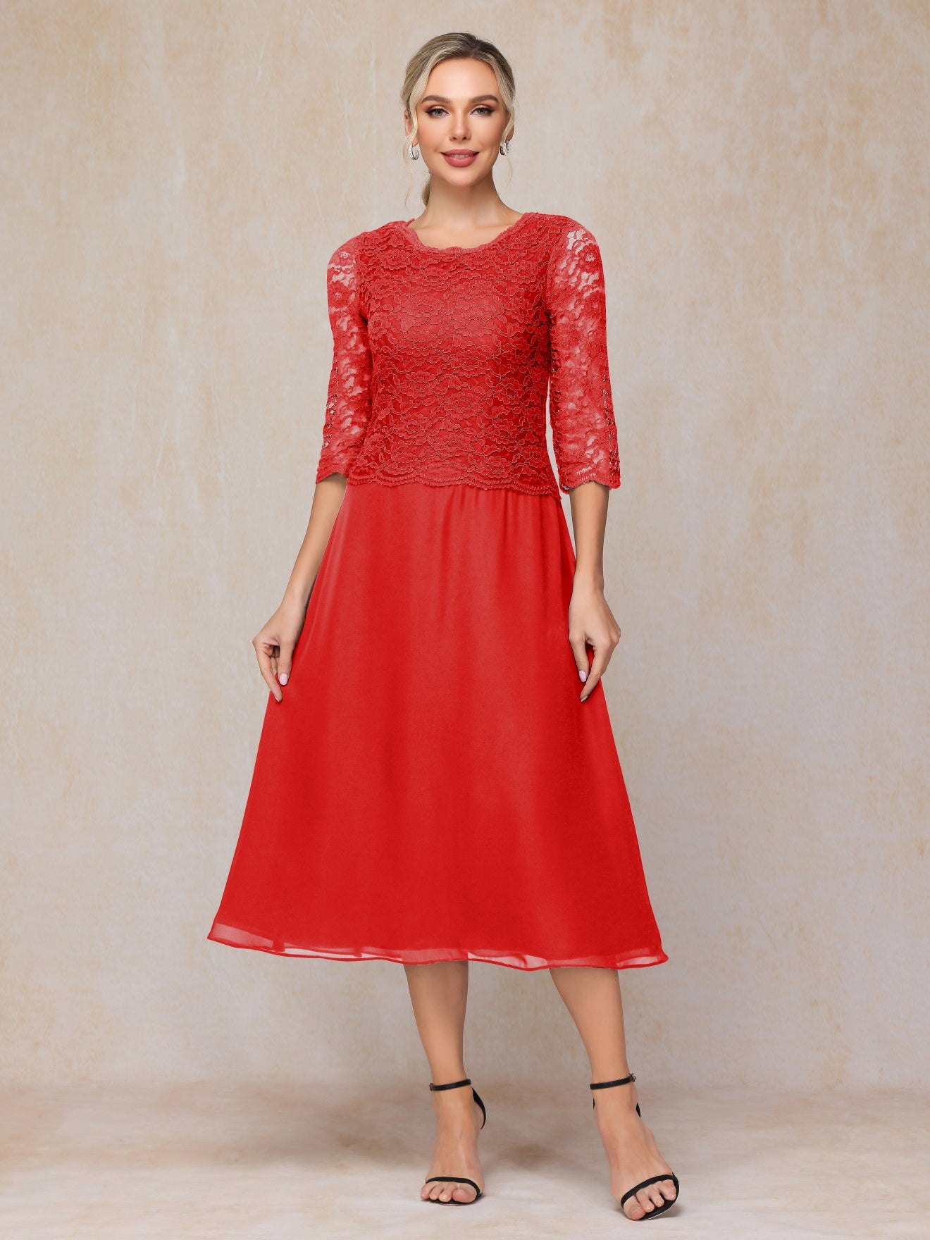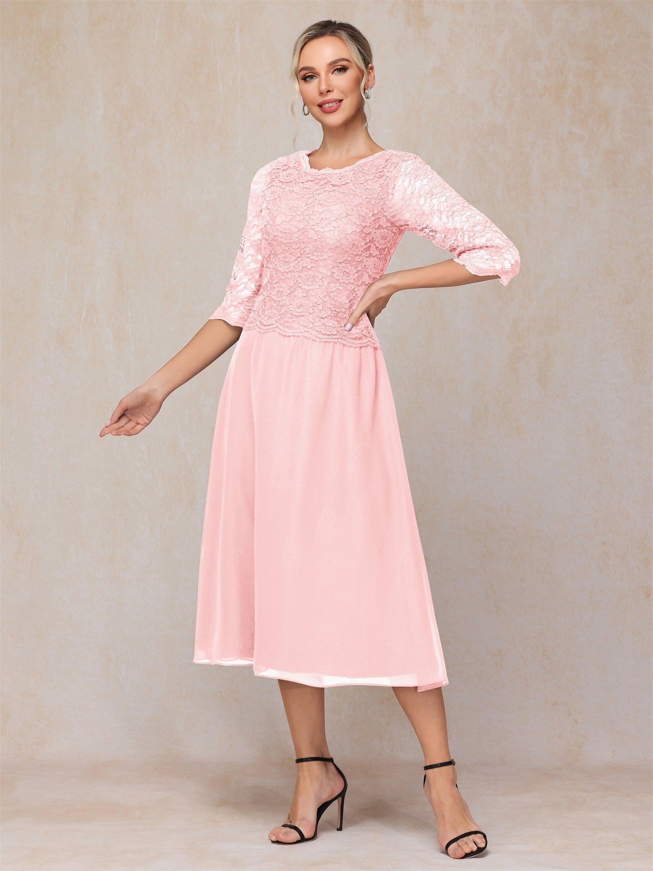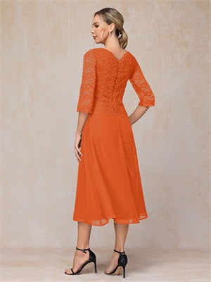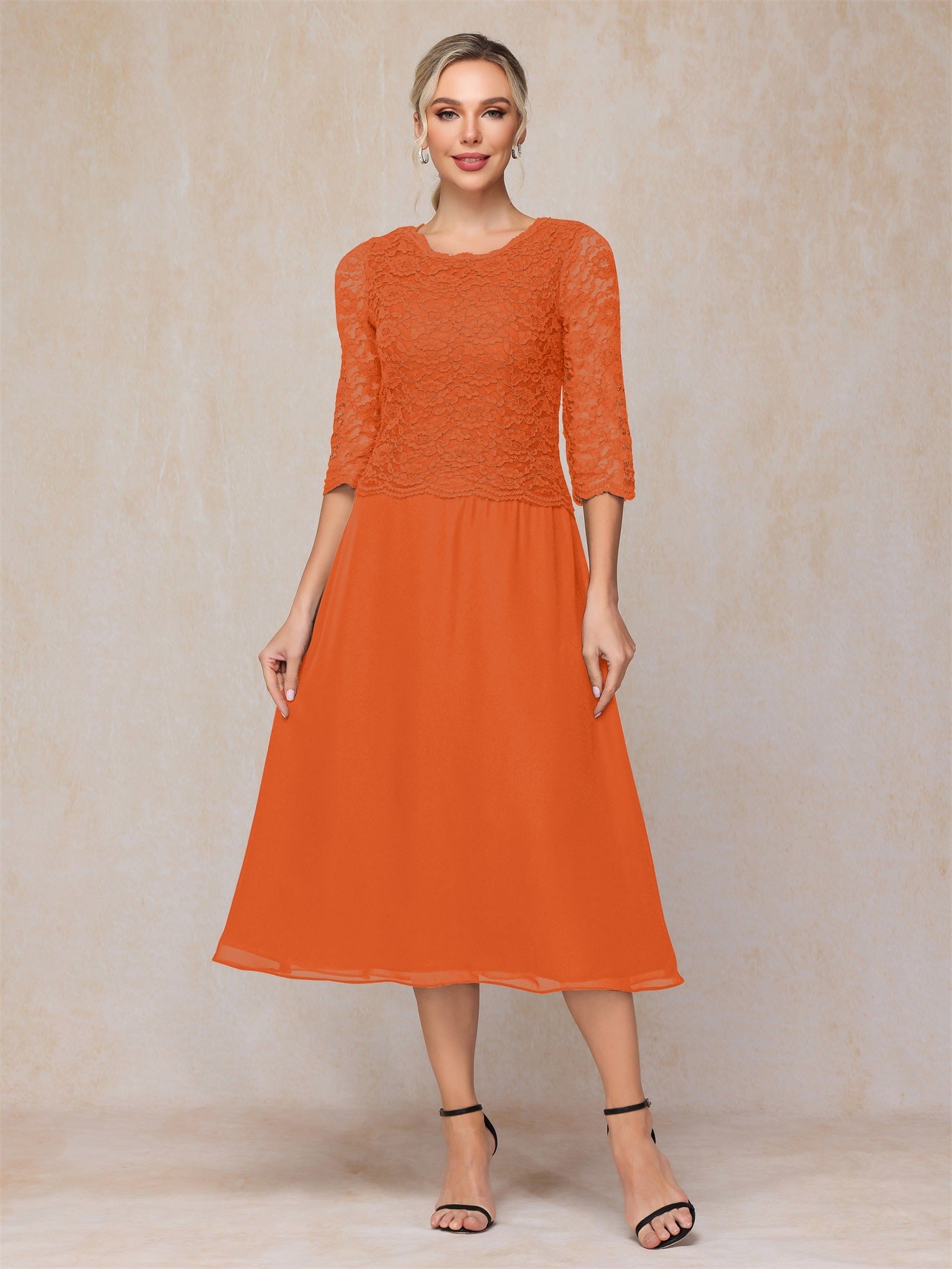 A-Linie Wadenlang Chiffon mit Spitze Brautmutterkleider