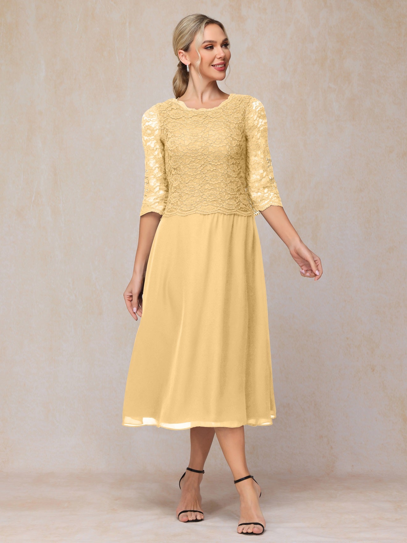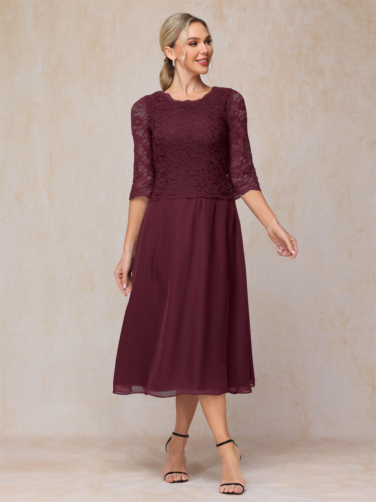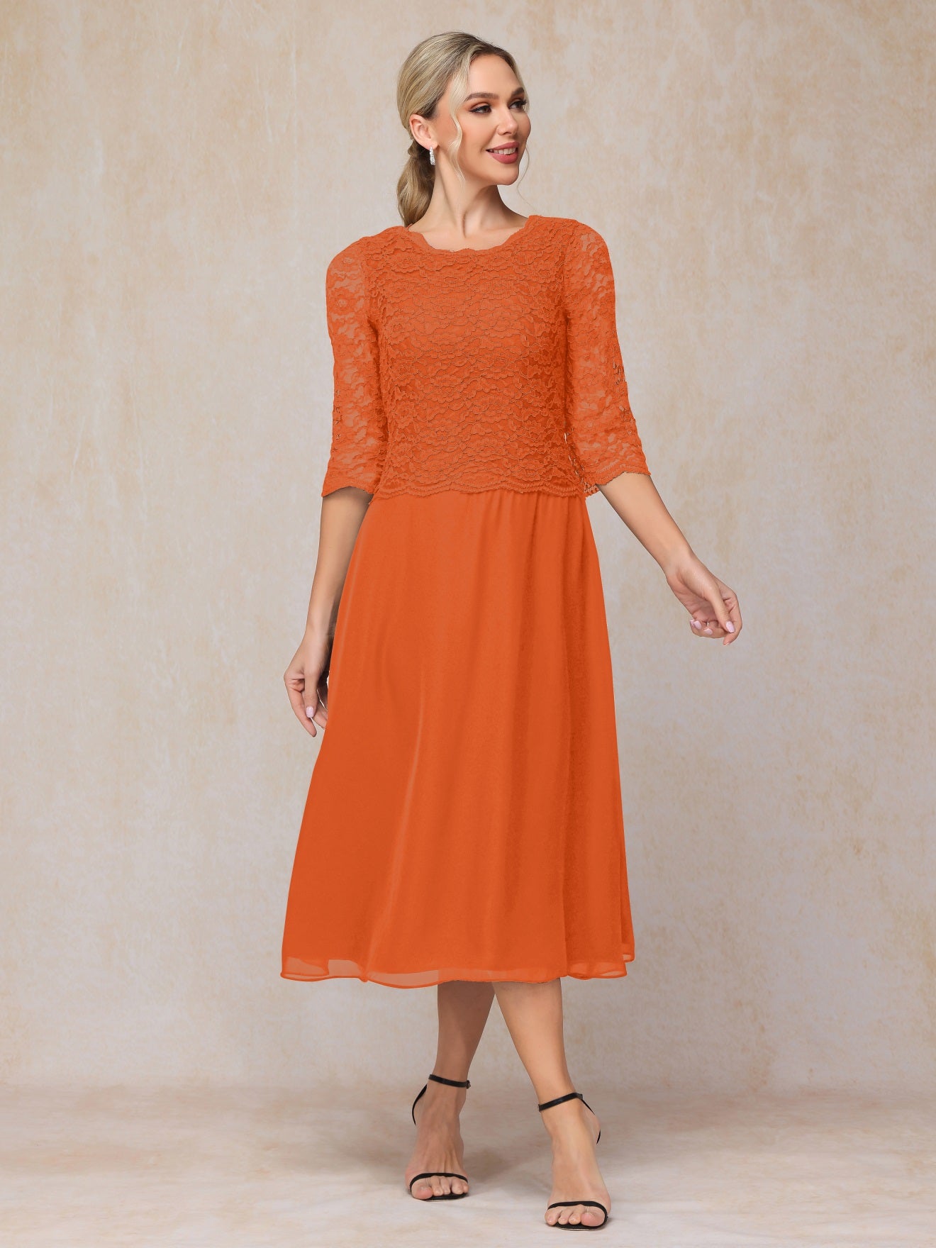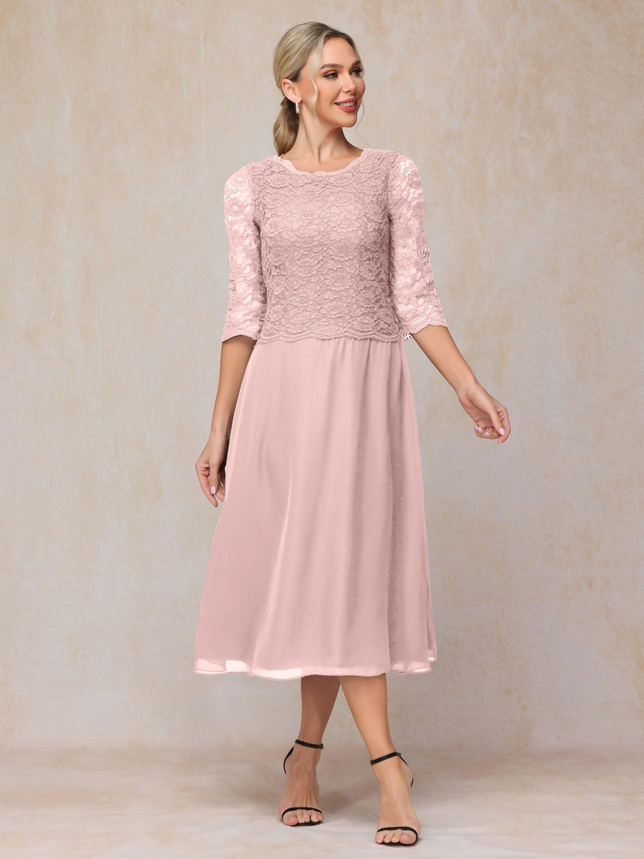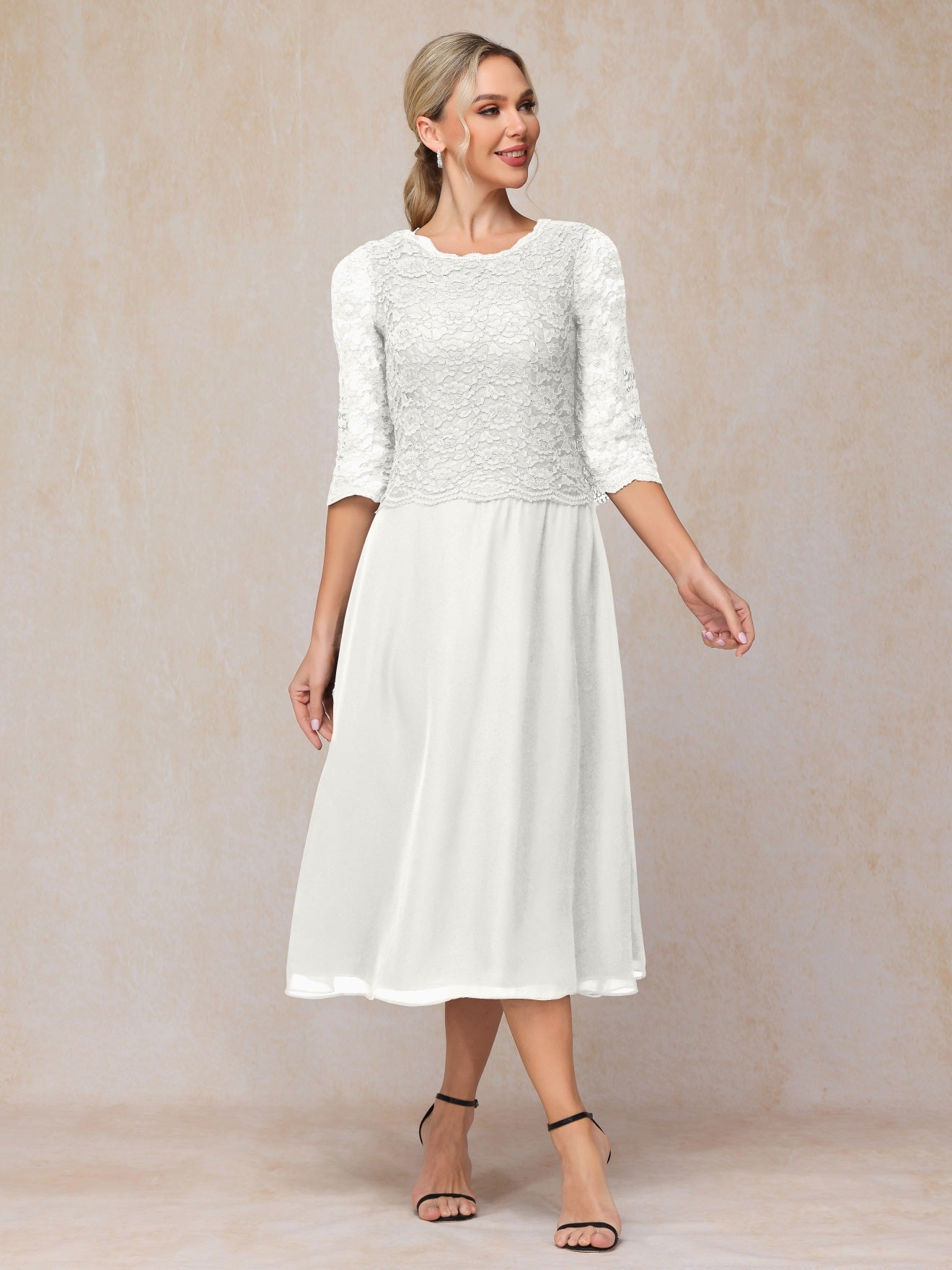 A-Linie Wadenlang Chiffon mit Spitze Brautmutterkleider