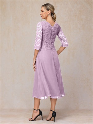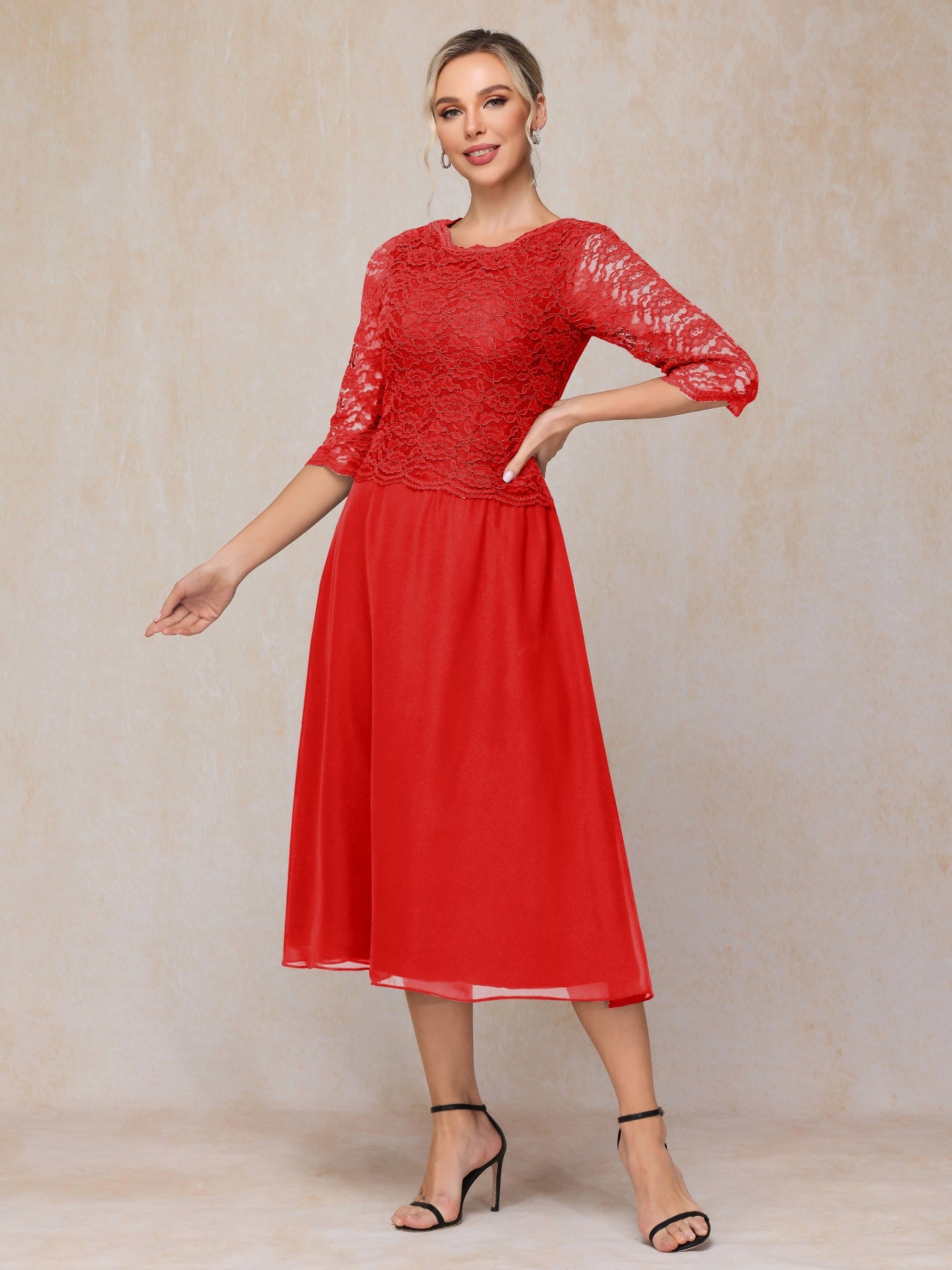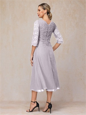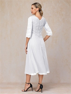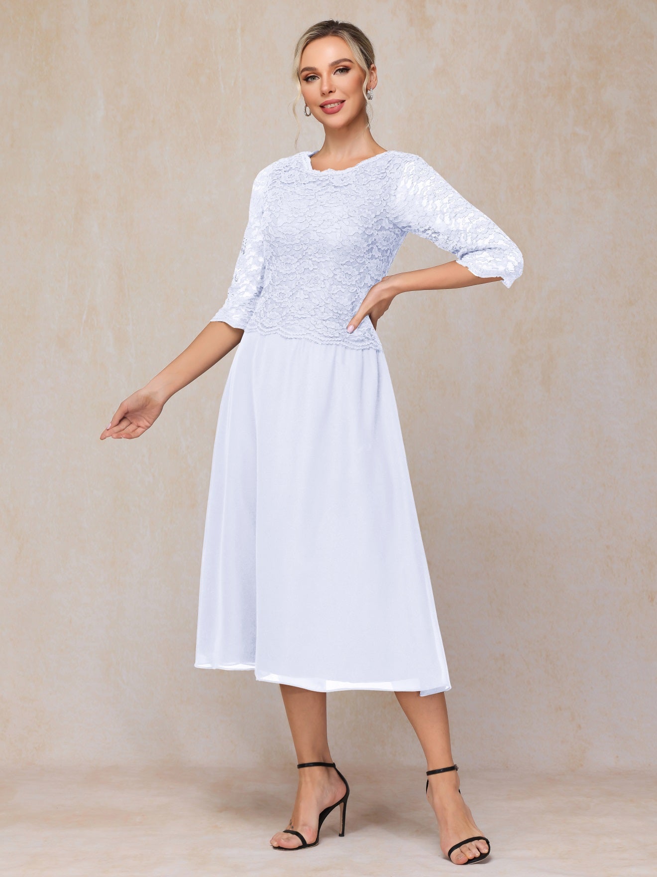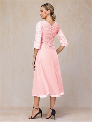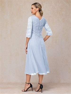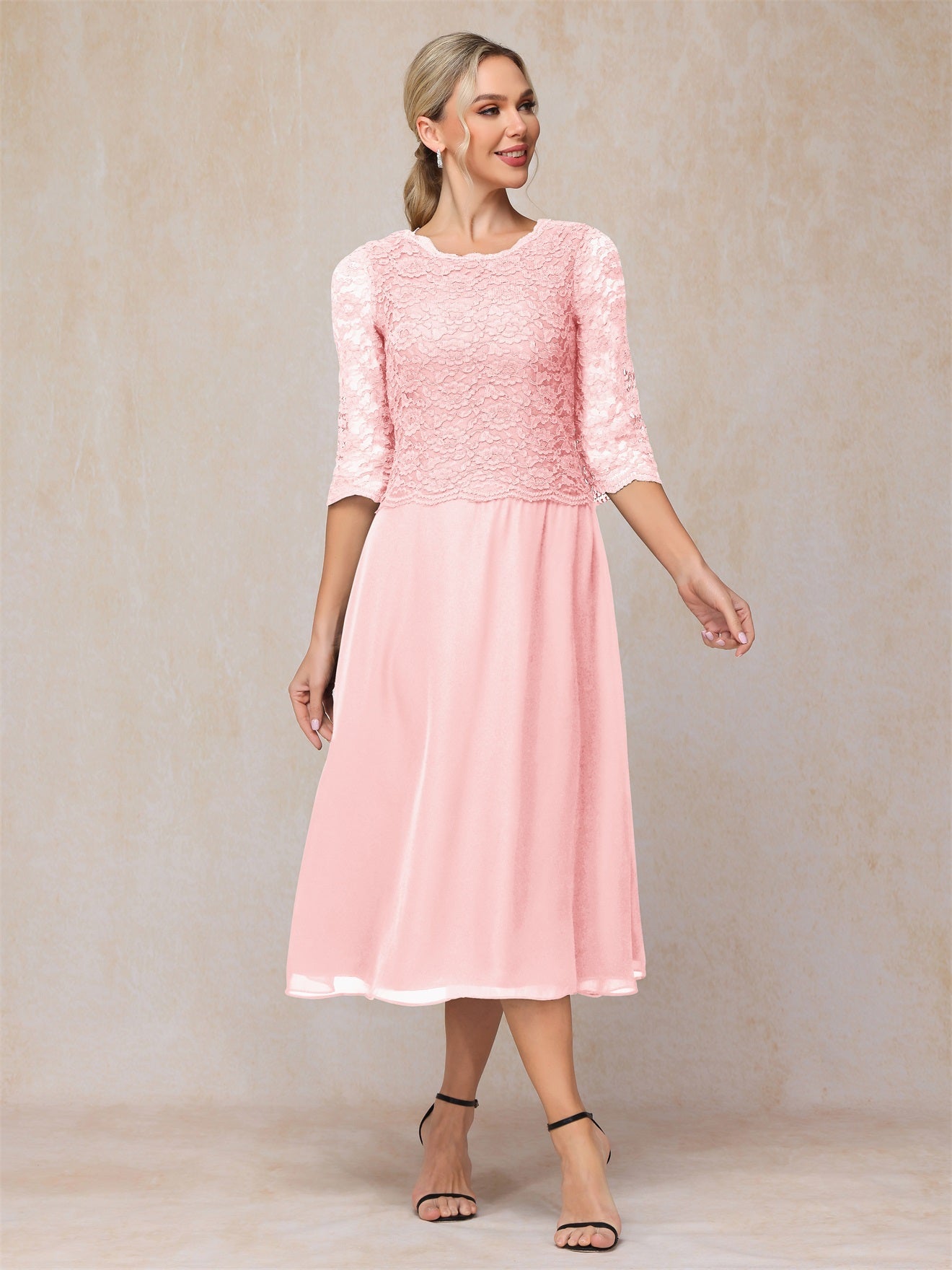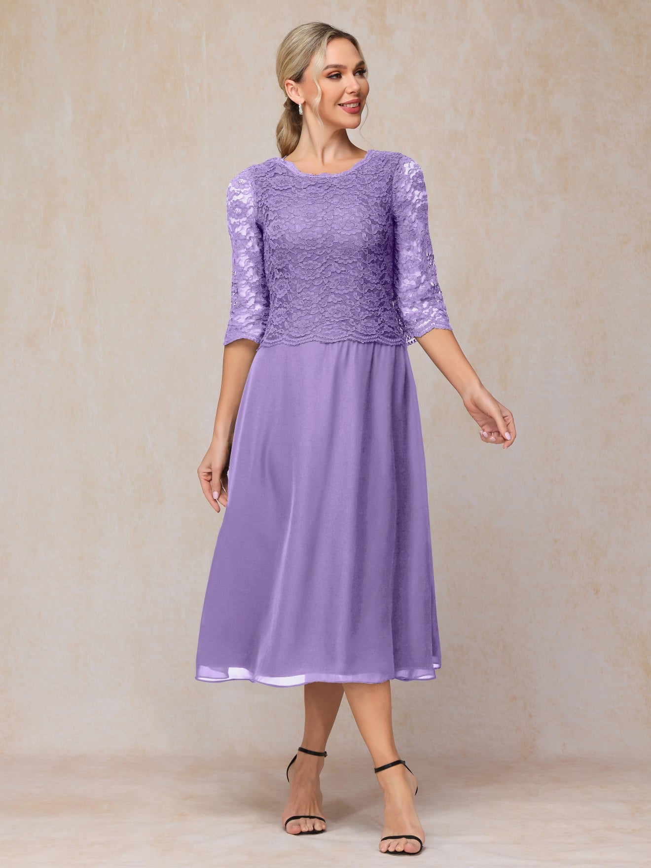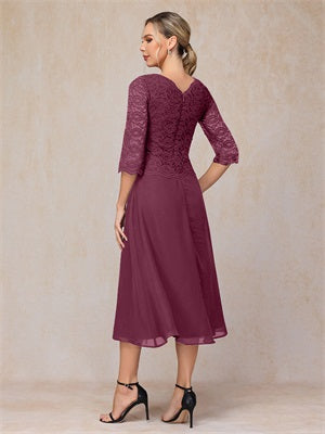 A-Linie Wadenlang Chiffon mit Spitze Brautmutterkleider