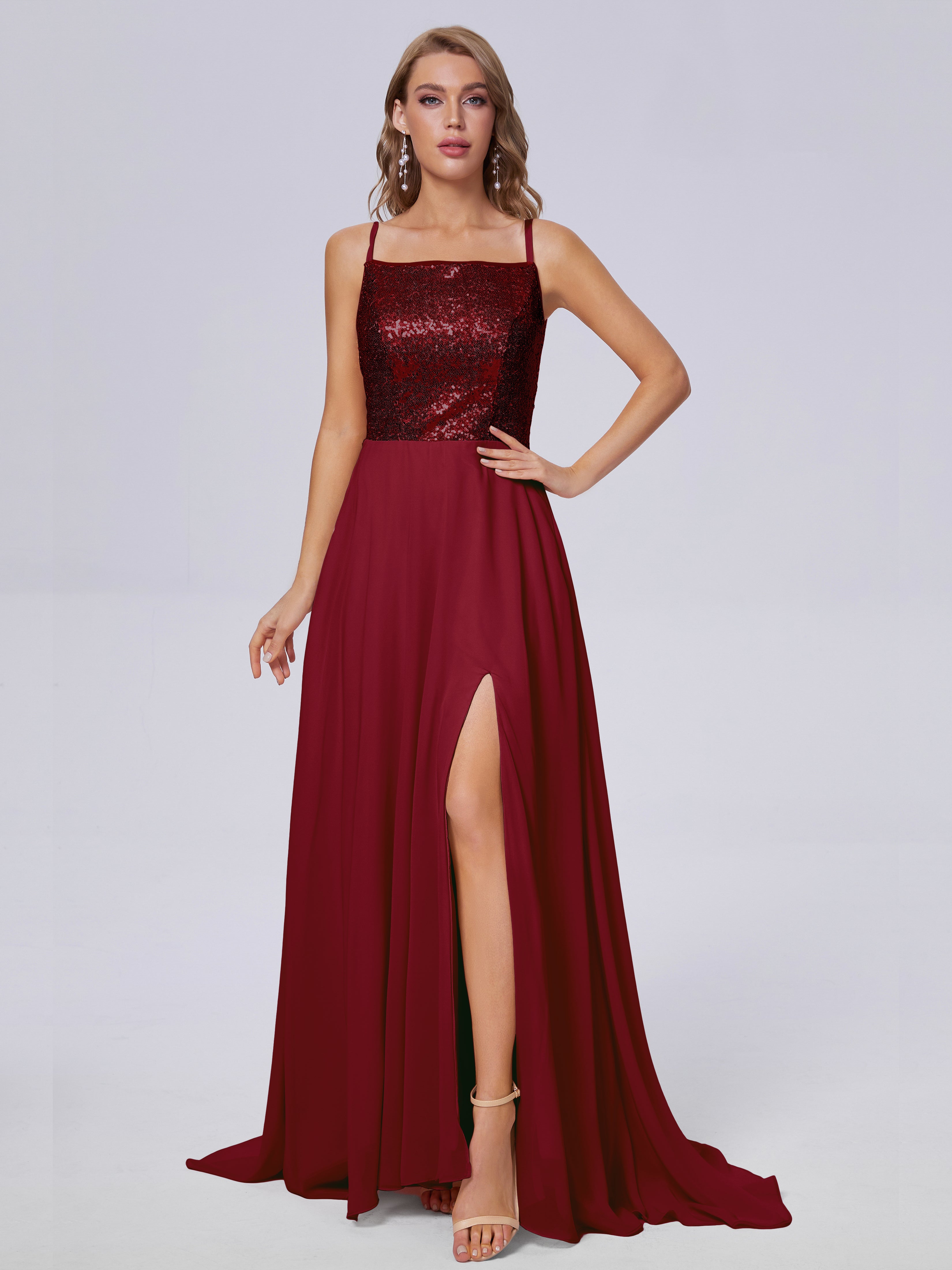 Alaina Sexy Split Pailletten Brautjungfernkleider
