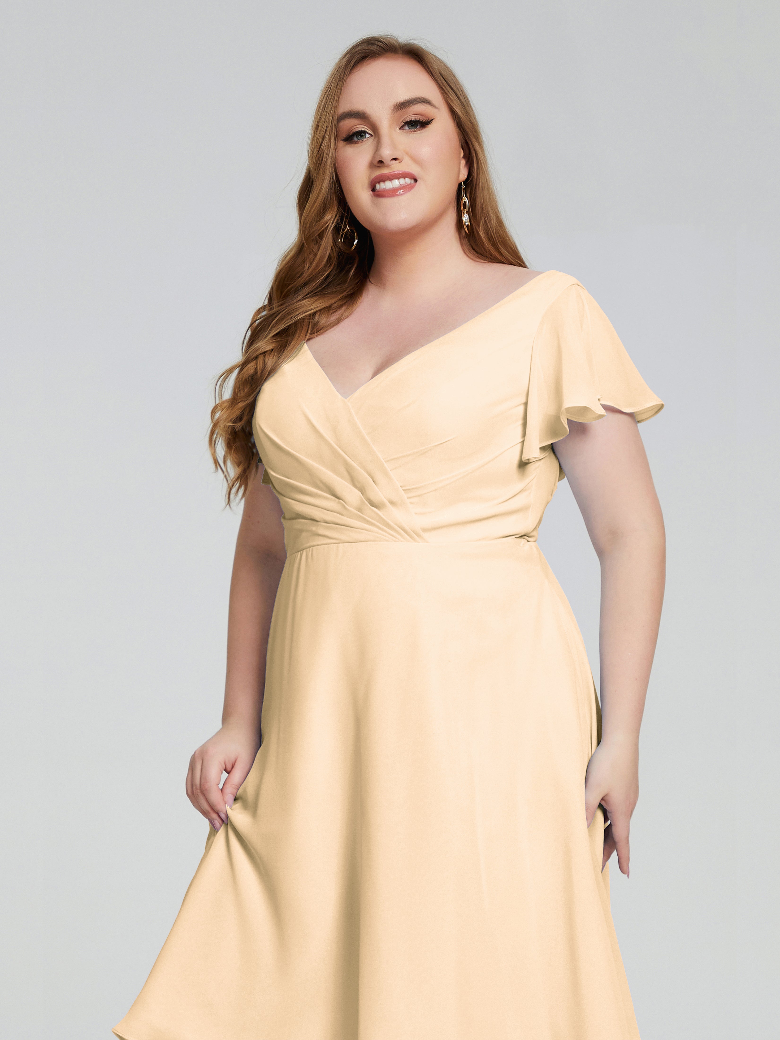 Alina Kurze Ärmel Chiffon Brautjungfernkleider in Übergröße