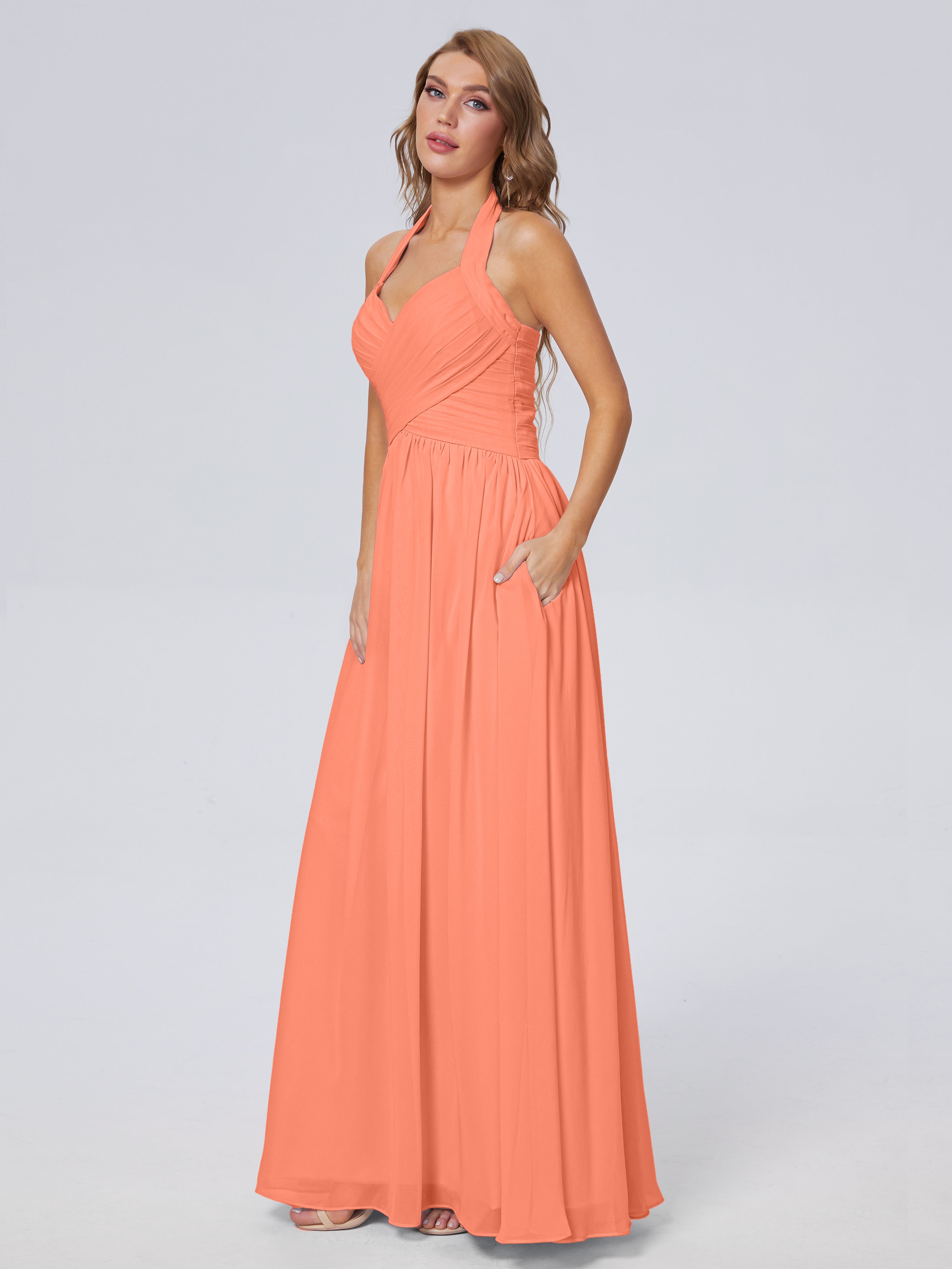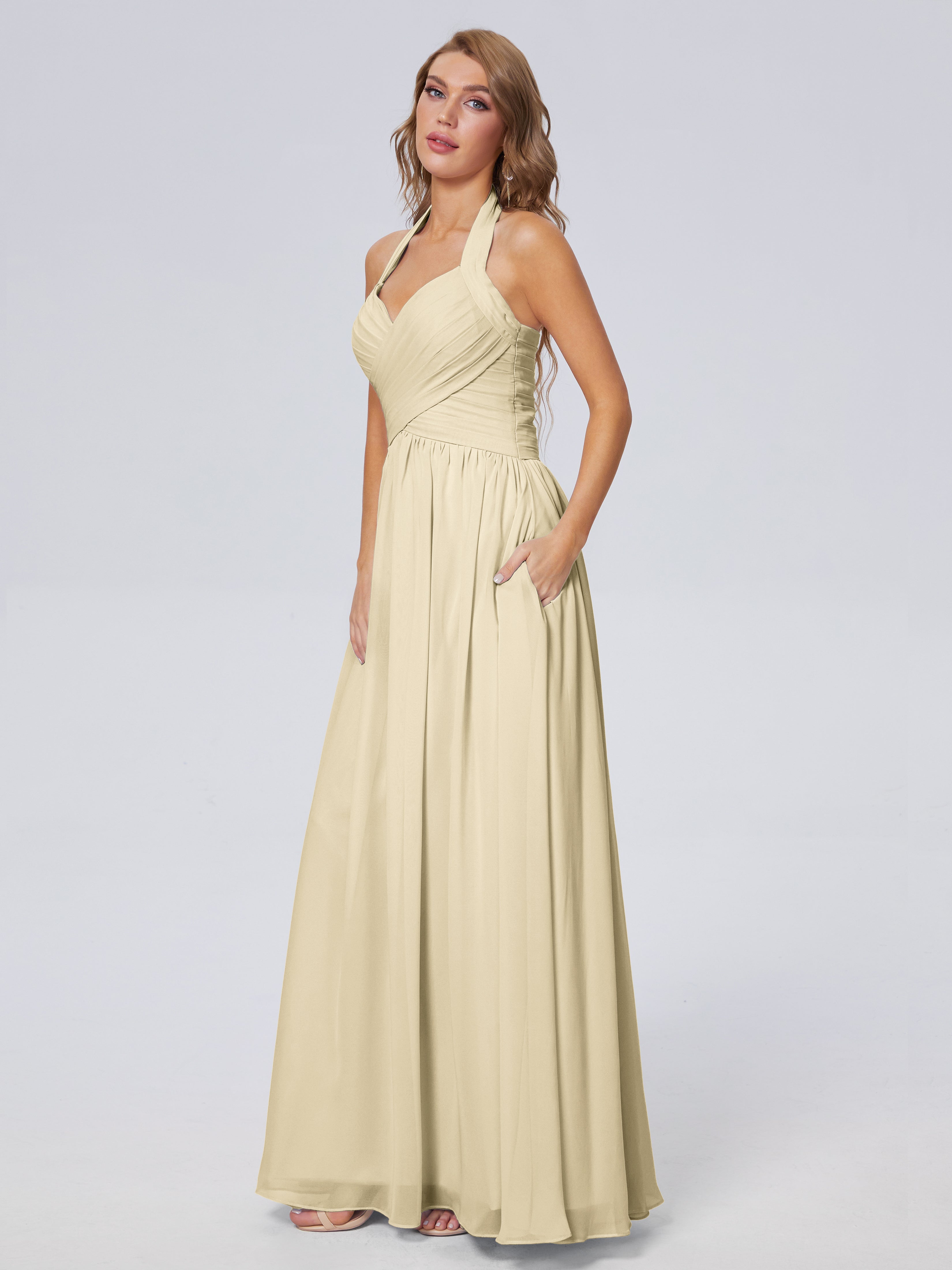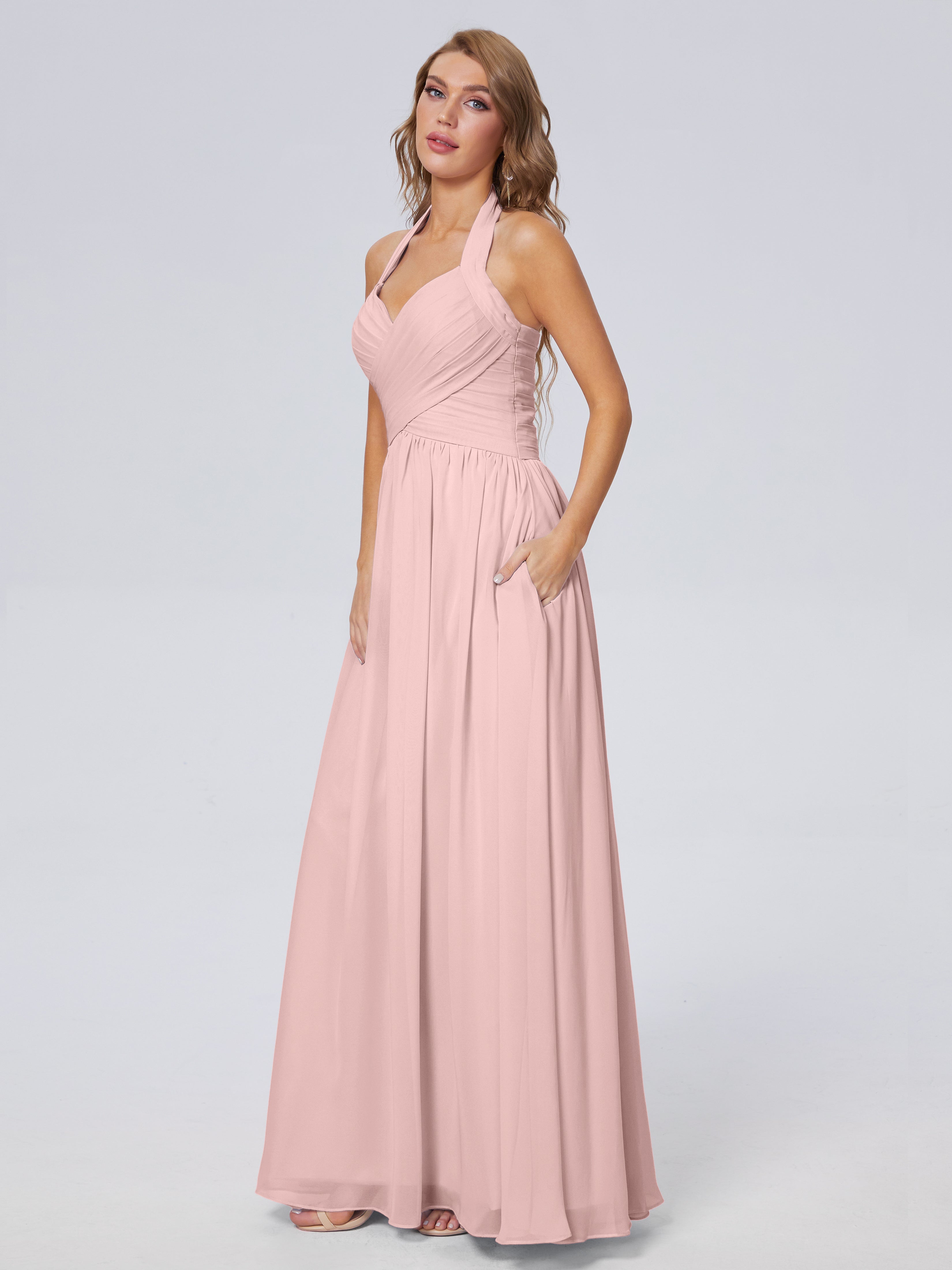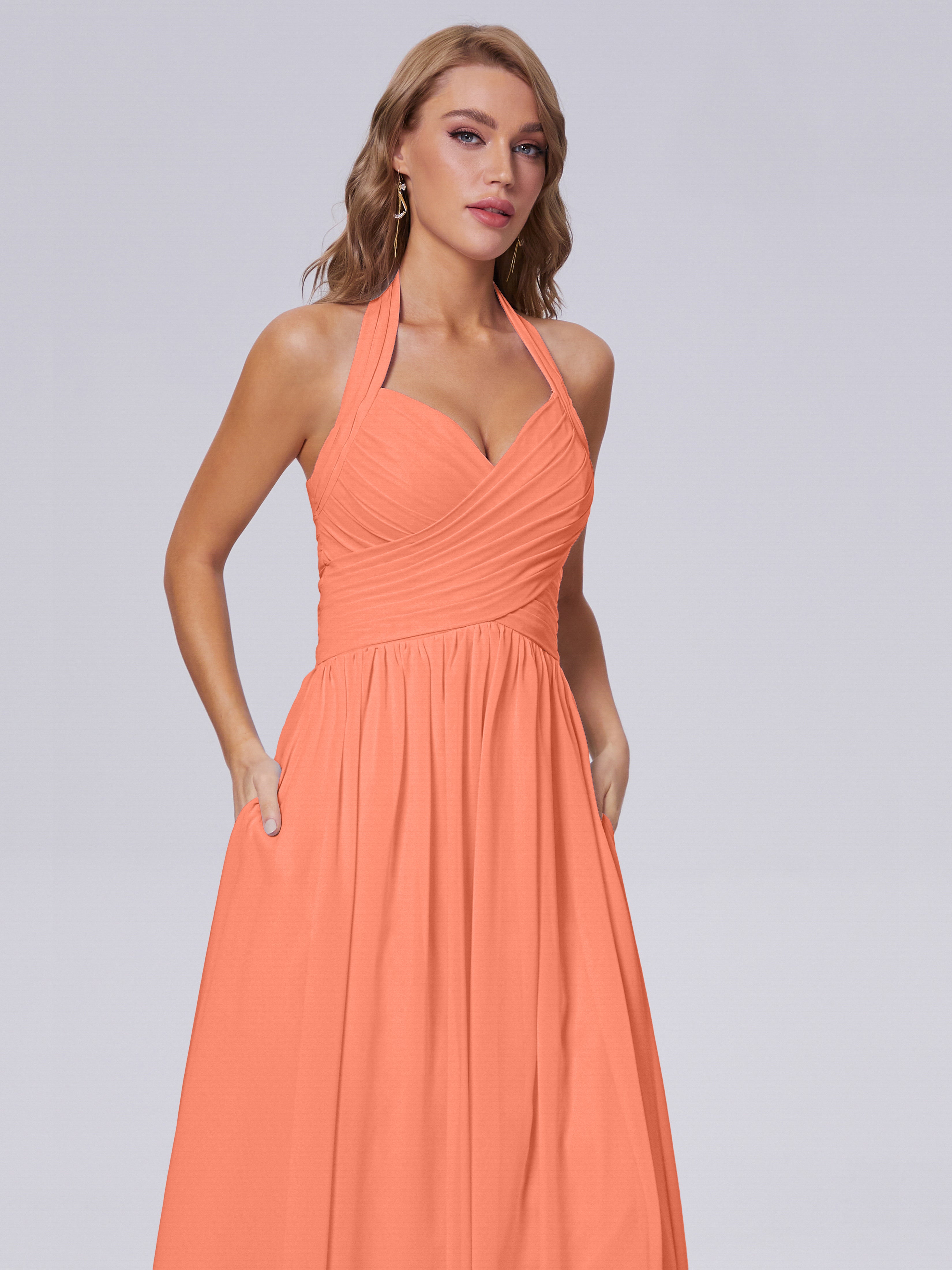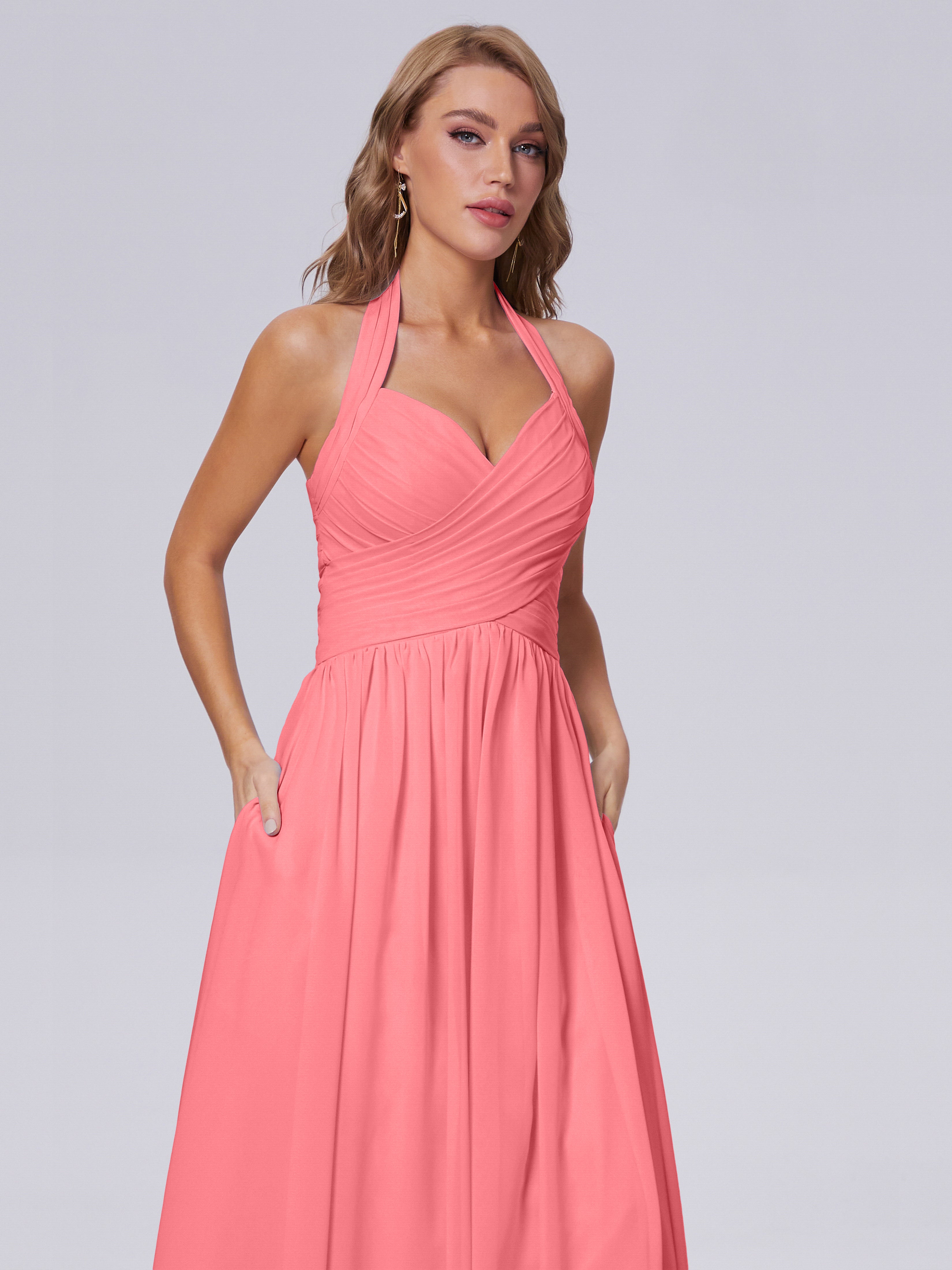 Amaya Atemberaubende Neckholder-Chiffon-Brautjungfernkleider
