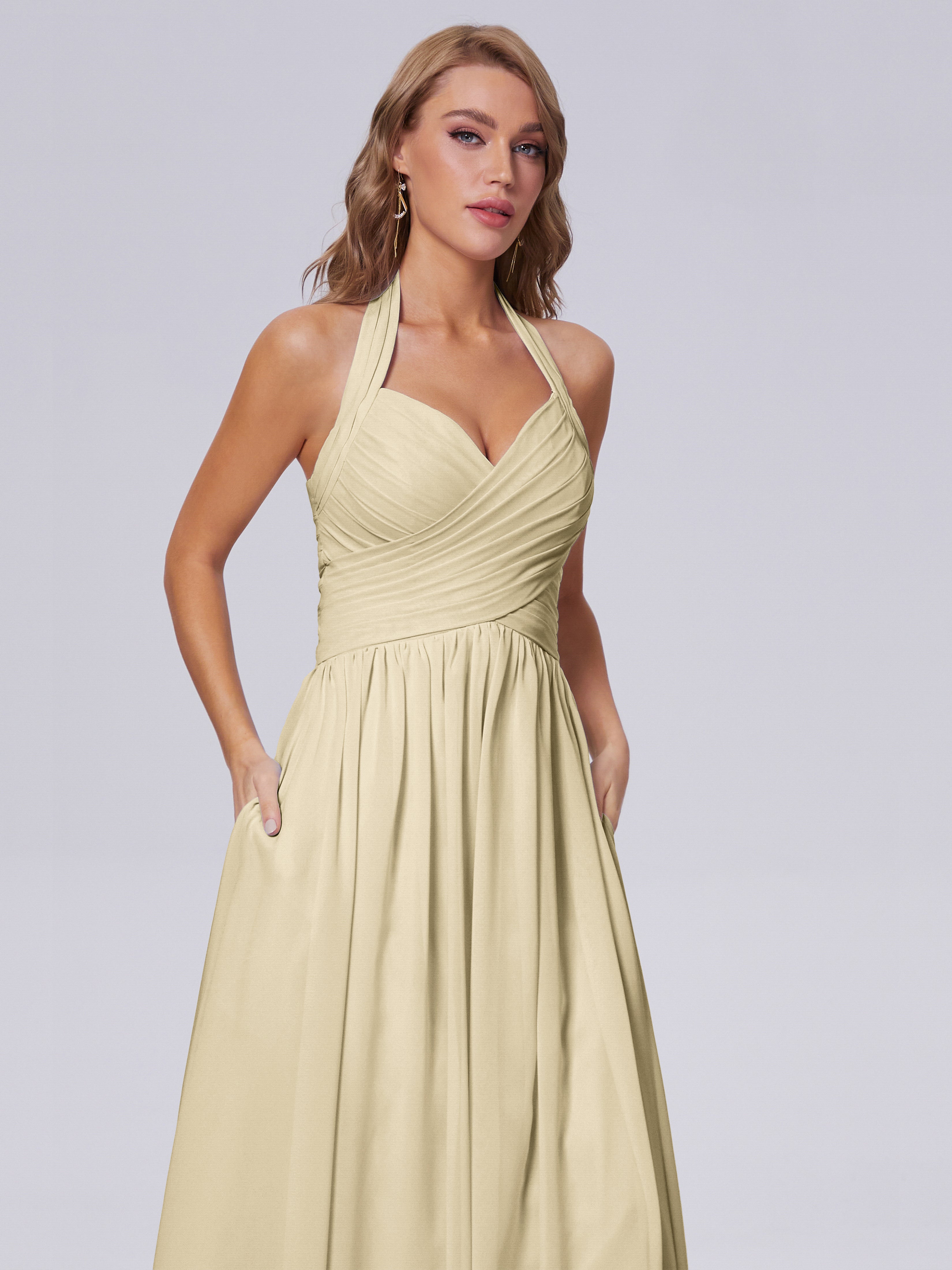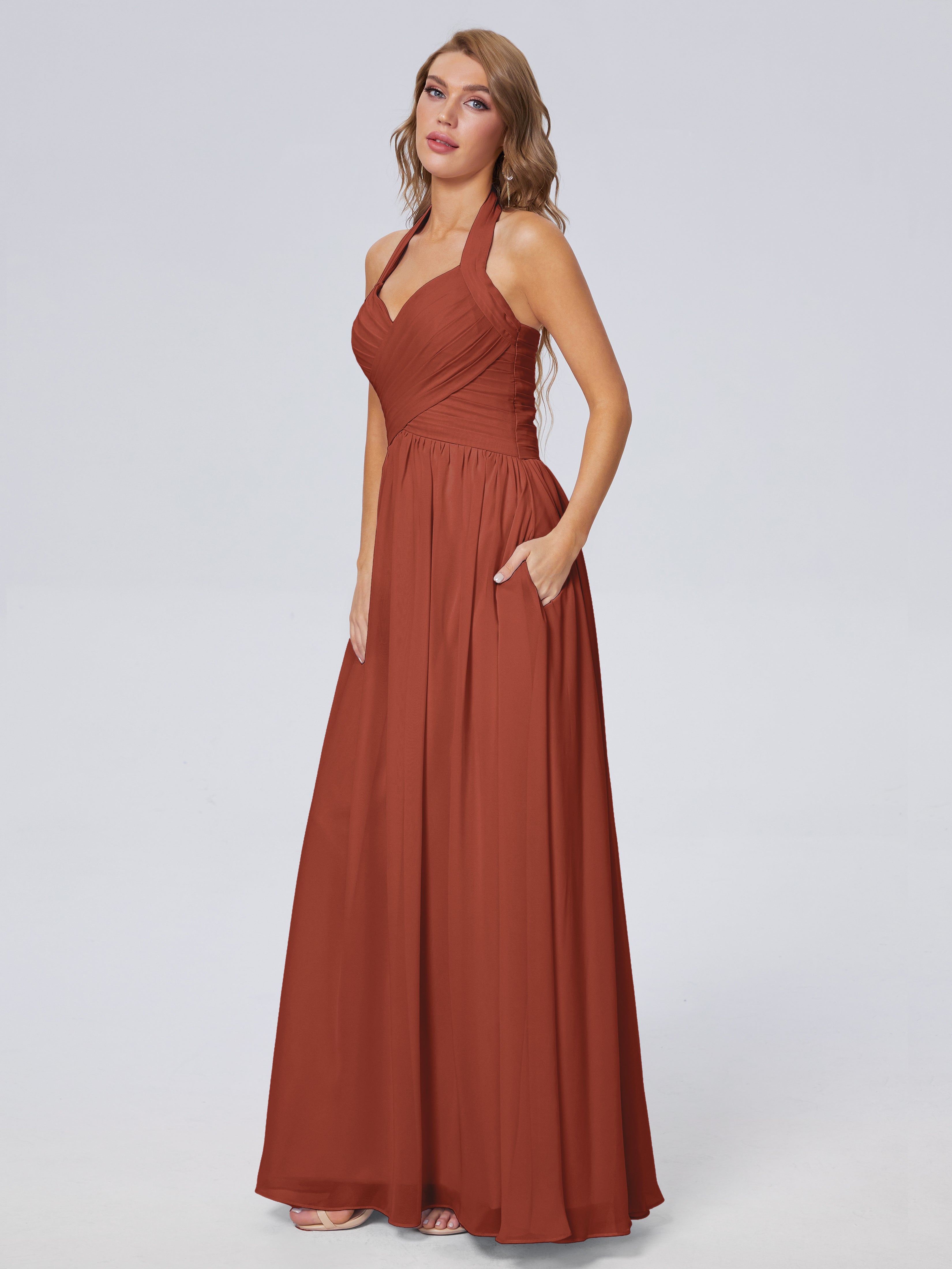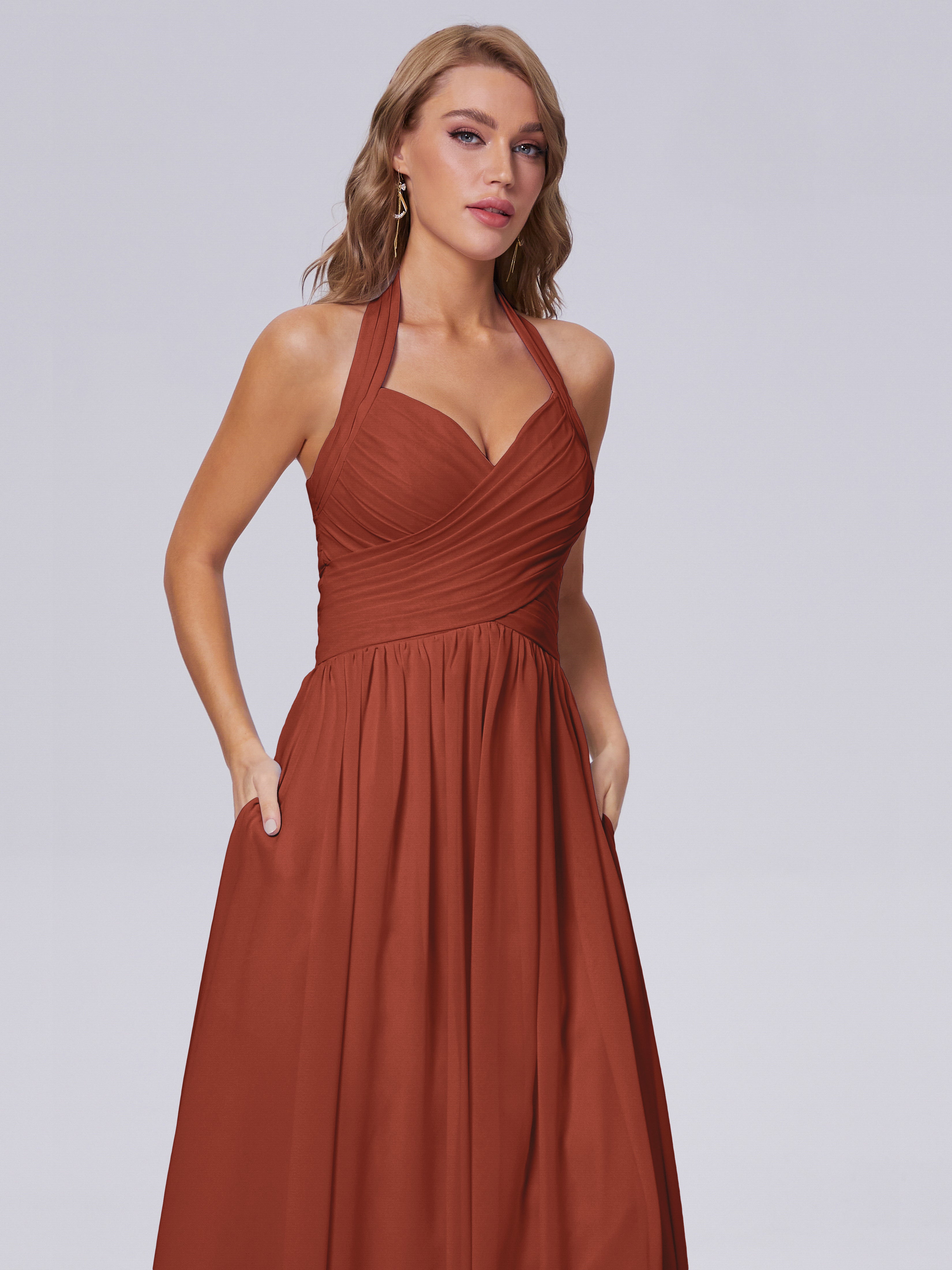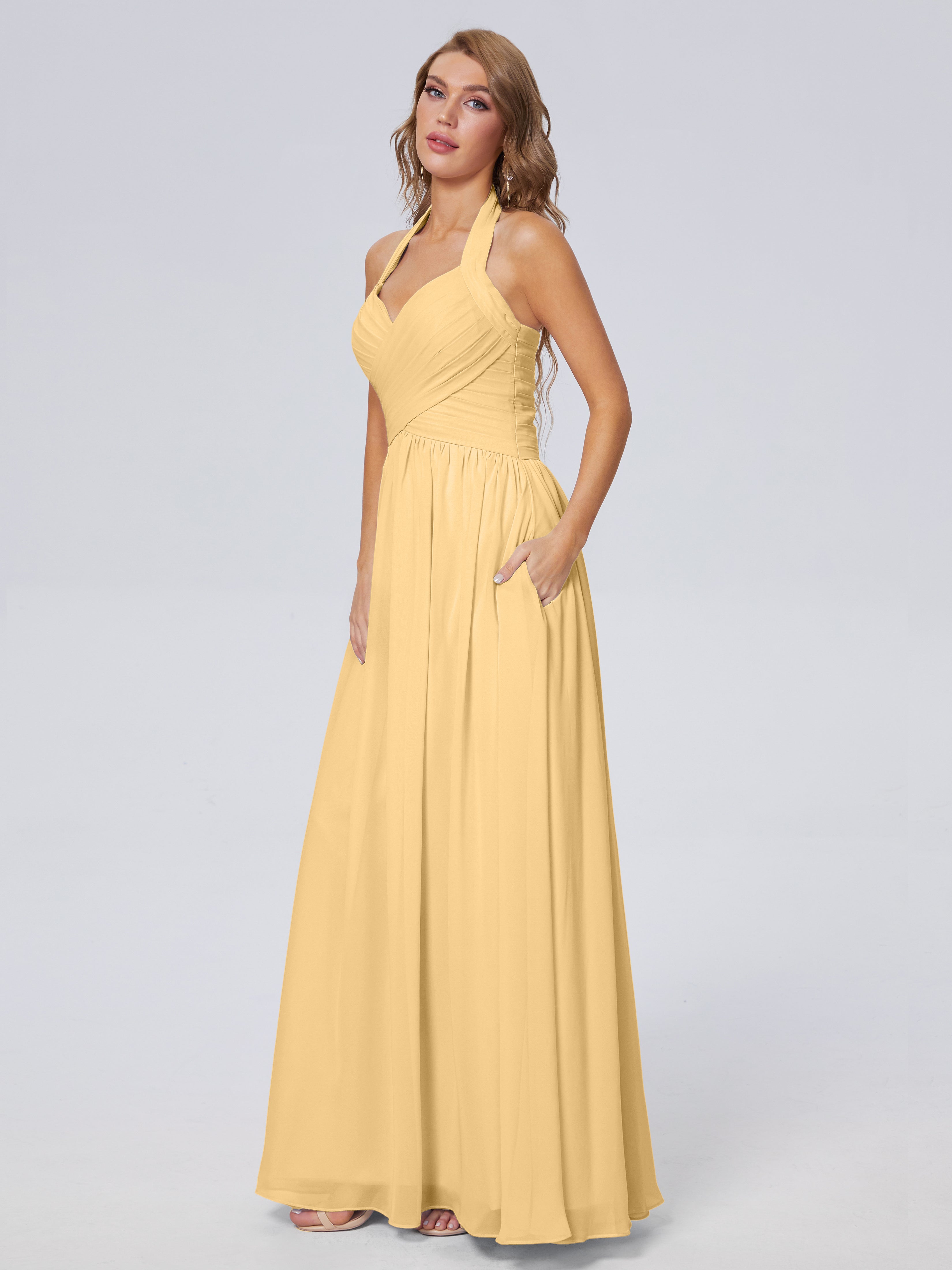 Amaya Atemberaubende Neckholder-Chiffon-Brautjungfernkleider