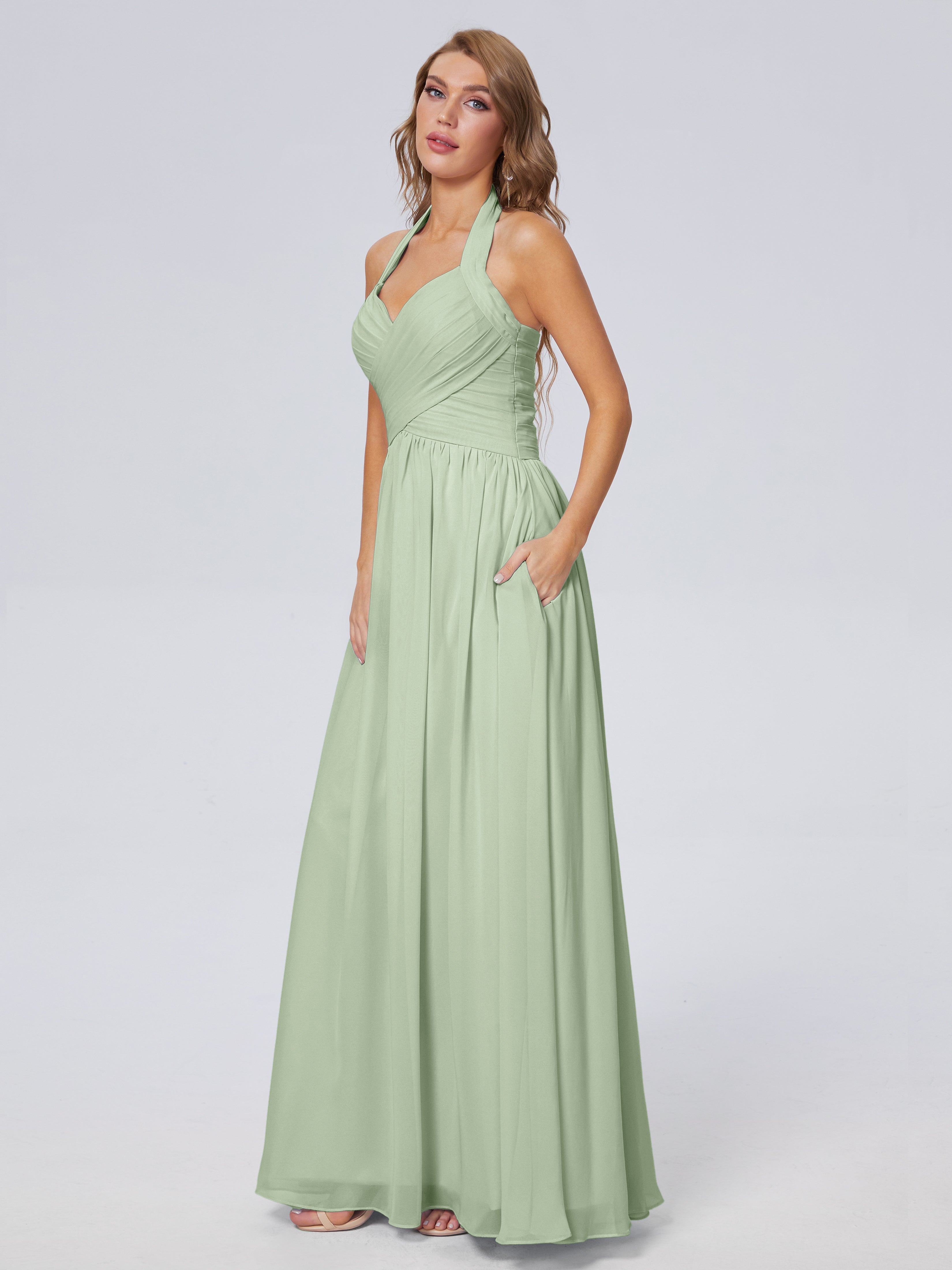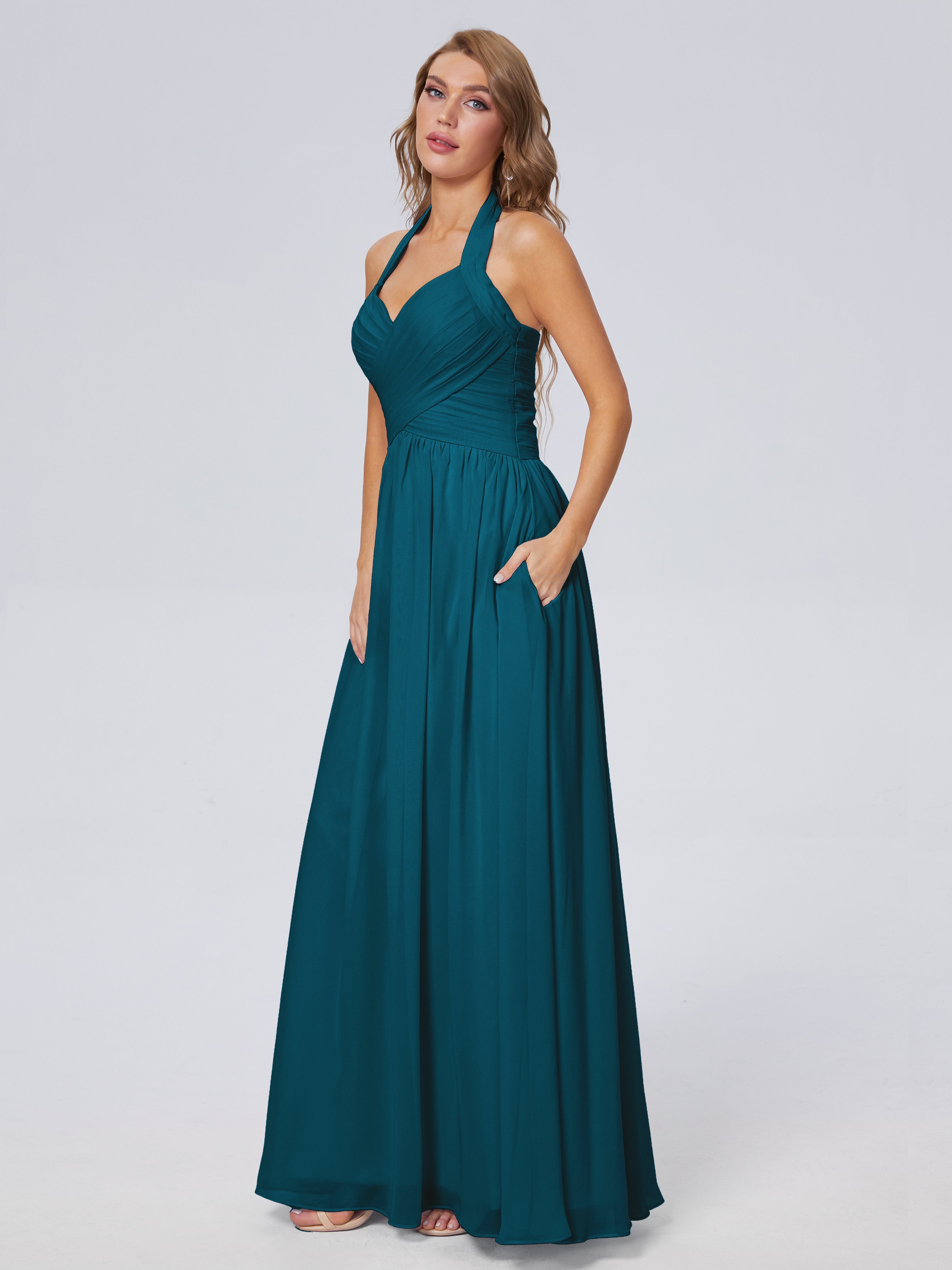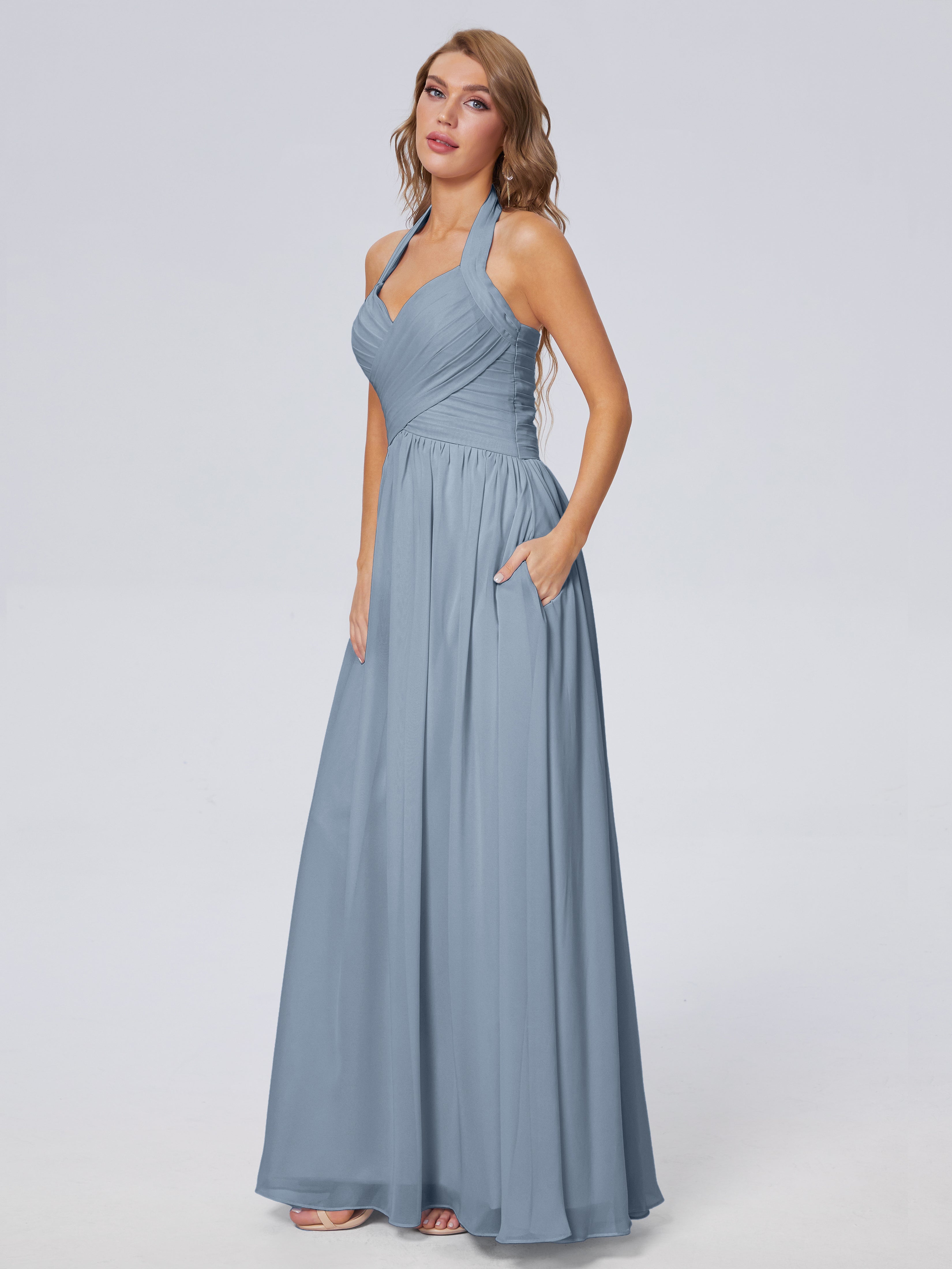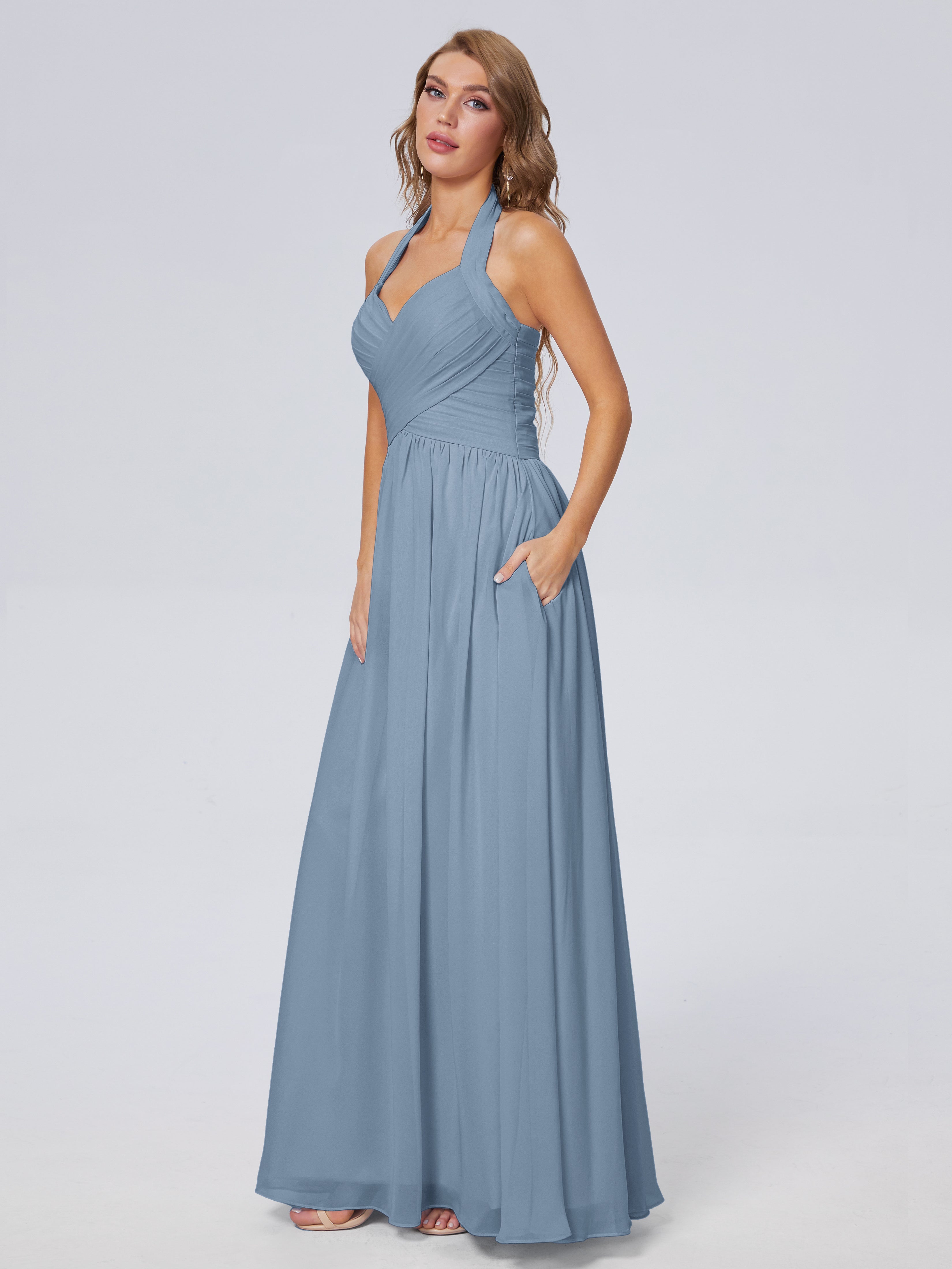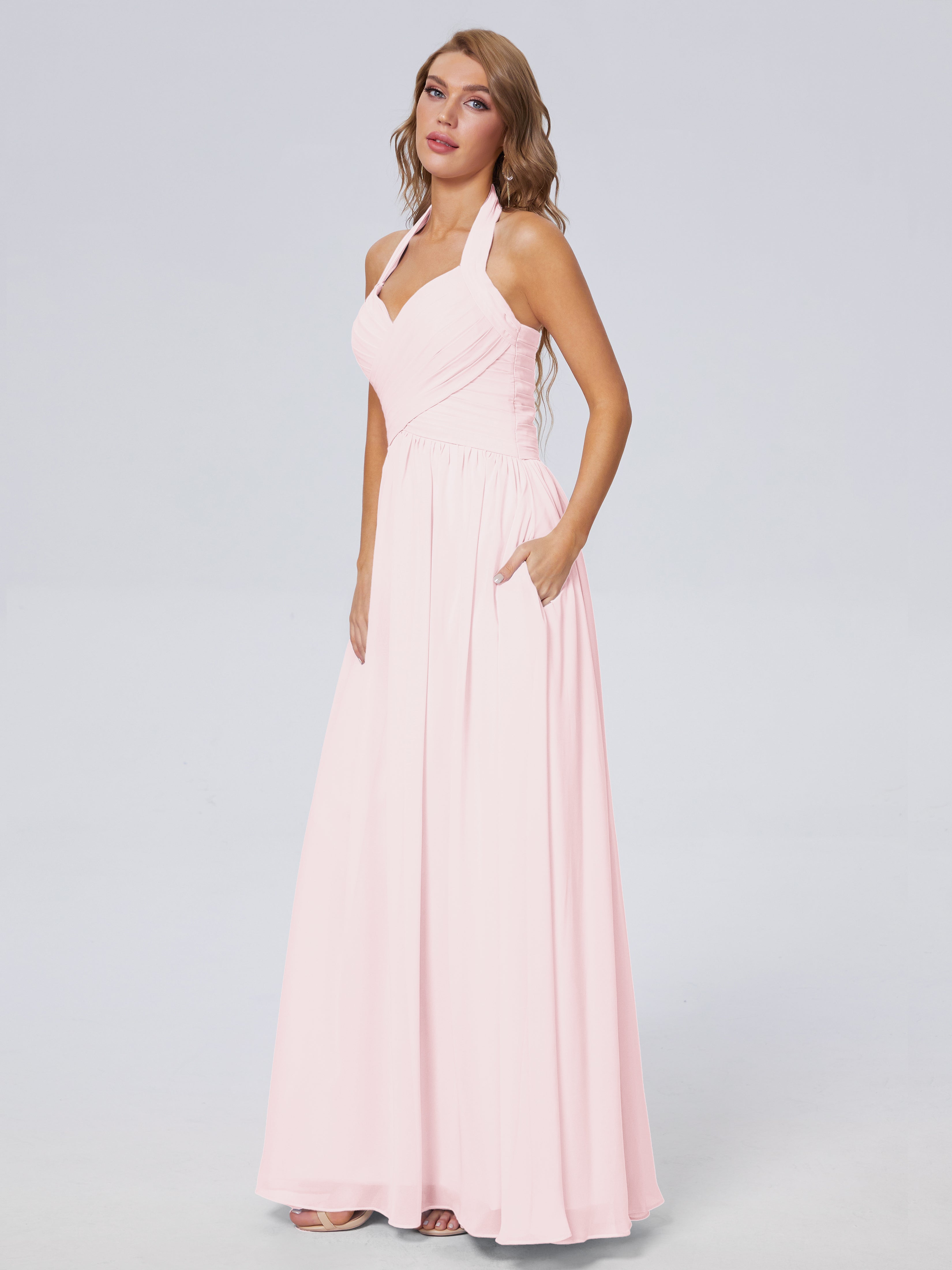 Amaya Atemberaubende Neckholder-Chiffon-Brautjungfernkleider