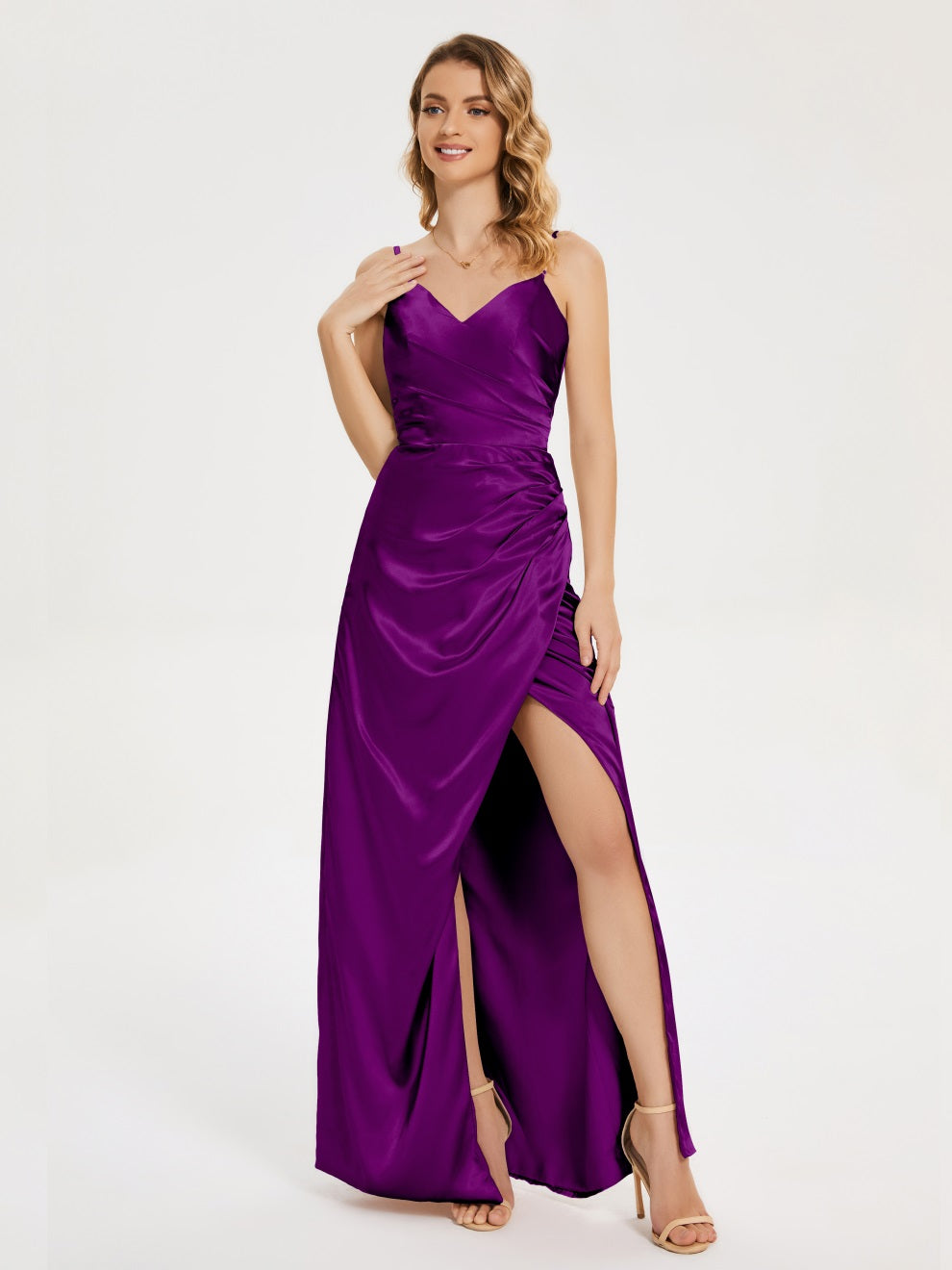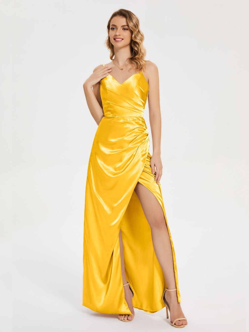 Aniyah Spaghettiträger mit Falte Satin Süße Brautjungfernkleider