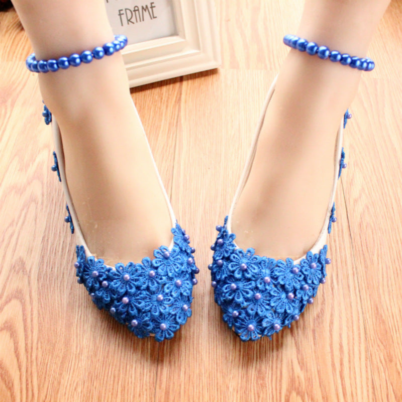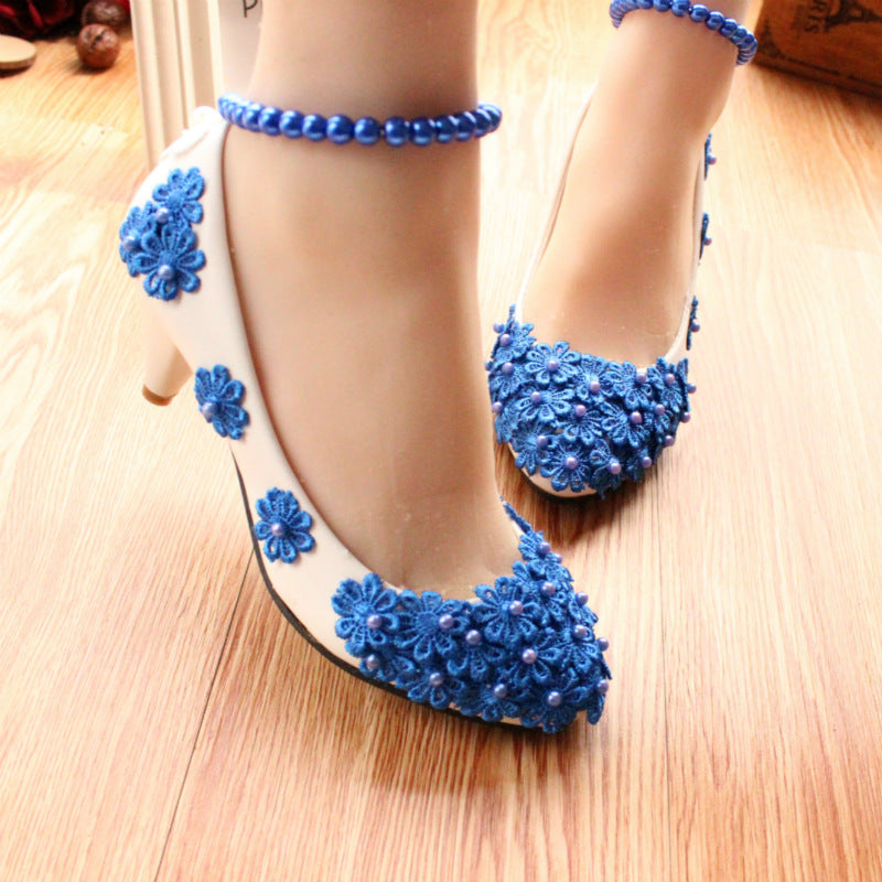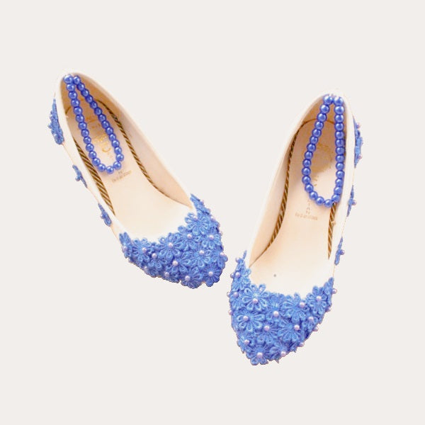 Aquamarin Perle Knöchel Schleife Spitze Blume Hochzeit Schuhe