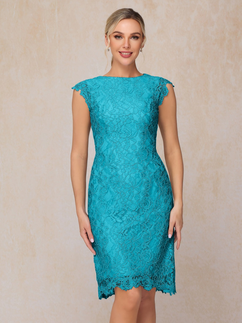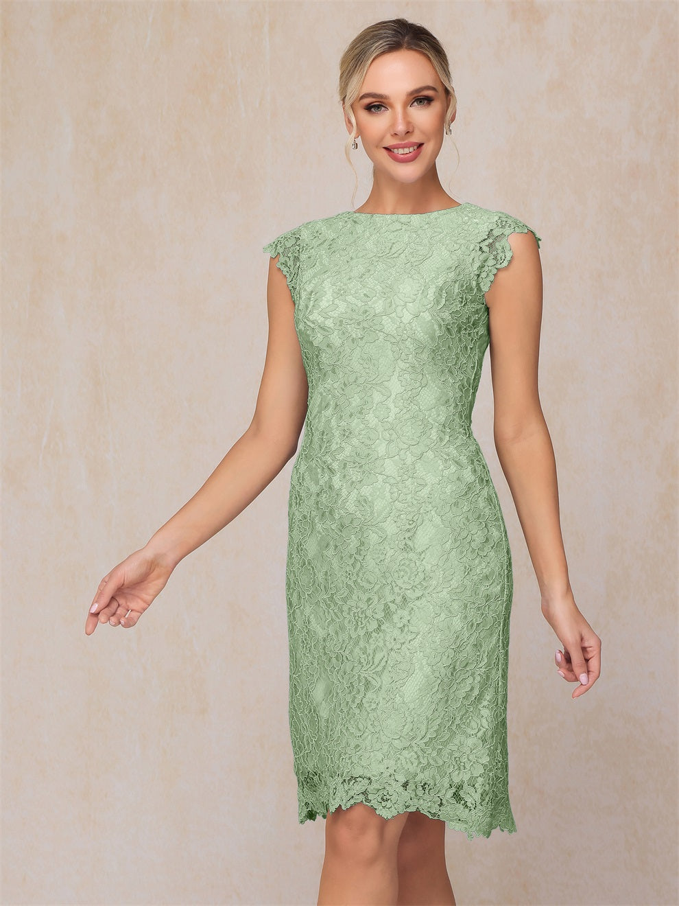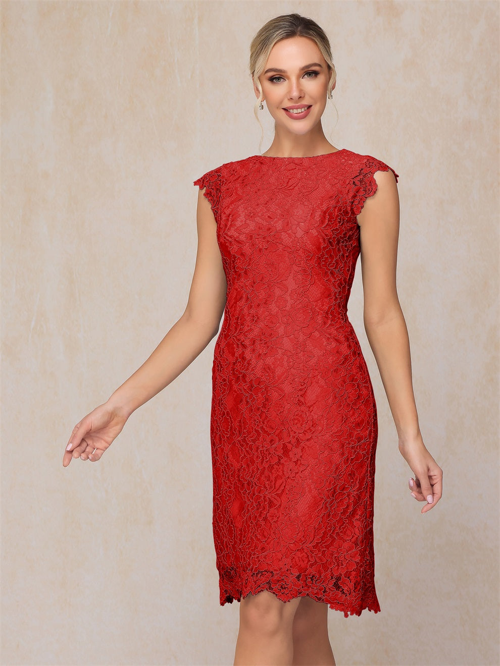 Ärmel Schiffskragen Etui Knielang Geschlitzt Spitze Kleid Mutter der Braut