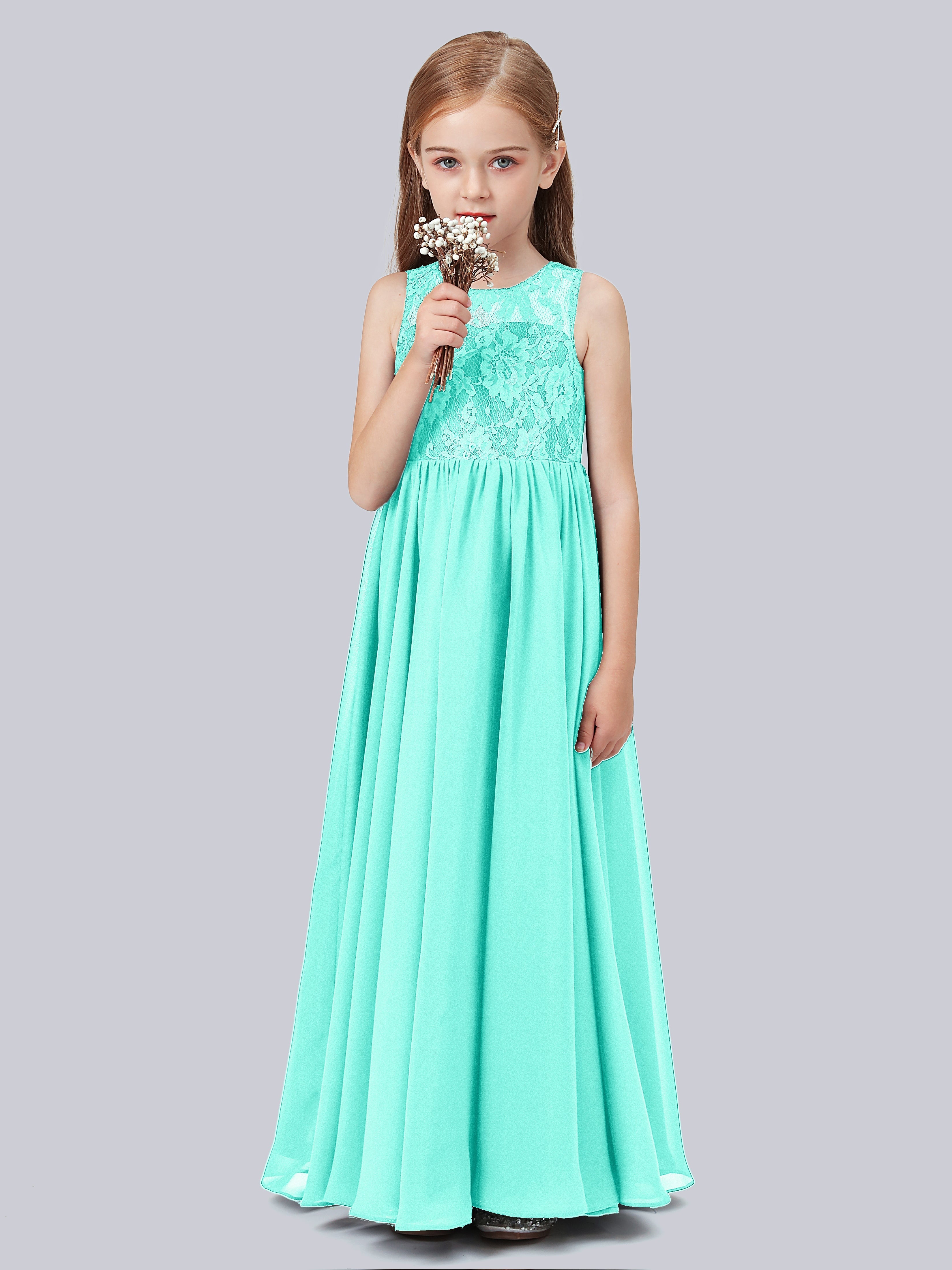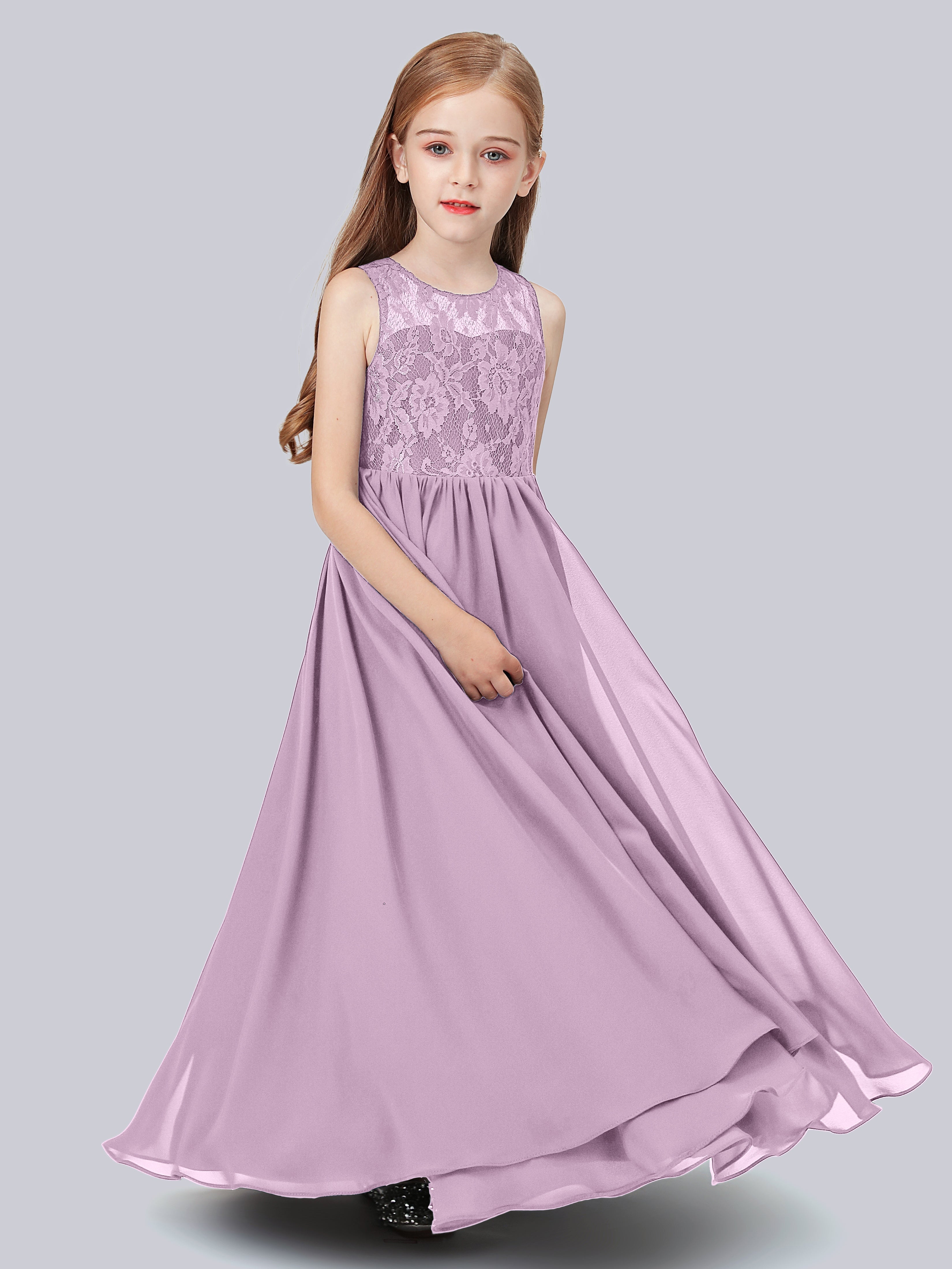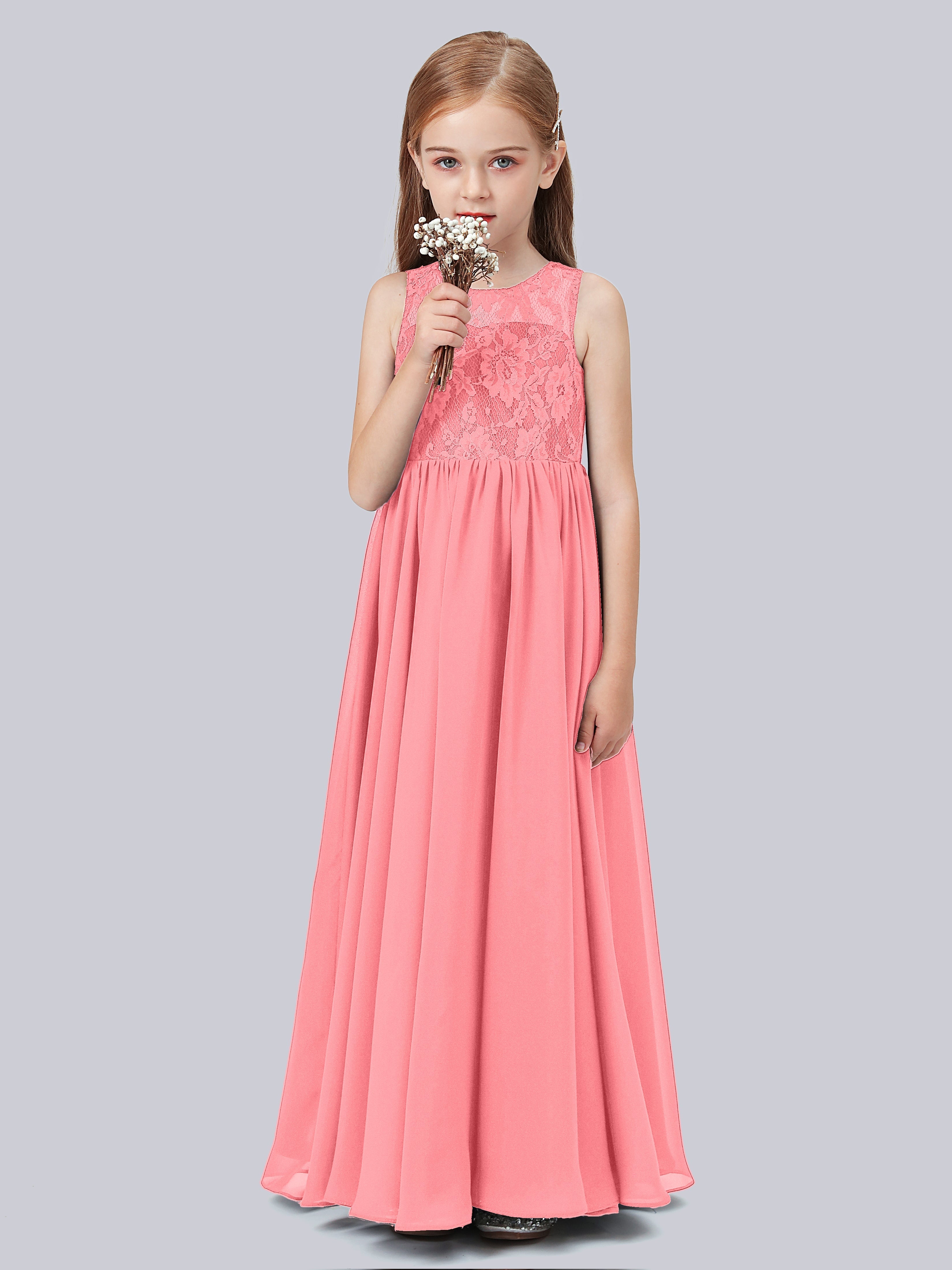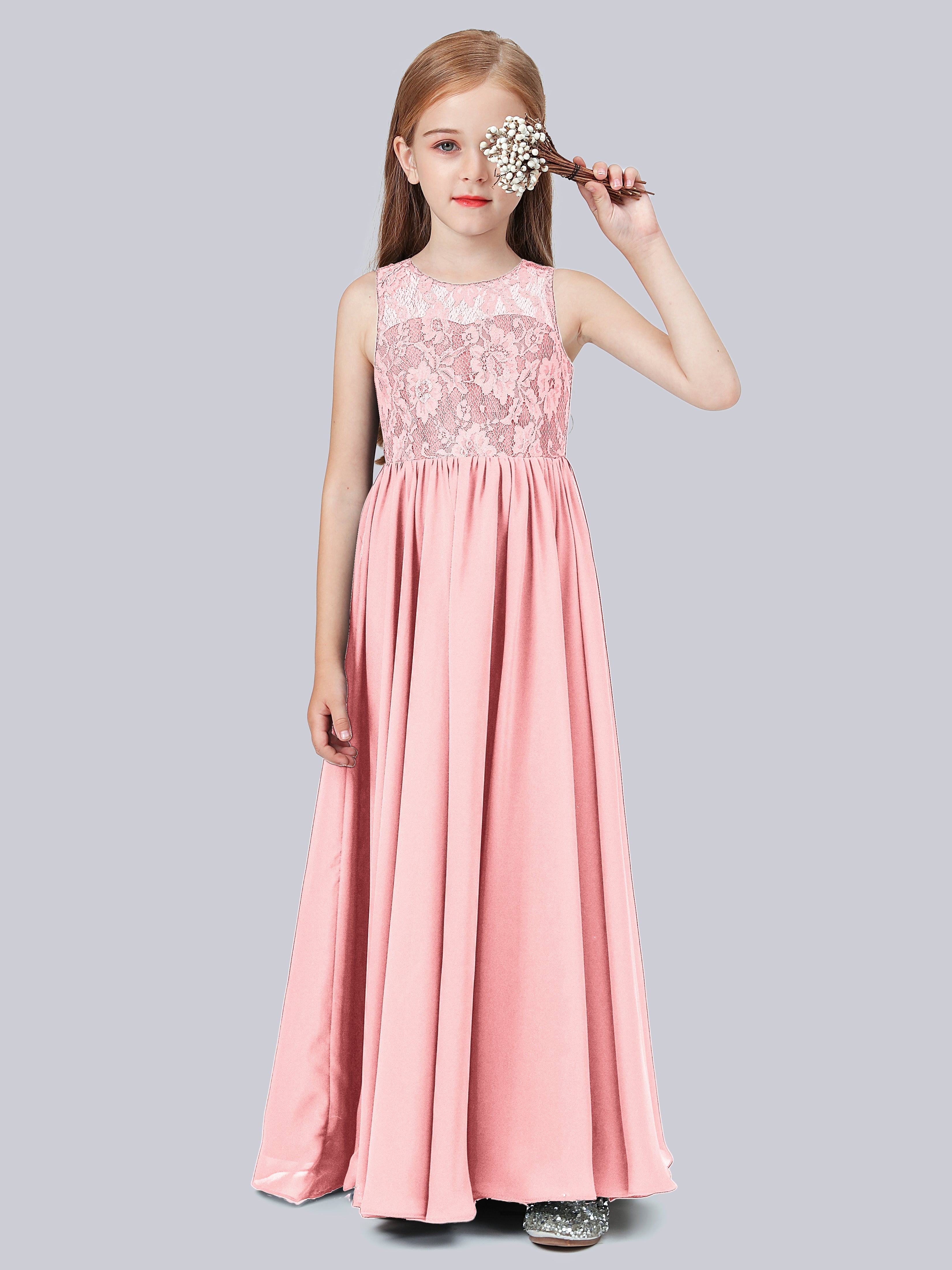 Ärmelloses Spitzen-Mesh-Kleid für Junge Brautjungfern