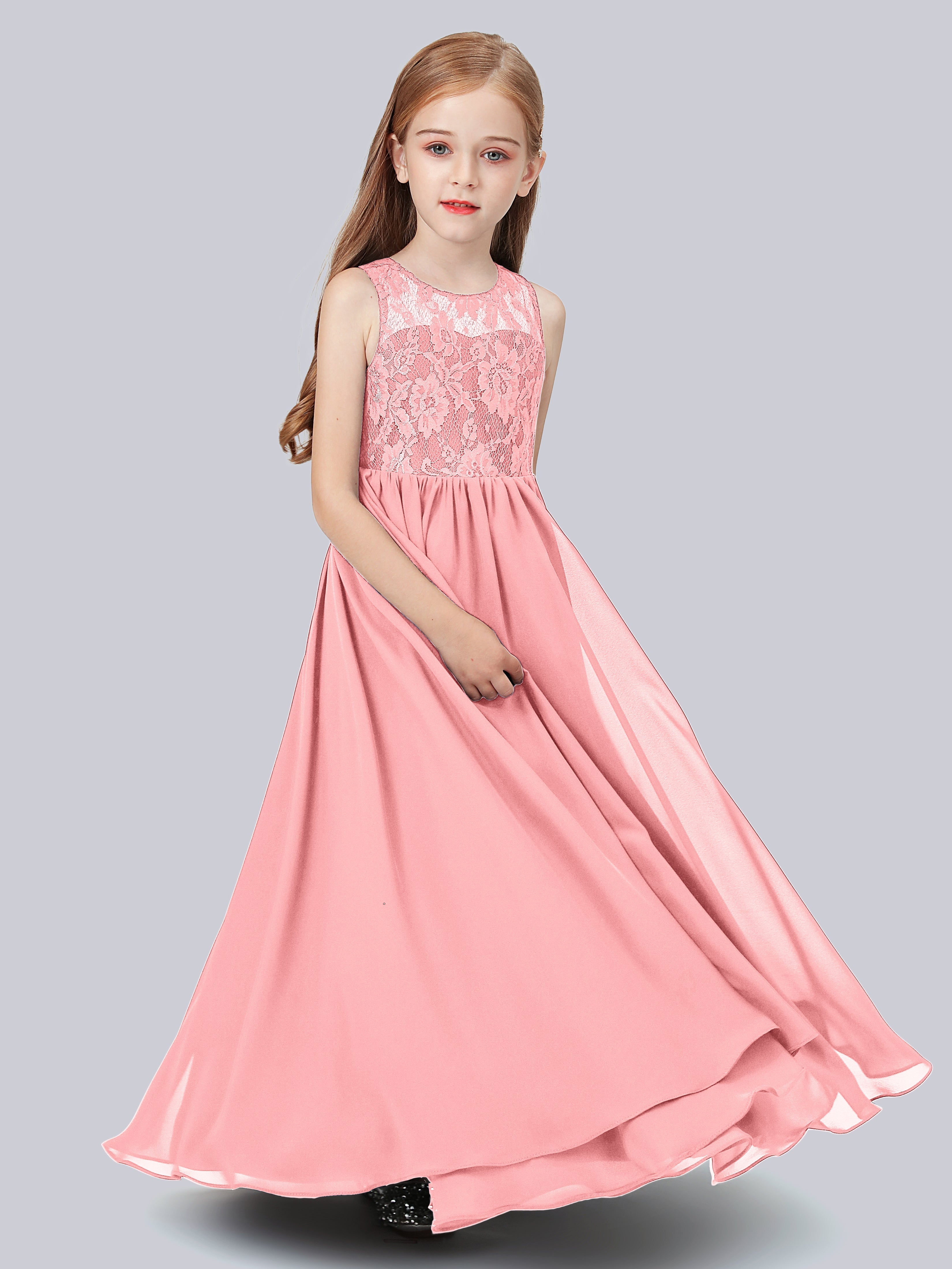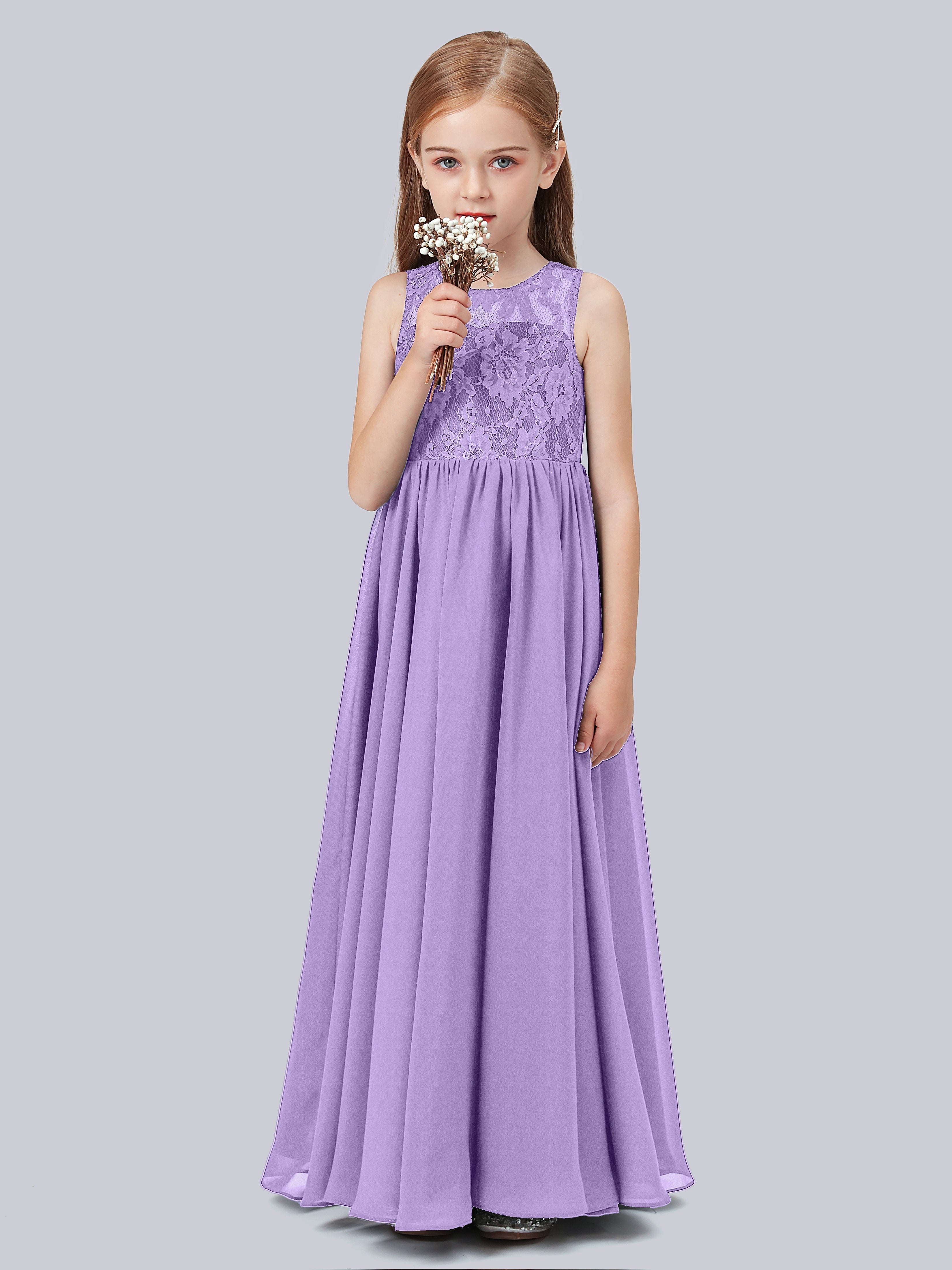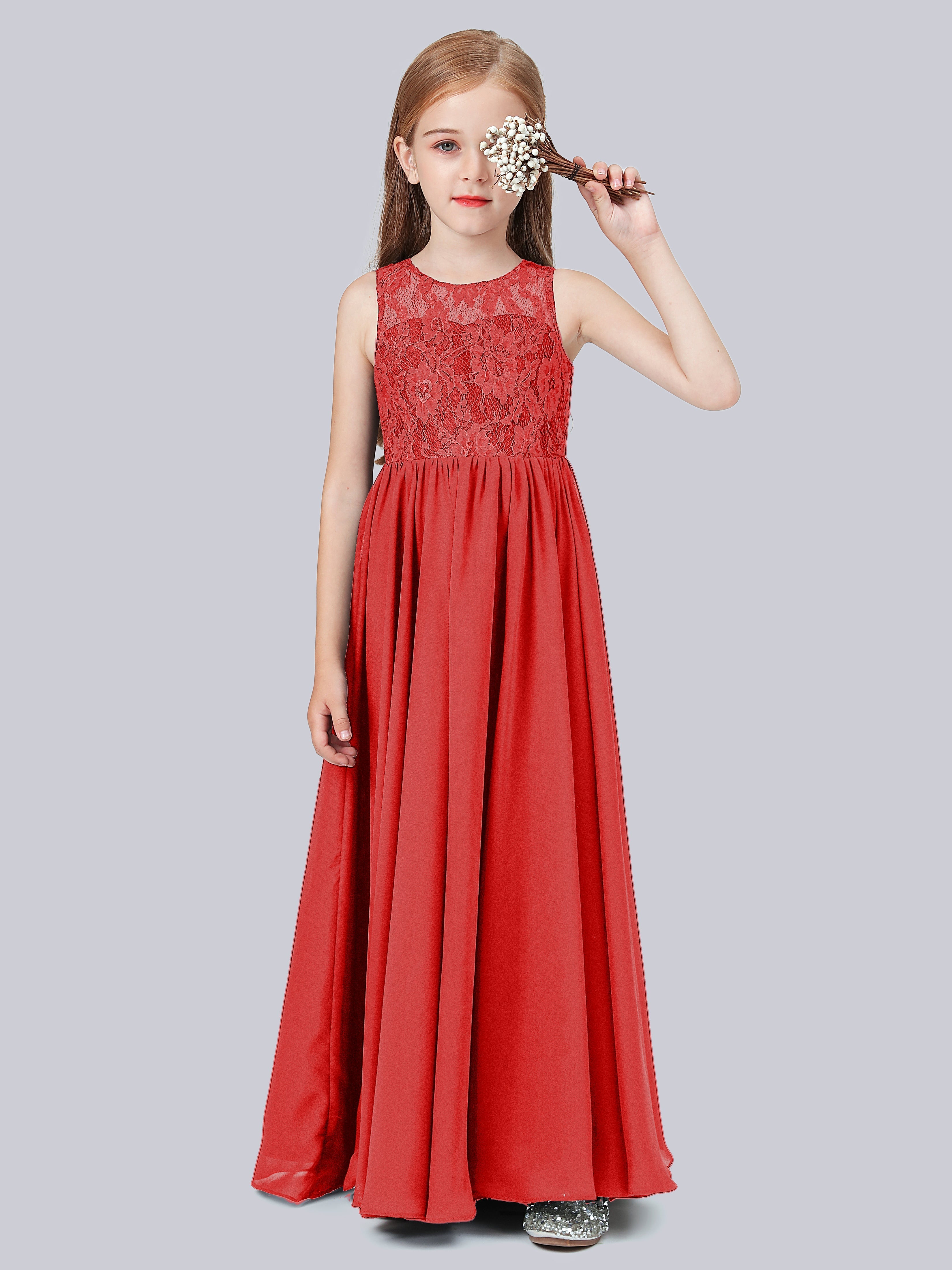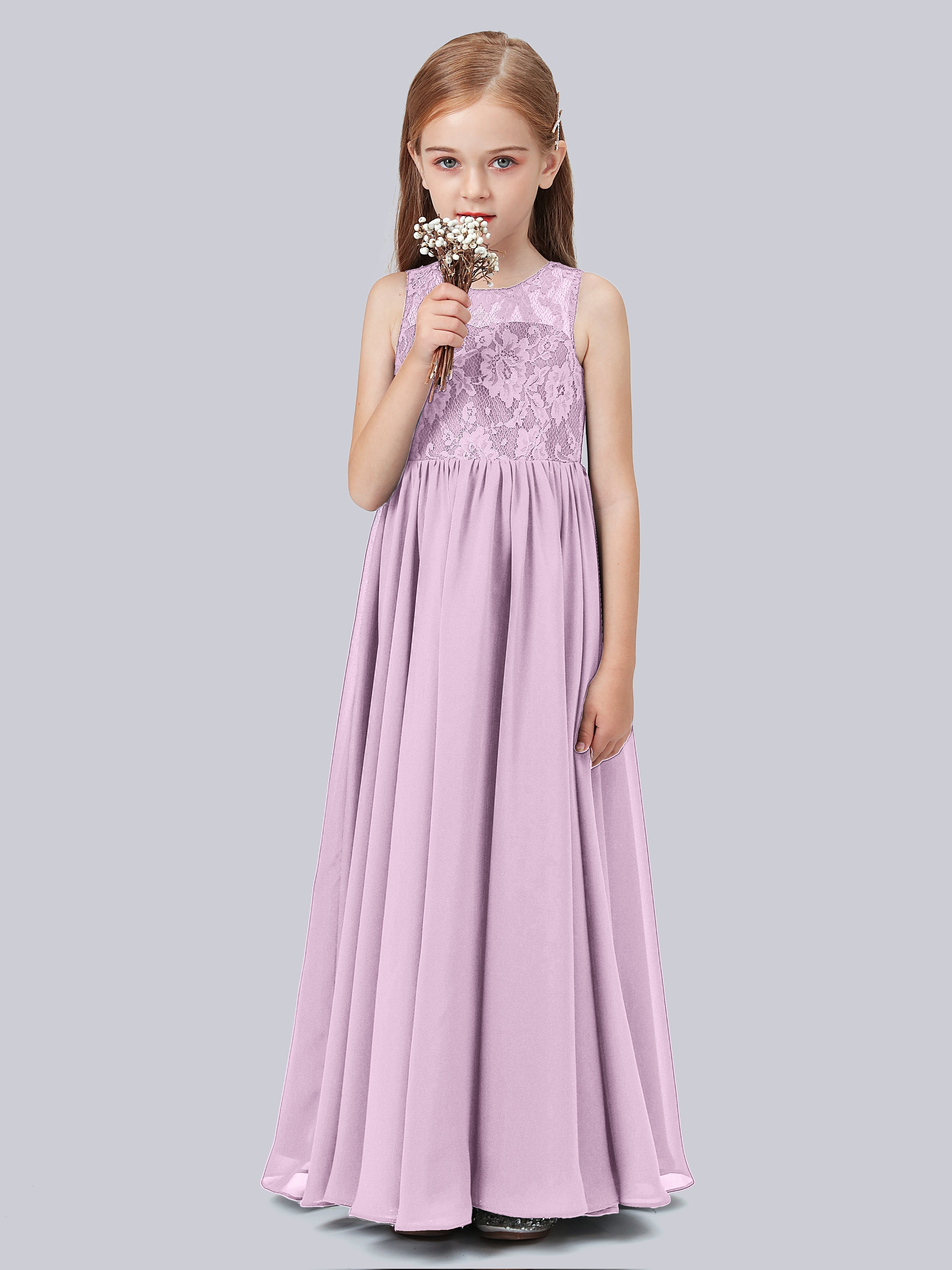 Ärmelloses Spitzen-Mesh-Kleid für Junge Brautjungfern