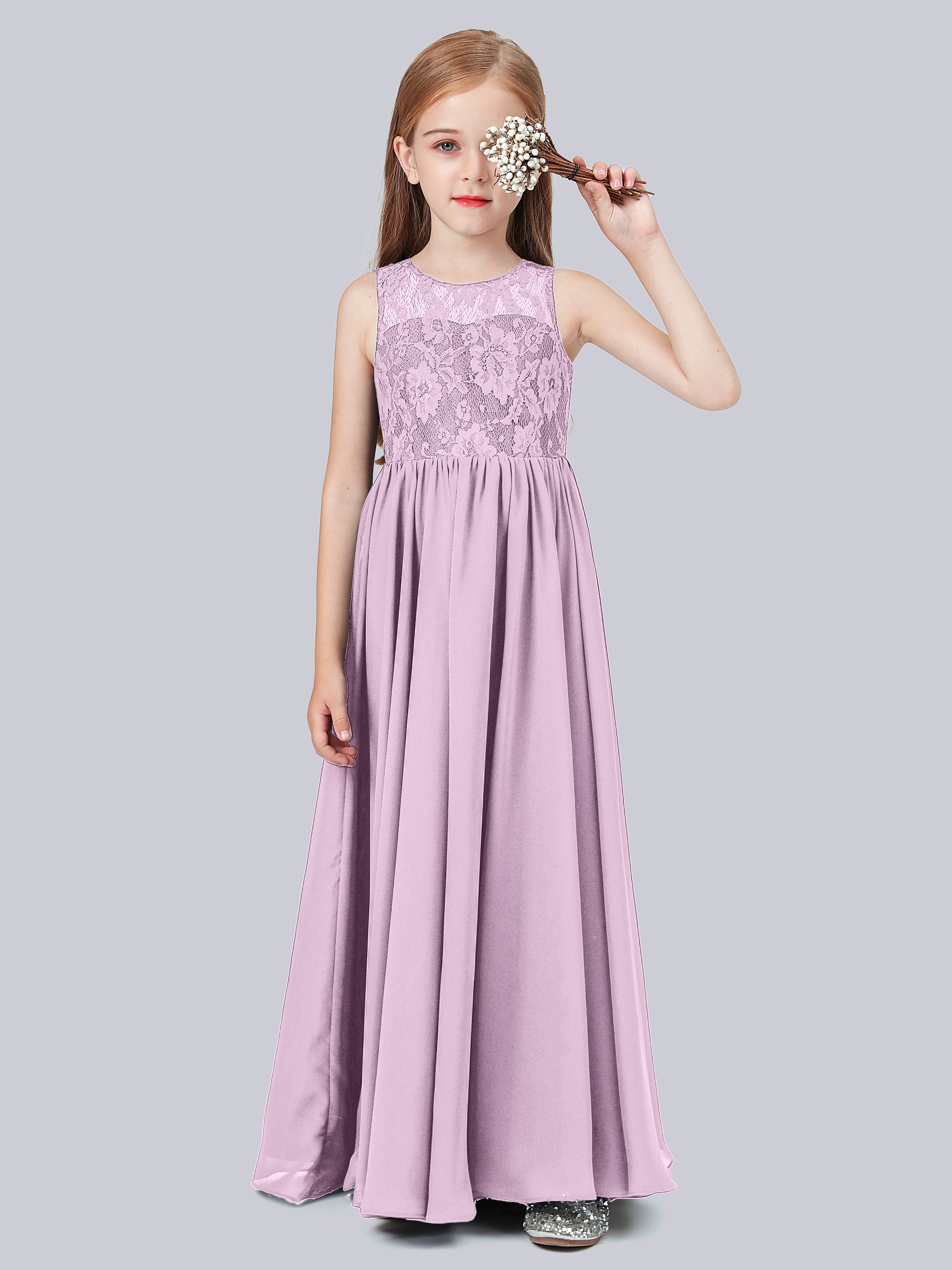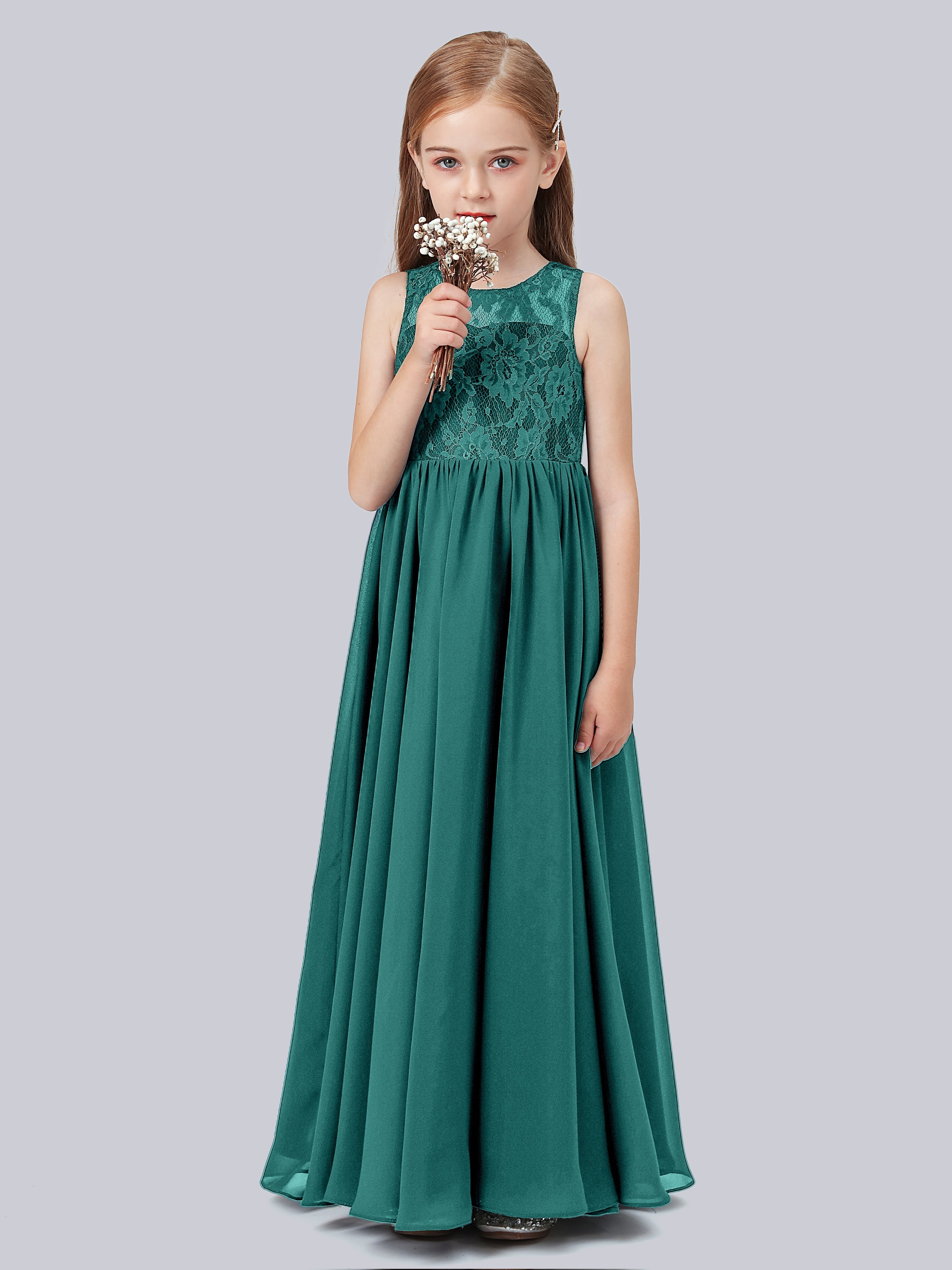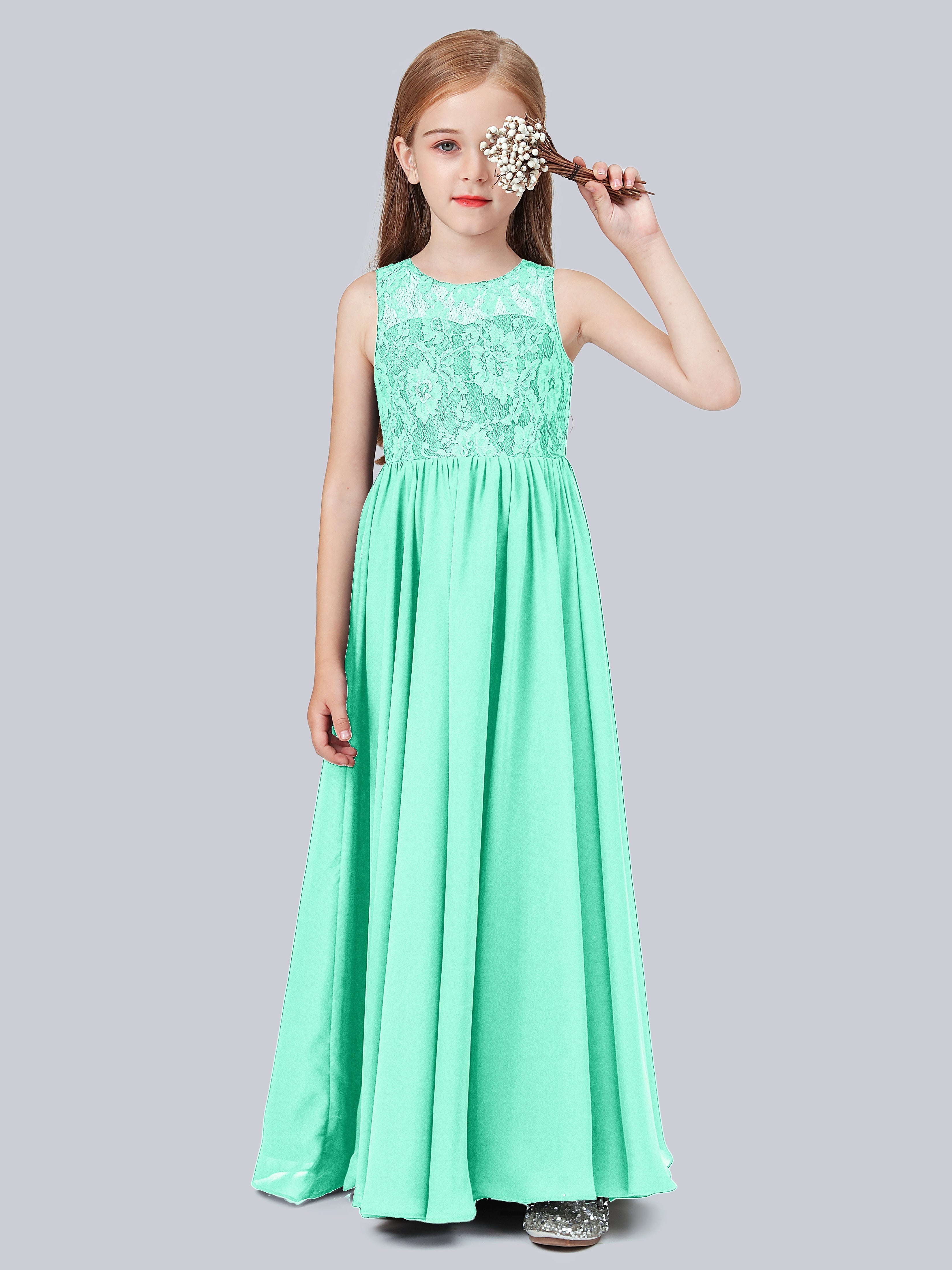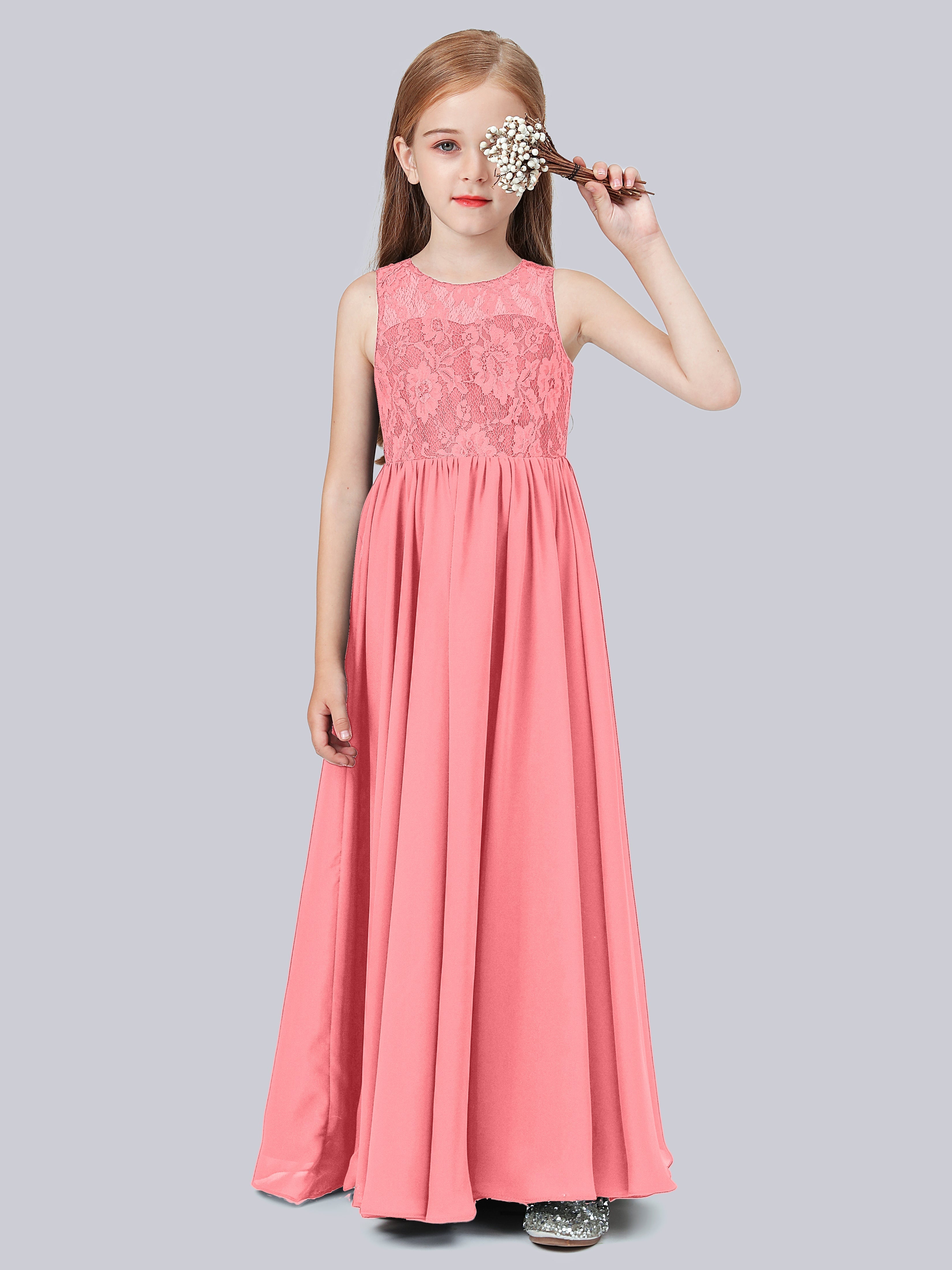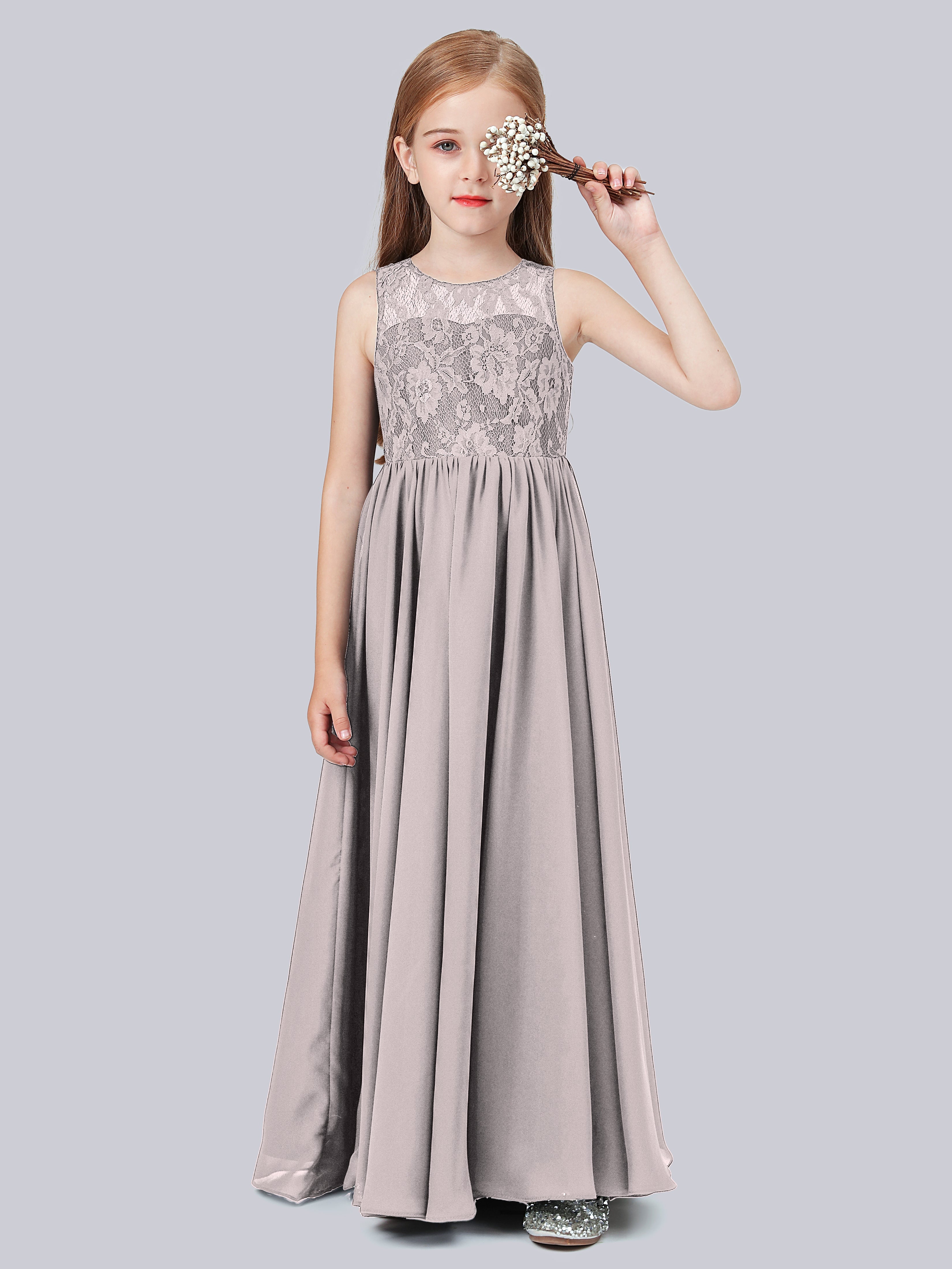 Ärmelloses Spitzen-Mesh-Kleid für Junge Brautjungfern