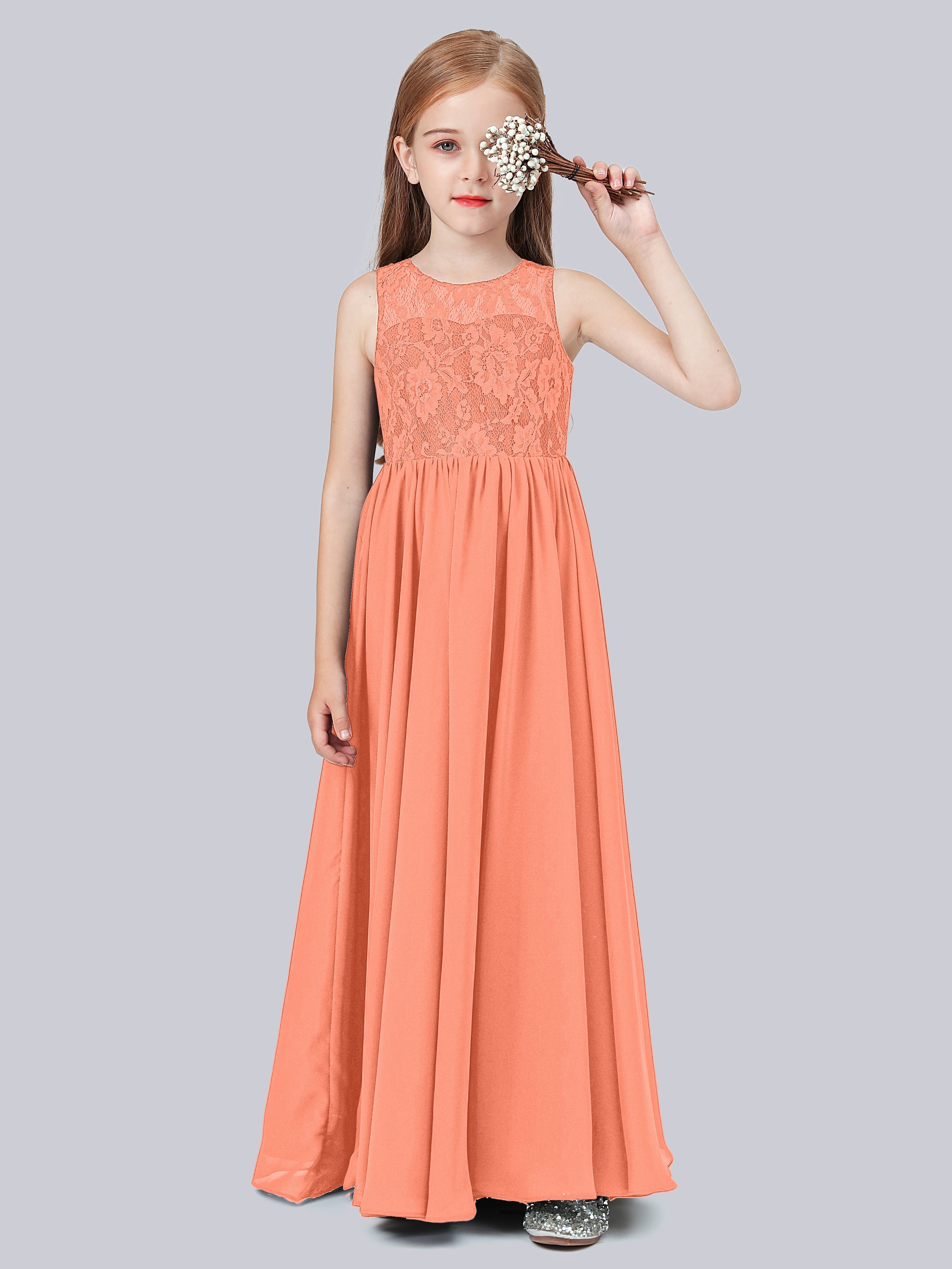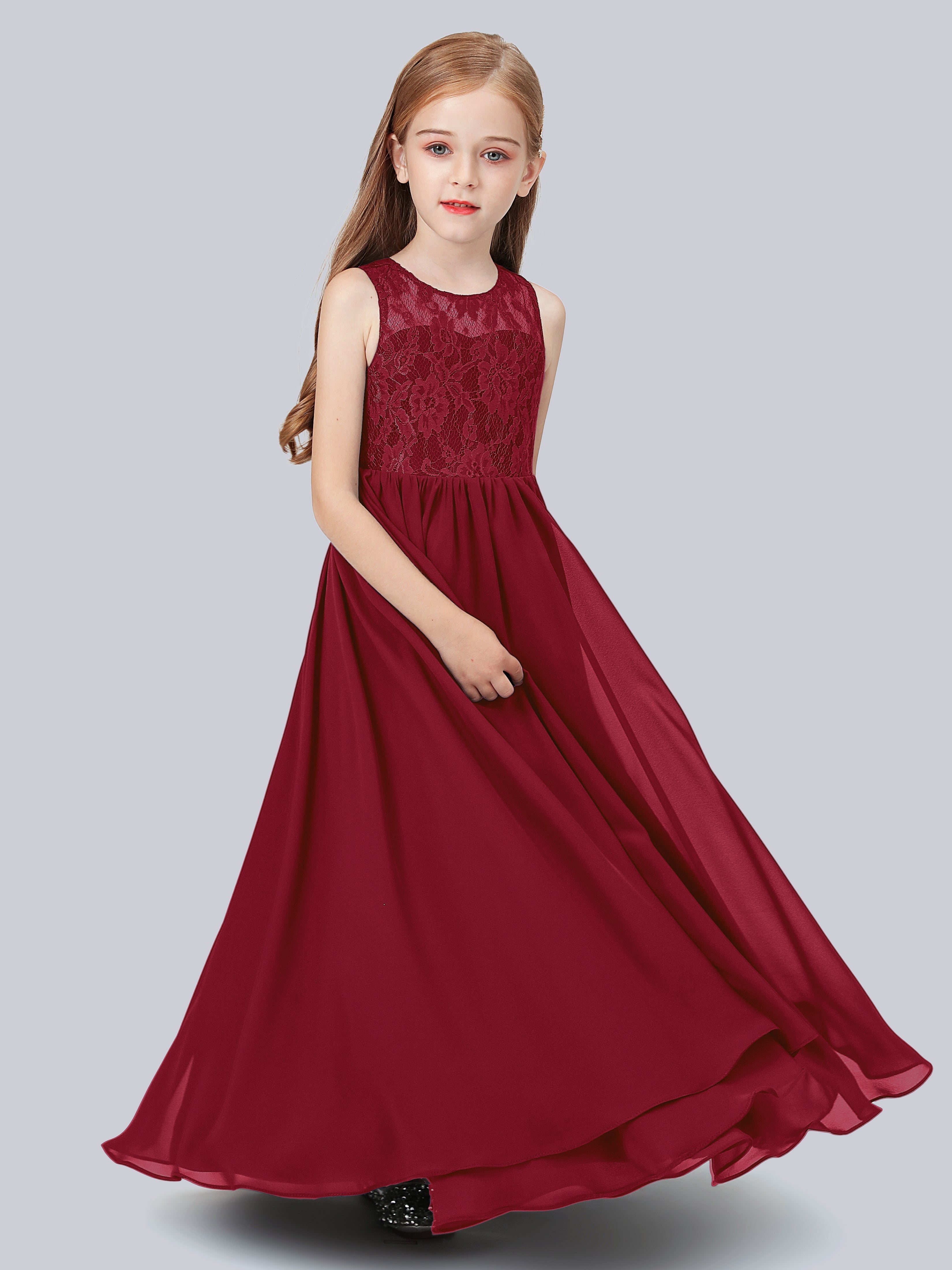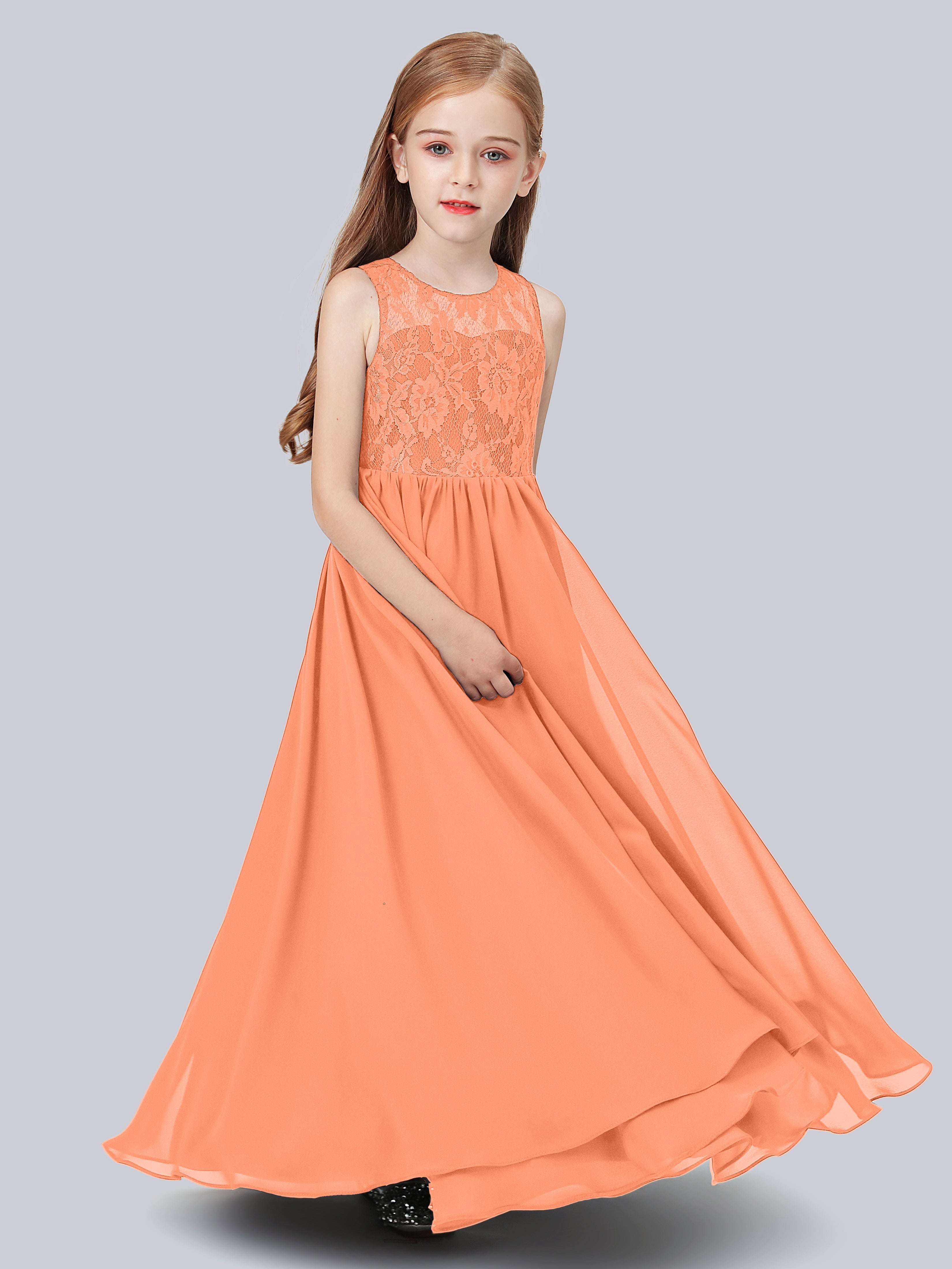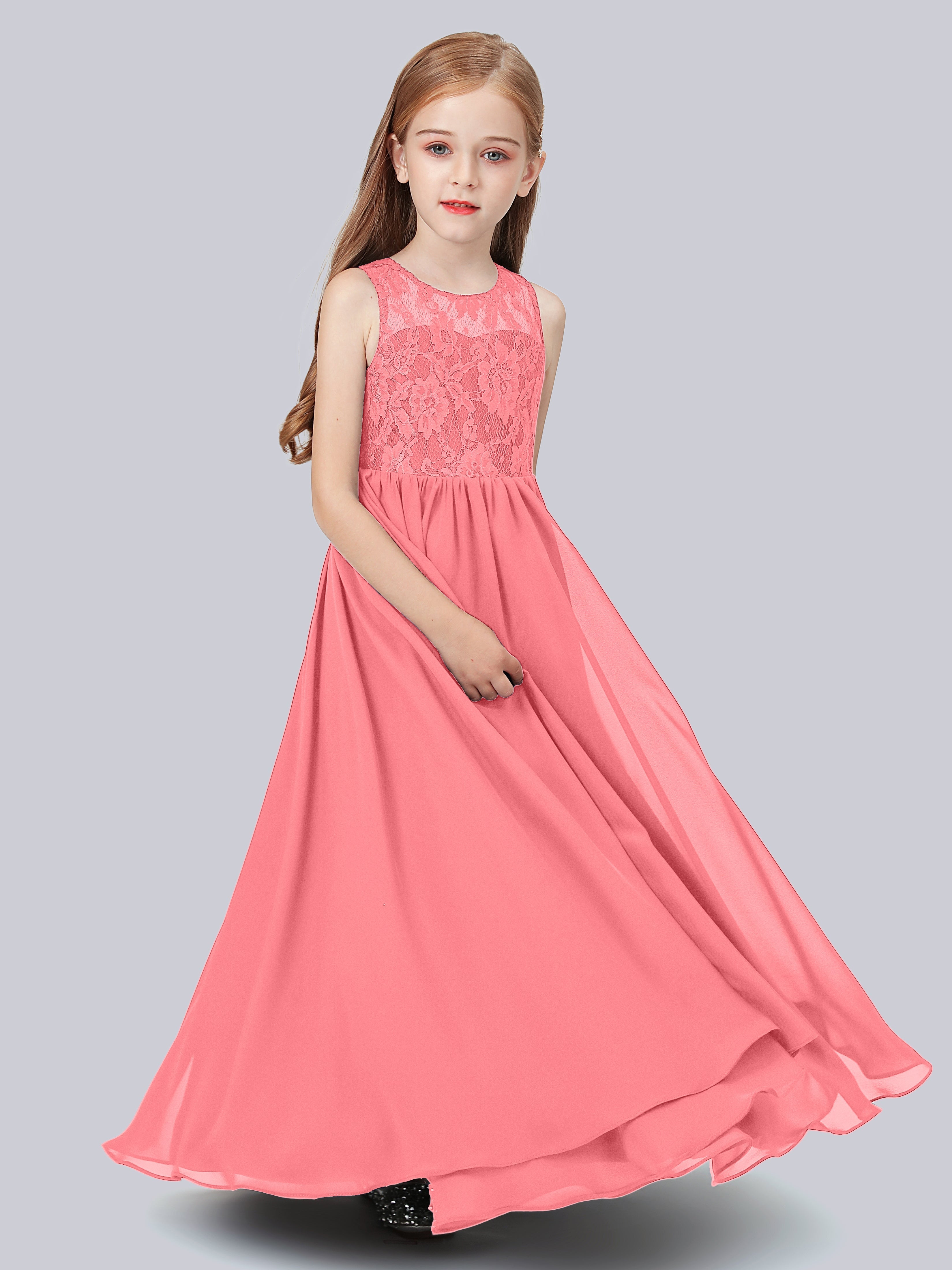 Ärmelloses Spitzen-Mesh-Kleid für Junge Brautjungfern