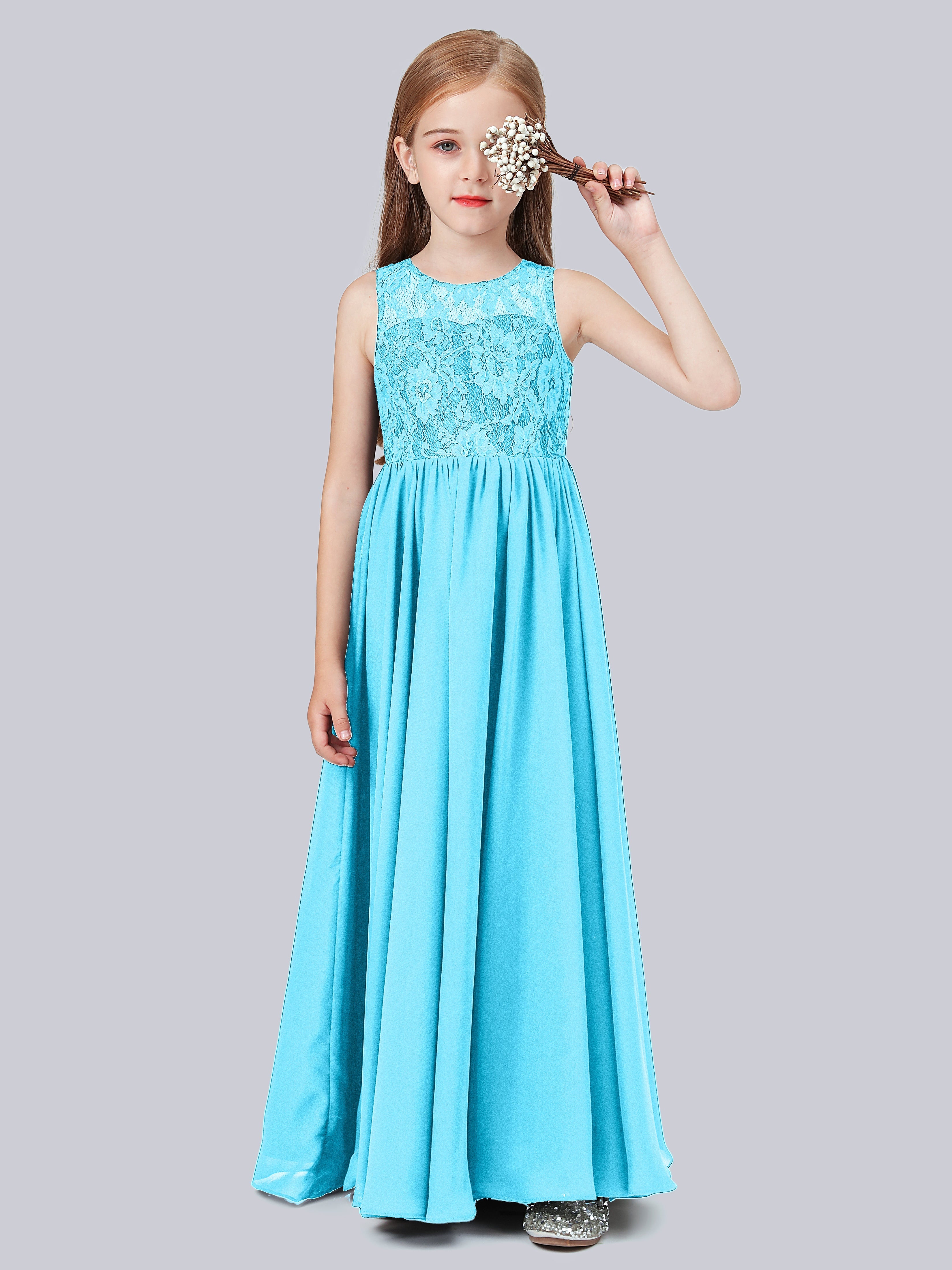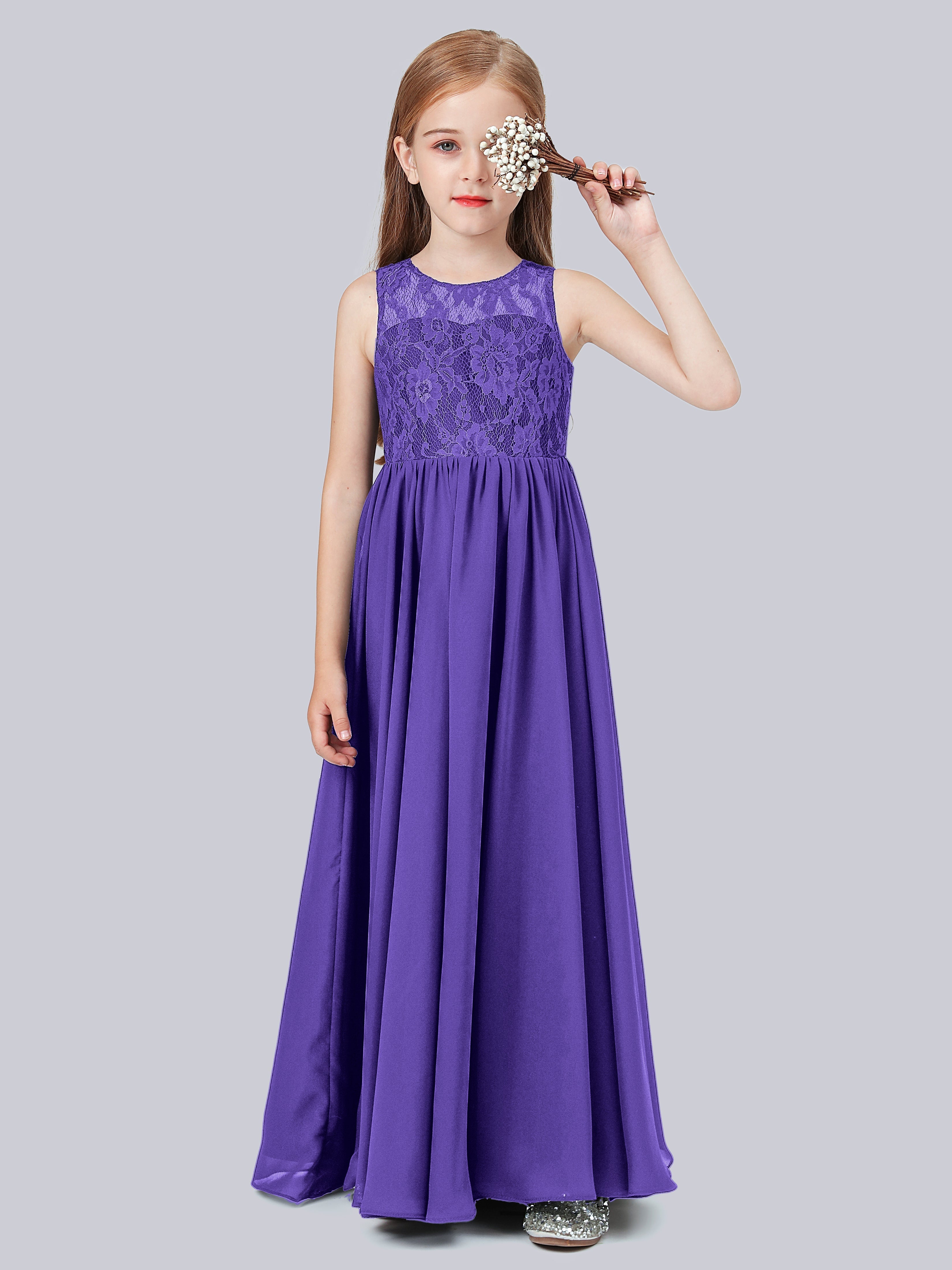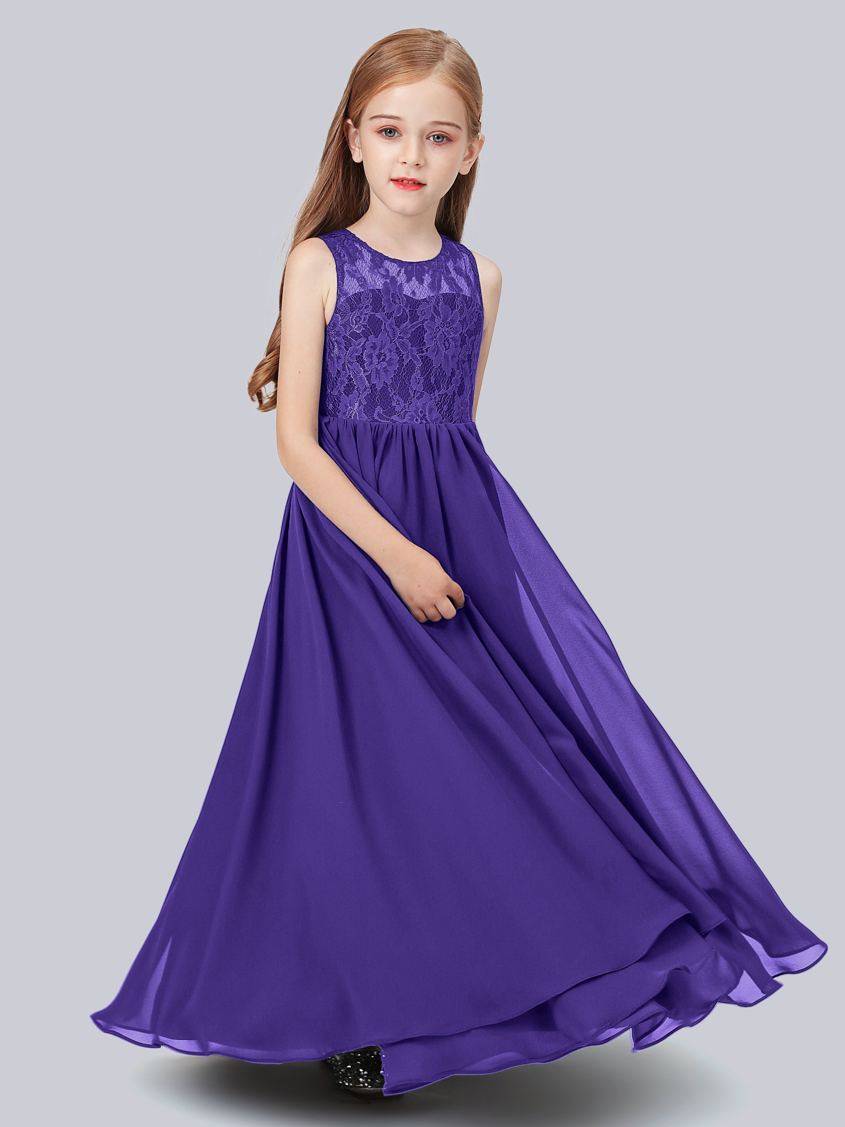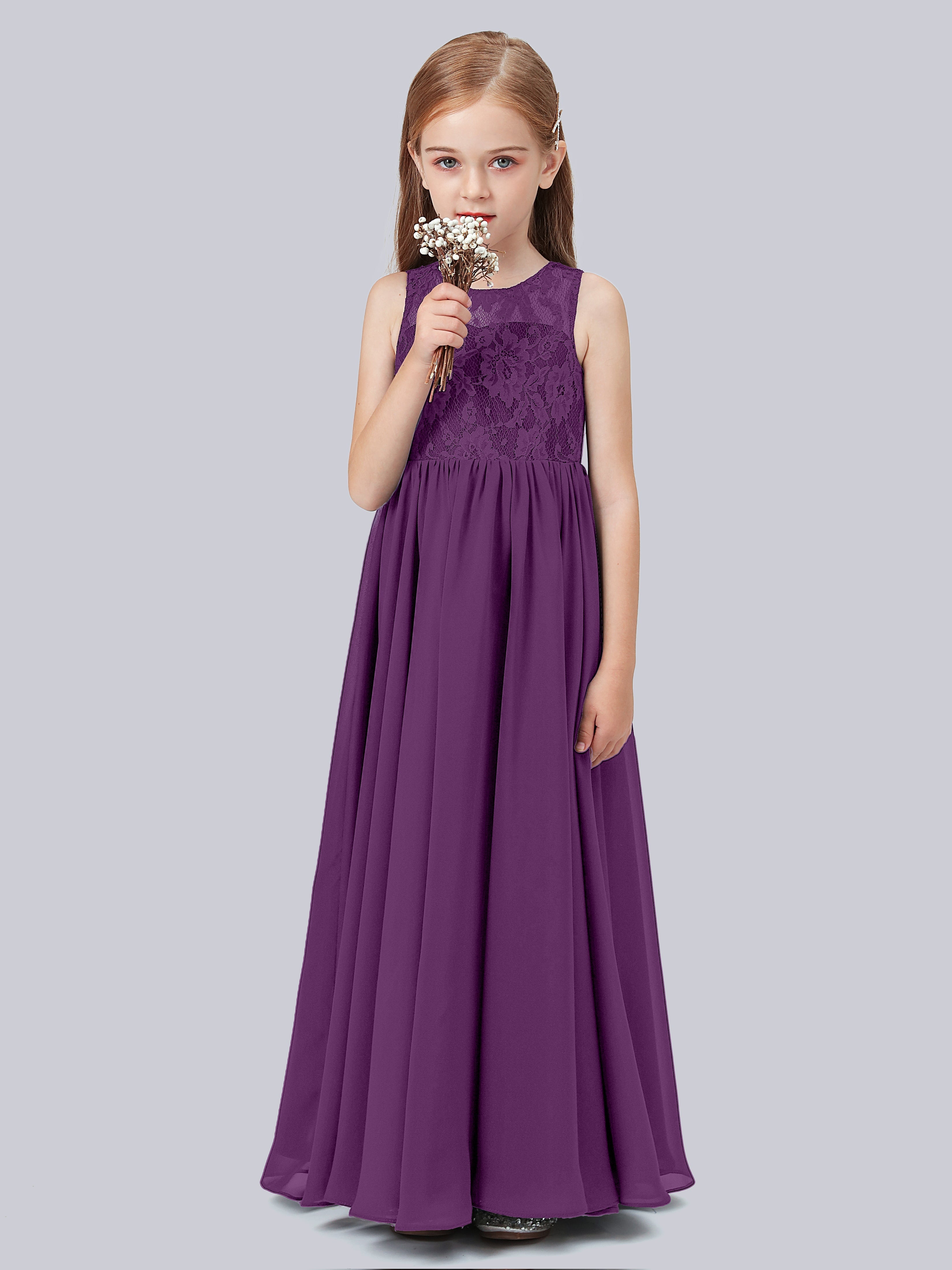 Ärmelloses Spitzen-Mesh-Kleid für Junge Brautjungfern
