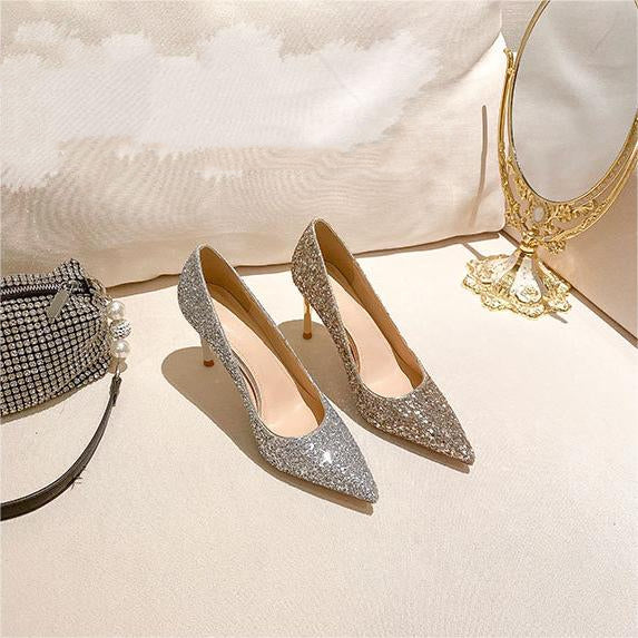Atemberaubende Pailletten Frauen High Heels Hochzeit Schuhe