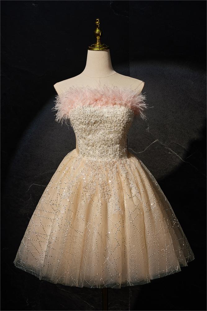 Atemberaubende trägerlose kurze Ballkleider mit Perlen und Federn