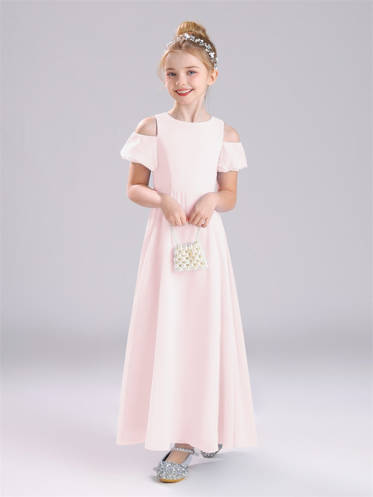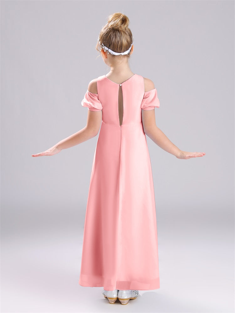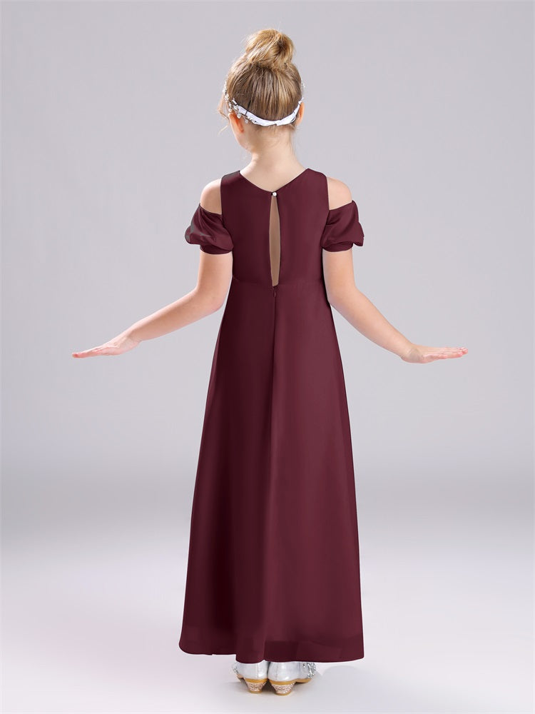 Aus der Schulter Juwel A-Linie Lange Chiffon Junior Brautjungfernkleider