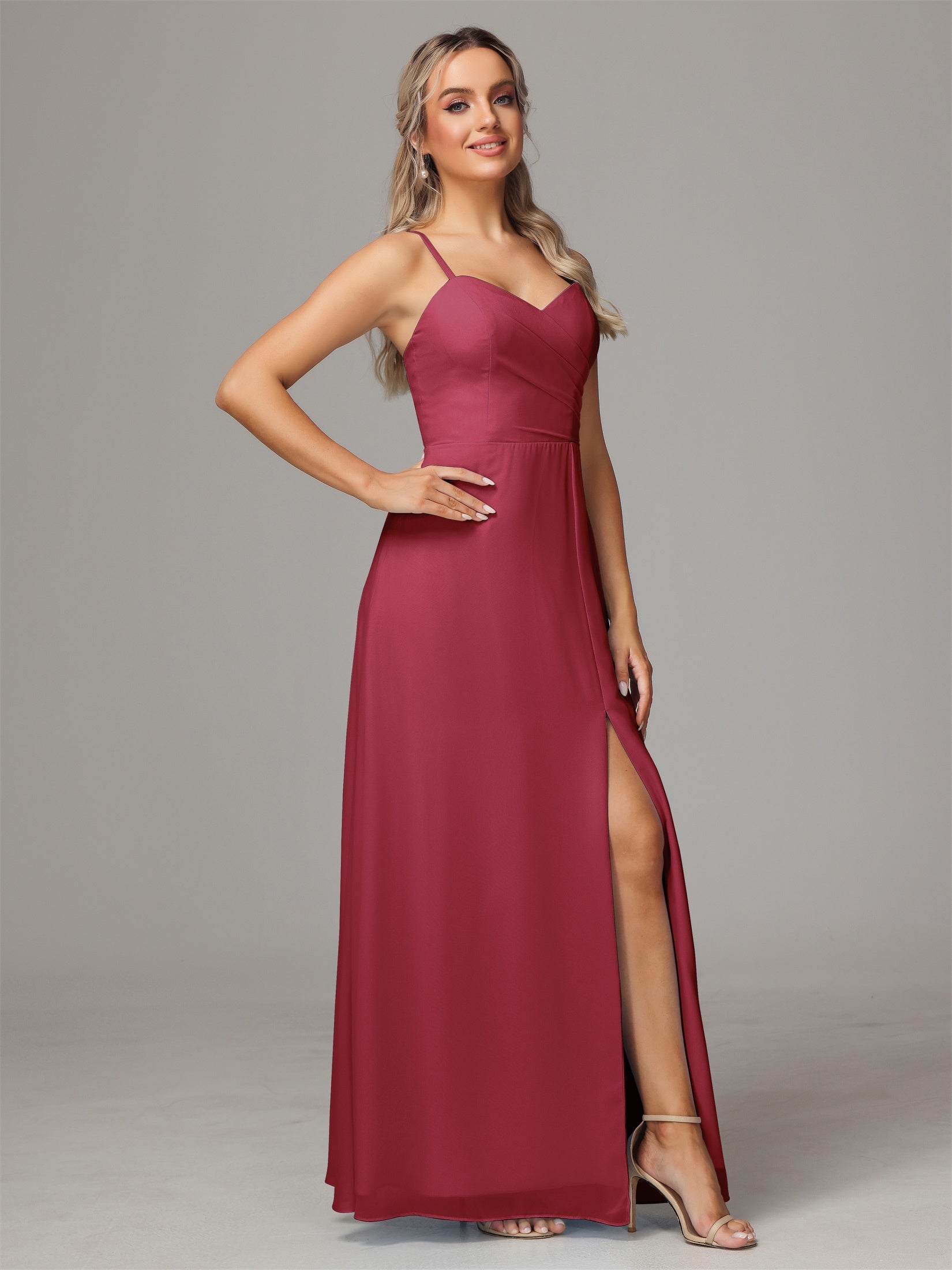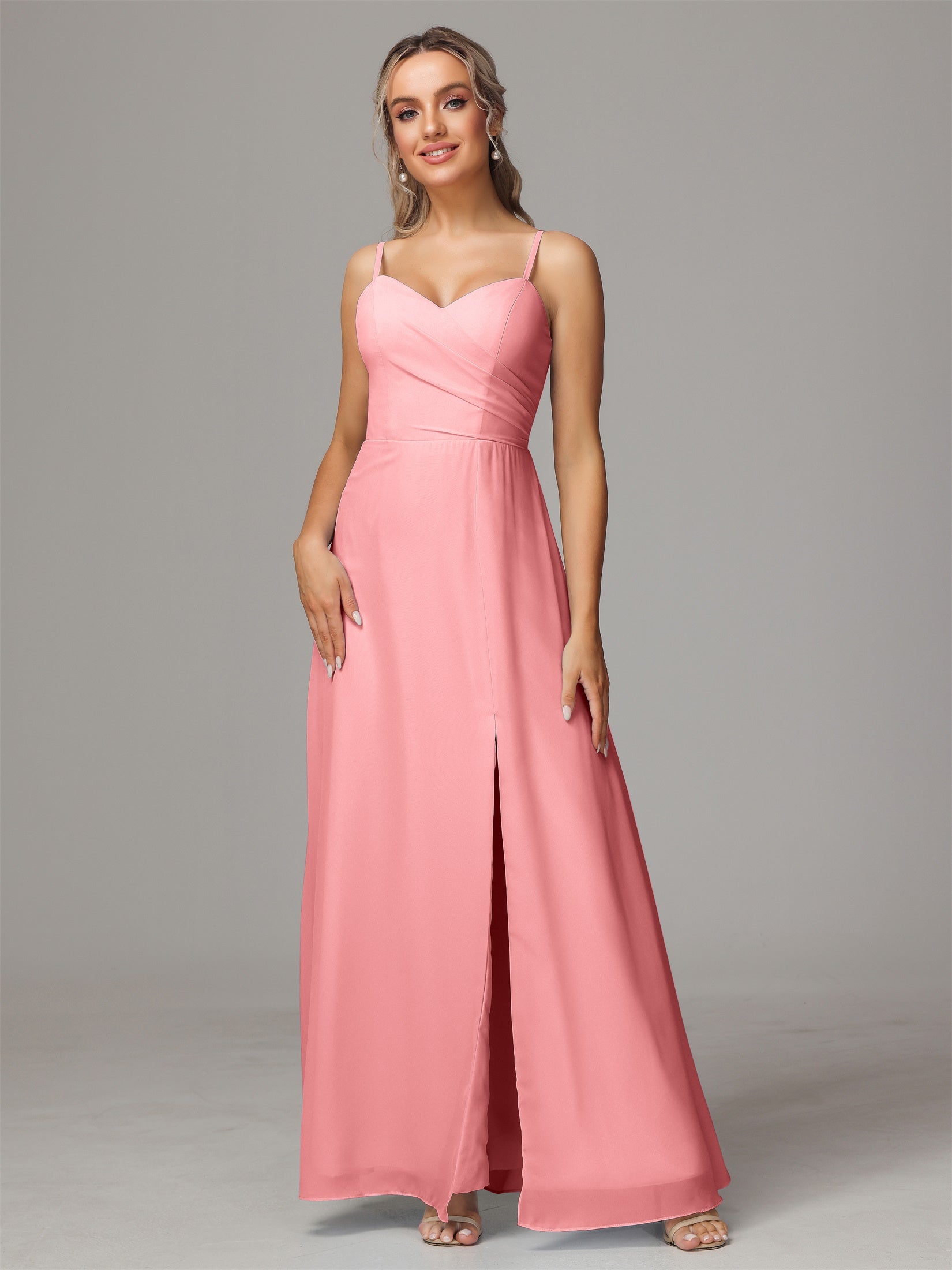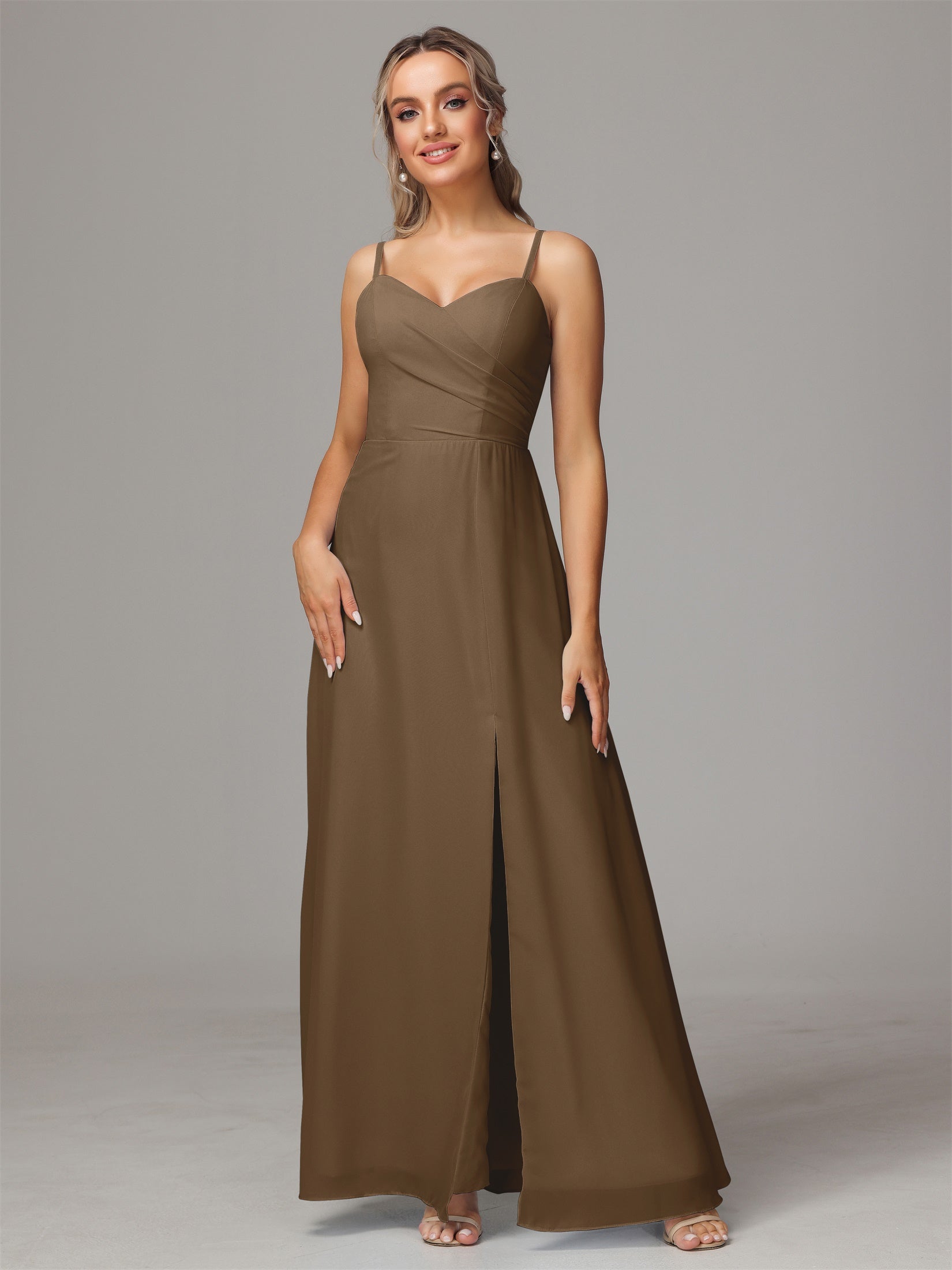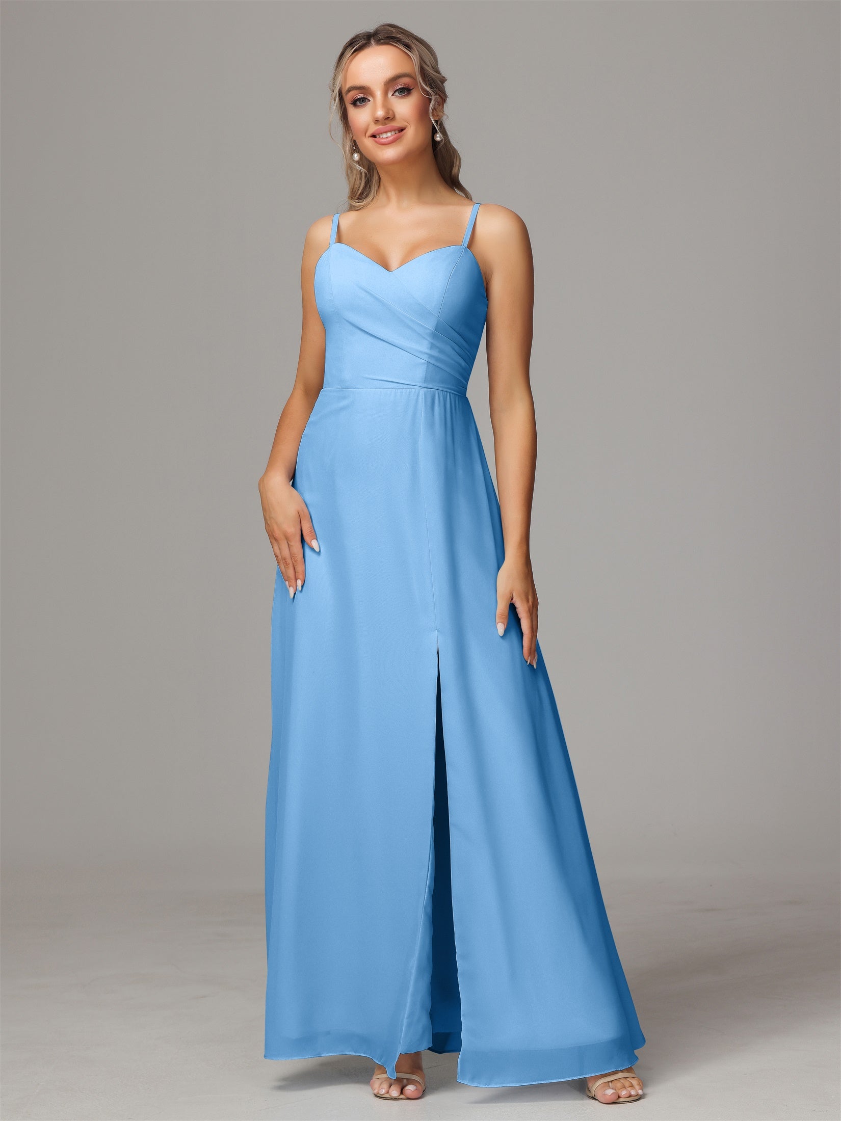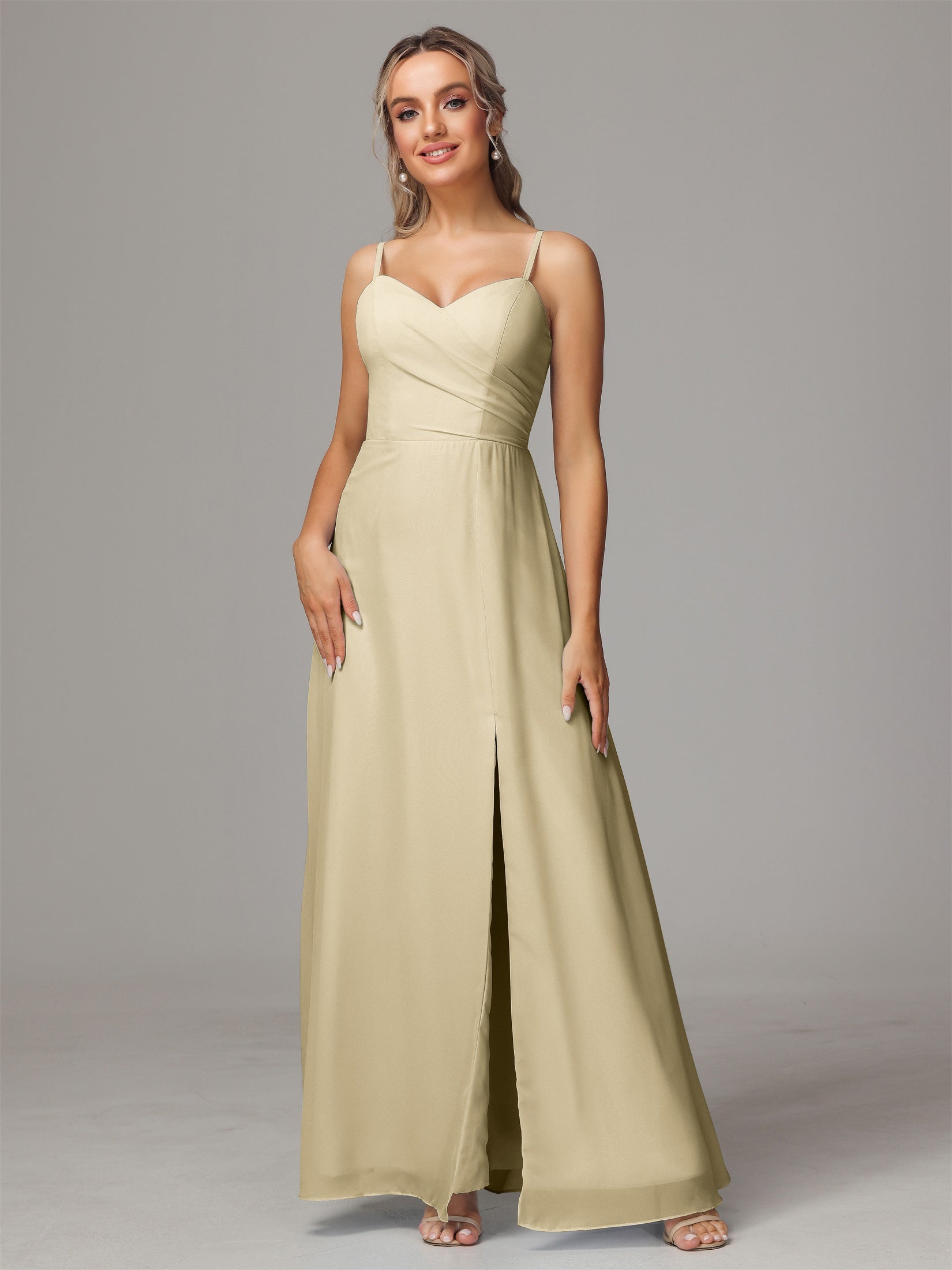 Bailee Spaghetti-Träger Geschlitzt Chiffon Brautjungfernkleider