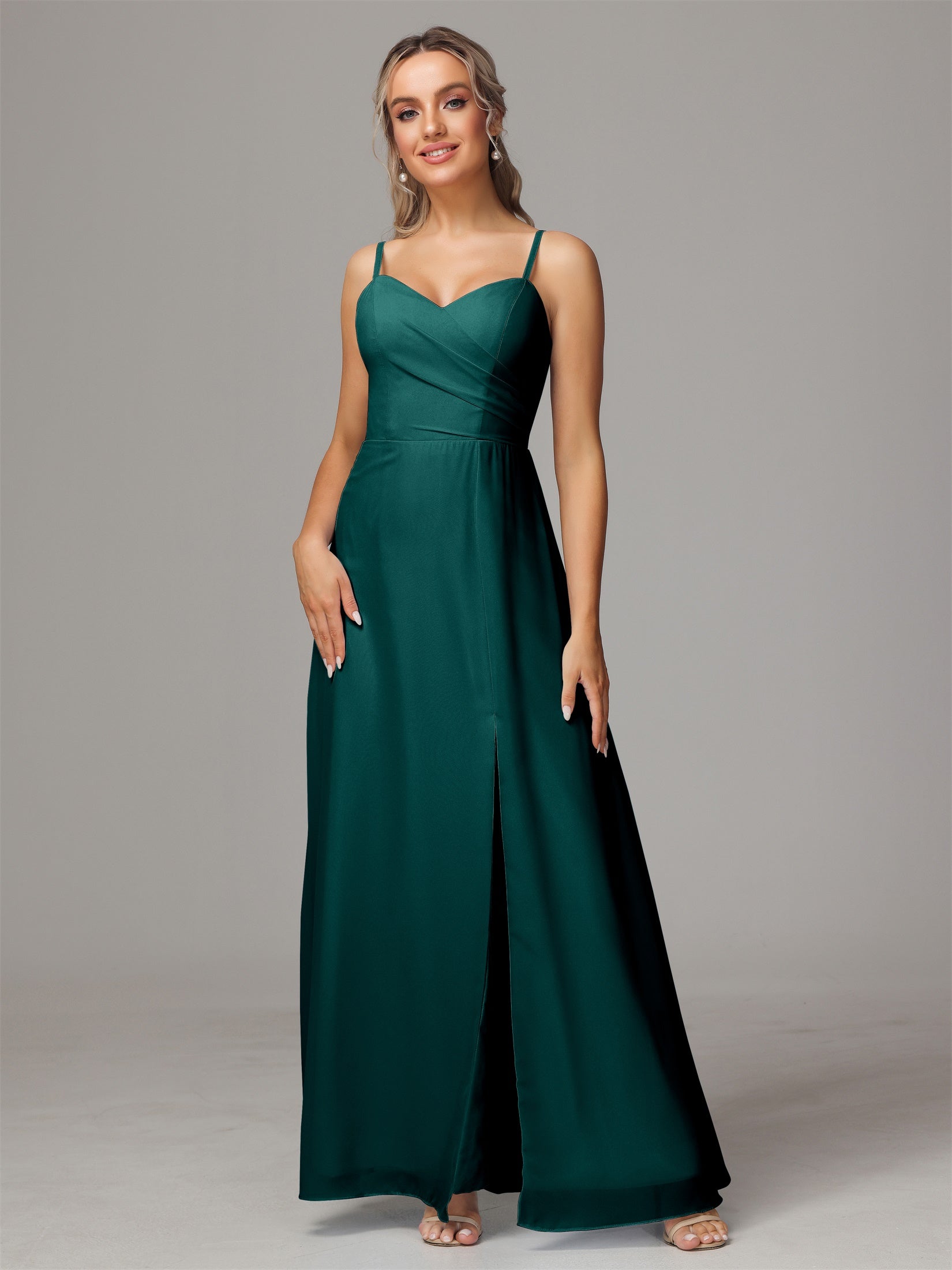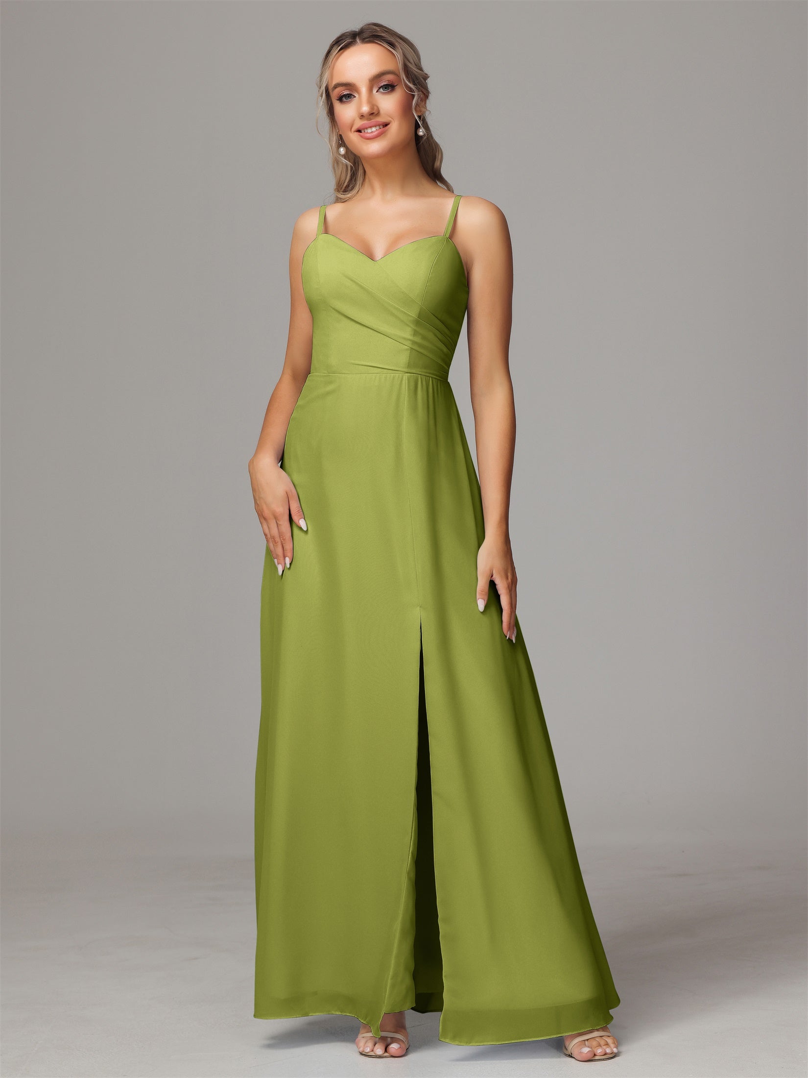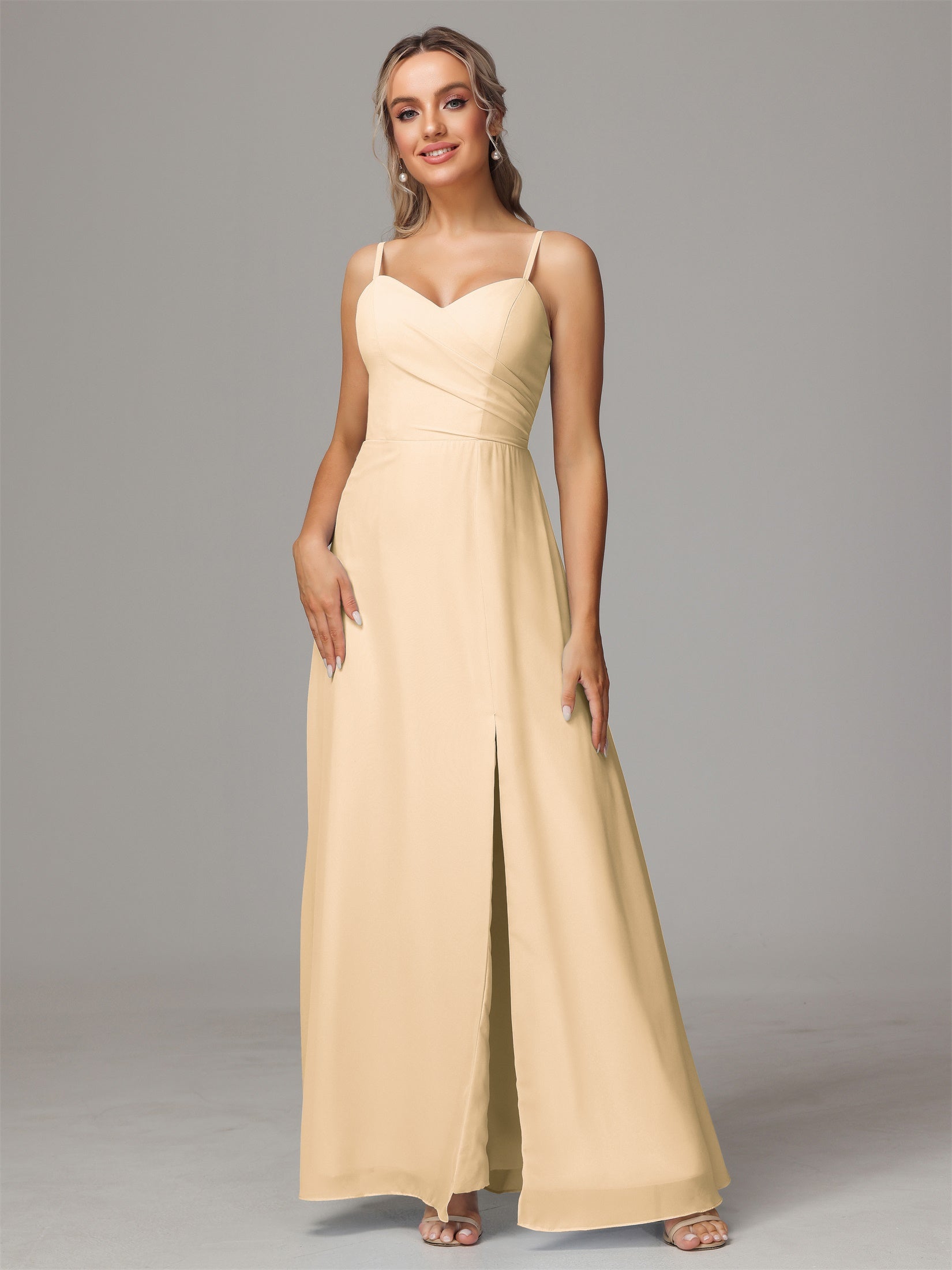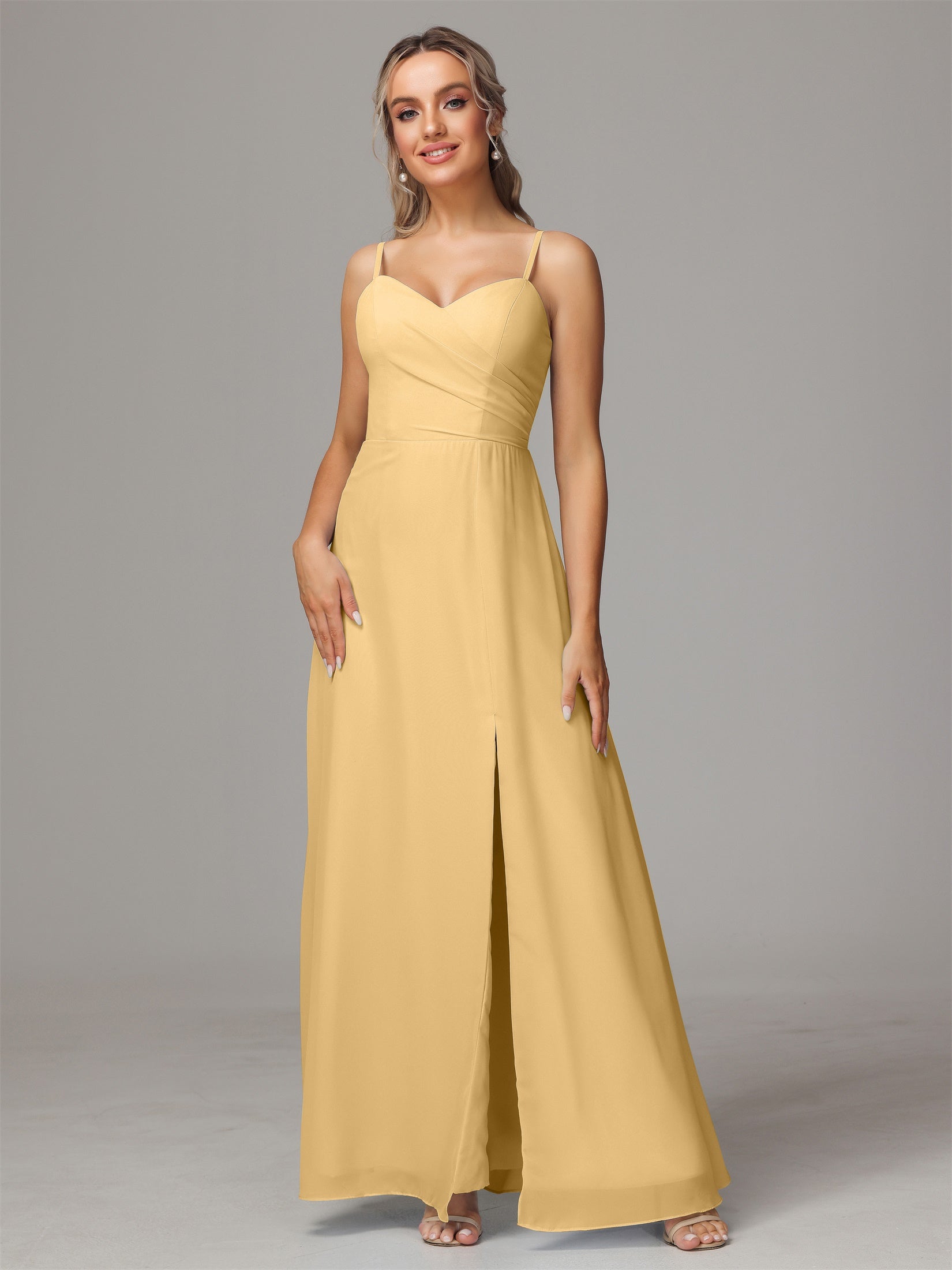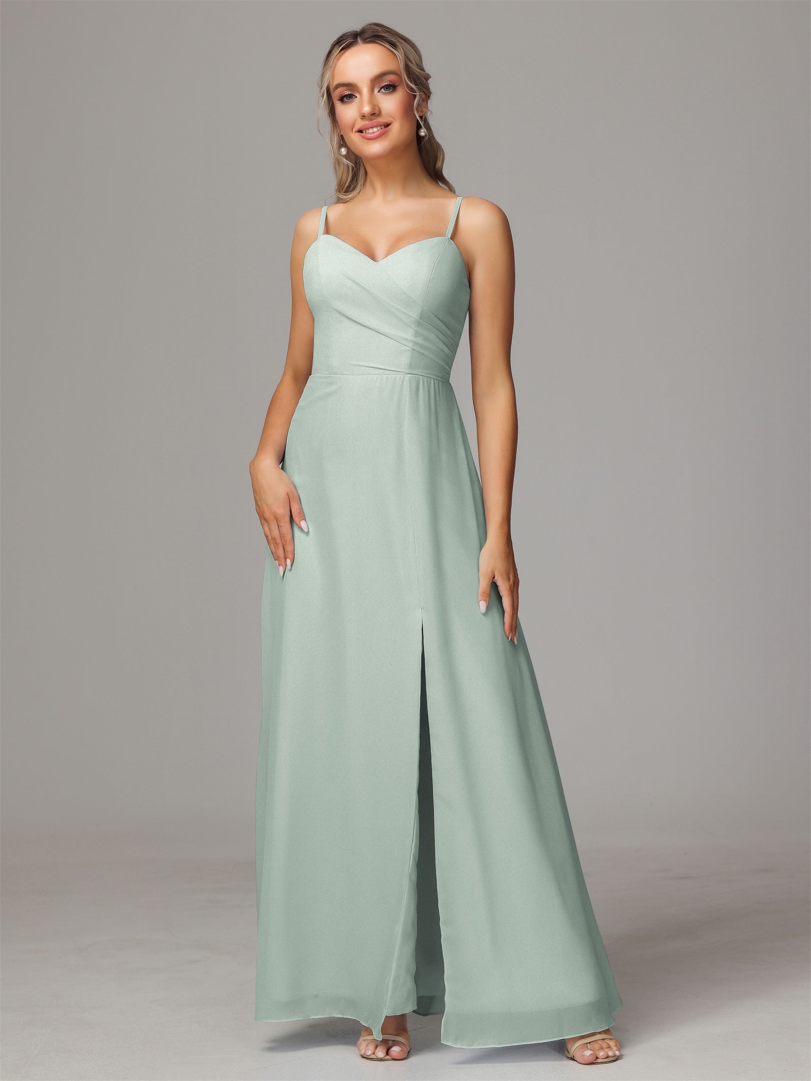 Bailee Spaghetti-Träger Geschlitzt Chiffon Brautjungfernkleider