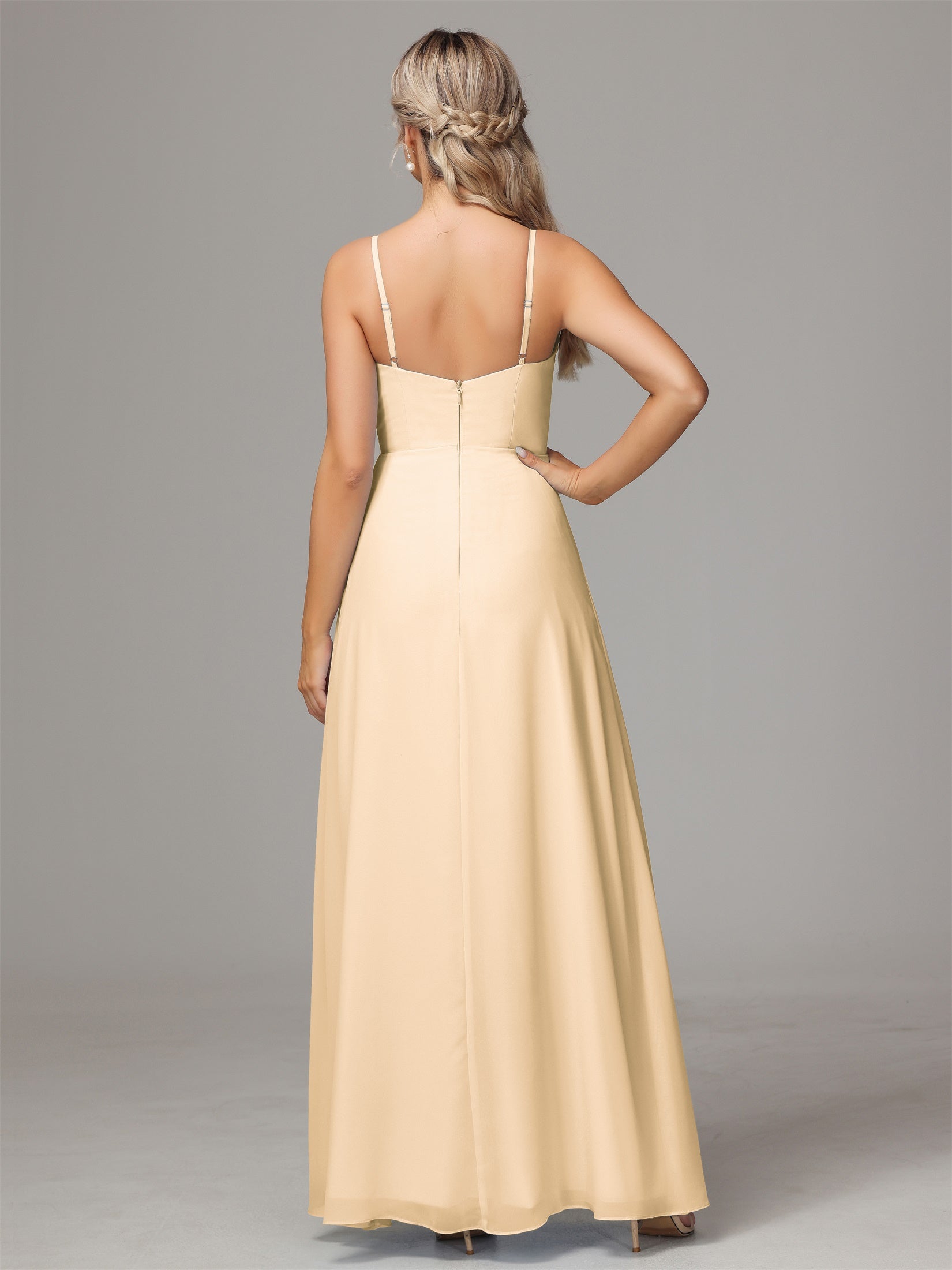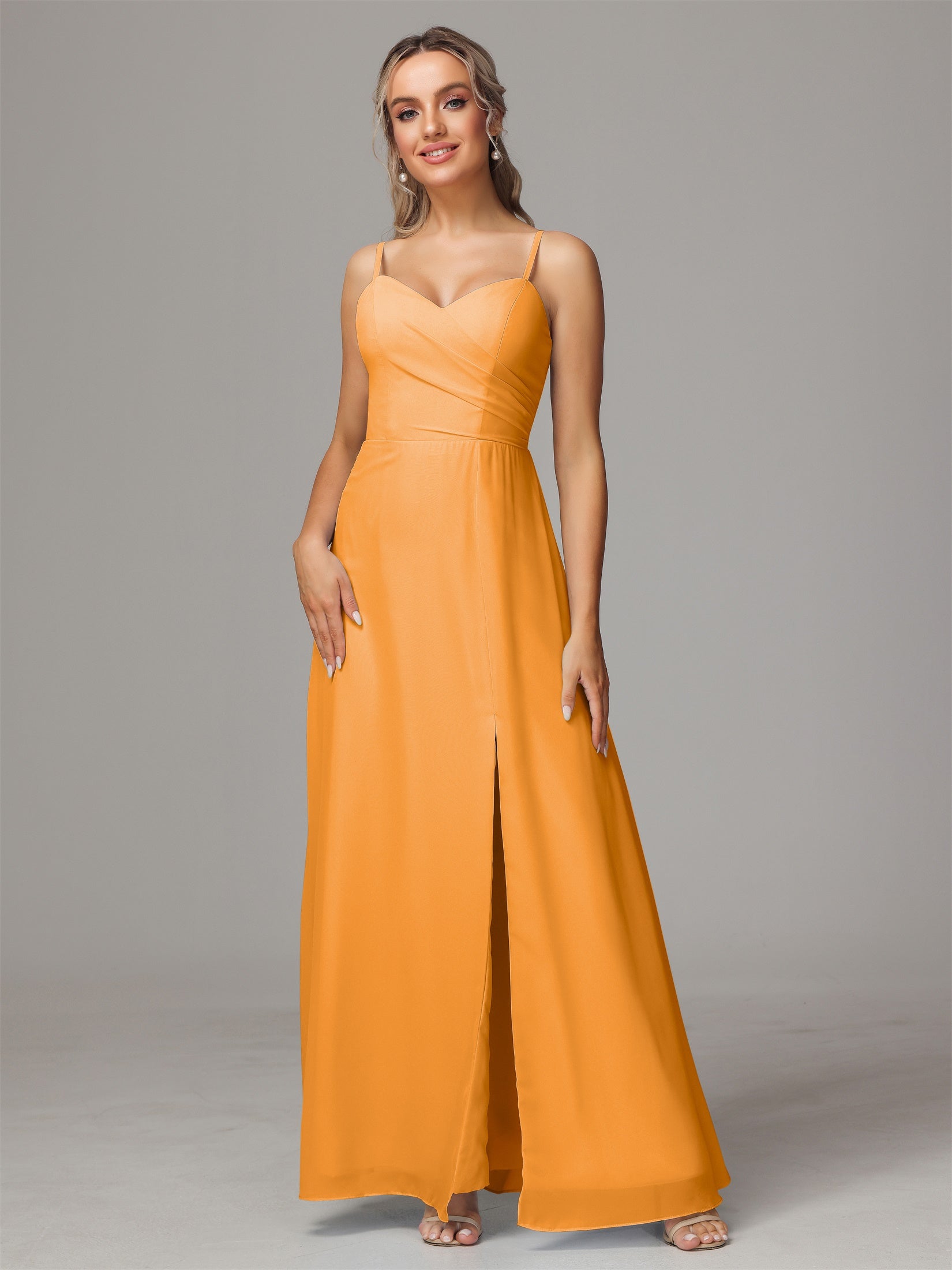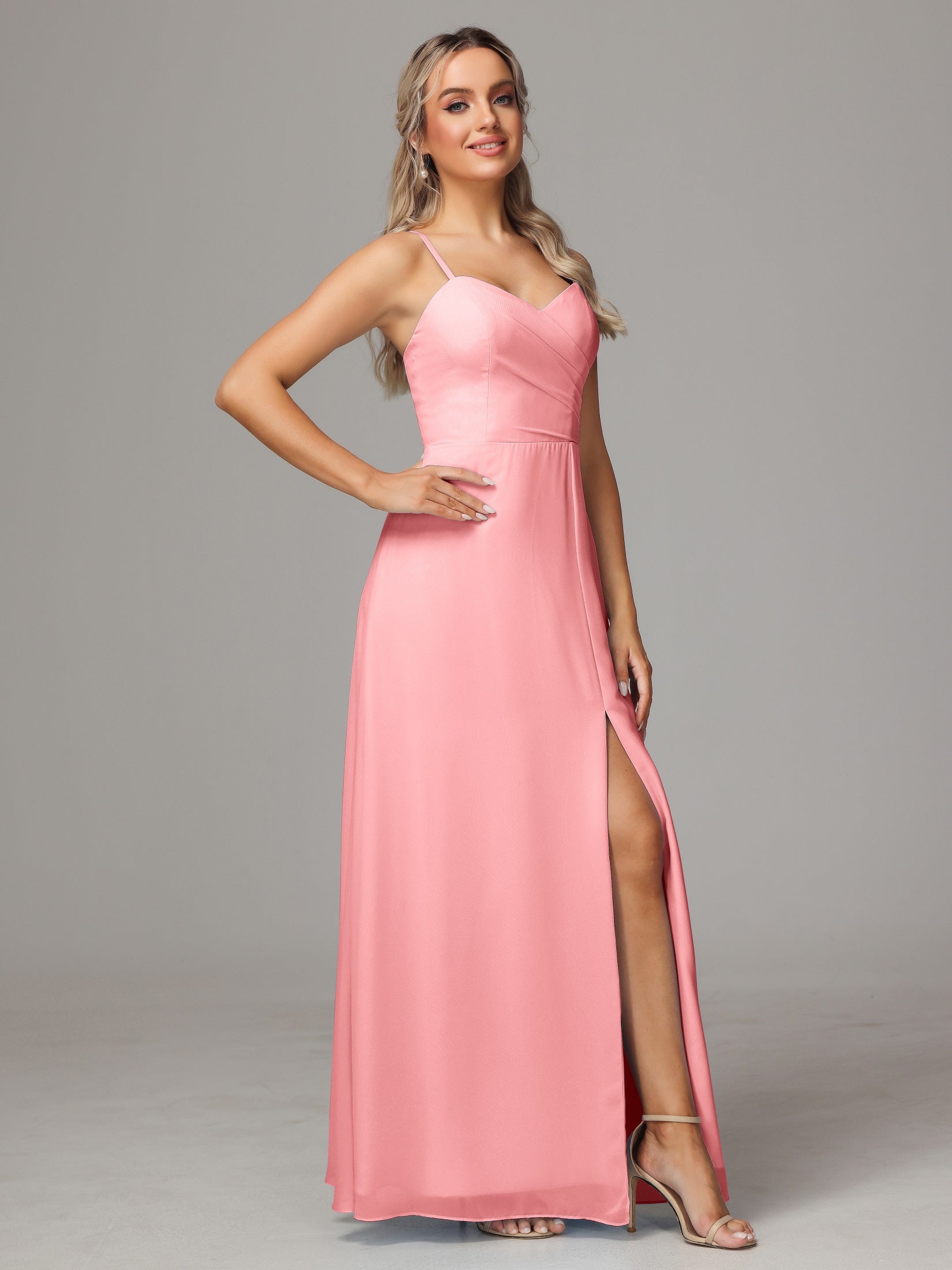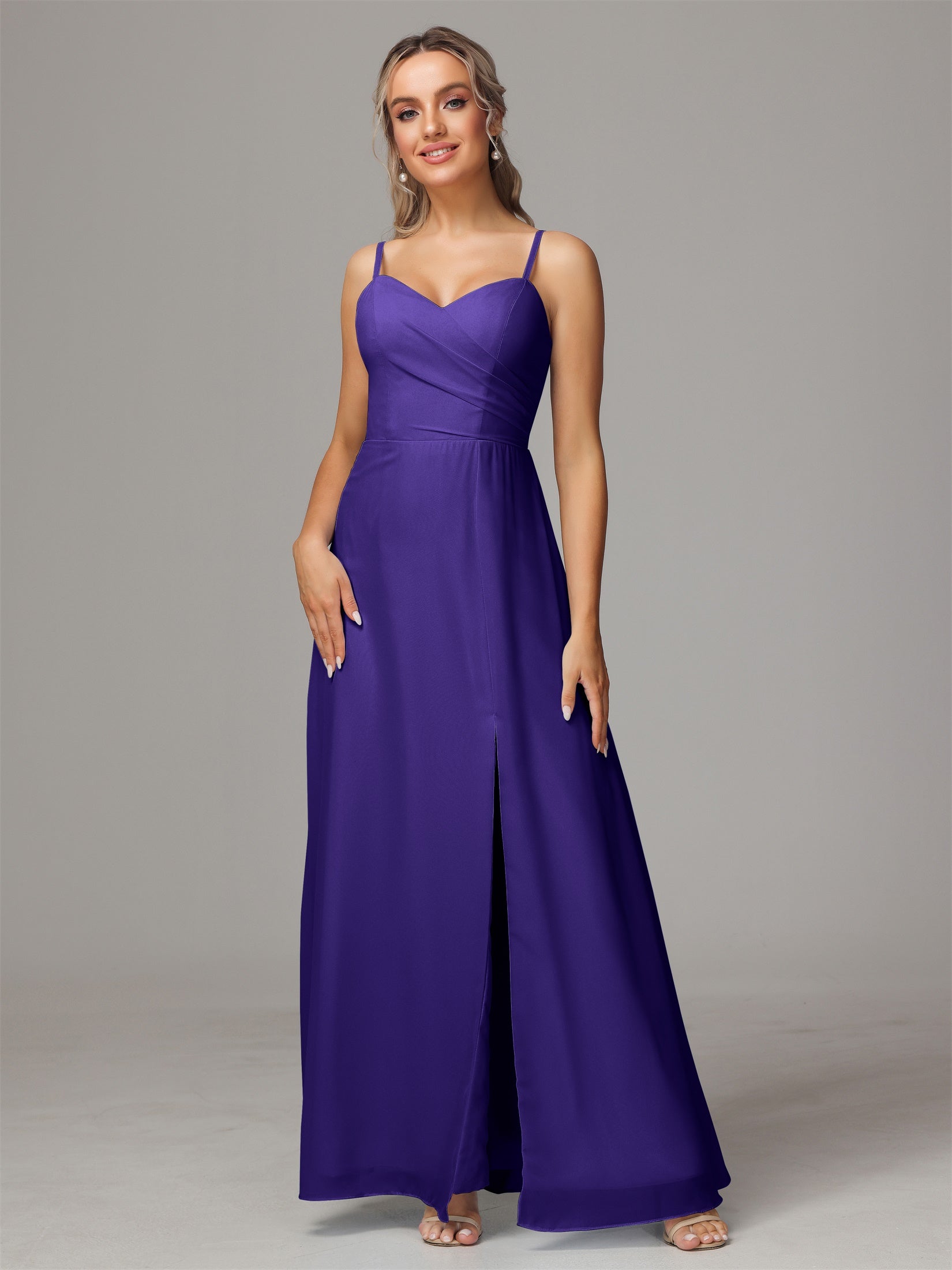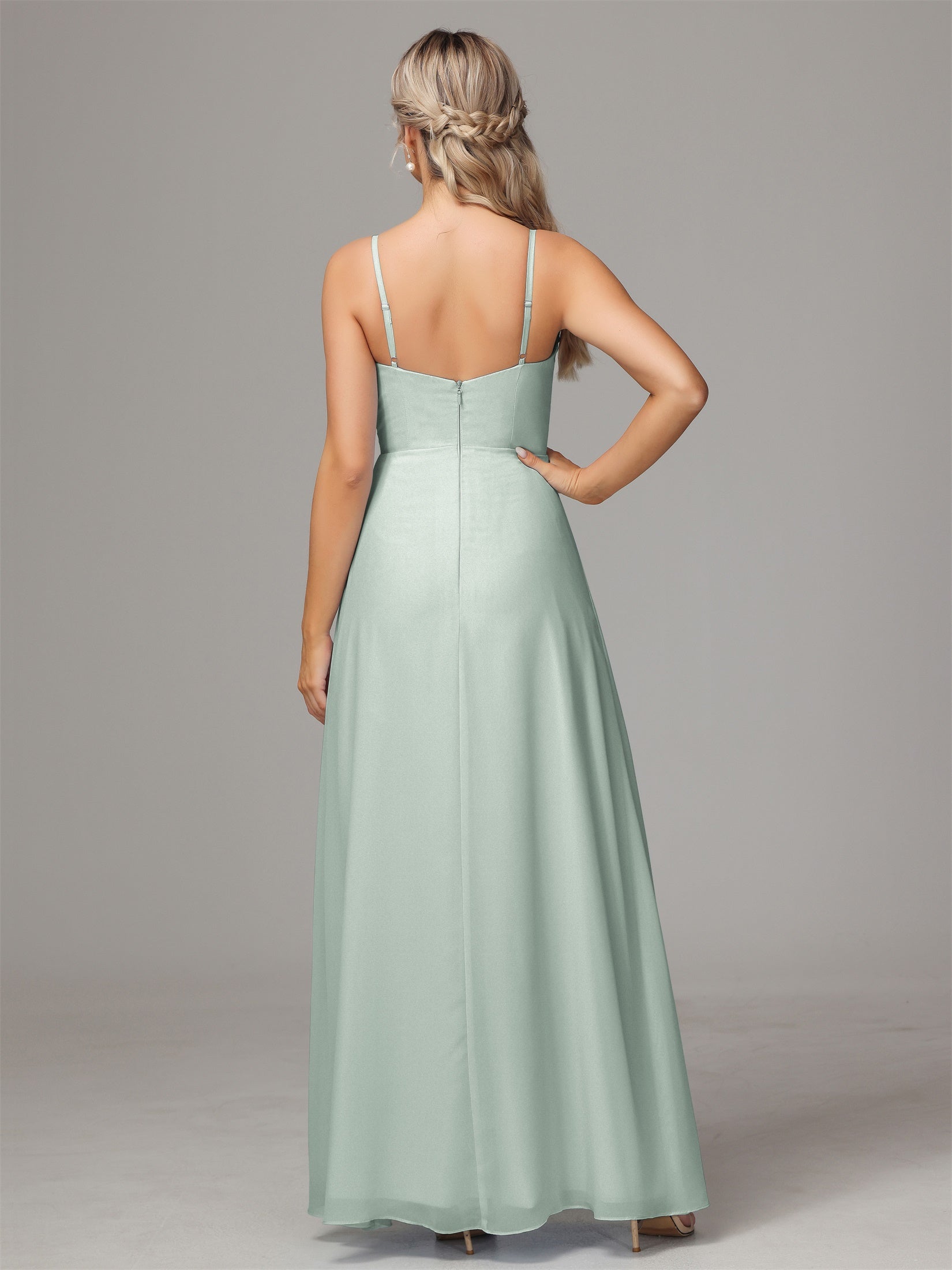 Bailee Spaghetti-Träger Geschlitzt Chiffon Brautjungfernkleider