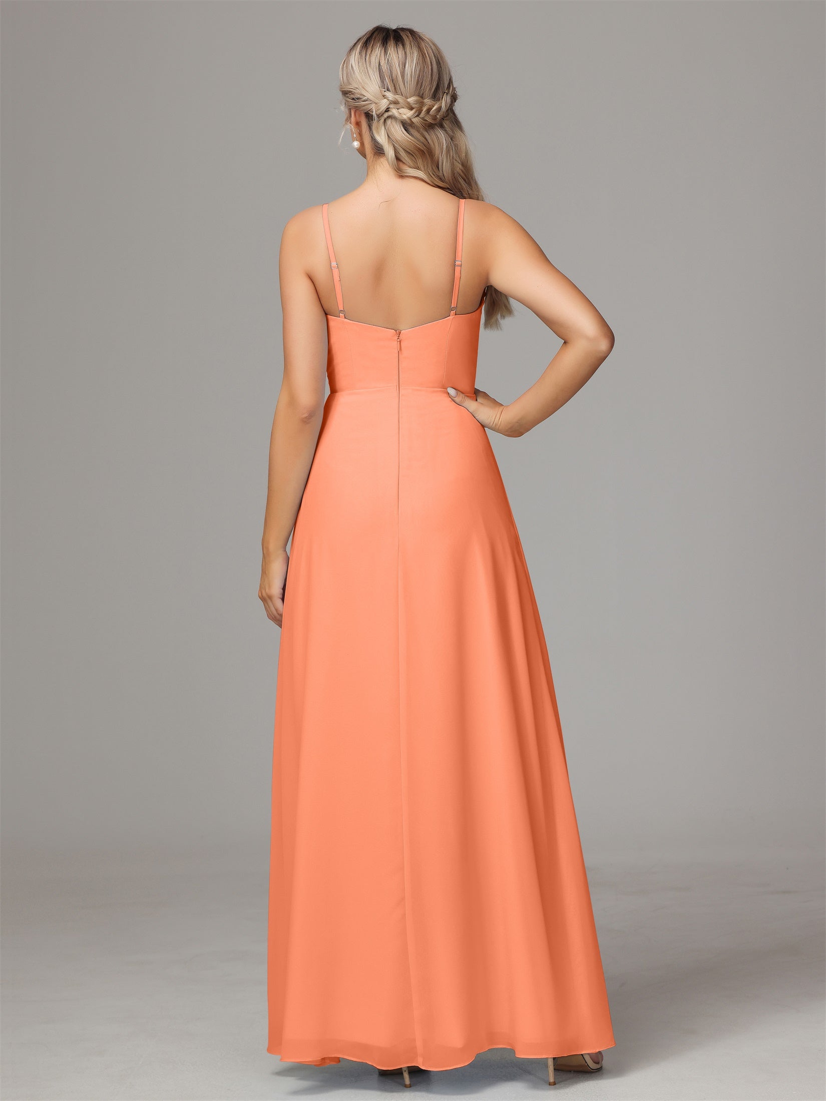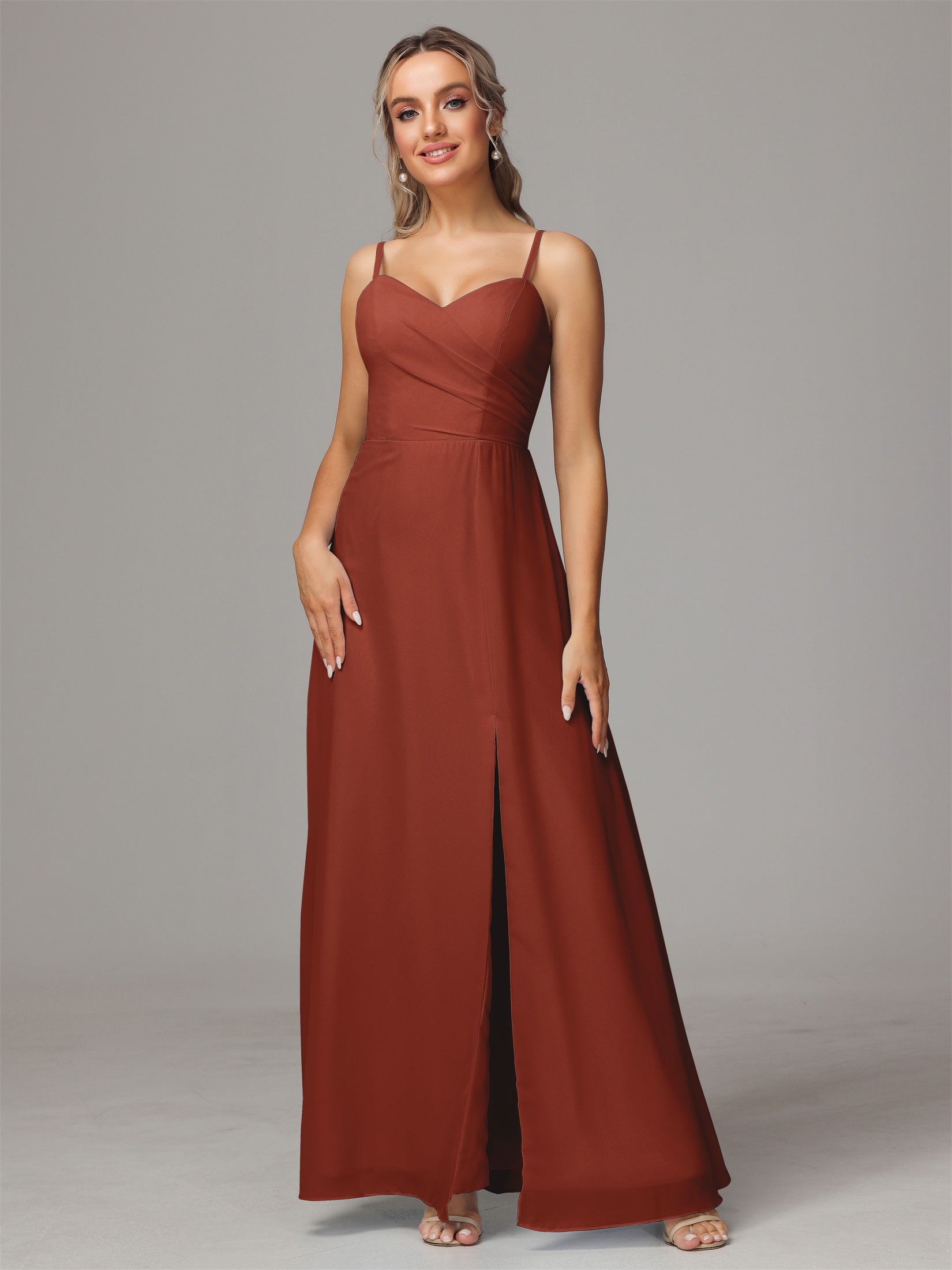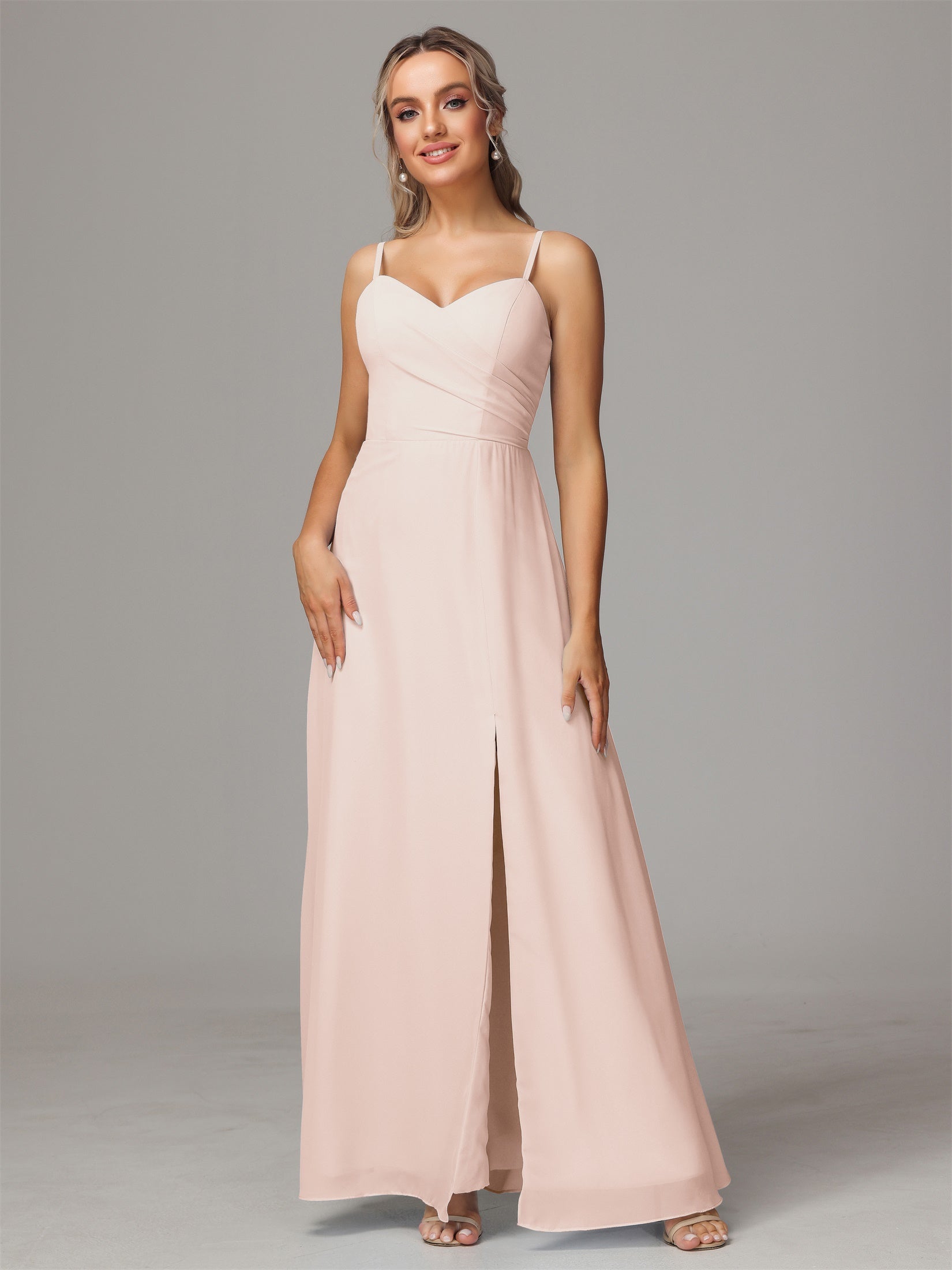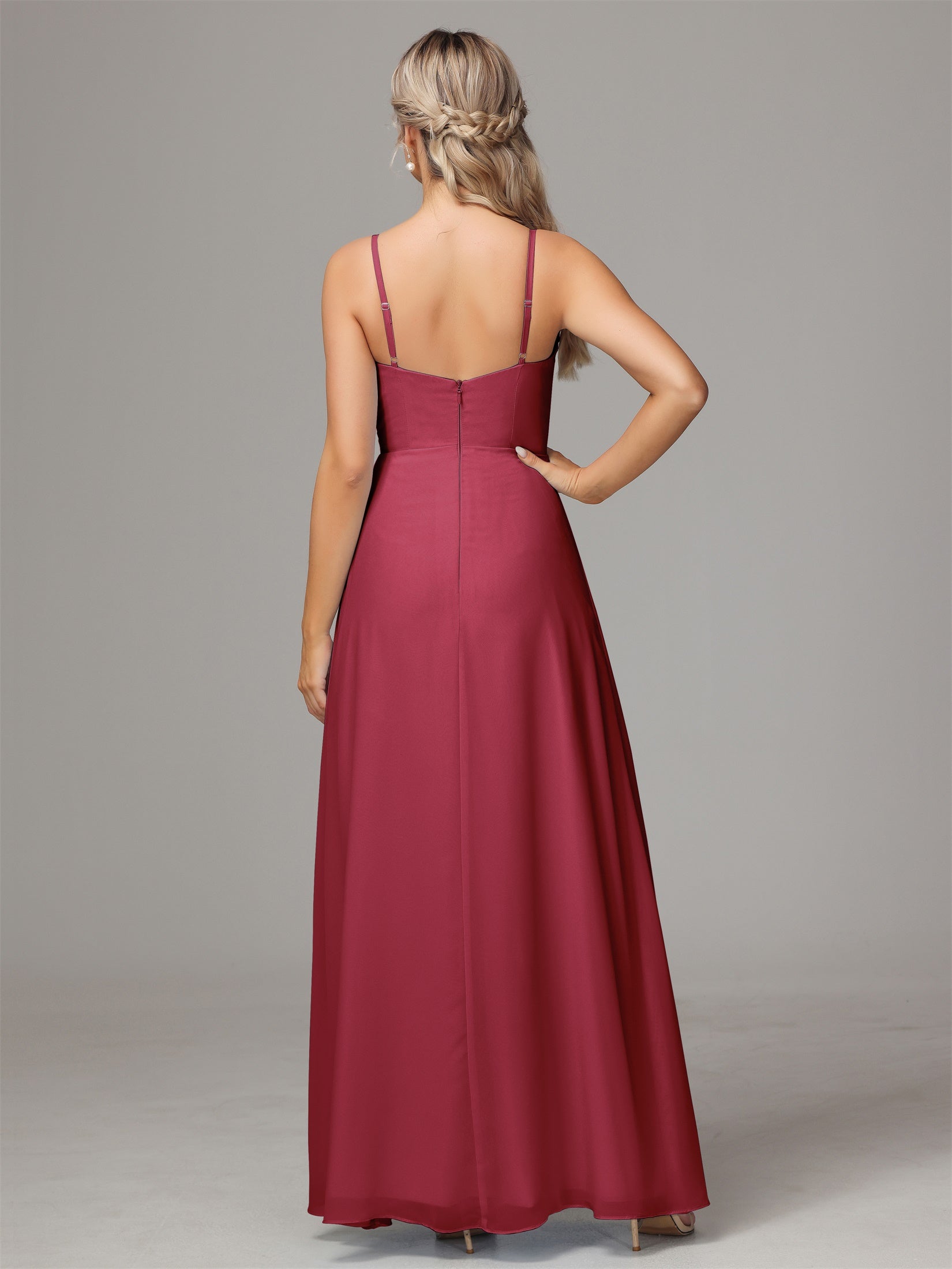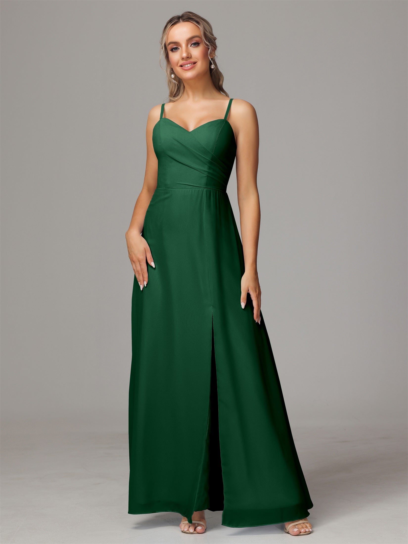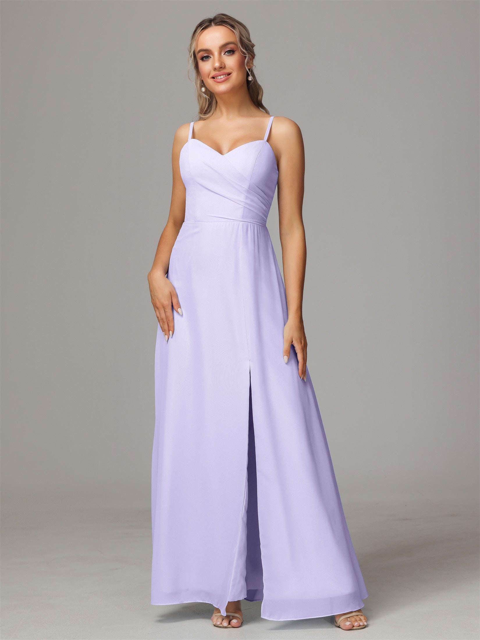 Bailee Spaghetti-Träger Geschlitzt Chiffon Brautjungfernkleider
