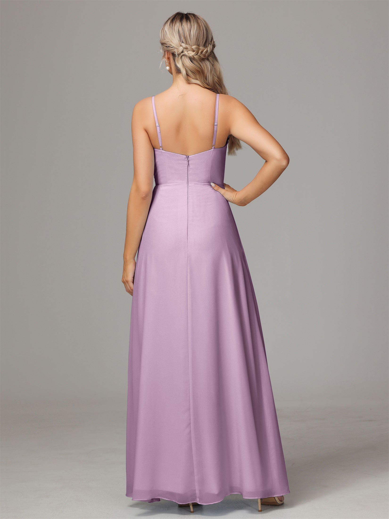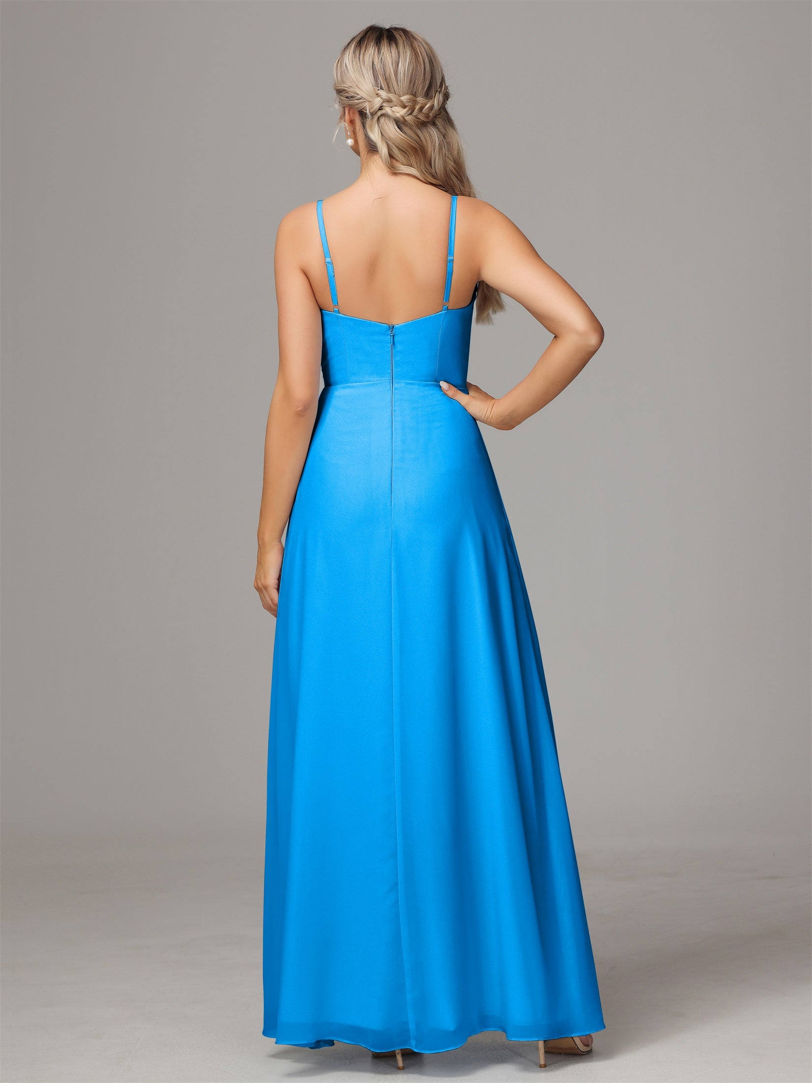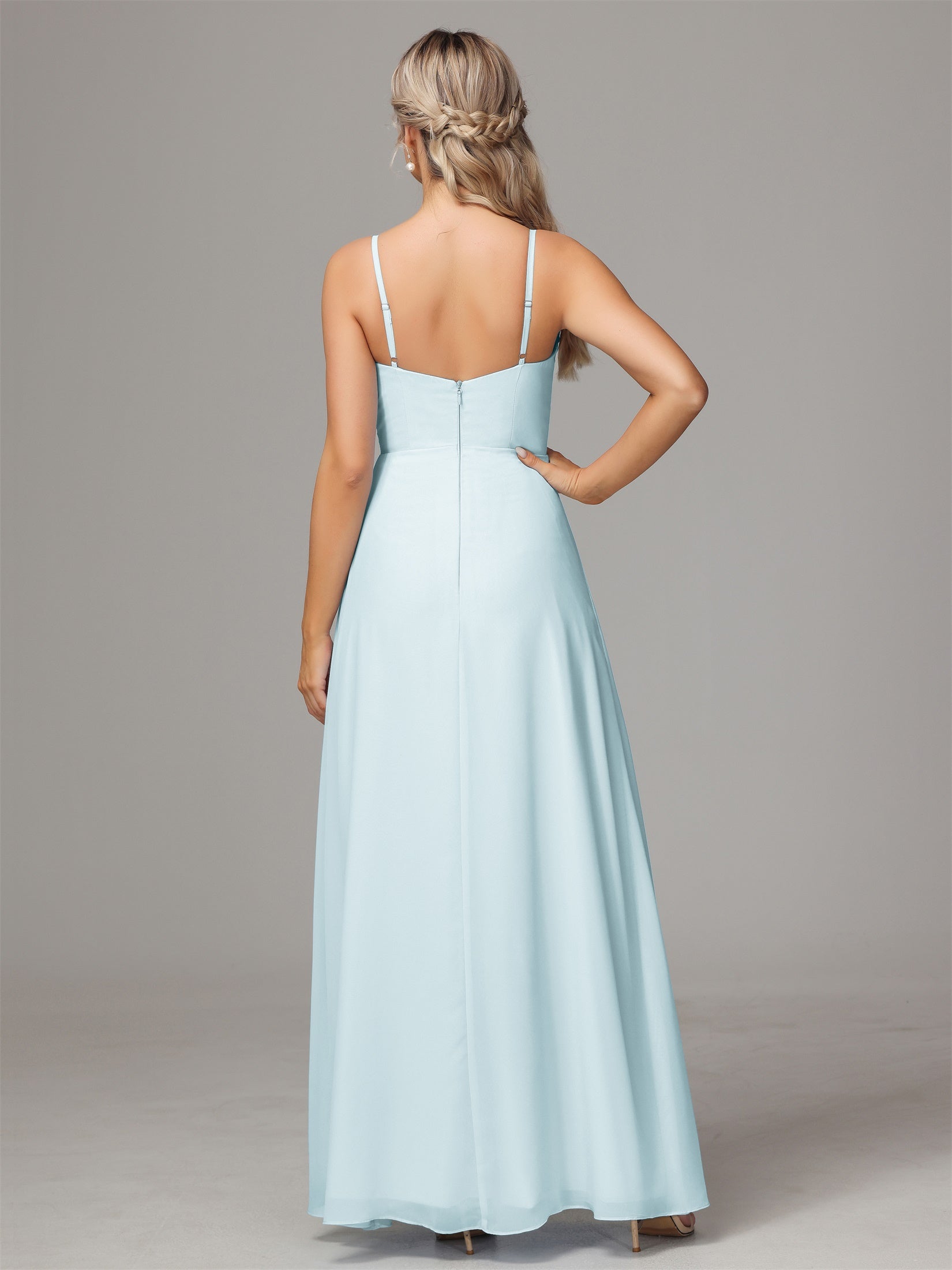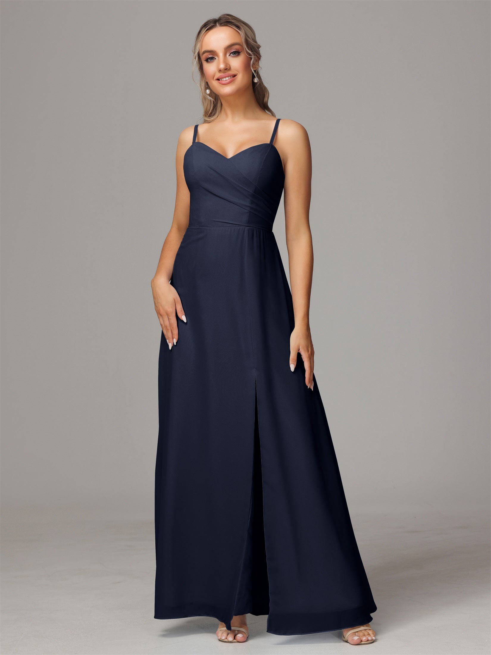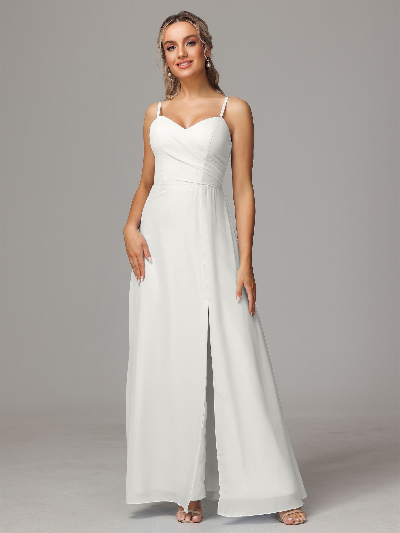 Bailee Spaghetti-Träger Geschlitzt Chiffon Brautjungfernkleider